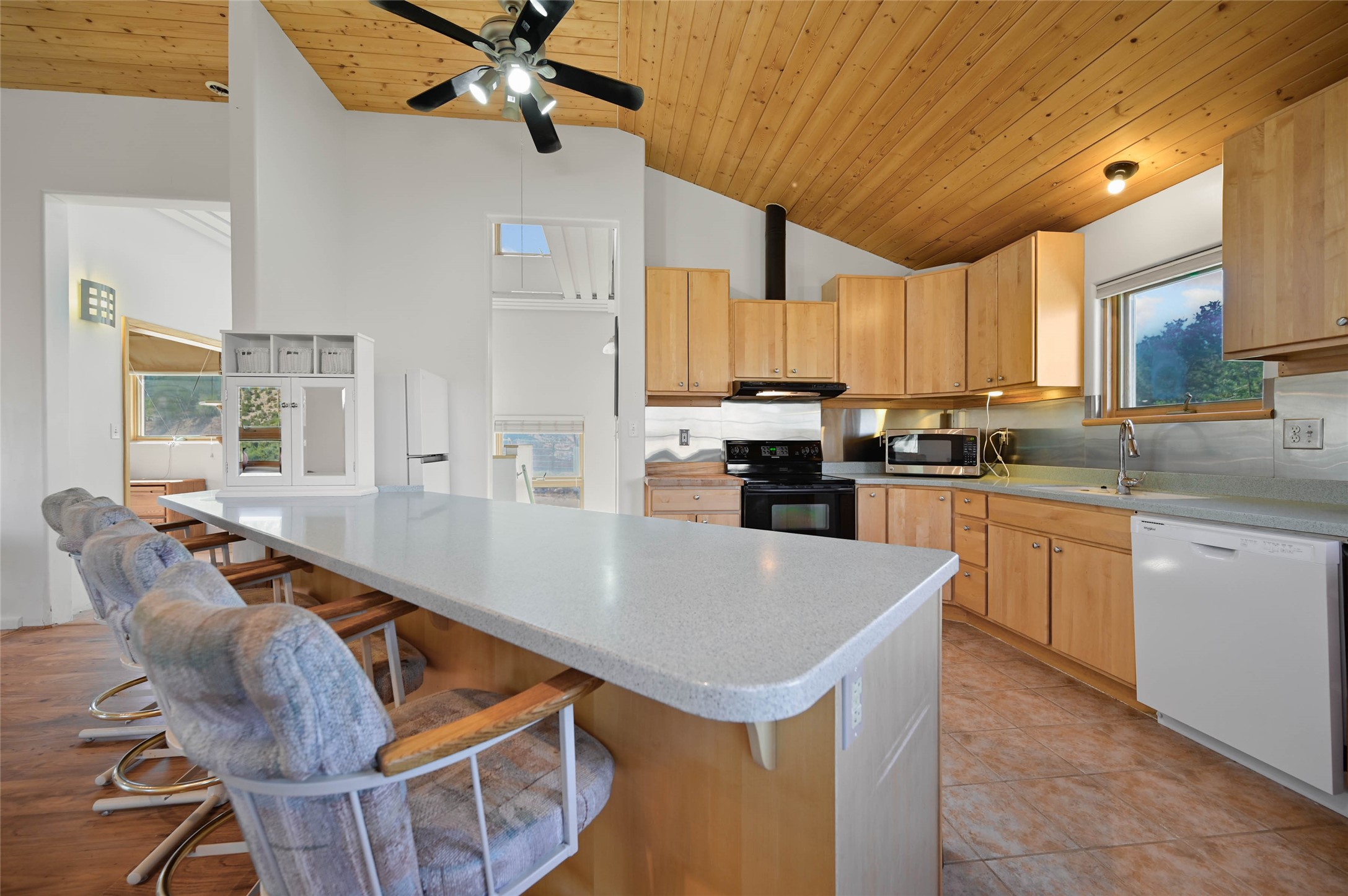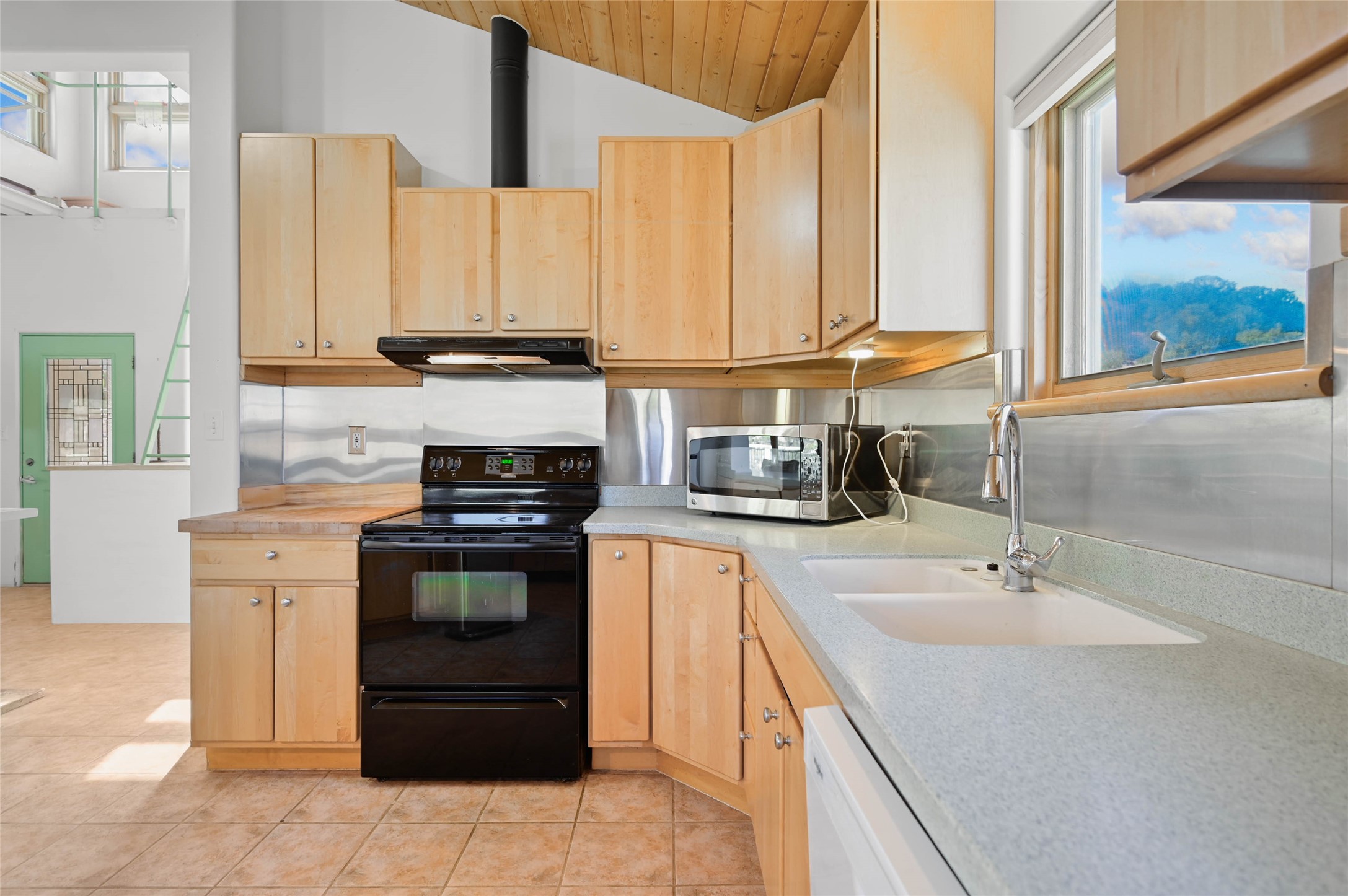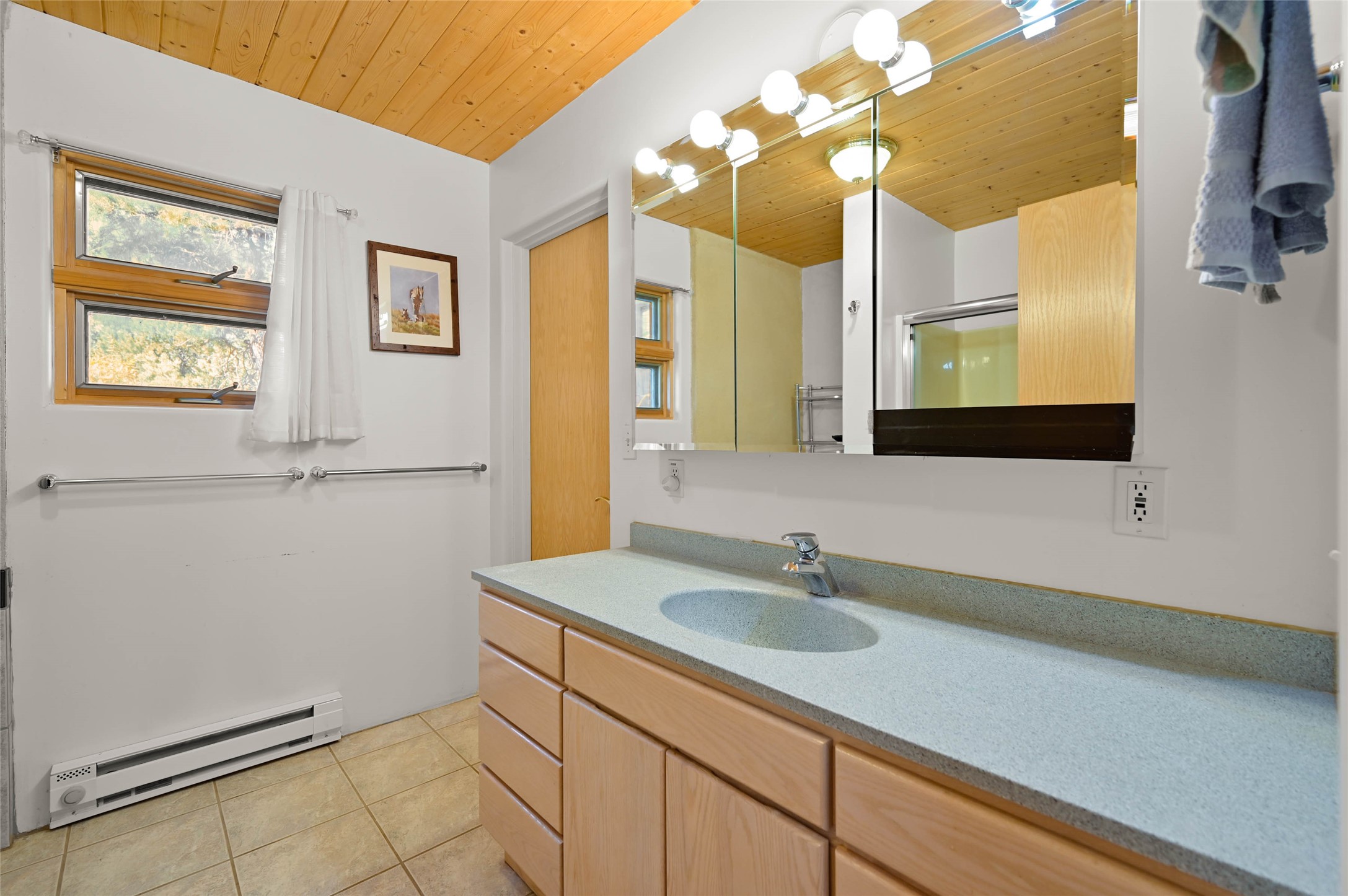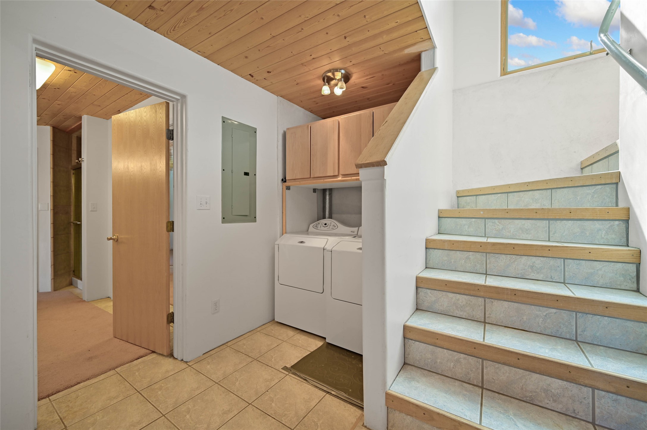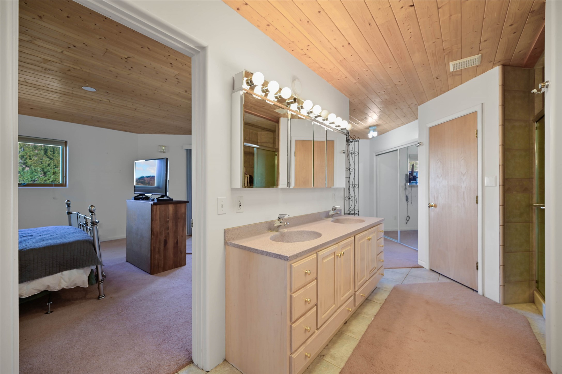 Welcome to your private mountain sanctuary! Tucked away just past Nambe and a scenic 25-minute drive from Santa Fe, this architecturally unique home offers the perfect blend of quietude and character. Whether you're drawn to the creative angles and beams, or the beautiful tongue-and-groove woodwork, this residence feels like a work of art. The thoughtful two-level layout features: Main Level: A spacious, light-filled great room designed for gathering, framed by expansive views of the surrounding landscape. Kitchen with ample counterspace and cabinet storage. A light filled Atrium, great for indoor plants, plus a powder room for convenience. Lower Level: Two comfortable bedroom suites, providing a peaceful and private retreat for family or guests. Each with a full bath. There is also a kitchenette area and laundry. Both bedrooms have direct access to the back patio Deck and Hot tub. Outdoor & Hobby Space: Situated on generous acreage with its own private well, the property includes a dedicated workshop and multiple carports--ideal for makers, collectors, or anyone needing extra room for gear and projects. If you've been looking for a home that breaks the "cookie-cutter" mold while staying close to the cultural heart of Santa Fe, this is the one.