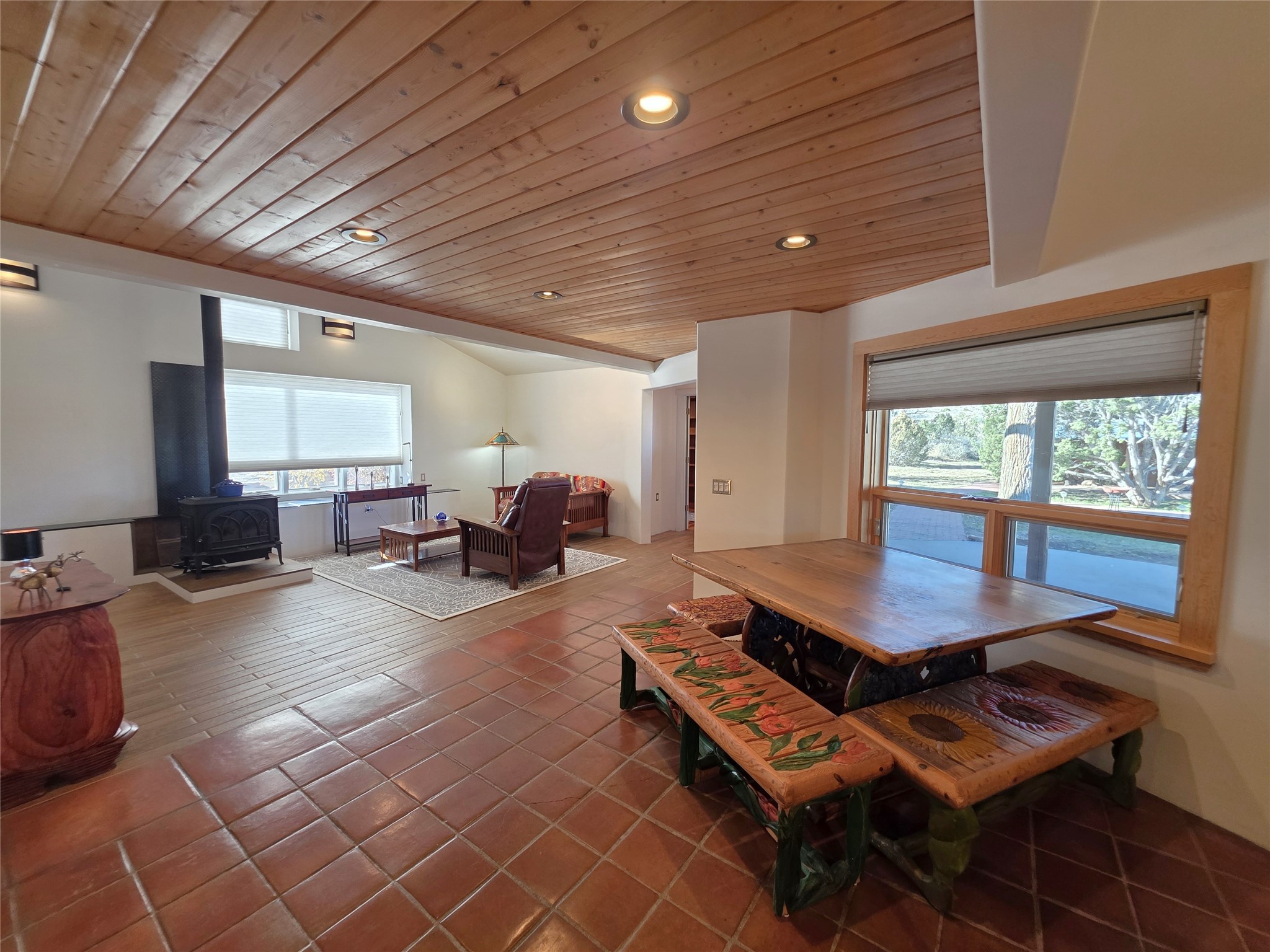 Experience the best of both worlds in this classic Northern New Mexico adobe, where timeless architecture meets a contemporary, light-filled interior. Spanning 3,237 sq. ft., the home offers 3 bedrooms, 2 baths, and an inviting upstairs loft with generous storage. The residence features a chef's kitchen, soaring ceilings, and a dining/family room warmed by a wood-burning stove. The large primary en-suite includes a spacious walk-in closet system, a luxurious soaking tub, and a separate shower. The bedroom's high ceilings and walk-out access to the garden create a private retreat. The expansive living room--anchored by a wood-burning fireplace--can be configured as both a living space and formal dining area. A 231 sq. ft. front patio provides an exceptional setting for entertaining or simply enjoying the outdoors. Several versatile outbuildings complement the main home: a 2-car carport, a 1,259 sq. ft. garage/workshop with an attached studio and office, and a 720 sq. ft. adobe garage with warehouse-style roll-up doors--ideal for artists, craftsmen, hobbyists, or a home-based business. Set on a sprawling 3.17-acre lot, the offering also includes an additional 2.52-acre parcel with its own water rights and an 840 sq. ft. garage/storage building--for a combined 5.69 acres. The property is a gardener's or farmer's dream, boasting 13.26 acre-feet of irrigation water rights across the two parcels, plus a private well with water rights. With boundless potential for future development--and room for horses--this unique property is located just 20 minutes from Los Alamos or Santa Fe. Don't miss the aerial video and 3D virtual tour!