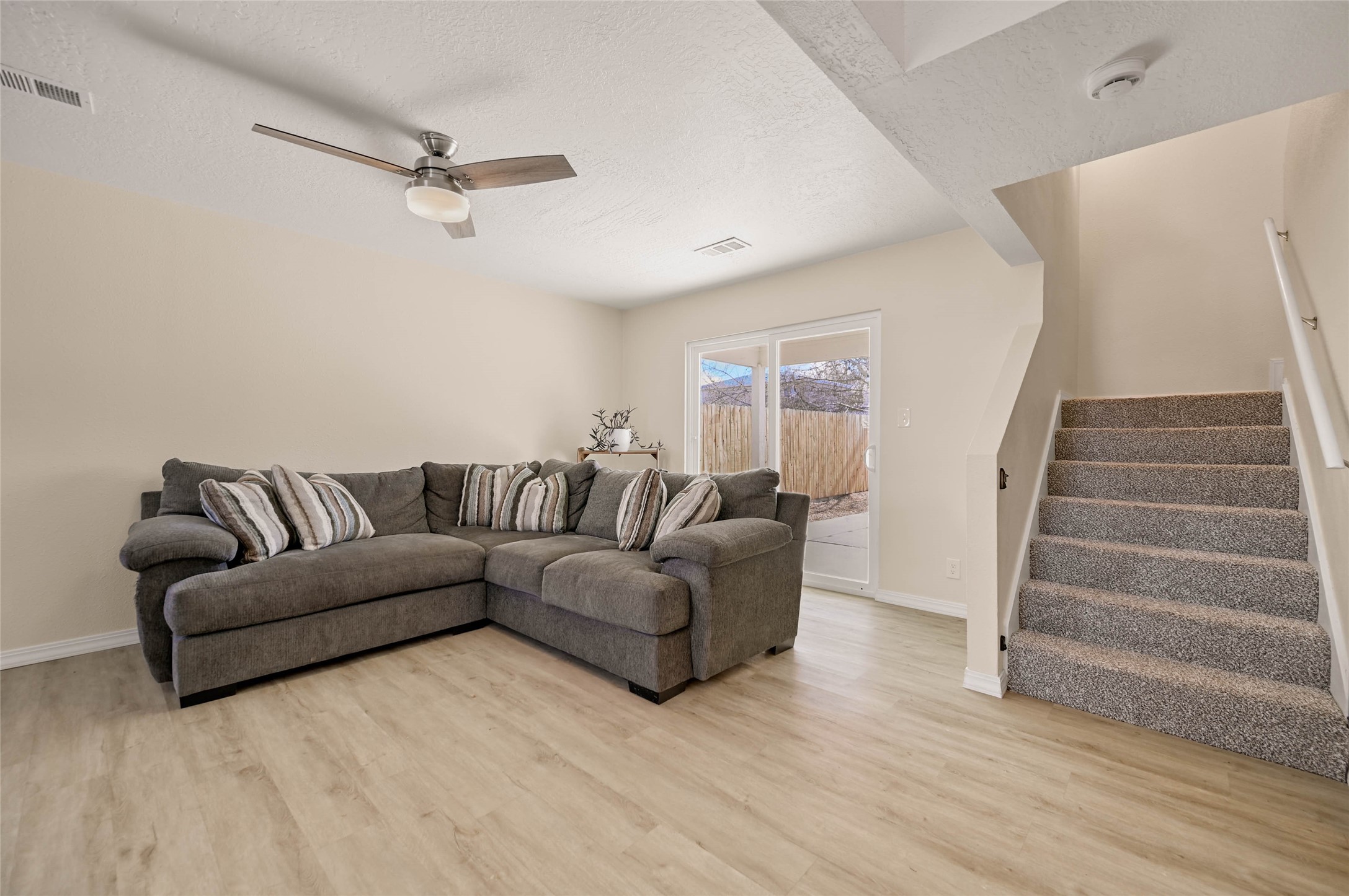 Charming and recently updated two-story home in Rio Rancho offering 3 bedrooms and 3 bathrooms. Renovated in 2024, this home features newer kitchen cabinets, appliances, updated bathrooms, and flooring throughout, creating a fresh and modern feel. The spacious eat-in kitchen provides plenty of room for cooking and gathering, while large windows throughout the home fill the interior with wonderful natural light. The primary suite offers a comfortable private retreat, and the functional floor plan provides flexibility for everyday living. Outside, enjoy a large fenced backyard--perfect for pets, gardening, or entertaining. Mature trees in the front yard provide shade and enhance curb appeal, while the one-car garage offers convenient parking and storage. A move-in-ready home with thoughtful updates and plenty of outdoor space.