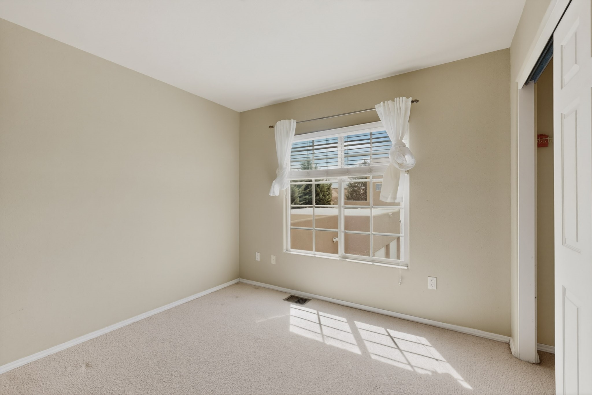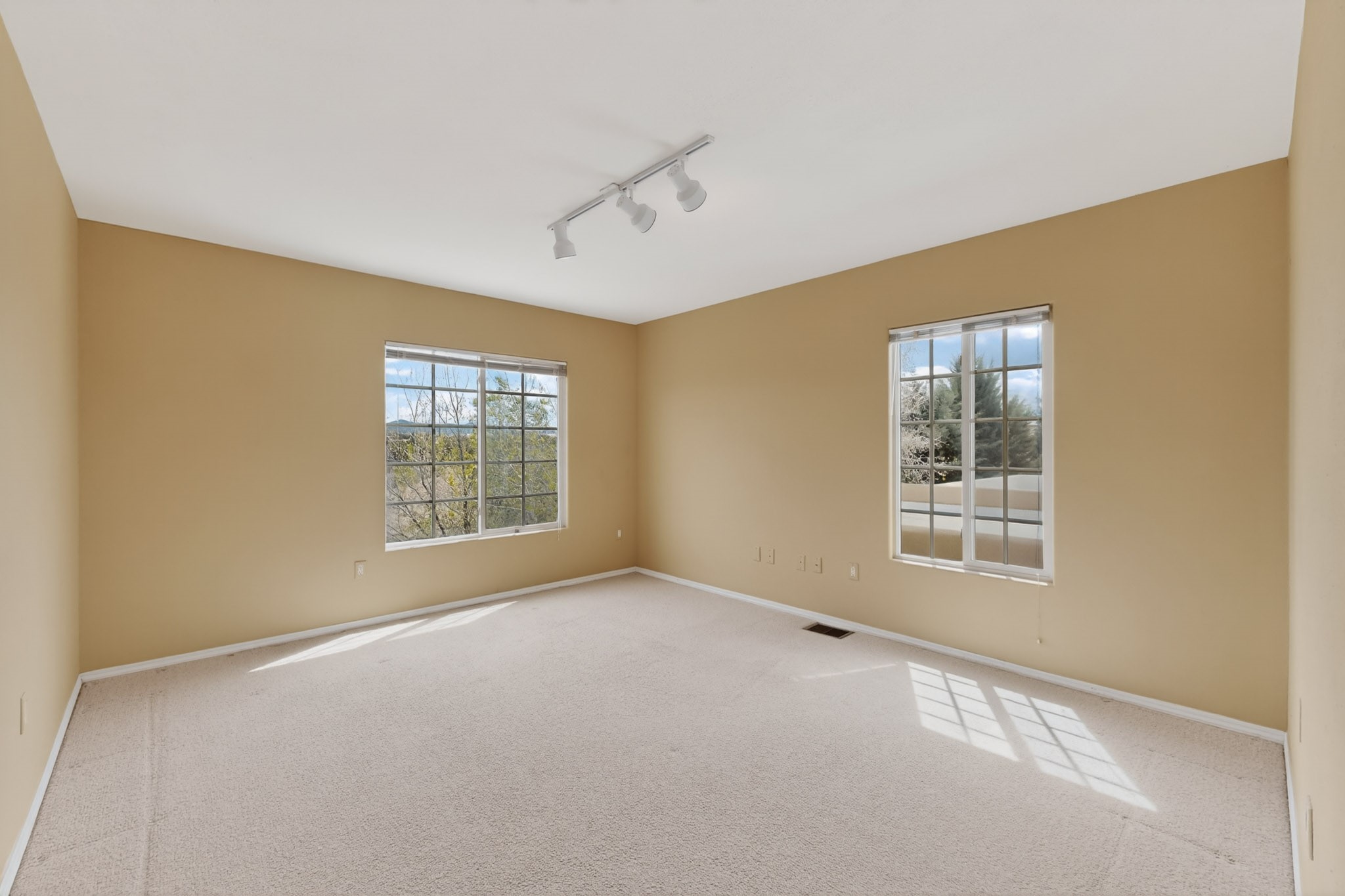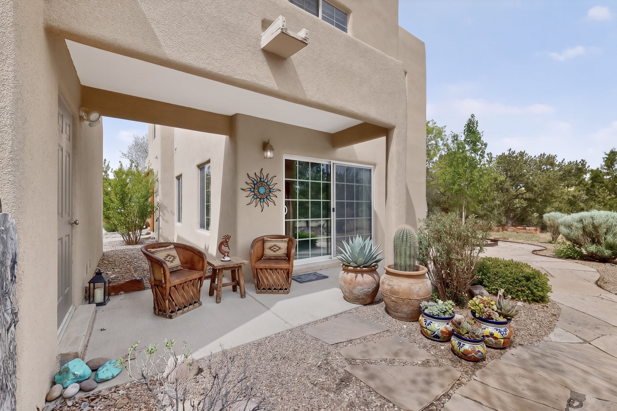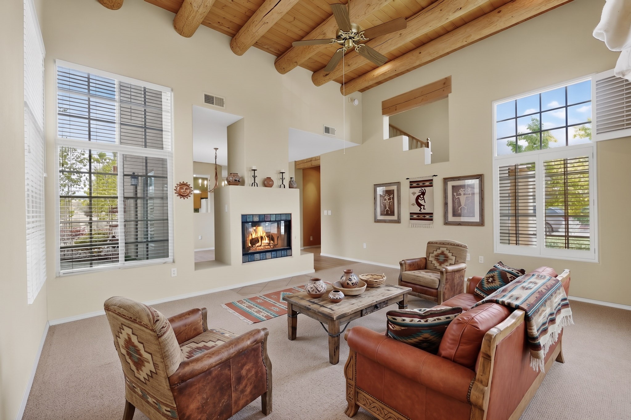 Private, spacious, Nava Ade Gem with Mountain Views! Tucked away at the end of a quiet cul-de-sac & backing to some open space, this home provides tons of privacy, & access to Santa Fe's trail system. With appx 2,024 square feet of well-designed living space, this 3-bedroom + office (or 4th bedroom), 3-bathroom residence offers both flexibility & comfort. Step inside to a light-filled, two-story home to the living room featuring soaring ceiling with vigas & a two-sided gas (gas stub out has never been used-was added when home was built) & wood-burning fireplace shared w/ the dining area. The open-concept kitchen is ideal for entertaining, w/ granite countertops, an island, ample cabinetry, a pantry, & a water purification system at the sink. A standout feature is the versatile downstairs large office space--complete w/ a custom door & separate entrance from the kitchen & exterior--perfect for a studio, guest room, workout area, playroom, or 4th bedroom. Spacious primary suite w/ mountain views include an en-suite bath w/ dual vanity, a separate tub & shower, & a walk-in closet w/ built ins. 2 additional good-sized bedrooms & a full bath complete the upper level. Additional highlights include: Forced air heat w/ refrigerated air, washer/dryer, ceiling fans, track lighting, tile, carpet & NEW laminate flooring (2025) & NEW windows (2018-2019) on east, west, and south sides, NEW stucco (2020), NEW furnace/AC (+/- 2019), NEW refrigerator (+/- 2022), NEW garage door (2025), TPO roof, long driveway providing room for multiple cars, under-stair storage, drip irrigation & more. Enjoy peaceful mornings or evenings in the backyard from 2 patios, & open space offering a natural feel--yet you're only minutes from hospitals, restaurants, shopping, and schools. Nava Ade offers a clubhouse, pool, work-out room, hot tub & more in addition to a trail system connecting to the Arroyo Chamiso Trail, making it ideal for outdoor lovers.
