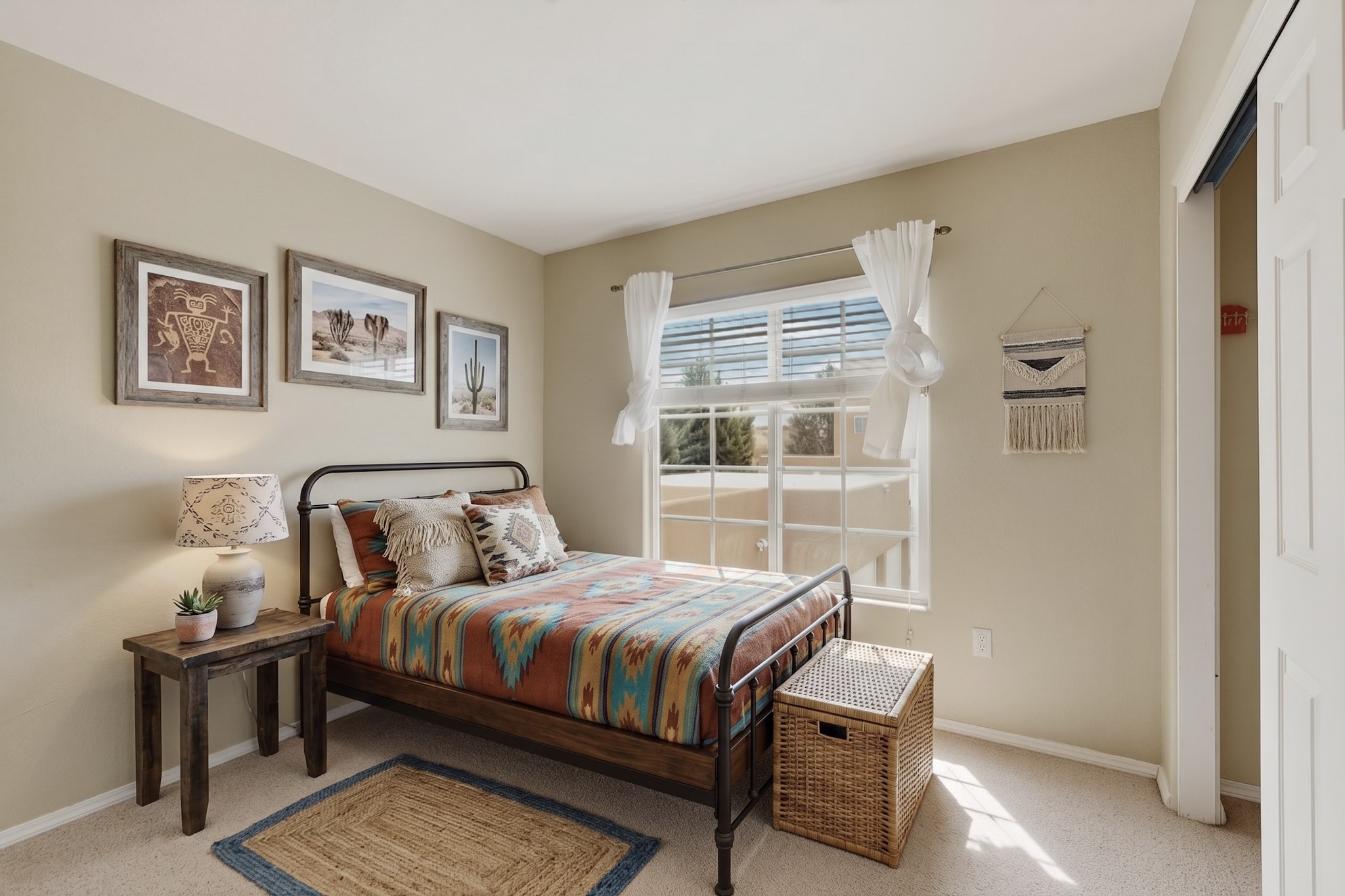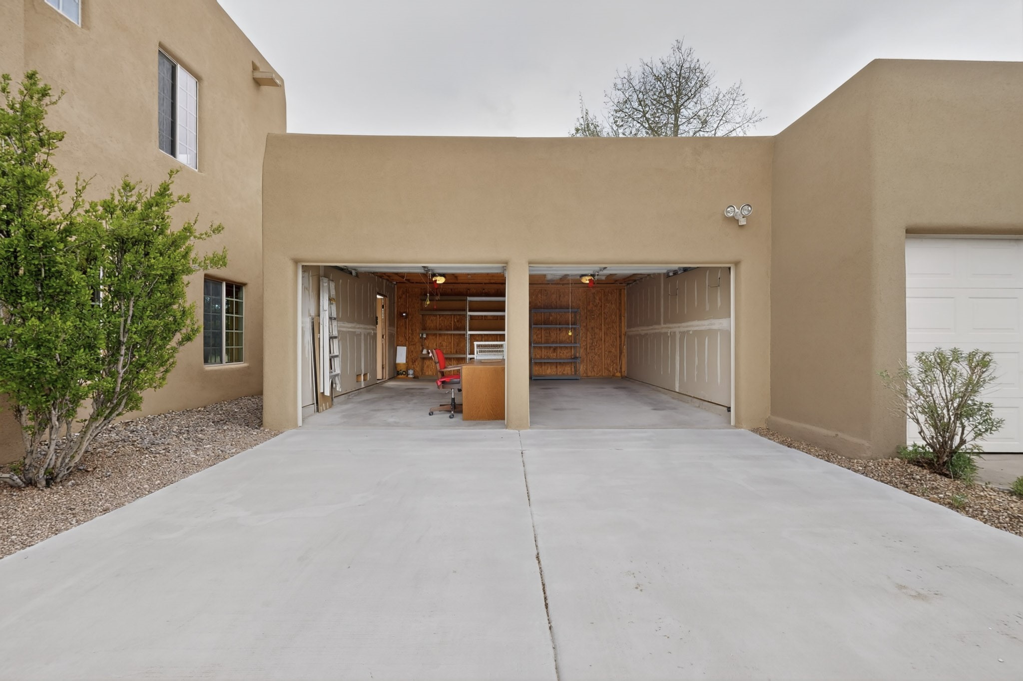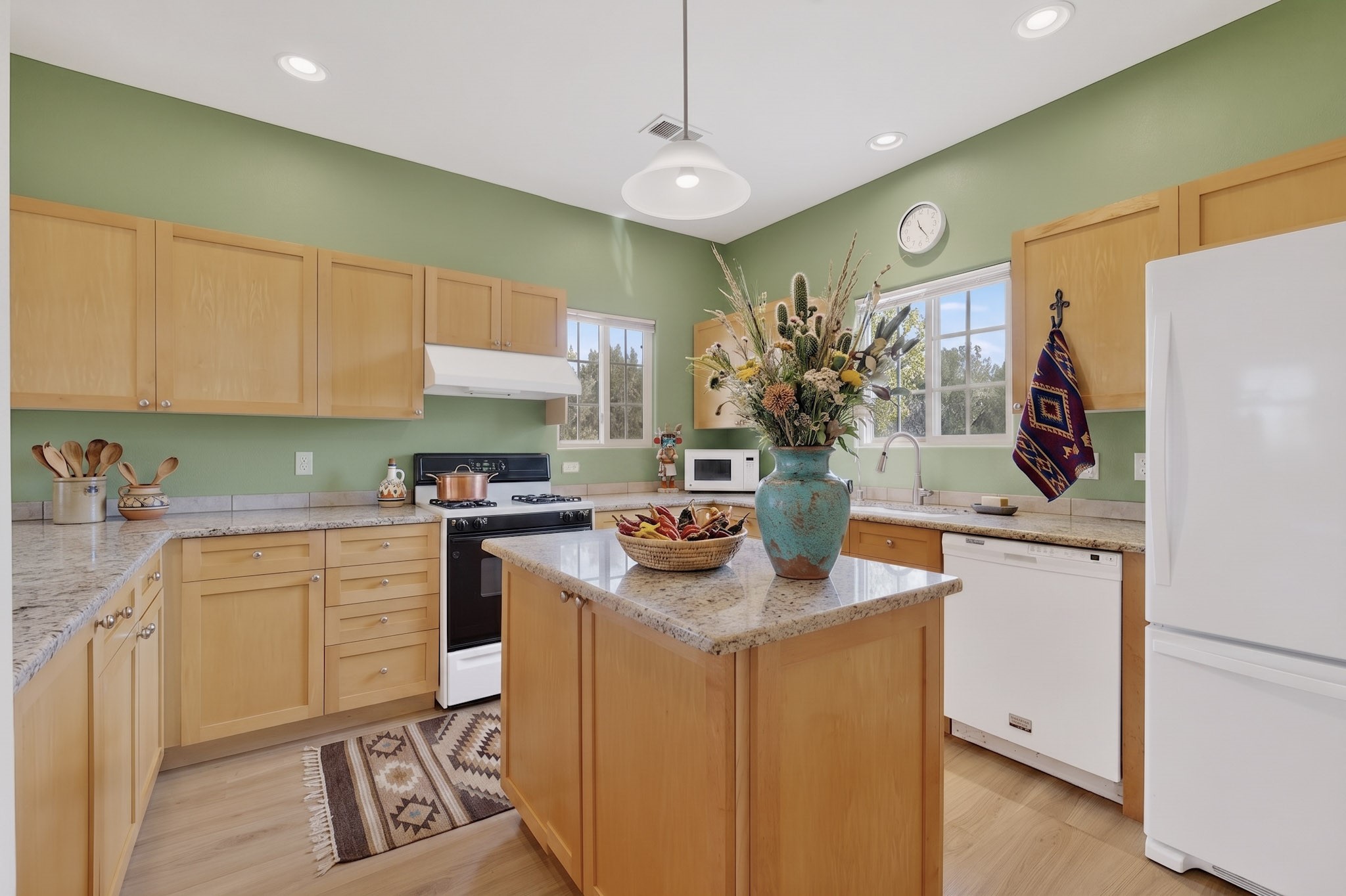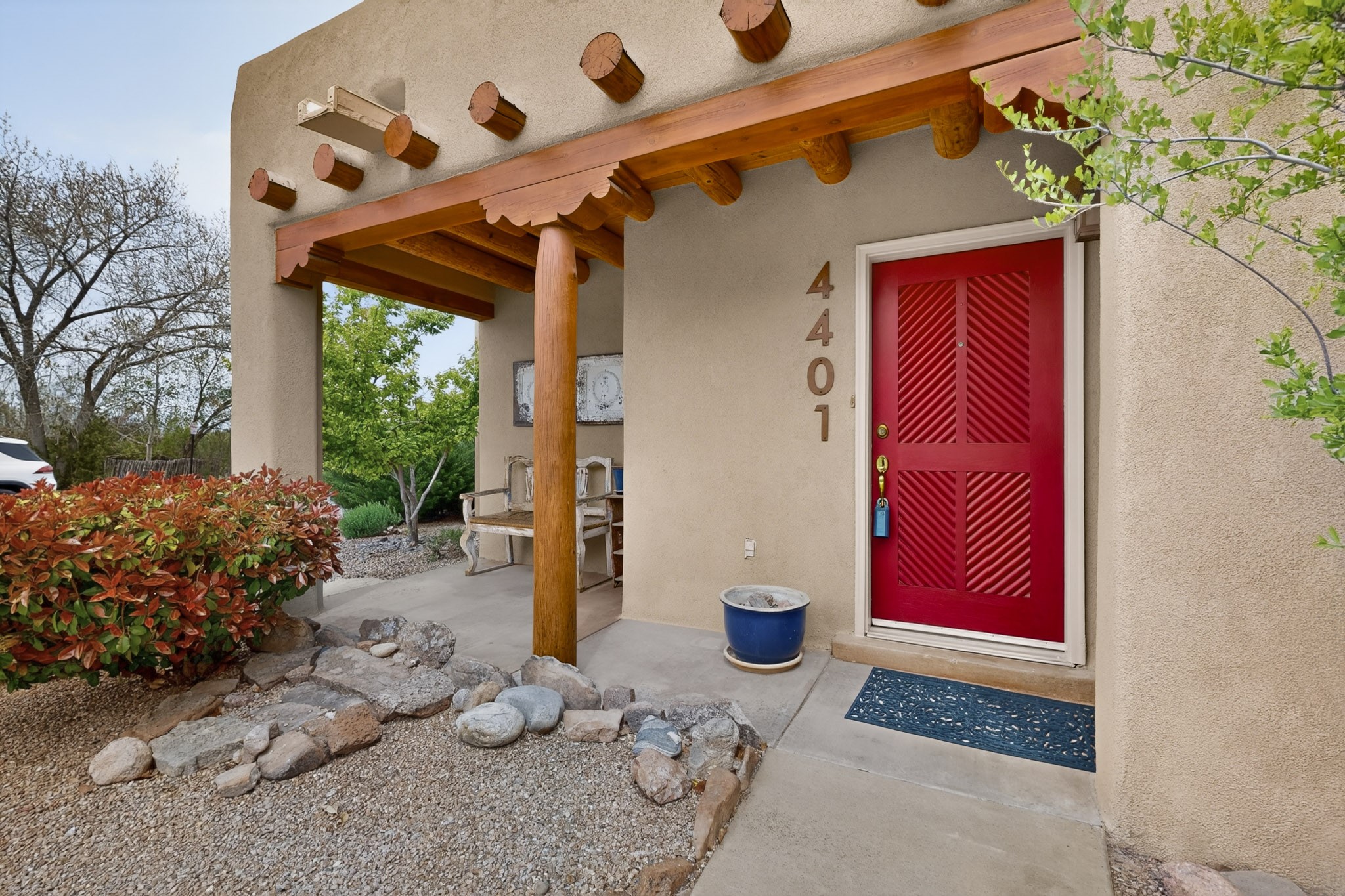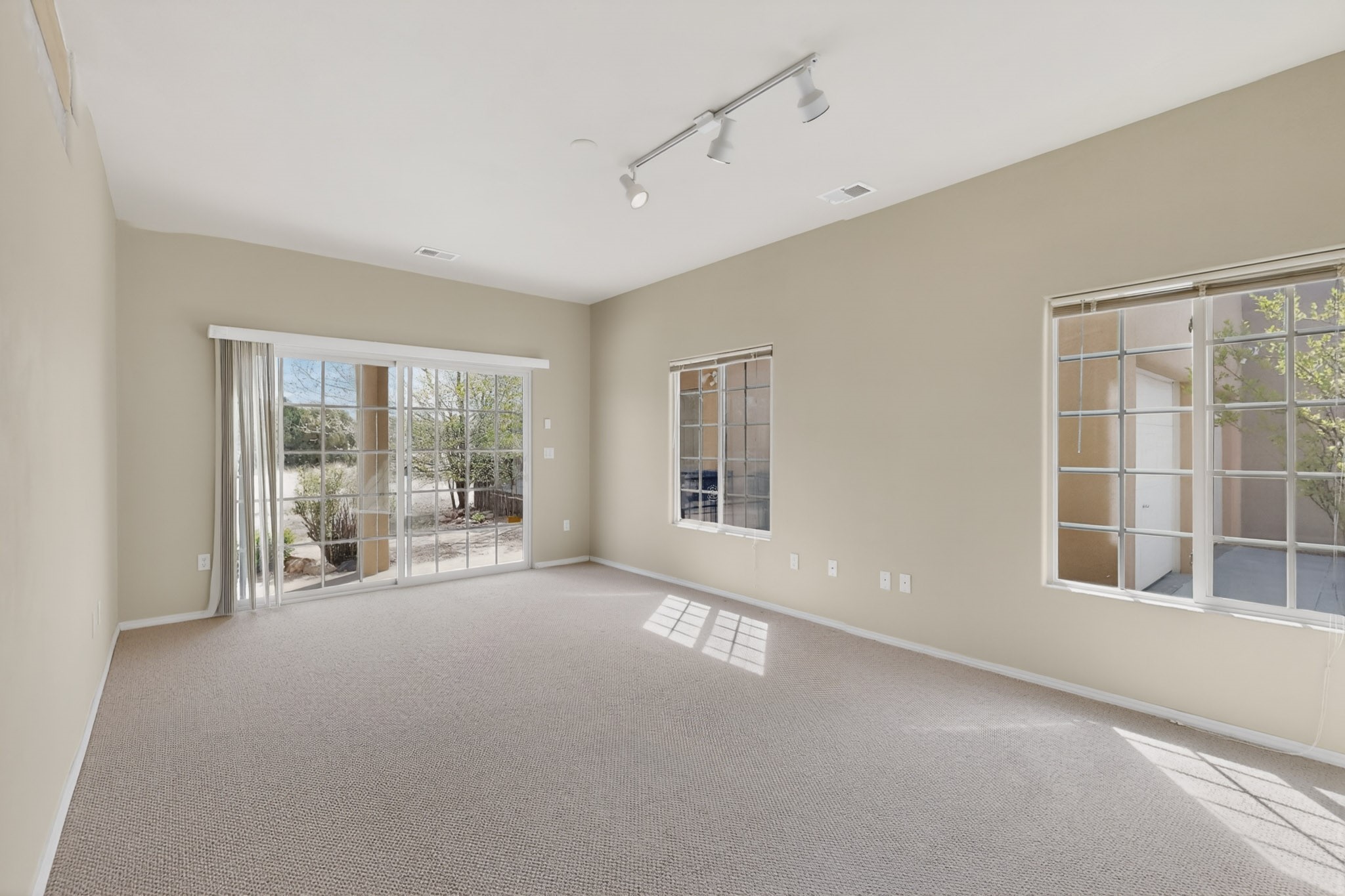 Private, spacious, Nava Ade Gem with Mountain Views! Tucked away at the end of a quiet cul-de-sac & backing to some open space, this home provides tons of privacy, & access to Santa Fe's trail system. With appx 2,024 square feet of well-designed living space, this 3-bedroom + office (or 4th bedroom), 3-bathroom residence offers both flexibility & comfort. Step inside to a light-filled, two-story home to the living room featuring soaring ceiling with vigas & a two-sided gas (gas stub out has never been used-was added when home was built) & wood-burning fireplace shared w/ the dining area. The open-concept kitchen is ideal for entertaining, w/ granite countertops, an island, ample cabinetry, a pantry, & a water purification system at the sink. A standout feature is the versatile downstairs large office space--complete w/ a custom door & separate entrance from the kitchen & exterior--perfect for a studio, guest room, workout area, playroom, or 4th bedroom. Spacious primary suite w/ mountain views include an en-suite bath w/ dual vanity, a separate tub & shower, & a walk-in closet w/ built ins. 2 additional good-sized bedrooms & a full bath complete the upper level. Additional highlights include: Forced air heat w/ refrigerated air, washer/dryer, ceiling fans, track lighting, tile, carpet & NEW laminate flooring (2025) & NEW windows (2018-2019) on east, west, and south sides, NEW stucco (2020), NEW furnace/AC (+/- 2019), NEW refrigerator (+/- 2022), NEW garage door (2025), TPO roof, long driveway providing room for multiple cars, under-stair storage, drip irrigation & more. Enjoy peaceful mornings or evenings in the backyard from 2 patios, & open space offering a natural feel--yet you're only minutes from hospitals, restaurants, shopping, and schools. Nava Ade offers a clubhouse, pool, work-out room, hot tub & more in addition to a trail system connecting to the Arroyo Chamiso Trail, making it ideal for outdoor lovers.