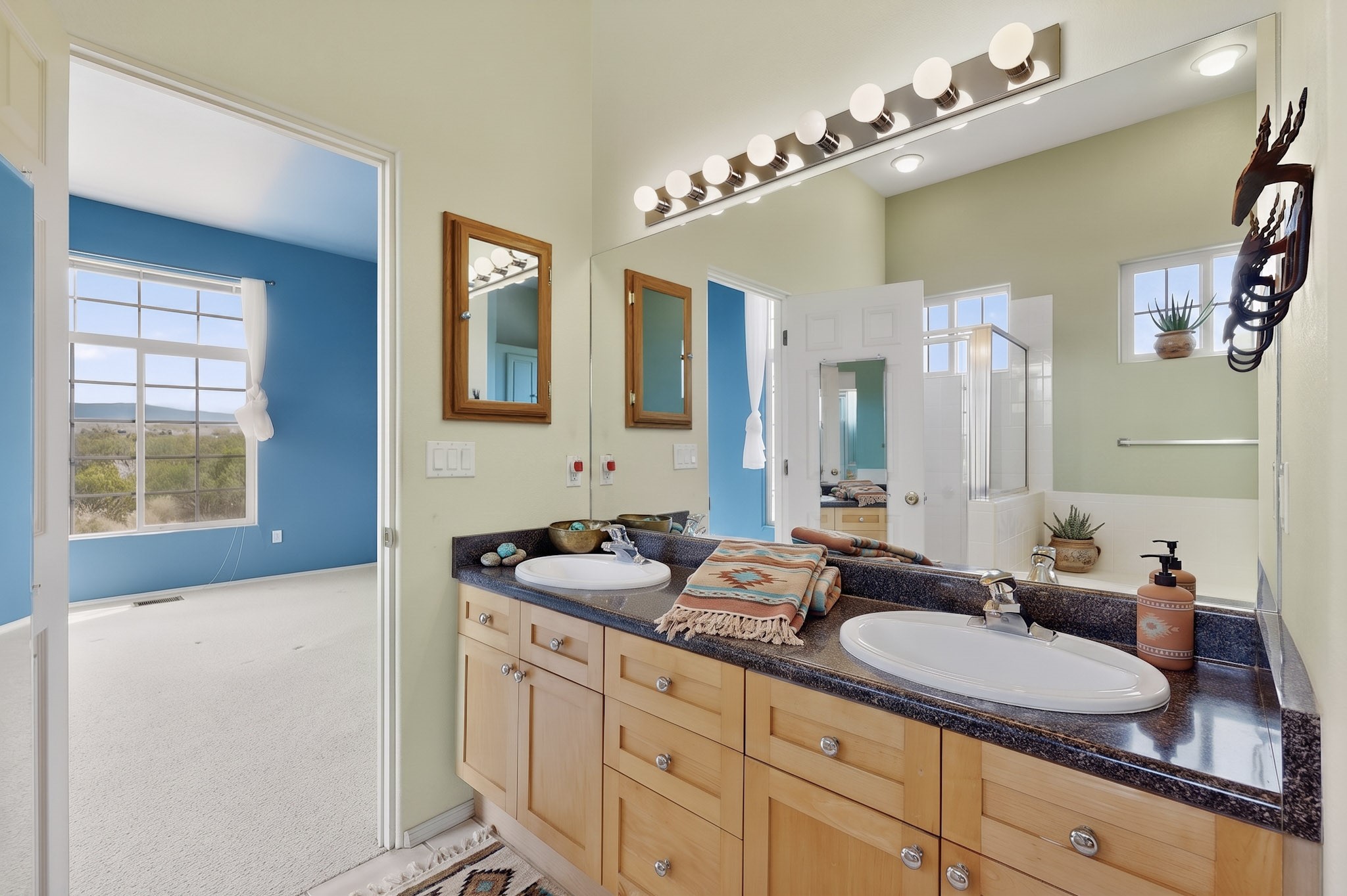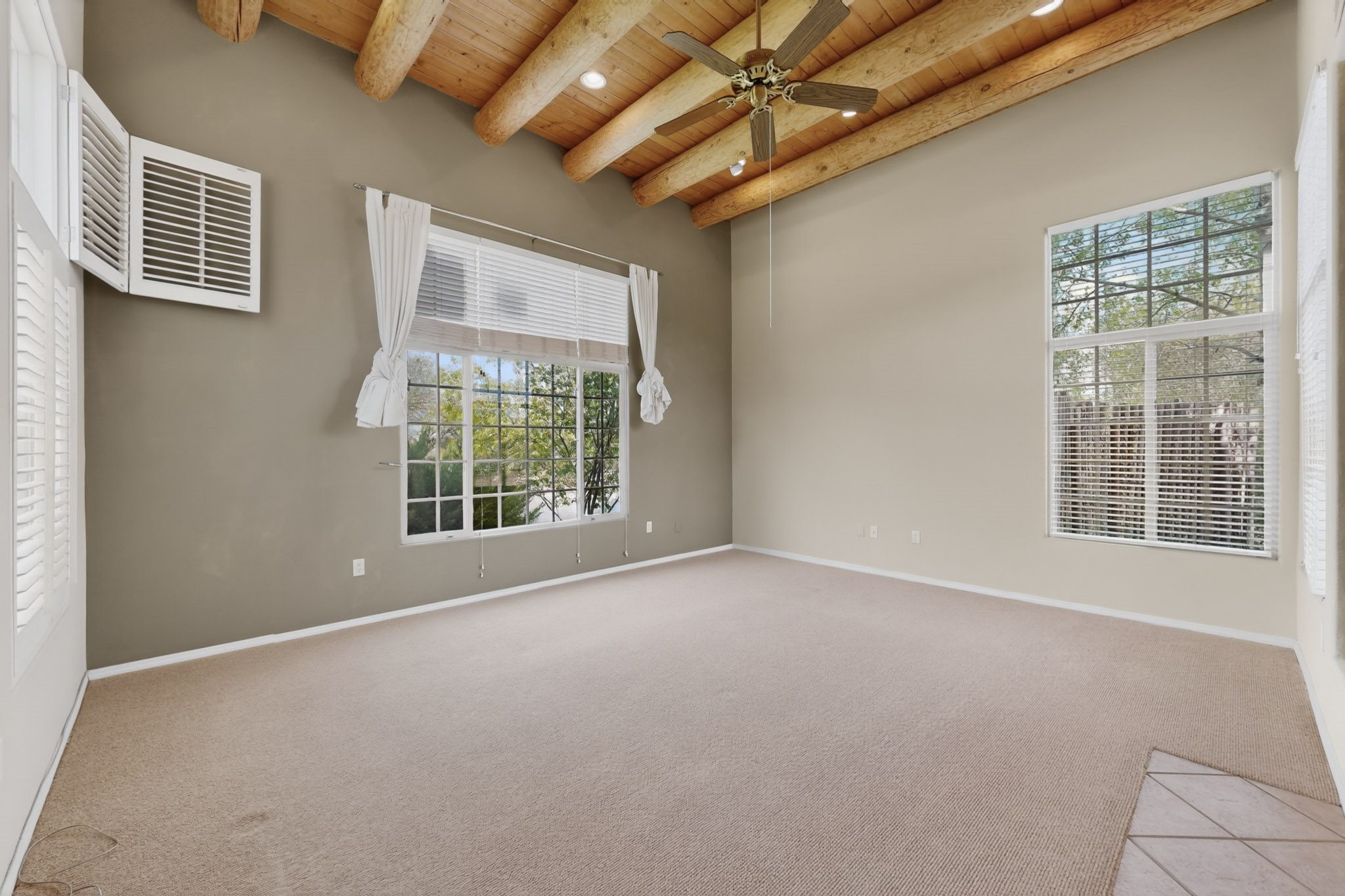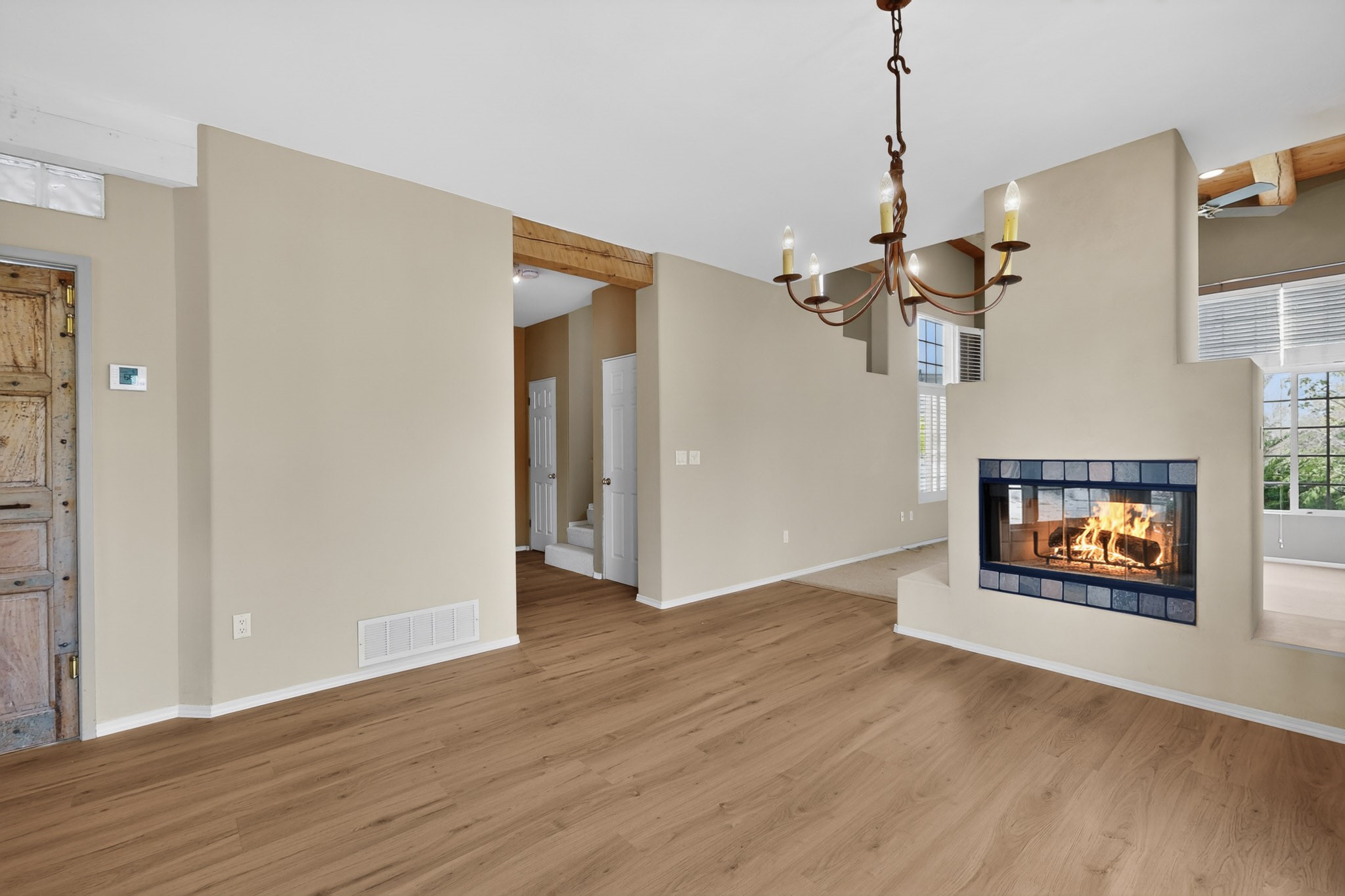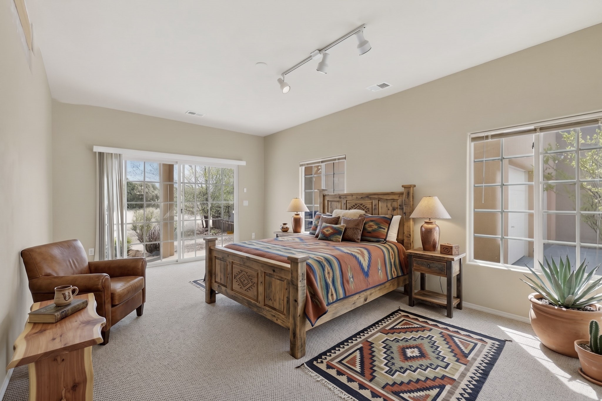 Private, spacious, Nava Ade Gem with Mountain Views! Tucked away at the end of a quiet cul-de-sac & backing to some open space, this home provides tons of privacy, & access to Santa Fe's trail system. With appx 2,024 square feet of well-designed living space, this 3-bedroom + office (or 4th bedroom), 3-bathroom residence offers both flexibility & comfort. Step inside to a light-filled, two-story home to the living room featuring soaring ceiling with vigas & a two-sided gas (gas stub out has never been used-was added when home was built) & wood-burning fireplace shared w/ the dining area. The open-concept kitchen is ideal for entertaining, w/ granite countertops, an island, ample cabinetry, a pantry, & a water purification system at the sink. A standout feature is the versatile downstairs large office space--complete w/ a custom door & separate entrance from the kitchen & exterior--perfect for a studio, guest room, workout area, playroom, or 4th bedroom. Spacious primary suite w/ mountain views include an en-suite bath w/ dual vanity, a separate tub & shower, & a walk-in closet w/ built ins. 2 additional good-sized bedrooms & a full bath complete the upper level. Additional highlights include: Forced air heat w/ refrigerated air, washer/dryer, ceiling fans, track lighting, tile, carpet & NEW laminate flooring (2025) & NEW windows (2018-2019) on east, west, and south sides, NEW stucco (2020), NEW furnace/AC (+/- 2019), NEW refrigerator (+/- 2022), NEW garage door (2025), TPO roof, long driveway providing room for multiple cars, under-stair storage, drip irrigation & more. Enjoy peaceful mornings or evenings in the backyard from 2 patios, & open space offering a natural feel--yet you're only minutes from hospitals, restaurants, shopping, and schools. Nava Ade offers a clubhouse, pool, work-out room, hot tub & more in addition to a trail system connecting to the Arroyo Chamiso Trail, making it ideal for outdoor lovers.