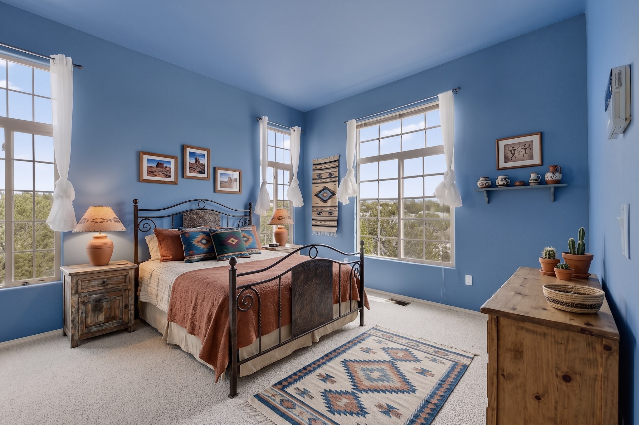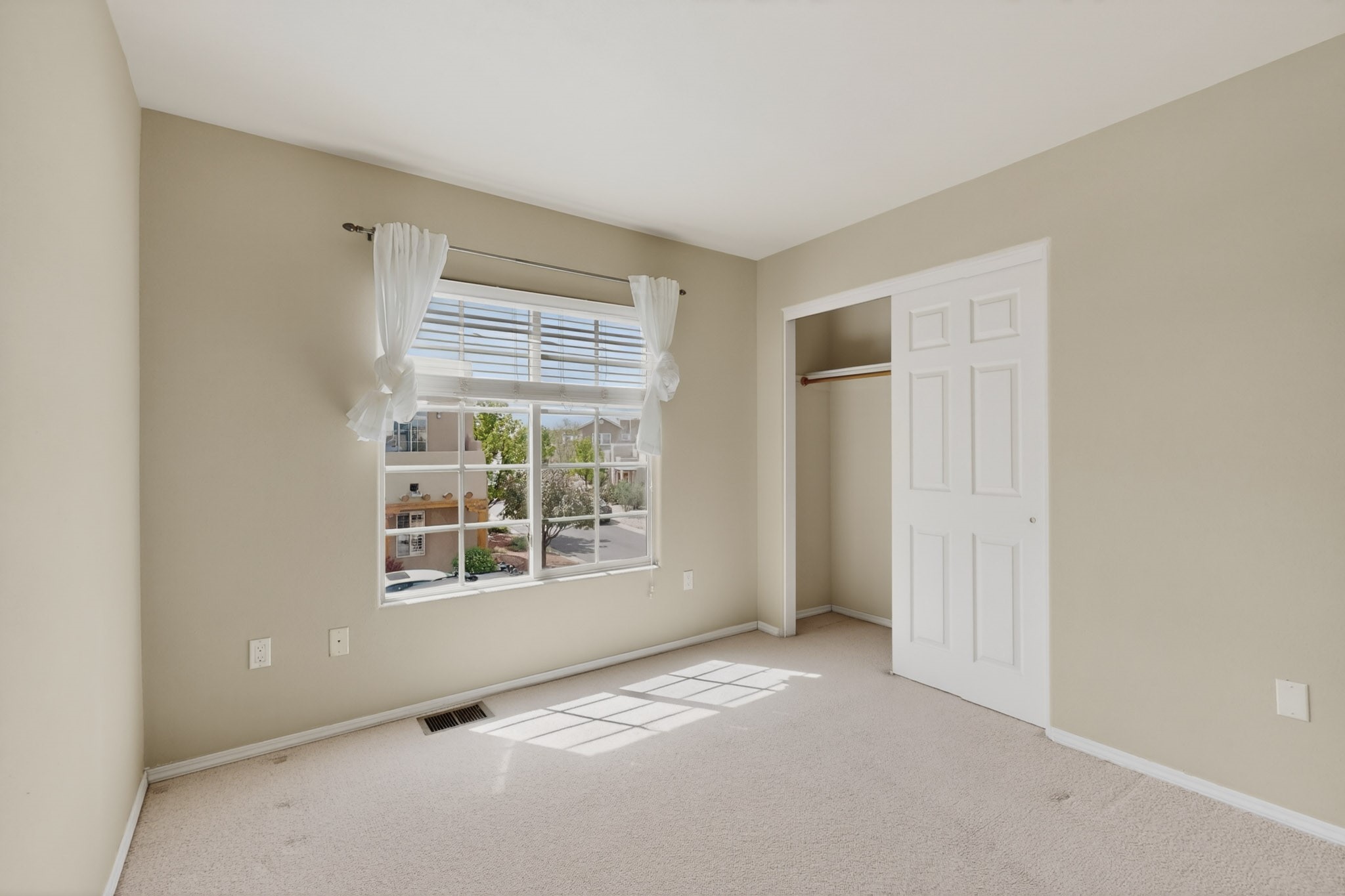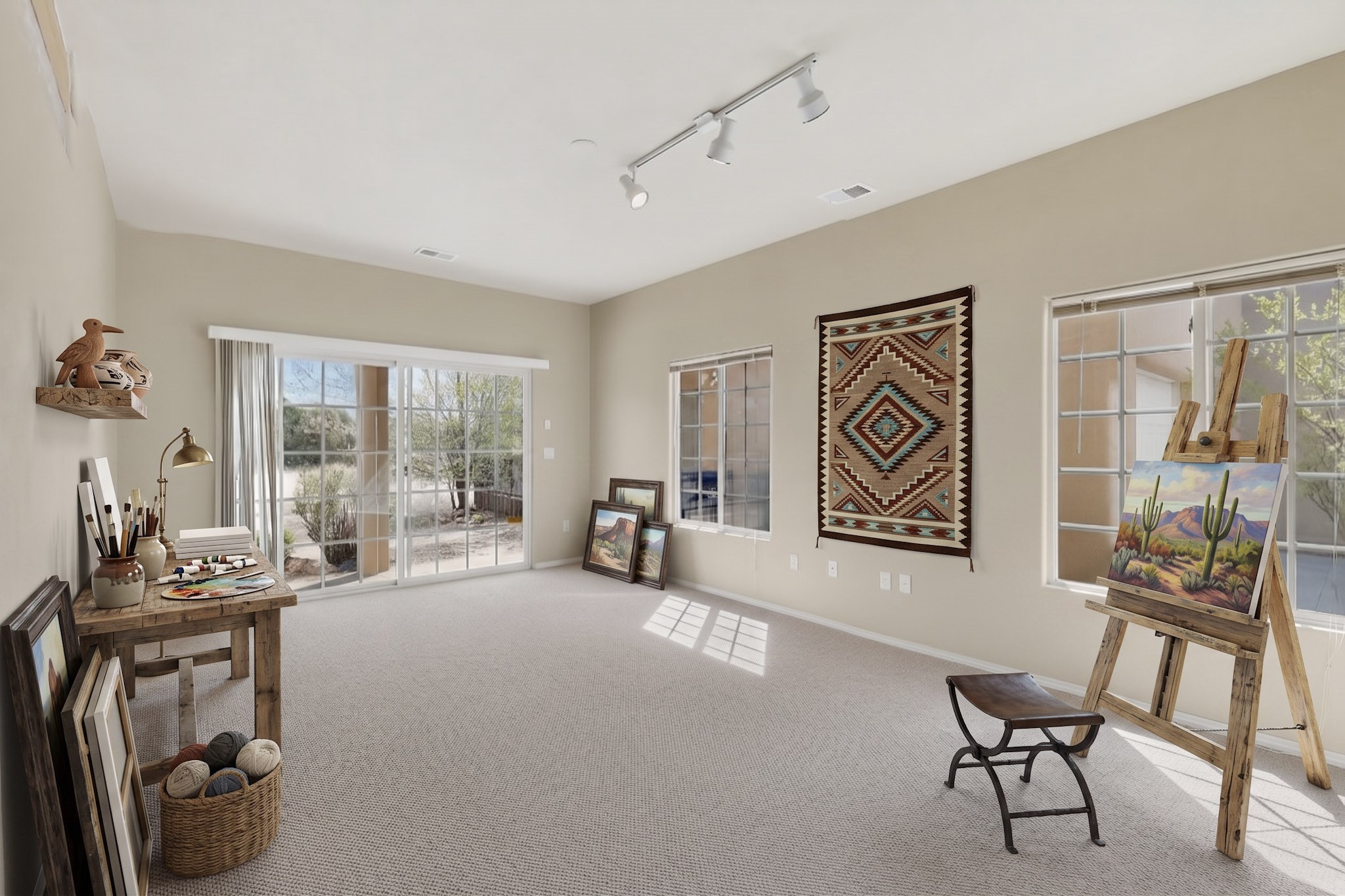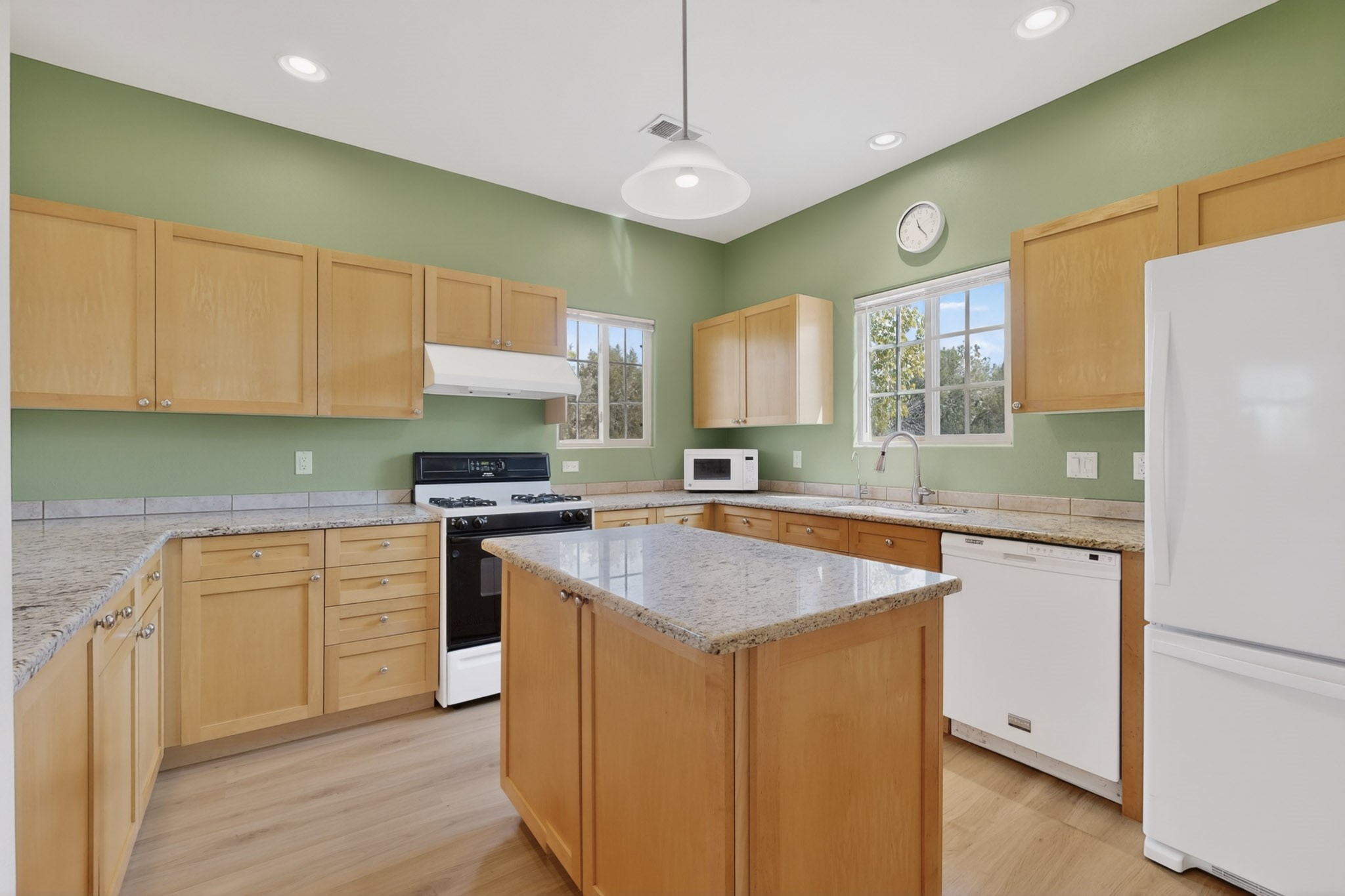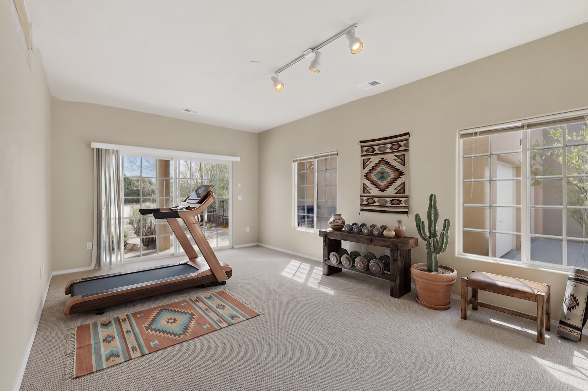 Private, spacious, Nava Ade Gem with Mountain Views! Tucked away at the end of a quiet cul-de-sac & backing to some open space, this home provides tons of privacy, & access to Santa Fe's trail system. With appx 2,024 square feet of well-designed living space, this 3-bedroom + office (or 4th bedroom), 3-bathroom residence offers both flexibility & comfort. Step inside to a light-filled, two-story home to the living room featuring soaring ceiling with vigas & a two-sided gas (gas stub out has never been used-was added when home was built) & wood-burning fireplace shared w/ the dining area. The open-concept kitchen is ideal for entertaining, w/ granite countertops, an island, ample cabinetry, a pantry, & a water purification system at the sink. A standout feature is the versatile downstairs large office space--complete w/ a custom door & separate entrance from the kitchen & exterior--perfect for a studio, guest room, workout area, playroom, or 4th bedroom. Spacious primary suite w/ mountain views include an en-suite bath w/ dual vanity, a separate tub & shower, & a walk-in closet w/ built ins. 2 additional good-sized bedrooms & a full bath complete the upper level. Additional highlights include: Forced air heat w/ refrigerated air, washer/dryer, ceiling fans, track lighting, tile, carpet & NEW laminate flooring (2025) & NEW windows (2018-2019) on east, west, and south sides, NEW stucco (2020), NEW furnace/AC (+/- 2019), NEW refrigerator (+/- 2022), NEW garage door (2025), TPO roof, long driveway providing room for multiple cars, under-stair storage, drip irrigation & more. Enjoy peaceful mornings or evenings in the backyard from 2 patios, & open space offering a natural feel--yet you're only minutes from hospitals, restaurants, shopping, and schools. Nava Ade offers a clubhouse, pool, work-out room, hot tub & more in addition to a trail system connecting to the Arroyo Chamiso Trail, making it ideal for outdoor lovers.