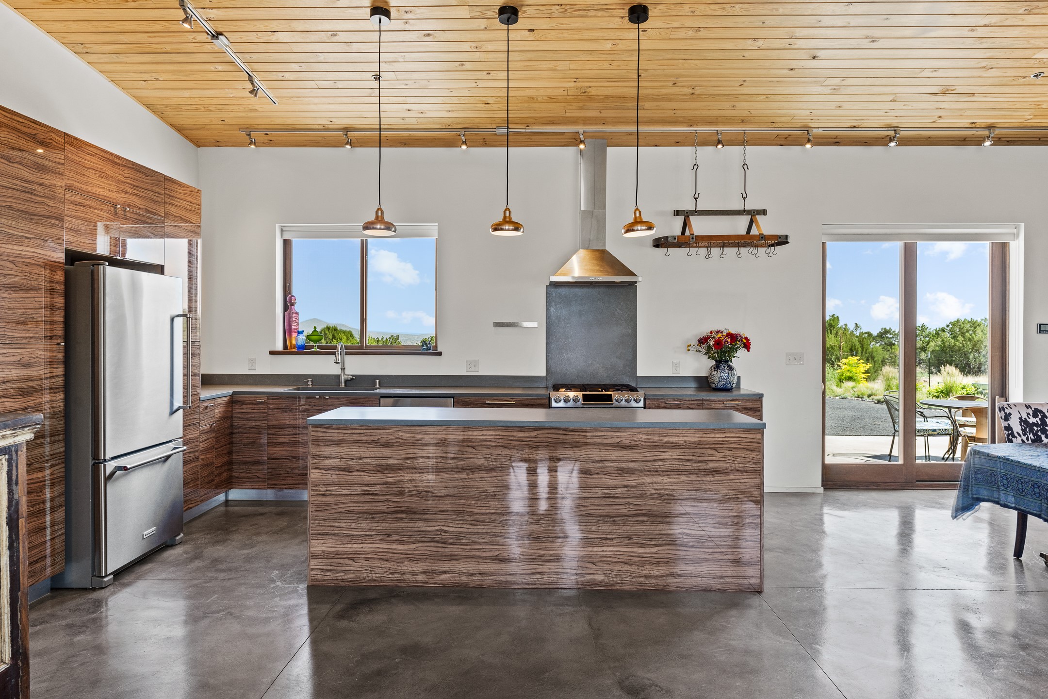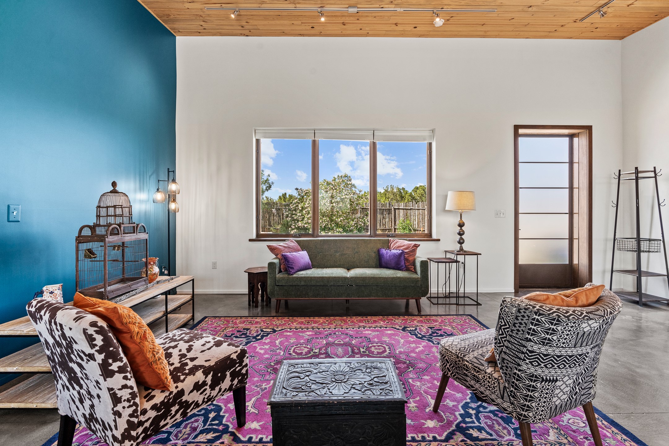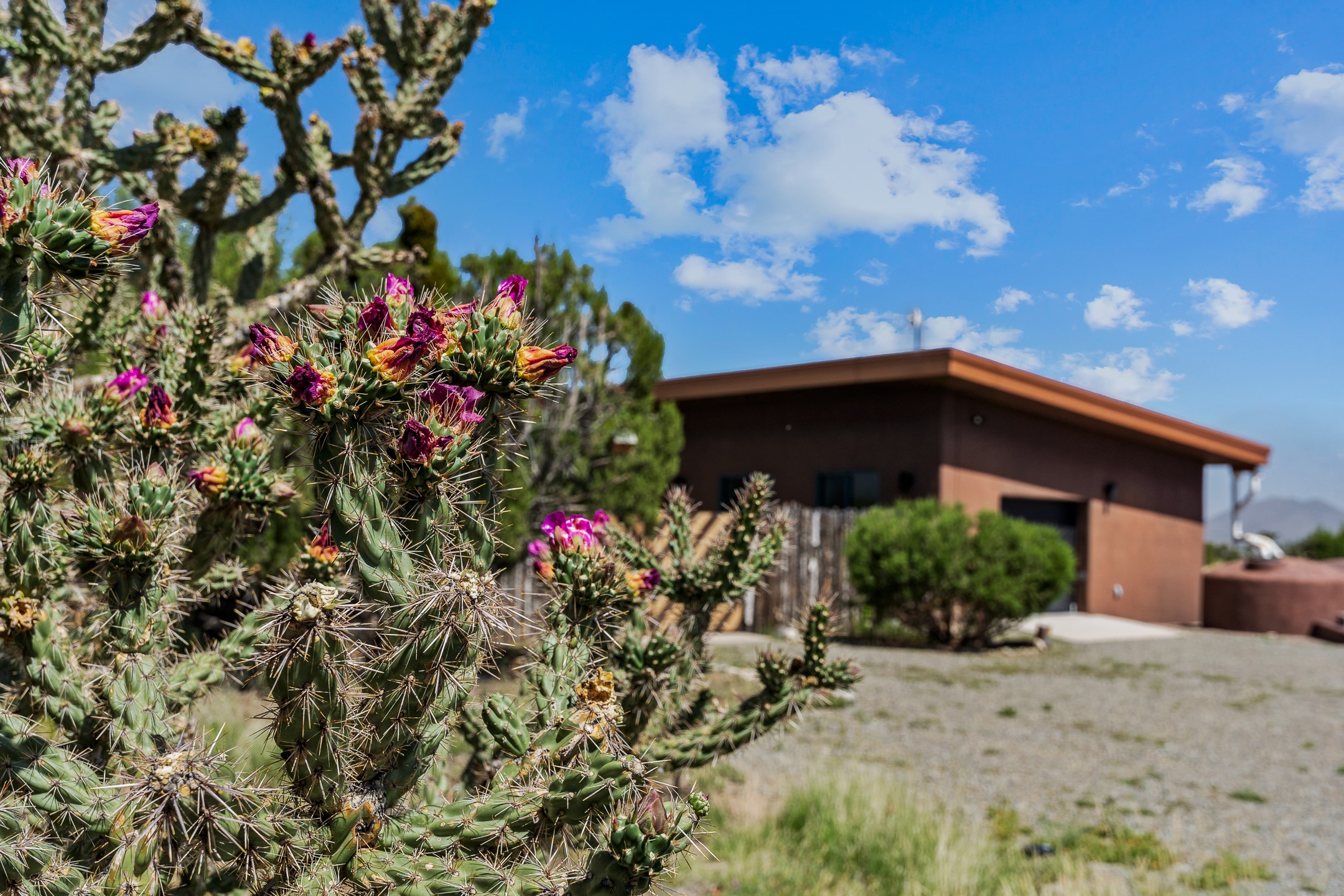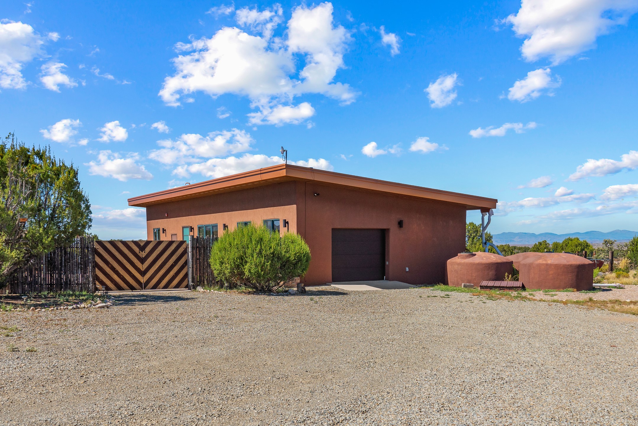Modern home on forty acre lot with adjacent vacant forty acre lot with driveway and well. For those who want space to stretch out, or multiple lots to build a family compound on, this offering has it. Stretching 9/10's of a mile at its longest, there's room for on the property hiking, riding, or mountain biking. The home features contemporary style in a high-desert setting with breathtaking mountain views in the foothills of the Ortiz Mountains. Fully self-reliant, it boasts utilities provided by solar, wind, and water catchment, with public electric lines available on the street.The adjacent lot has a drilled and cased well, a roughed in driveway, and more of the spectacular views the area is known for. The location offers easy access to town on well-maintained roads within a gated community with no HOA. Located just 21 miles from Santa Fe and near dining and entertainment options in Madrid and Cerrillos, this offering provides perfect retreat with room for future development and a move in ready home. 49 Blue Agave (MLS 202502557) and 65 Grenfell Ranch (202600867) are also offered for sale separately.