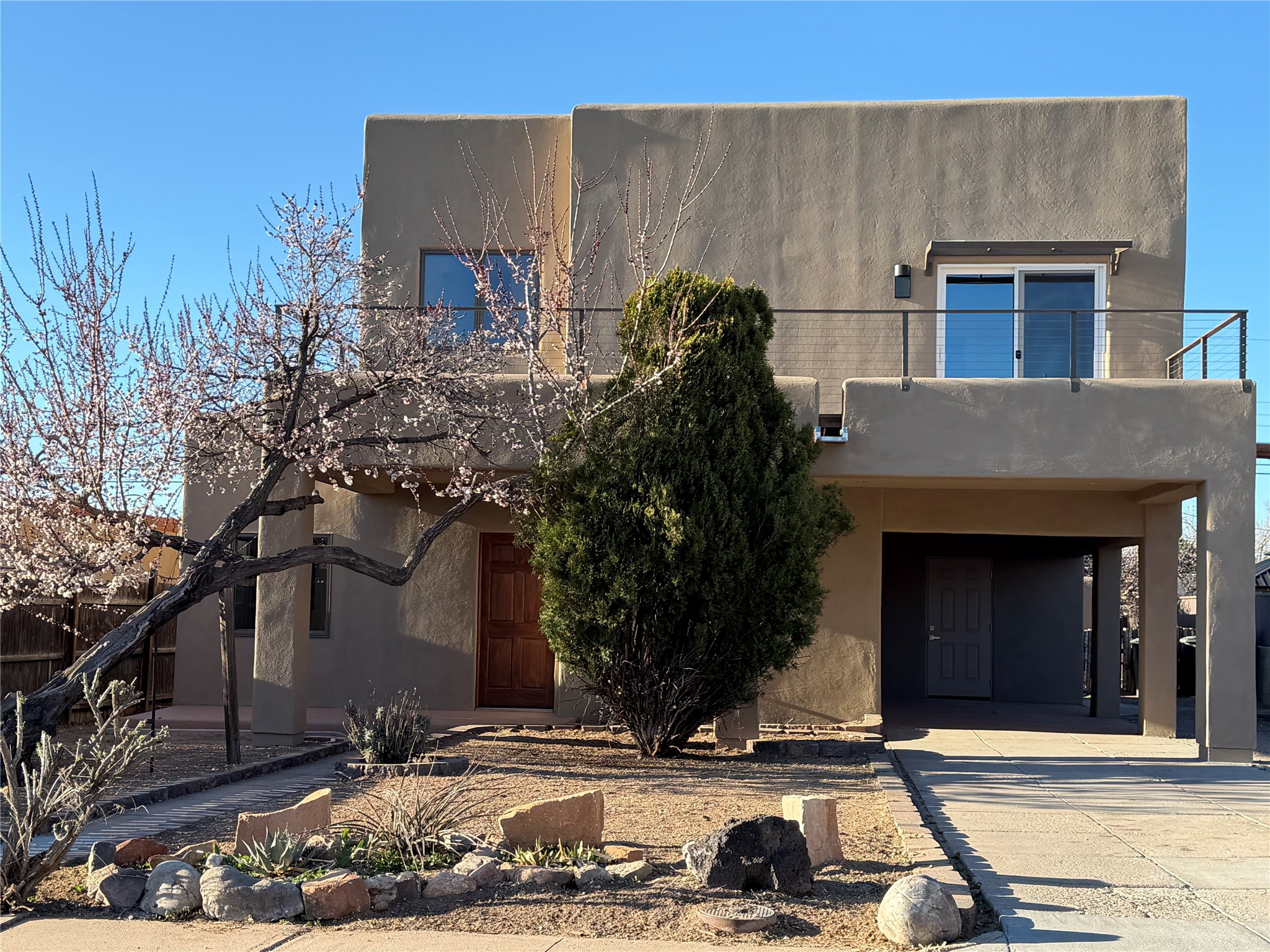 Beautifully remodeled and ideally located in the sought-after Casa Alegre neighborhood, this exceptional Santa Fe property offers style, comfort, and versatility. Featuring a duplex layout, the property includes a spacious main residence and a private guest house--perfect for multi-generational living, hosting guests, or generating rental income. The main home offers 2,046+/- square feet with three bedrooms and two bathrooms, thoughtfully updated with quality finishes such as solid wood doors, Andersen windows, and elegant engineered wood flooring. Multiple mini-split systems provide efficient heating and cooling for year-round comfort. A charming guest house provides an additional 572+/- square feet with one bedroom and one bathroom, creating a private retreat for visitors or tenants. Located in the heart of midtown Santa Fe, the home is just minutes from the lively Santa Fe Railyard and approximately ten minutes from the historic Santa Fe Plaza. Enjoy easy access to Santa Fe's renowned restaurants, galleries, shopping, and cultural destinations.