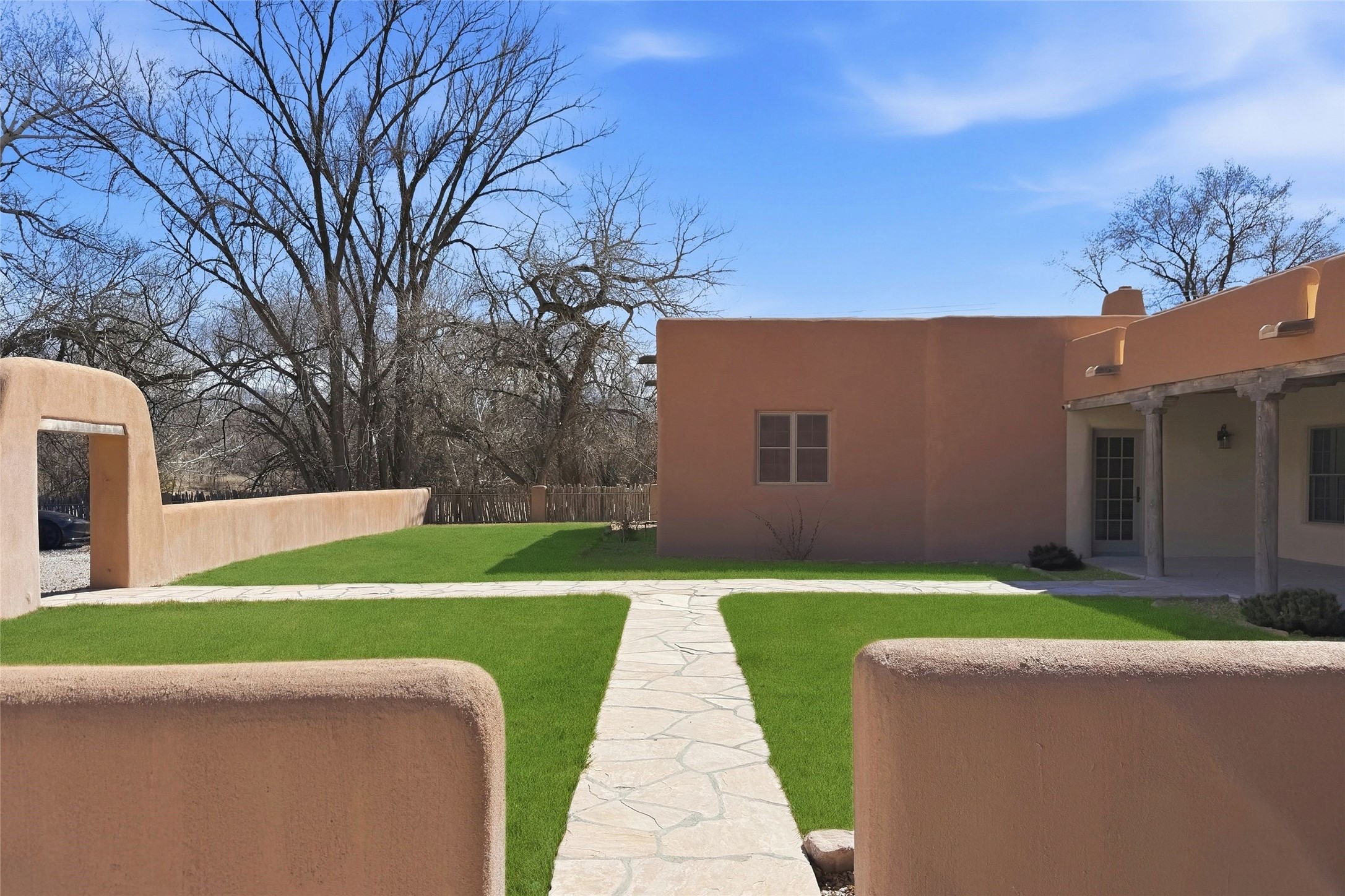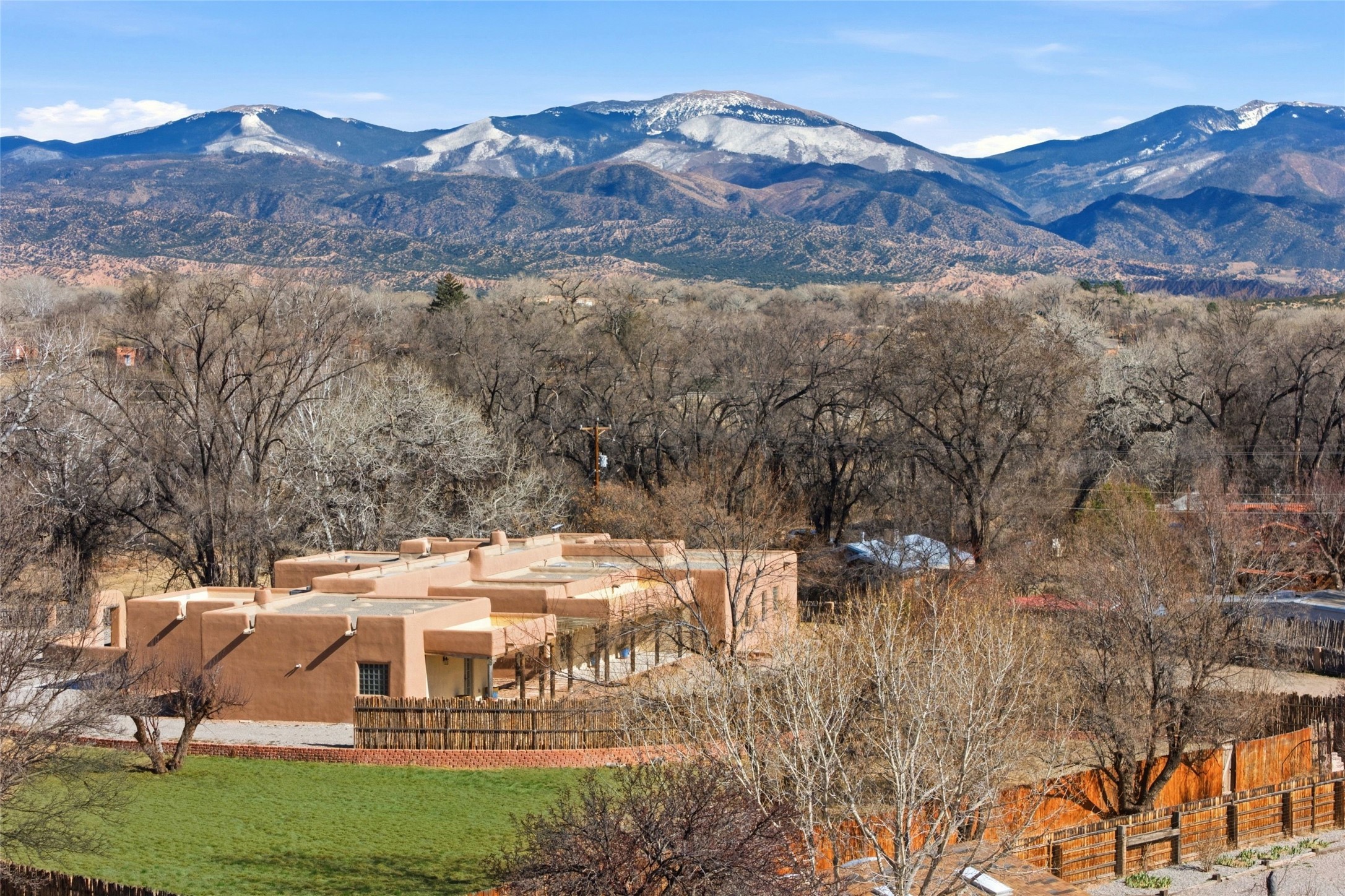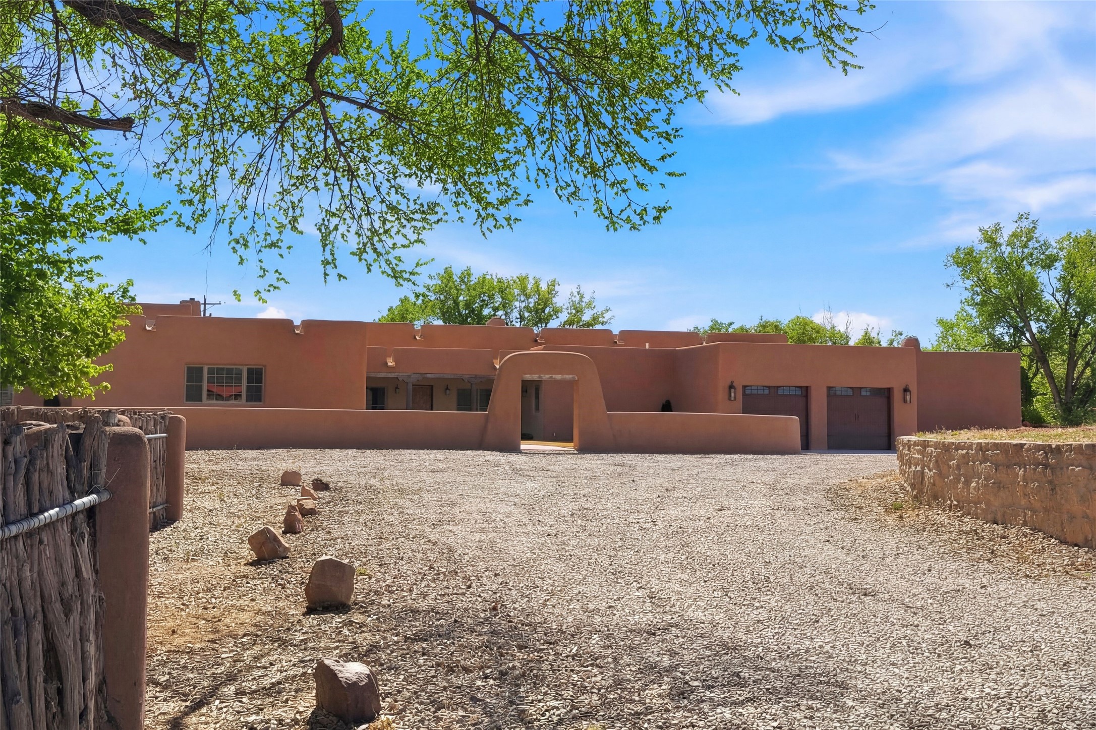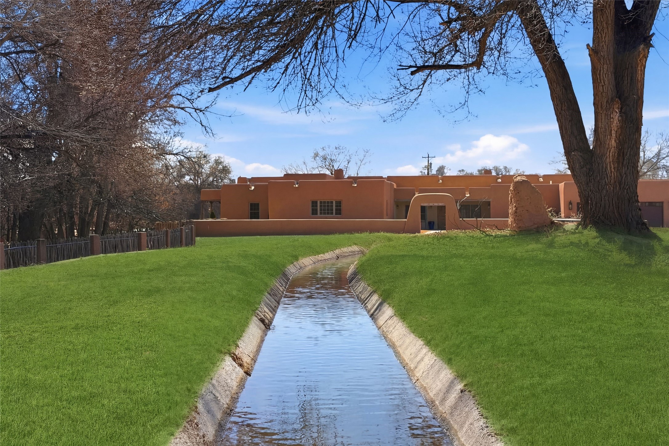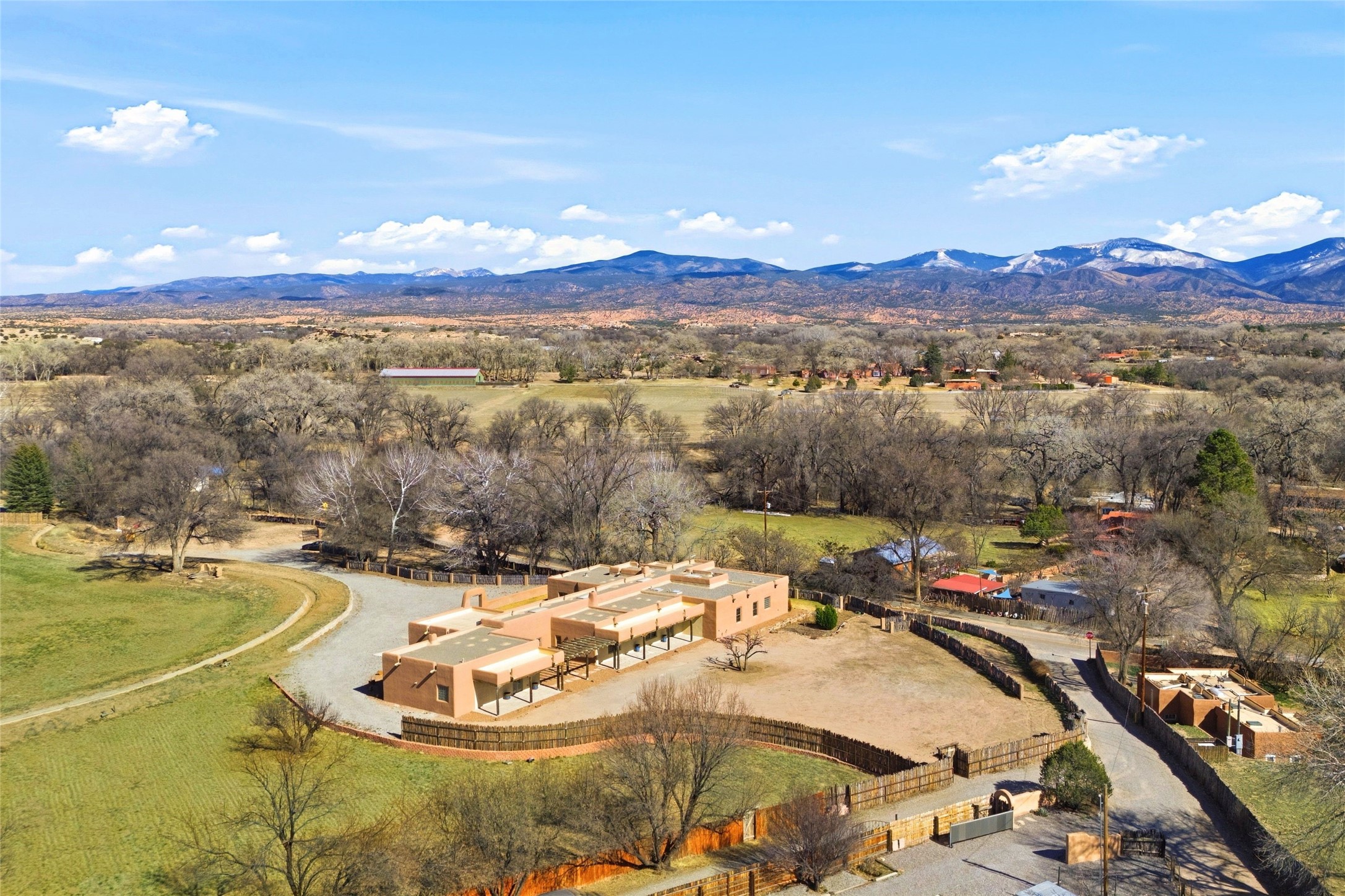 Nestled in the lush and picturesque Nambe Valley, this extraordinary traditional hacienda adobe estate offers a rare blend of historic charm, authentic Southwestern craftsmanship, and modern comfort--all just a scenic 20-minute drive from the heart of Santa Fe Plaza. This Parade of Homes Heritage Award-winning property (2024) is set on three contiguous lots totaling approximately 4 acres, the property provides exceptional privacy and flexibility.The residence features 3 bedrooms and 5 bathrooms. Beautifully integrated with thoughtful modern upgrades, it showcases authentic Southwestern architecture, including aged beams, reclaimed lumber ceilings, and diamond plaster walls, creating a warm and timeless aesthetic throughout.Designed for comfort and efficiency, the home includes: 9-zone radiant heating and cooling, HVAC system controllable via smartphone, R-40 insulated walls, Foam and TPO roofing, Anderson windows, Three kitchen sinks, ideal for entertaining or multi-cook kitchens.Additional highlights include a private well with 3 acre-feet of water rights and access to a historic acequia, enhancing both the property's functionality and connection to the region's heritage.Surrounded by the natural beauty of Northern New Mexico, this one-of-a-kind estate offers a rare opportunity to own a piece of living history while enjoying modern luxury in one of the area's most serene valley settings. Please note, some photos have been digitally enhanced.