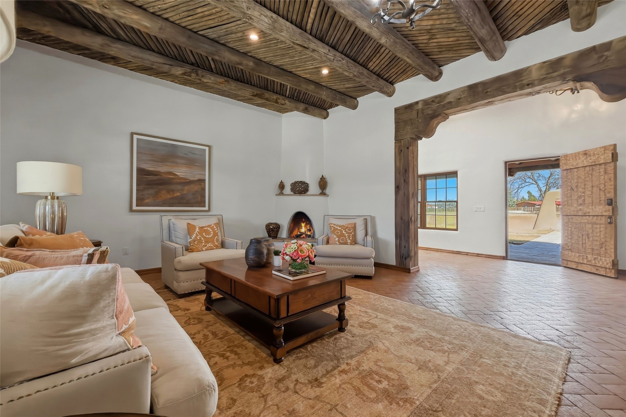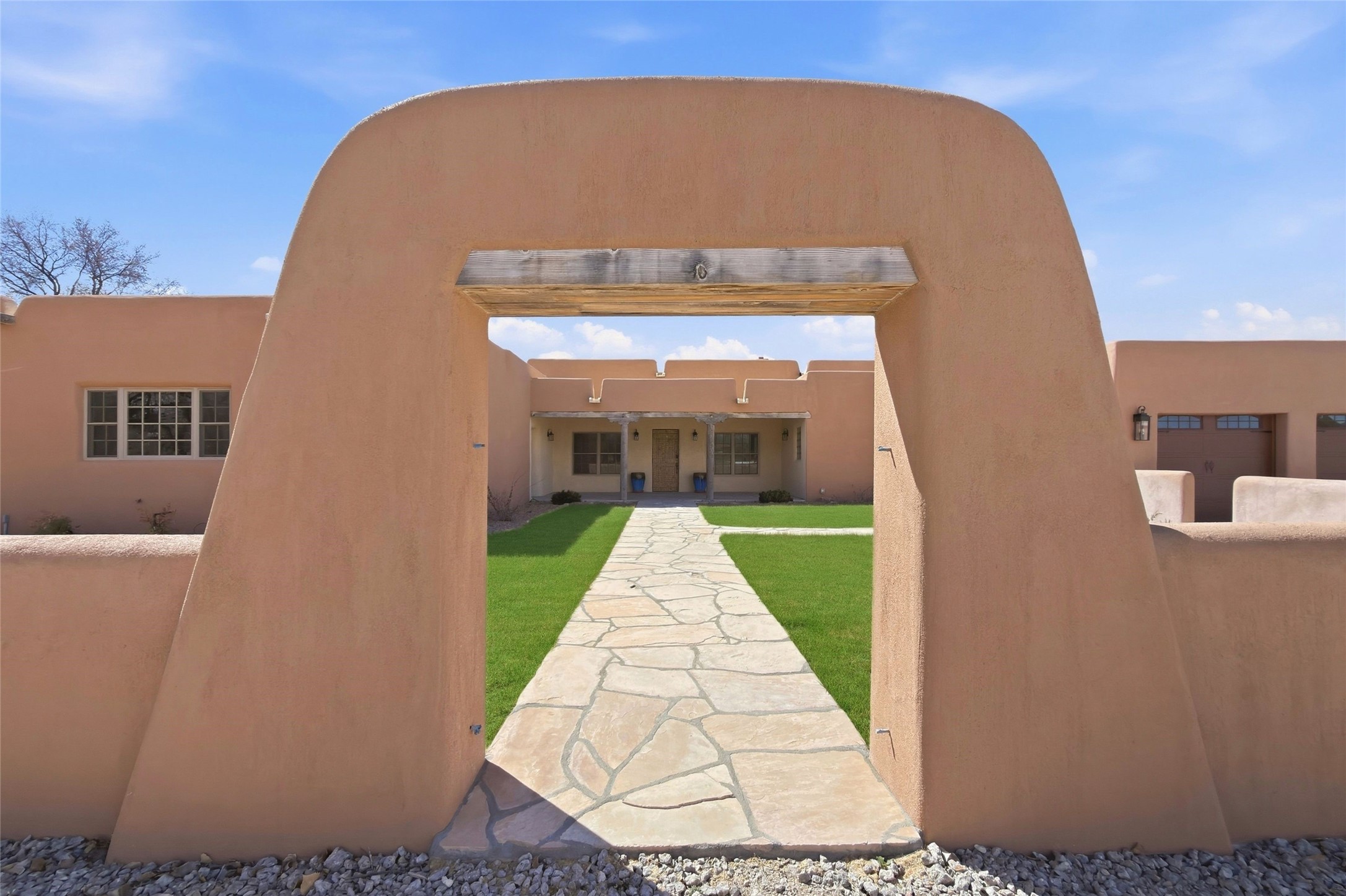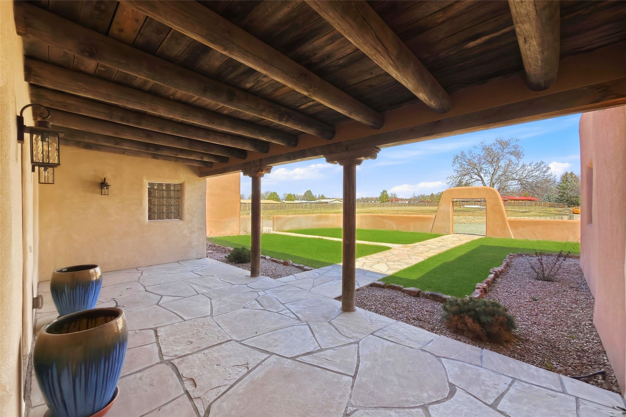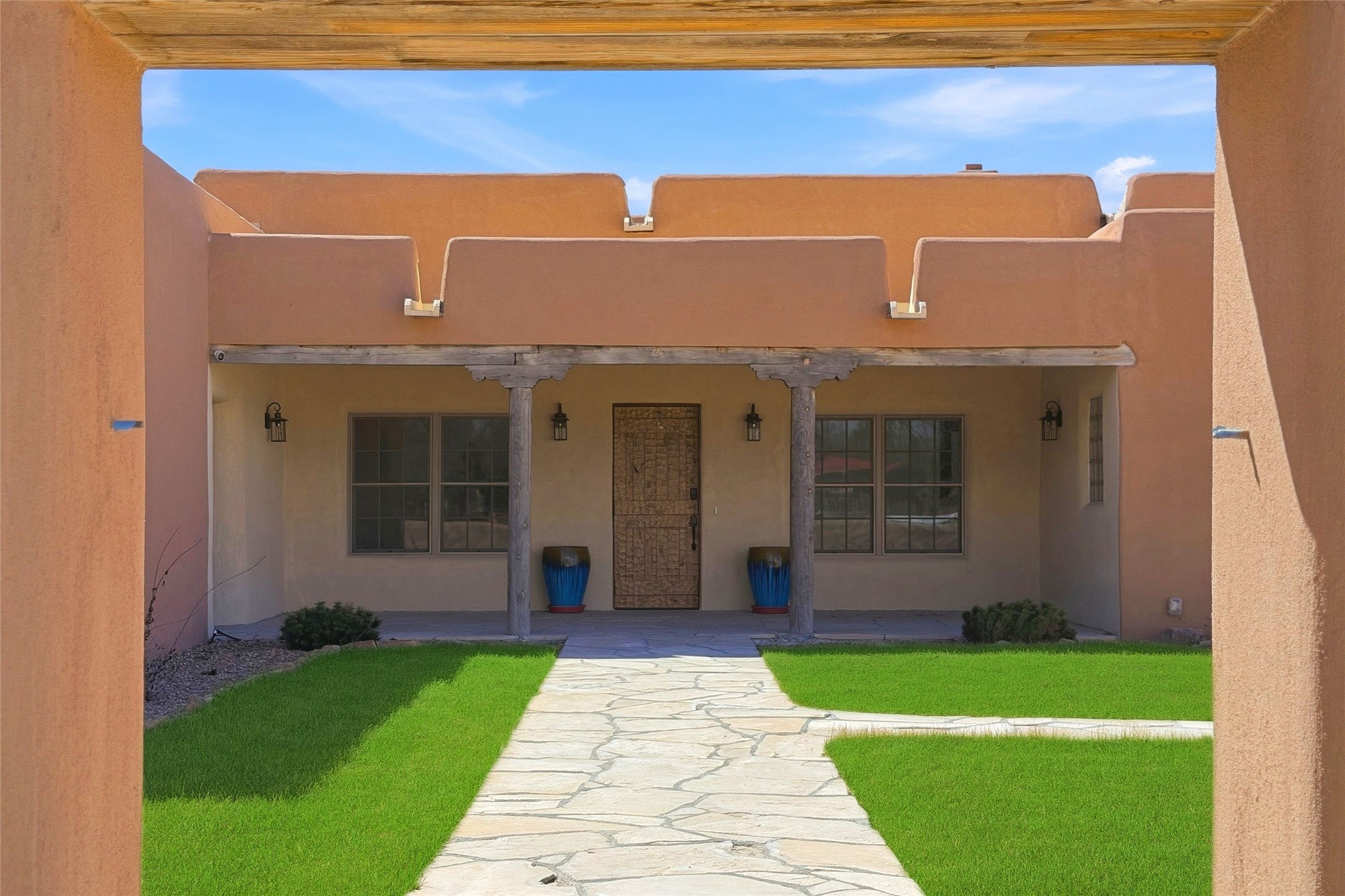 Nestled in the lush and picturesque Nambe Valley, this extraordinary traditional hacienda adobe estate offers a rare blend of historic charm, authentic Southwestern craftsmanship, and modern comfort--all just a scenic 20-minute drive from the heart of Santa Fe Plaza. This Parade of Homes Heritage Award-winning property (2024) is set on three contiguous lots totaling approximately 4 acres, the property provides exceptional privacy and flexibility.The residence features 3 bedrooms and 5 bathrooms. Beautifully integrated with thoughtful modern upgrades, it showcases authentic Southwestern architecture, including aged beams, reclaimed lumber ceilings, and diamond plaster walls, creating a warm and timeless aesthetic throughout.Designed for comfort and efficiency, the home includes: 9-zone radiant heating and cooling, HVAC system controllable via smartphone, R-40 insulated walls, Foam and TPO roofing, Anderson windows, Three kitchen sinks, ideal for entertaining or multi-cook kitchens.Additional highlights include a private well with 3 acre-feet of water rights and access to a historic acequia, enhancing both the property's functionality and connection to the region's heritage.Surrounded by the natural beauty of Northern New Mexico, this one-of-a-kind estate offers a rare opportunity to own a piece of living history while enjoying modern luxury in one of the area's most serene valley settings. Please note, some photos have been digitally enhanced.