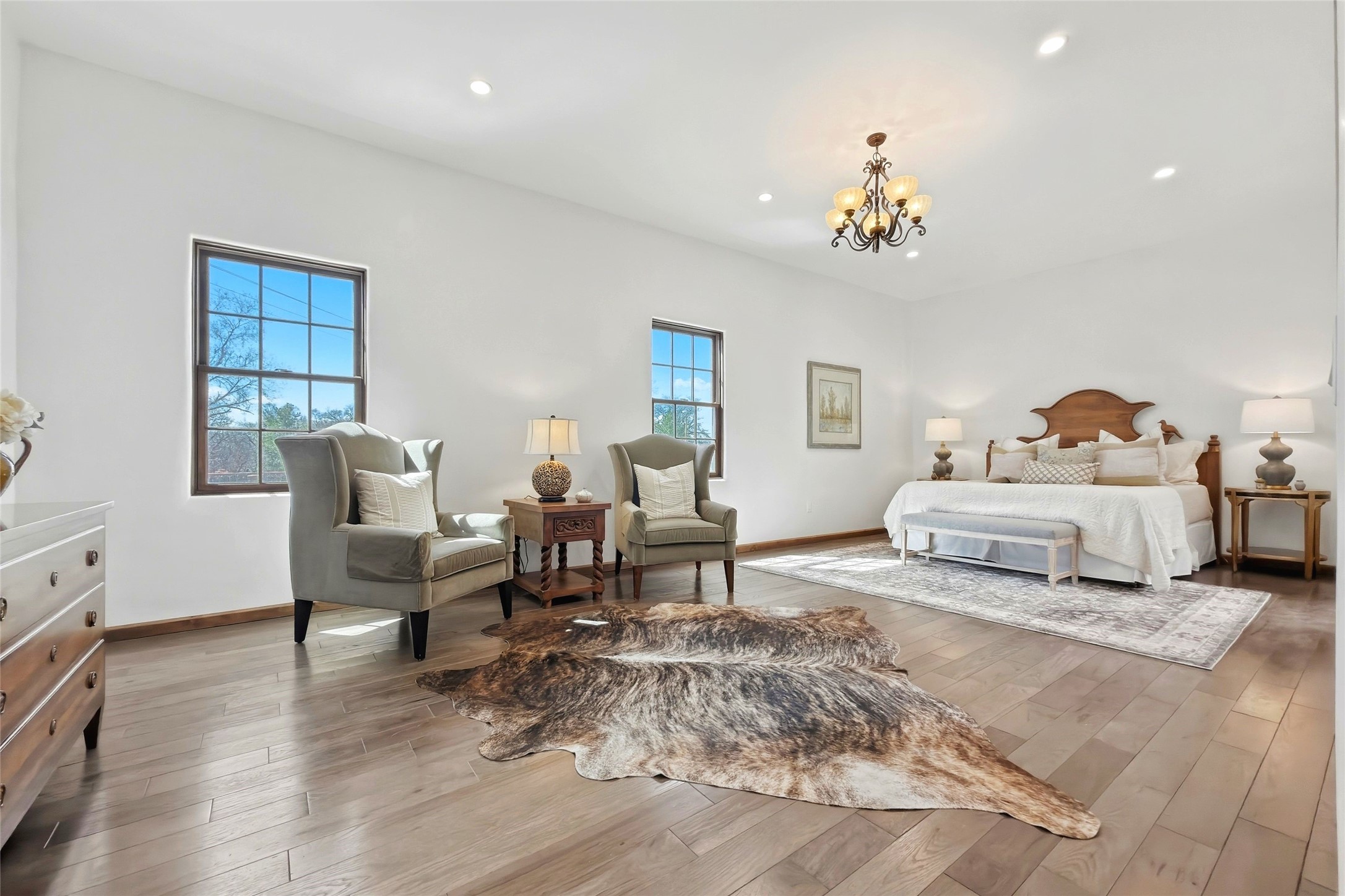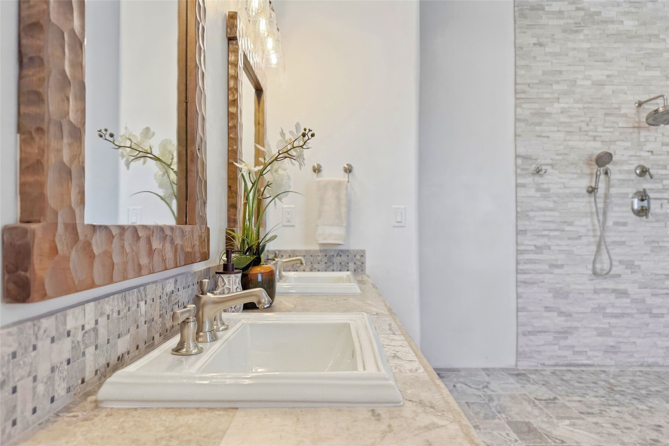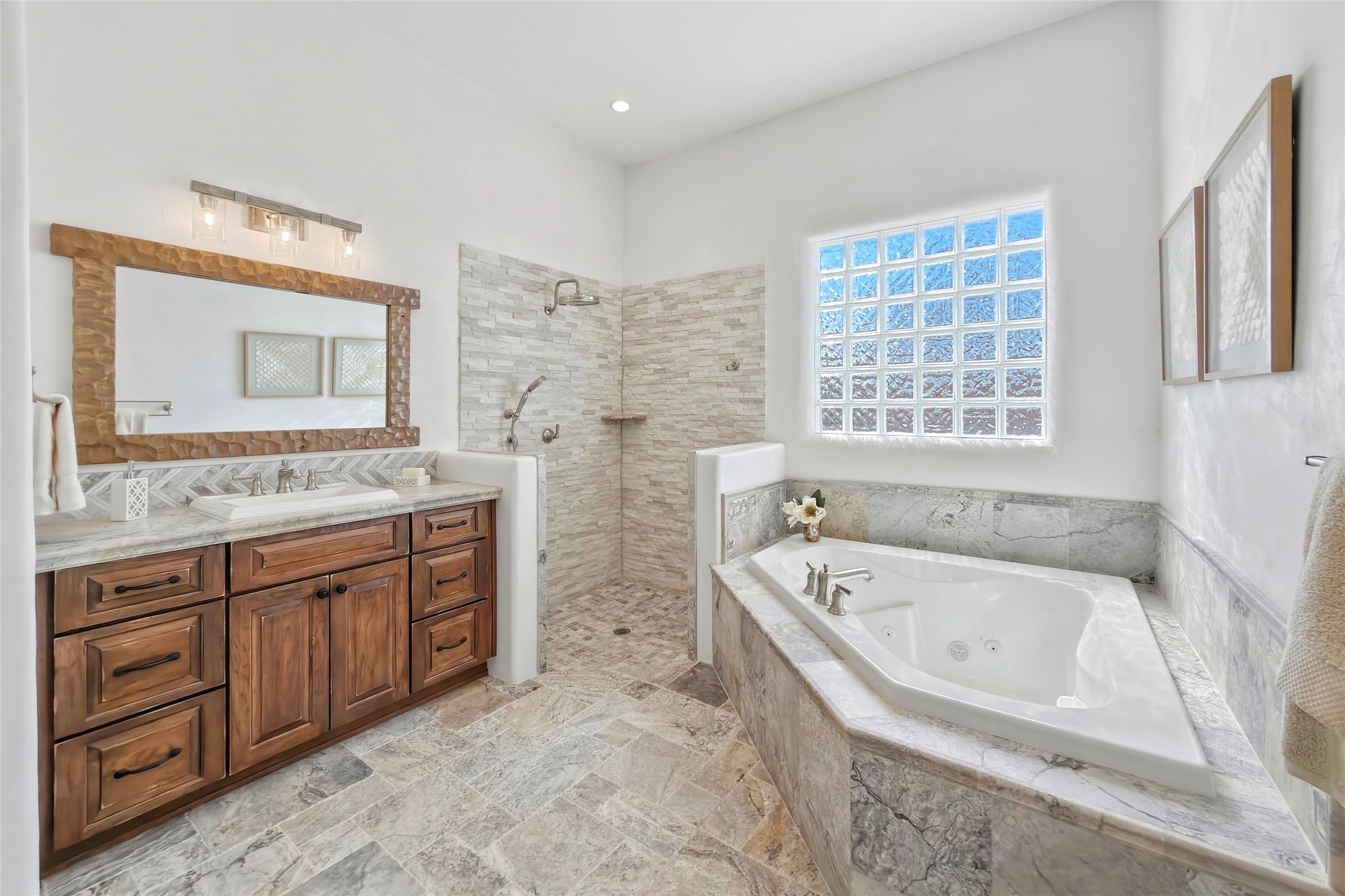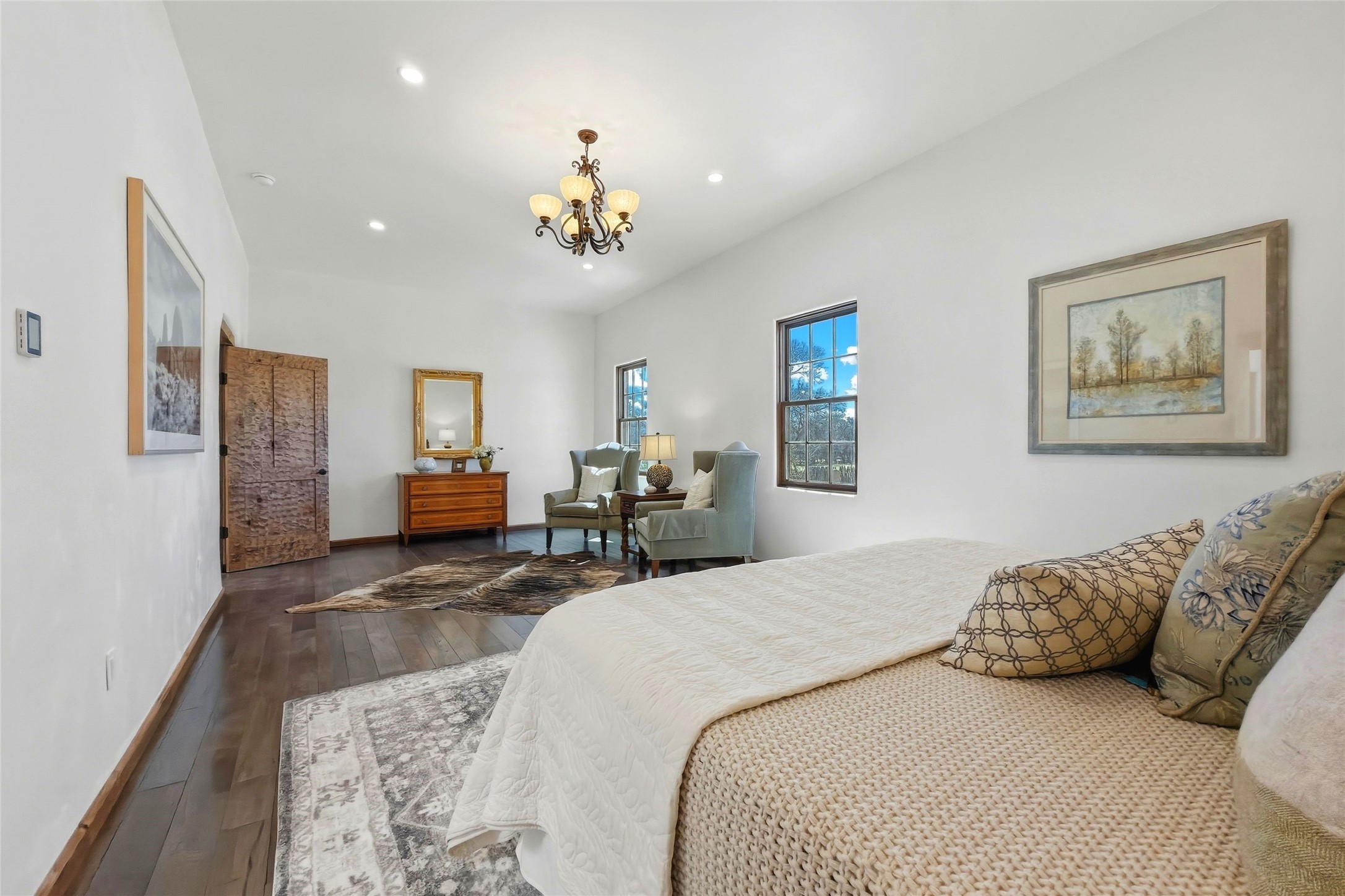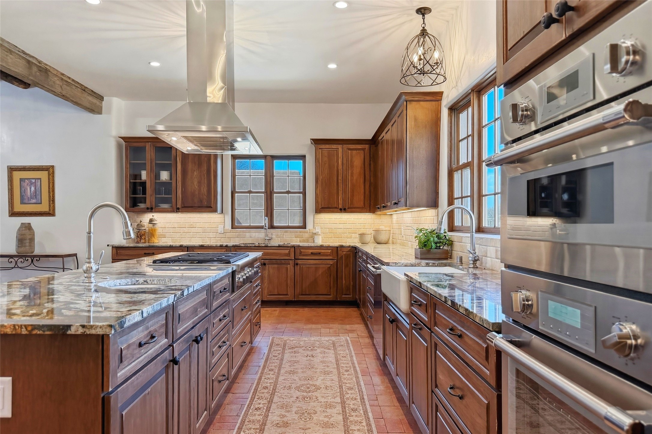 Nestled in the lush and picturesque Nambe Valley, this extraordinary traditional hacienda adobe estate offers a rare blend of historic charm, authentic Southwestern craftsmanship, and modern comfort--all just a scenic 20-minute drive from the heart of Santa Fe Plaza. This Parade of Homes Heritage Award-winning property (2024) is set on three contiguous lots totaling approximately 4 acres, the property provides exceptional privacy and flexibility.The residence features 3 bedrooms and 5 bathrooms. Beautifully integrated with thoughtful modern upgrades, it showcases authentic Southwestern architecture, including aged beams, reclaimed lumber ceilings, and diamond plaster walls, creating a warm and timeless aesthetic throughout.Designed for comfort and efficiency, the home includes: 9-zone radiant heating and cooling, HVAC system controllable via smartphone, R-40 insulated walls, Foam and TPO roofing, Anderson windows, Three kitchen sinks, ideal for entertaining or multi-cook kitchens.Additional highlights include a private well with 3 acre-feet of water rights and access to a historic acequia, enhancing both the property's functionality and connection to the region's heritage.Surrounded by the natural beauty of Northern New Mexico, this one-of-a-kind estate offers a rare opportunity to own a piece of living history while enjoying modern luxury in one of the area's most serene valley settings. Please note, some photos have been digitally enhanced.