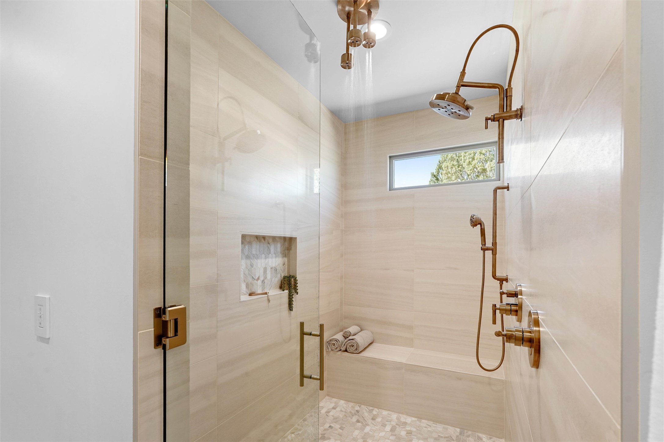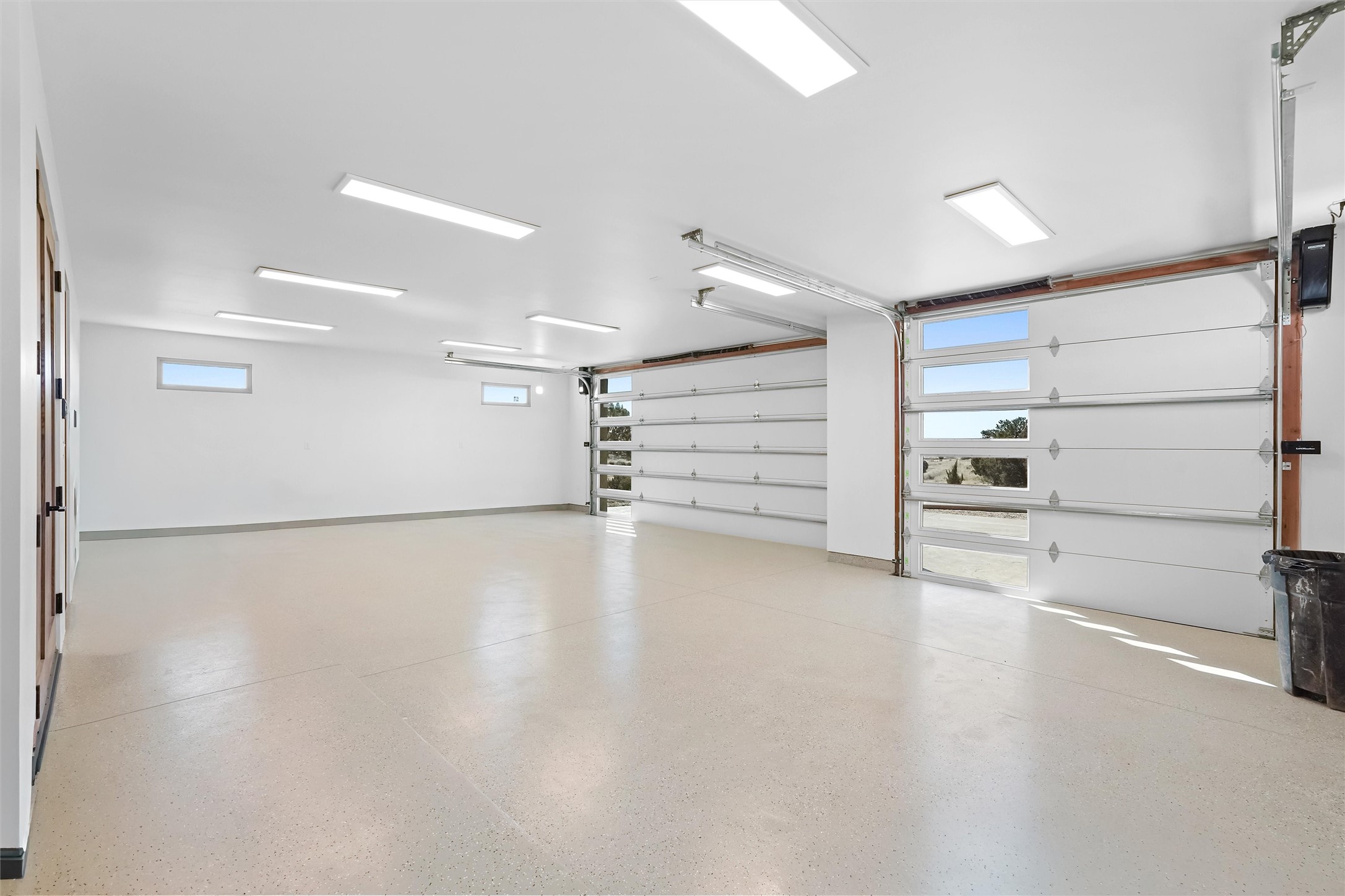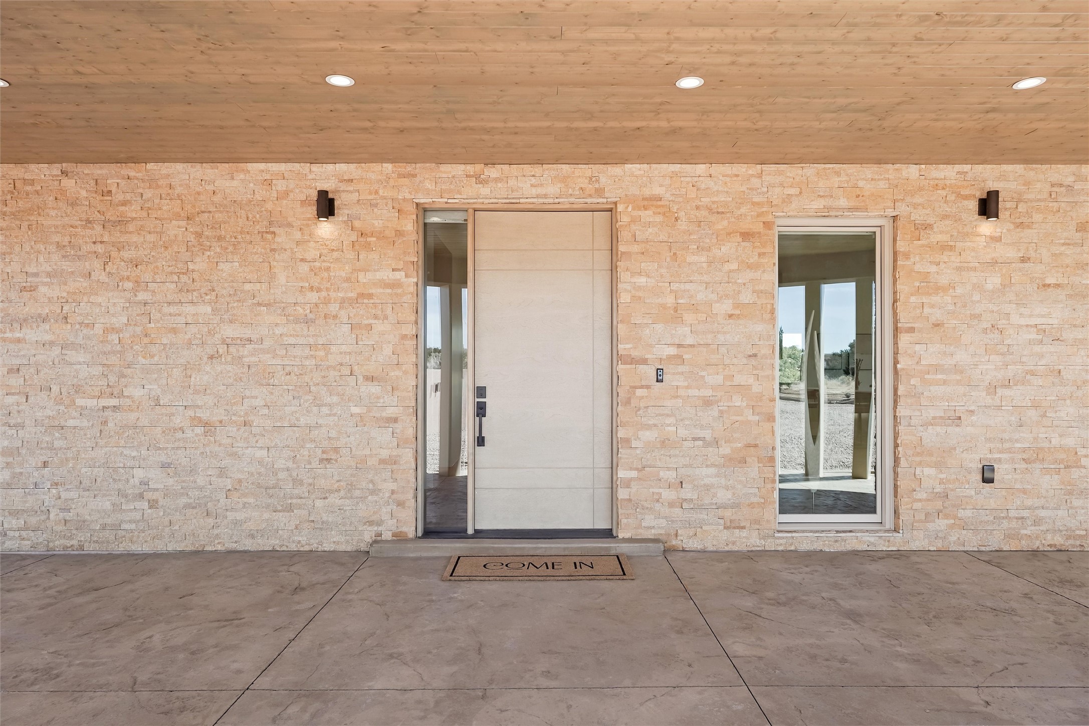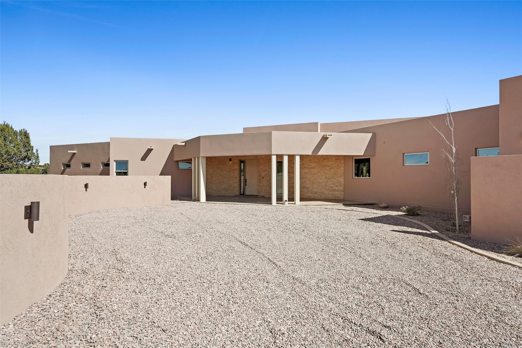 Completed in late 2025 and set on 2 acres in Las Campanas, this single level residence captures expansive views of the Sangre de Cristo Mountains and the nearby equestrian center. Built by Contreras Construction, a respected local builder known for integrity, the home reflects planning and attention to detail throughout. This home offers 4,209 square feet with three bedrooms, five bathrooms, a dedicated office, and a three-car garage with epoxy-coated flooring. The main living and dining spaces are centered around a two-way fireplace that creates a natural focal point for gathering. The kitchen features Thermador appliances, quartzite countertops, and a butler's pantry that provides additional storage and preparation space. Folding glass doors open the main living area to the outdoor patio, allowing the interior spaces to flow easily outside. The primary suite includes a fireplace and spacious bathroom including a soaking tub, rain shower, Toto bidet toilet, and porcelain tile finishes. Closet pull-downs and built-in storage elements provide practical organization throughout the home.Outdoor living areas were designed to take advantage of the surrounding views. The patio includes a built-in gas grill, mini refrigerator, and fire pit positioned for enjoying the mountain setting and open sky. Located within the gated Las Campanas community, this property offers privacy, quiet surroundings, and convenient access to Santa Fe's dining, galleries, and cultural destinations.