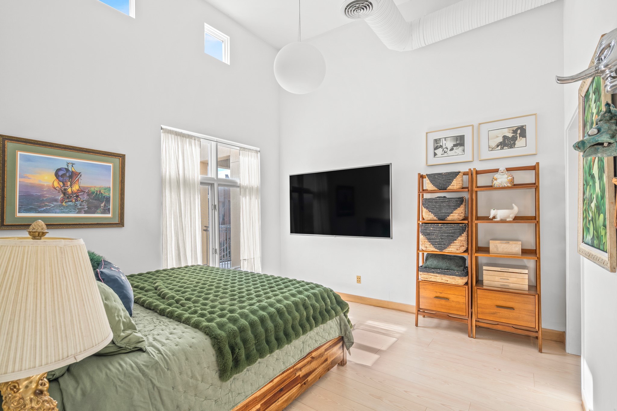 Could this be the most fabulous live / work studio in all of Santa Fe!! 2 commercially zoned live-work loft units in one.Upstairs: Completely remodeled 2 years ago. Open concept, high ceilings, very bright with skylights throughout. A 12.5x12.5 Primary Bedroom with an attached laundry space with stacked high end washer / dryer combo. The Kitchen is a high end $50K Douglas Maahs design featuring custom fixtures, custom bar / glass and lighting throughout. Many unique features were added at the time of installation. The primary bathroom is custom designed with zen copper and brass piping with wood effect tile, oversized tub and a built in bidet toilet creating a spa like feel. In the hallway there is a custom wooden work station and two stand alone closets. The open living room and dining area face a private wooded area creating a tranquil and peaceful environment.Downstairs: There is a huge 27x24 industrial space with mirrors lining one wall, cork flooring and 2 sets of french doors leading out to a tiled patio space. This room has a sink area and additional closets for storage. There are endless possibilities for this space: yoga studio, dance studio, art studio, gathering space etc. A full bath and a second 12x12 flex room for either an office, storage or a second downstairs bedroom.There are many built in custom shelve systems and plenty of storage.2550 square feet in total with the top floor and bottom floor in equal size but in different configurations. These 2 floors can be separated into 2 unique spaces or kept as one large unit. There are many businesses and private living spaces in The Lofts Complex, commercially zoned, ample parking with handicapped parking right in front ... did I mention the large dog park just a few feet away? ... Will you be the next owners to move in and make your work / live dreams come true?