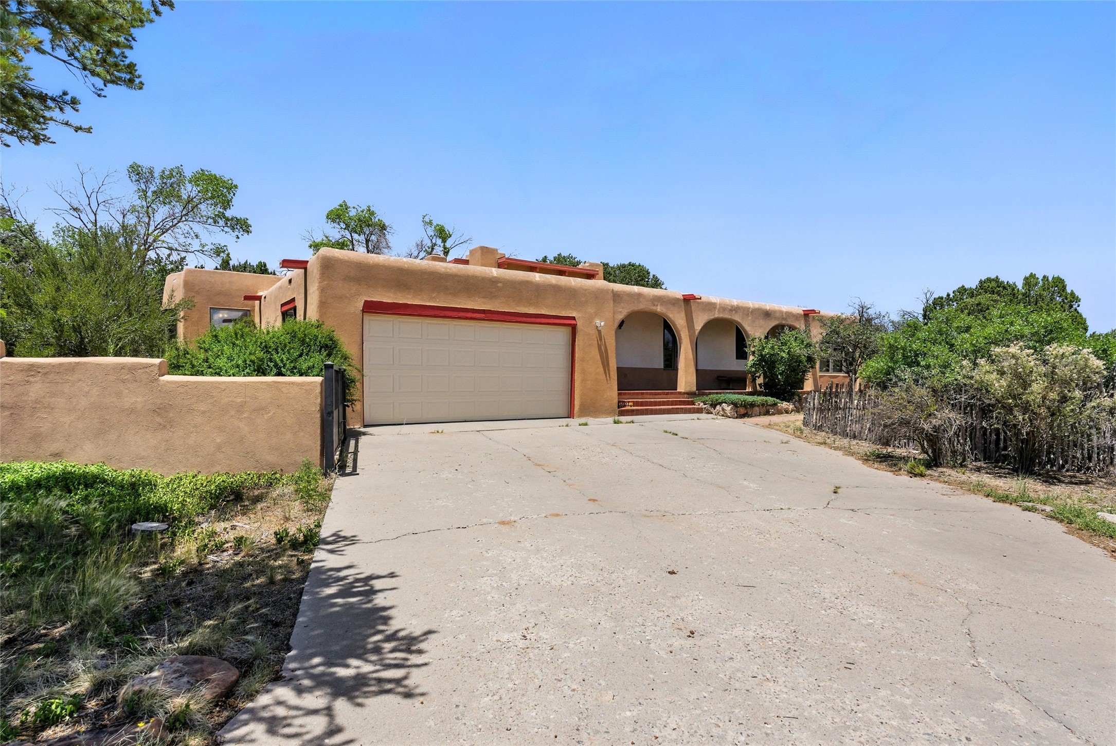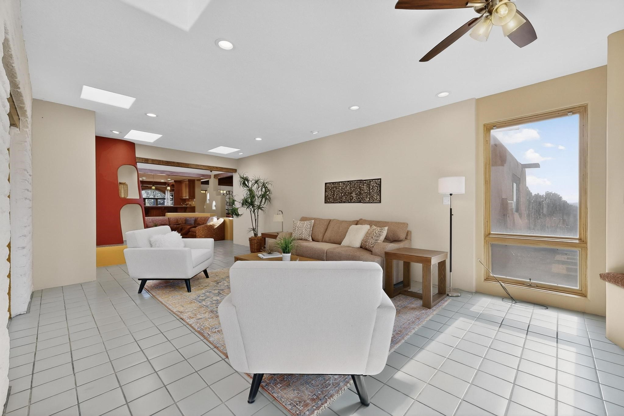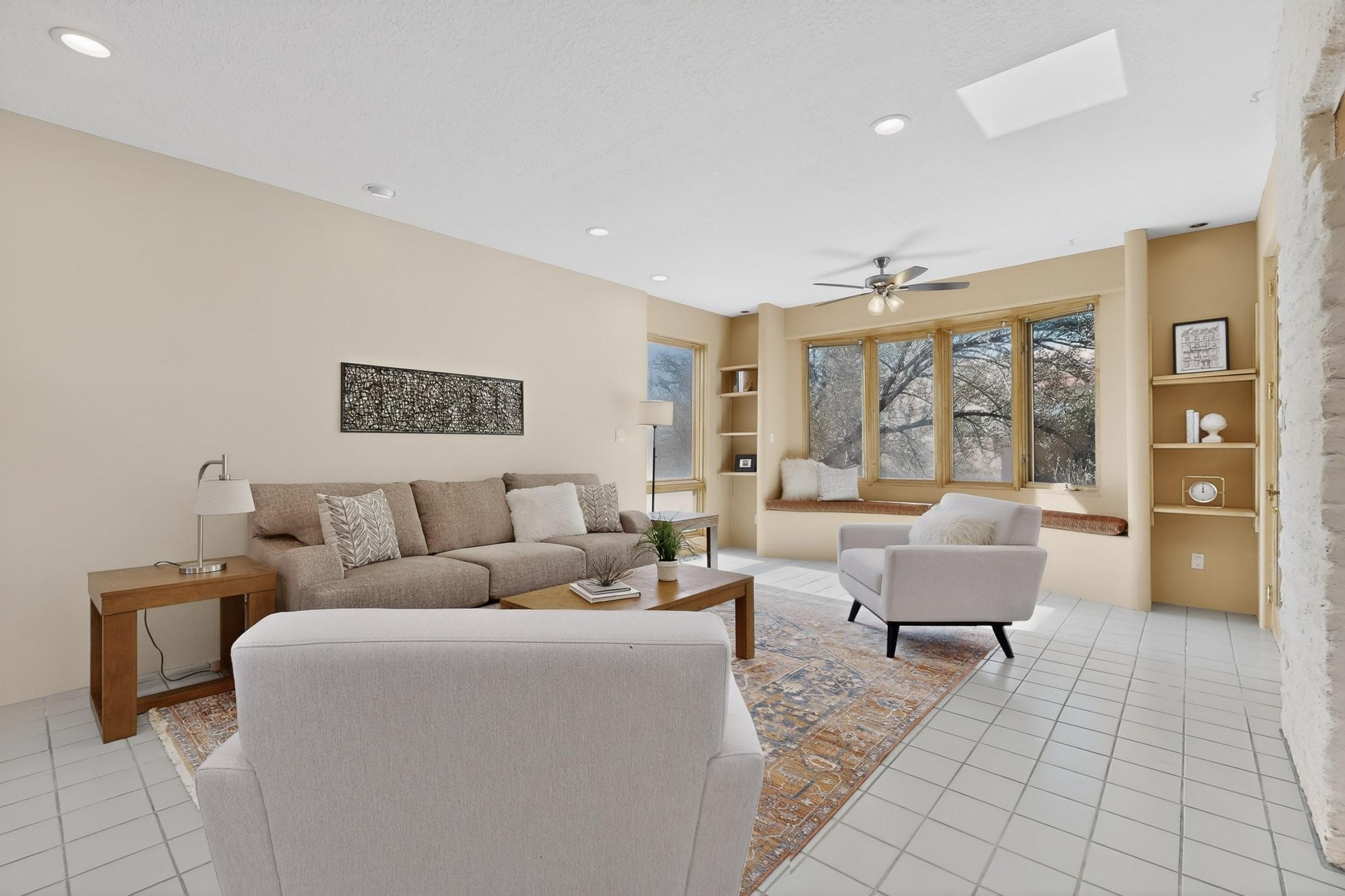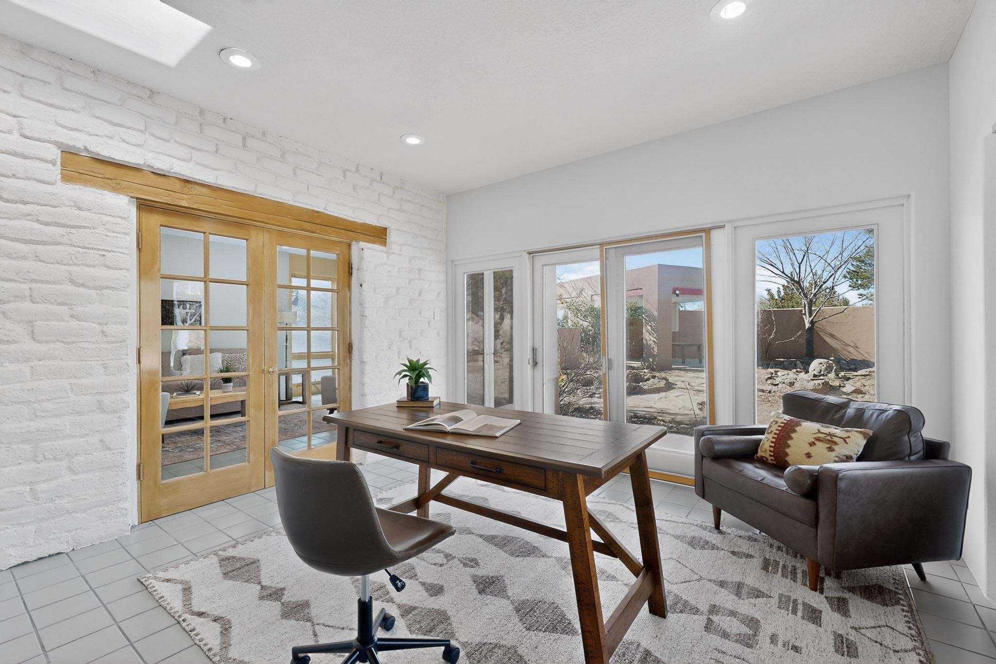 Set on 2.18 horse-zoned acres in the peaceful La Senda community, this Northern New Mexico style home offers space, privacy, and timeless Southwestern character. Designed by Nona Stone and formerly owned by a past Los Alamos National Laboratory Director, the home reflects thoughtful design and a quiet connection to local history.With more than 3,200 square feet, the residence features traditional vigas, a welcoming kiva fireplace, exposed adobe accents, tile floors, bancos, and nichos, and skylights that fill the interior with natural light. Multiple living areas provide comfortable spaces for gathering and everyday living.The spacious kitchen anchors the heart of the home with Brookhaven cabinetry, a Wolf six-burner range, Bosch wall oven and microwave, beverage refrigerator, dual pantries, and two islands designed for cooking and conversation.A bright sunroom expands the living space and works beautifully as a greenhouse, studio, or sitting room. The primary suite offers private portal access and a five-piece bath with jetted tub and walk-in shower beneath a skylight.Outdoor portals and entertaining areas invite quiet mornings and relaxed evenings surrounded by the pion and juniper landscape. The property also includes a two-car attached garage, detached RV carport, and direct access to neighborhood equine trails.Located just minutes from White Rock's village center and an easy drive to LANL, this distinctive home offers a rare combination of acreage, architectural character, and peaceful surroundings.