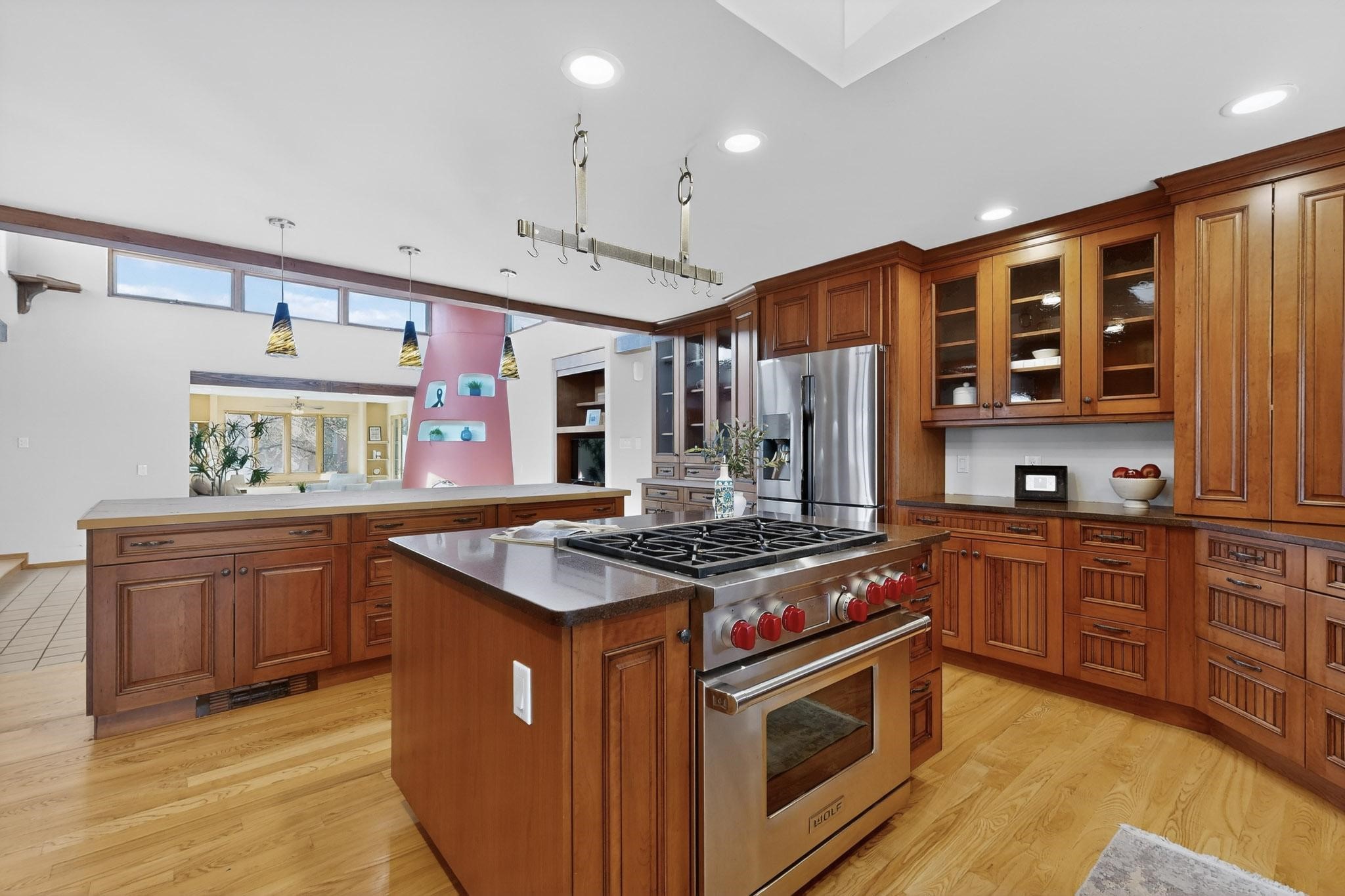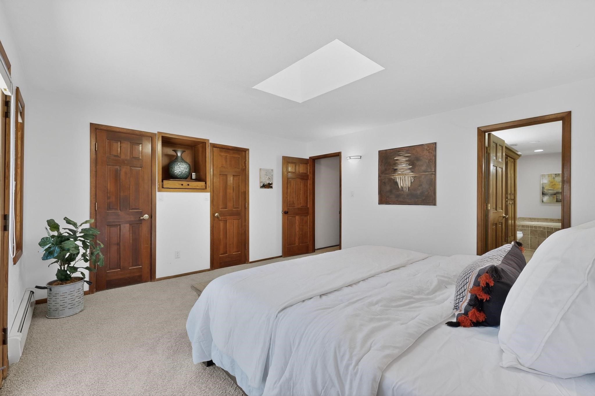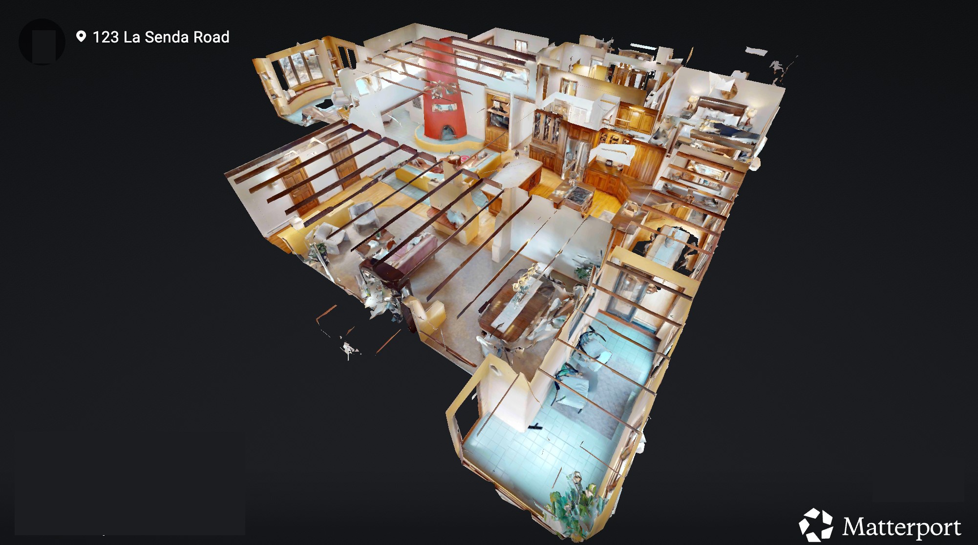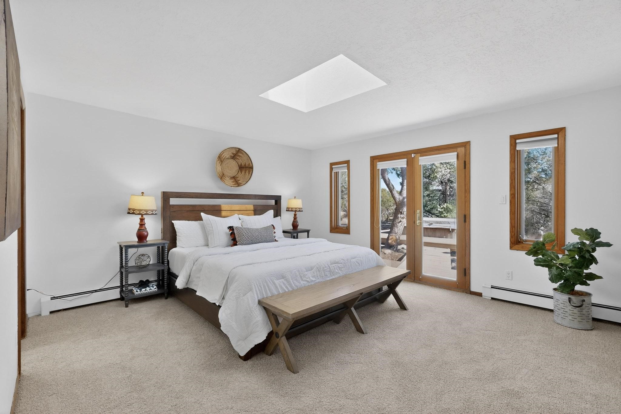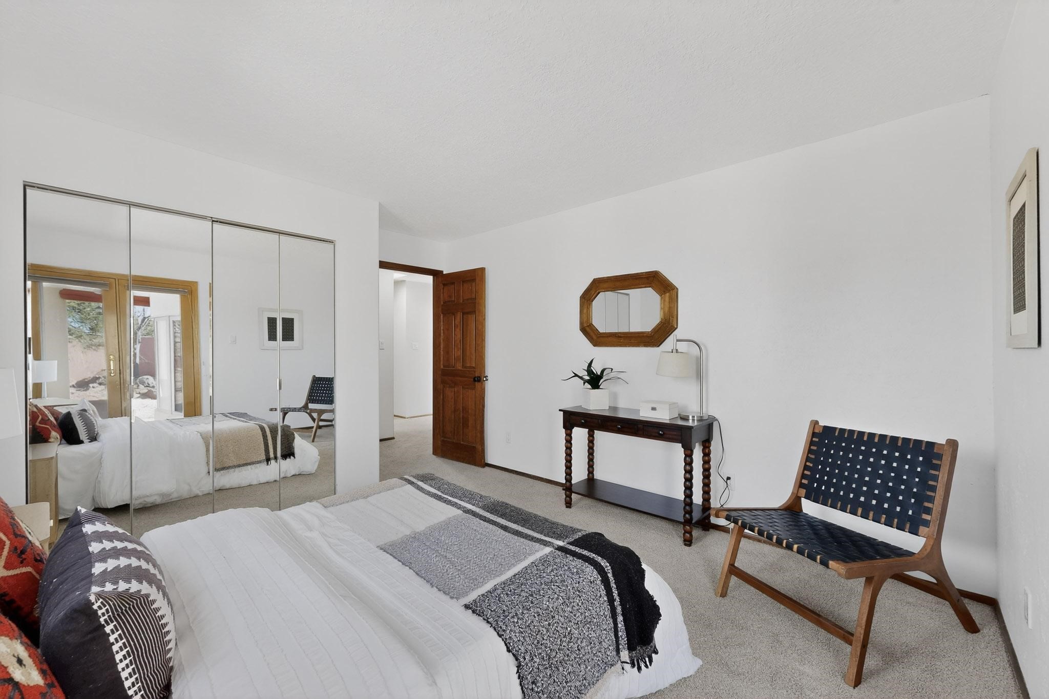 Set on 2.18 horse-zoned acres in the peaceful La Senda community, this Northern New Mexico style home offers space, privacy, and timeless Southwestern character. Designed by Nona Stone and formerly owned by a past Los Alamos National Laboratory Director, the home reflects thoughtful design and a quiet connection to local history.With more than 3,200 square feet, the residence features traditional vigas, a welcoming kiva fireplace, exposed adobe accents, tile floors, bancos, and nichos, and skylights that fill the interior with natural light. Multiple living areas provide comfortable spaces for gathering and everyday living.The spacious kitchen anchors the heart of the home with Brookhaven cabinetry, a Wolf six-burner range, Bosch wall oven and microwave, beverage refrigerator, dual pantries, and two islands designed for cooking and conversation.A bright sunroom expands the living space and works beautifully as a greenhouse, studio, or sitting room. The primary suite offers private portal access and a five-piece bath with jetted tub and walk-in shower beneath a skylight.Outdoor portals and entertaining areas invite quiet mornings and relaxed evenings surrounded by the pion and juniper landscape. The property also includes a two-car attached garage, detached RV carport, and direct access to neighborhood equine trails.Located just minutes from White Rock's village center and an easy drive to LANL, this distinctive home offers a rare combination of acreage, architectural character, and peaceful surroundings.