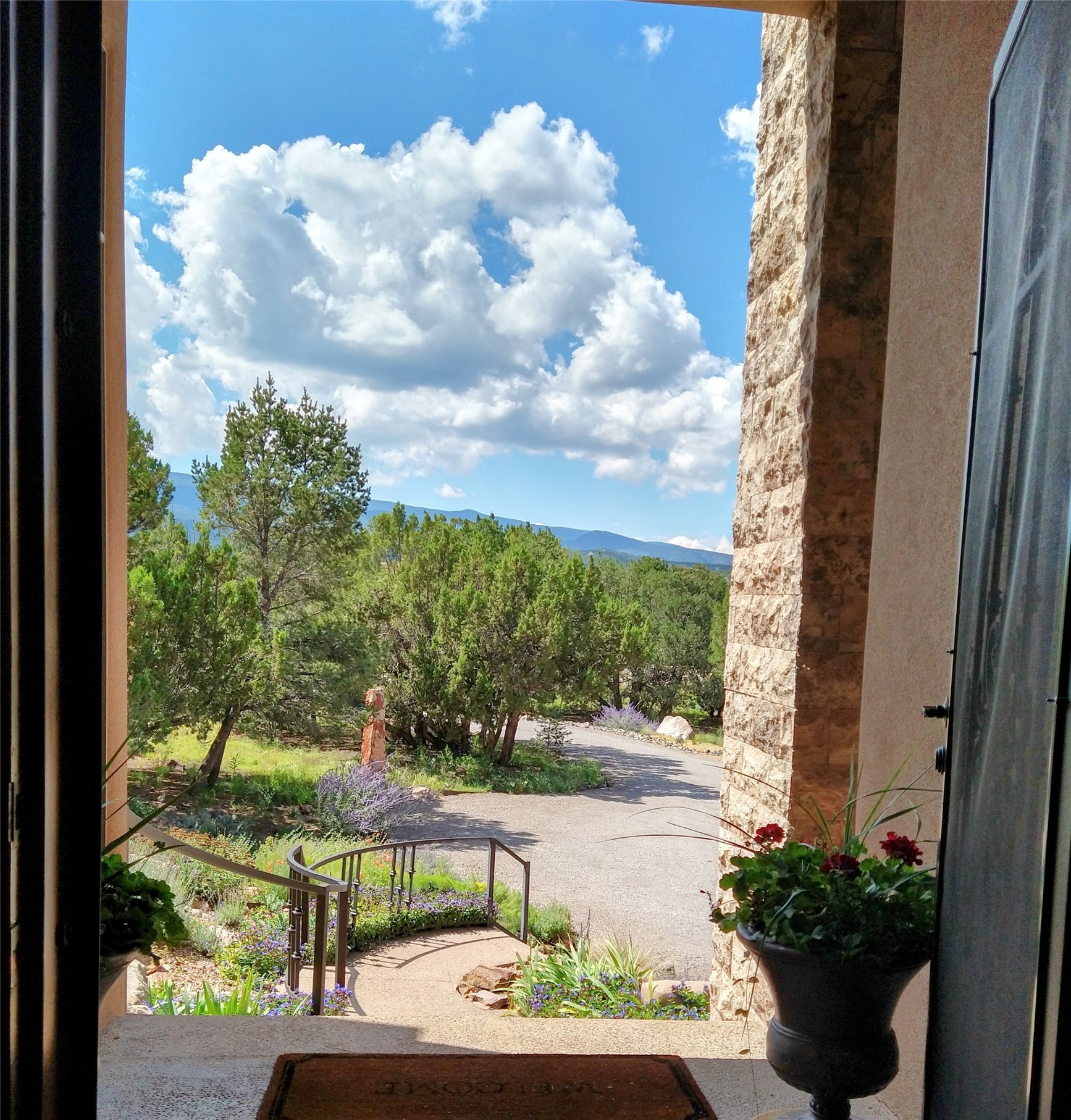 OPEN HOUSE 3-15 from 2-4pm. The outside and the inside meet in this superb warm Contemporary design. Wood, stone and glass elements and views from every room. Custom Harwell home; nestled in Paa-Ko with breathtaking Sandia and Placer Mountain views. Soaring ceilings with elegant wood beams, striking travertine accent walls, a multi-sided gas fireplace, and hand-scraped cherry hardwood floors. The gourmet kitchen boasts custom knotty alder cabinetry, and Wolf & Subzero pro-style appliances. Elegant dining room flanked by a fireplace one one side and large windows on the other is an inviting space and is separated from the kitchen by a convenient wet bar. Plush primary suite, in its own wing for ultimate privacy, offers a coffee bar, gas fireplace, sitting rm,spa-like bath, and private balcony. A gorgeous library features custom wood floor-to-ceiling shelving makes an excellent office. Two additional bedrooms on the opposite side of the home with a large full bath between. Enchanting outdoor spaces include a covered patio, courtyard, nature trail, and water features. Oversized 3-car garage. Owned Solar. The Paa-Ko community features a renowned golf course and a golf club with beautifully situated restaurant overlooking the course with the pond and mountains in the background. Additionally, there is a community pool, tennis courts and clubhouse. All of these amenities are within walking distance of the home. Living in this home is truly living New Mexico.