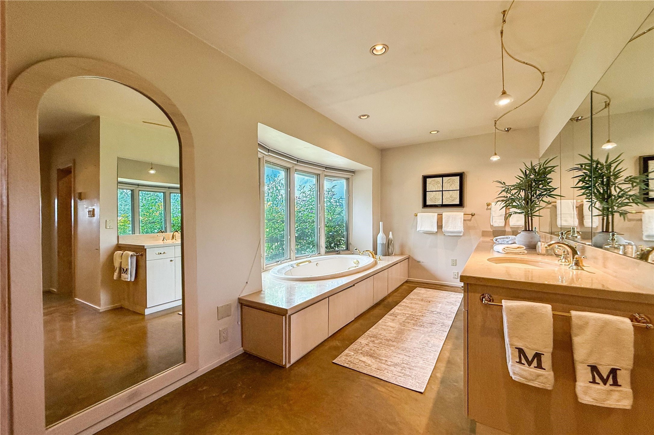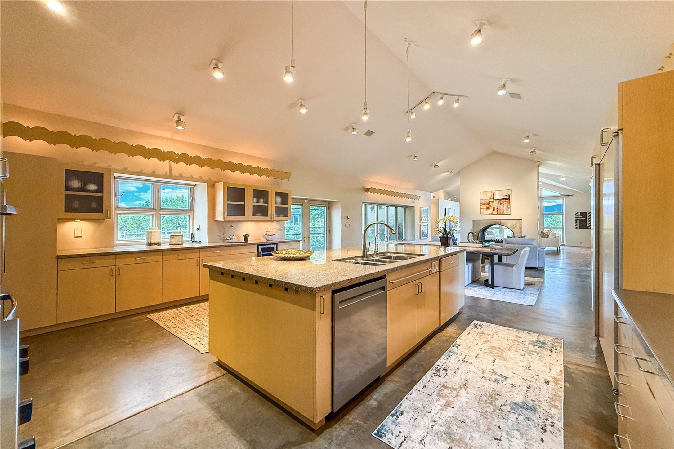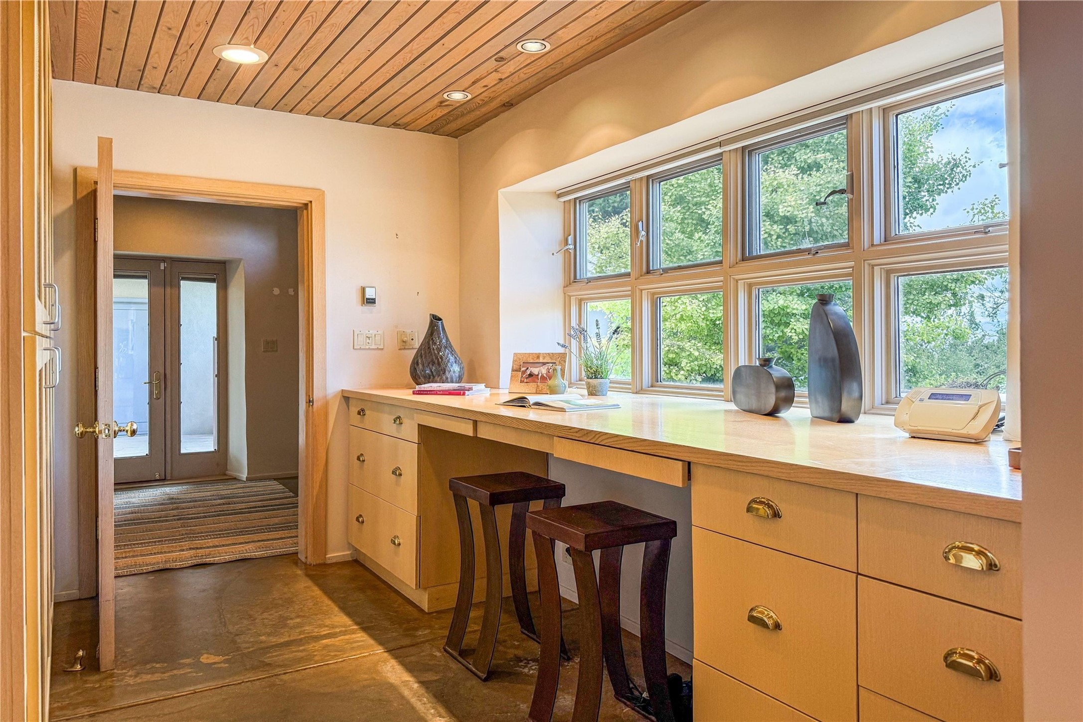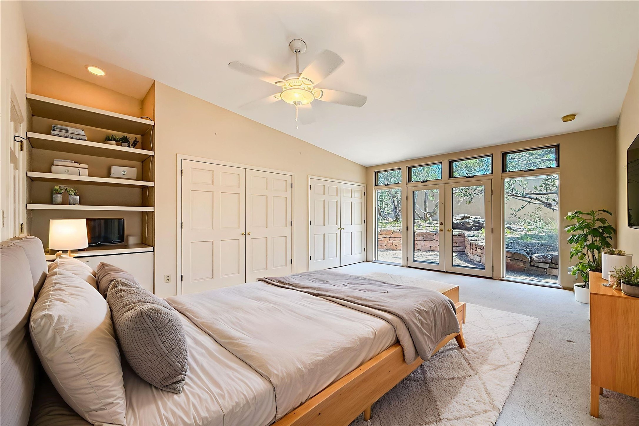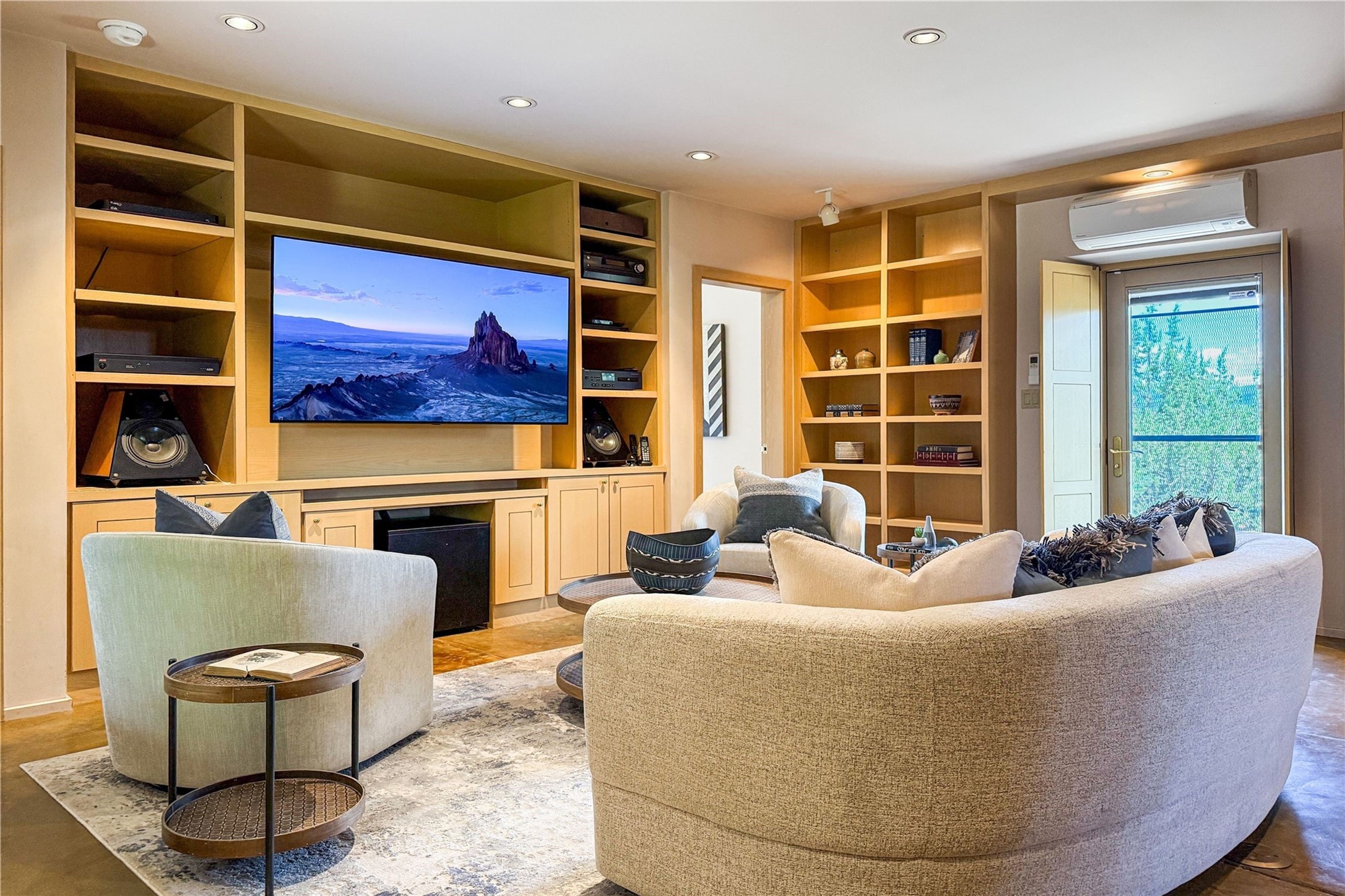 This serene La Tierra Nueva compound, with three distinct residences totaling 7,341 sq. feet of living space. Designed by renowned architect, Lila DeWindt, this lush oasis boasts mature landscaping in a serene, country-like setting with Sangre and Jemez mountain views, 11.85 acres, and vegetable and perennial gardens. The 3,982 sq. foot single level main residence features a blend of timeless Northern NM and modern design, a dramatic high-pitched roof, double-sided stone fireplace, copious natural light, and large windows that capture breathtaking Sangre views. With a casual sitting area open to the kitchen, a separate living room with a huge picture window facing the Sangres, a media room/library and bedrooms that also boast mountain views, this residence is truly stunning. The primary suite's tub overlooks a flower garden. An open-concept kitchen is centered around a large island, perfect for hosting. The home enjoys an expansive front portal and multiple patio spaces. The charming 1,334 sq. foot, two bedroom guest house includes a chef's kitchen, Saltillo tile flooring, a wood-burning stove, and wrap-around porch. The impressive 2,025 sq. foot modern 1-bedroom studio has an open living/dining/kitchen area, and portal. The adult rec-room, with built-in bar, is ideal as live/work space, artist studio/music room, car enthusiast or conversion to a barn, perfect for large gatherings and relaxing with sunset Jemez views. Beneath the studio, lays a remarkable walk-in wine cellar for approx. 5000 bottles with wine tasting area. The property also includes a generous fenced dog area and room for horses. A truly peaceful, secluded atmosphere just 18 minutes from the heart of Santa Fe or the airport, and 8 minutes to The Club at Las Campanas. La Tierra Nueva is a coveted, gated, equestrian-friendly community with access to over 60,000 acres BLM land, and tennis/pickleball court. Ideal for multigenerational living, wine lover, workshop, or patron of the arts. 7 Goodnight Trail West is a true hidden gem.
