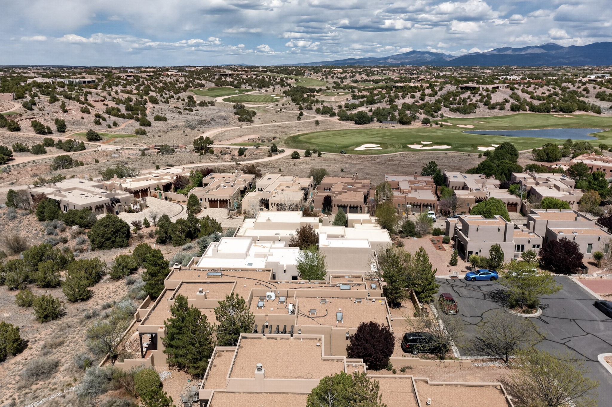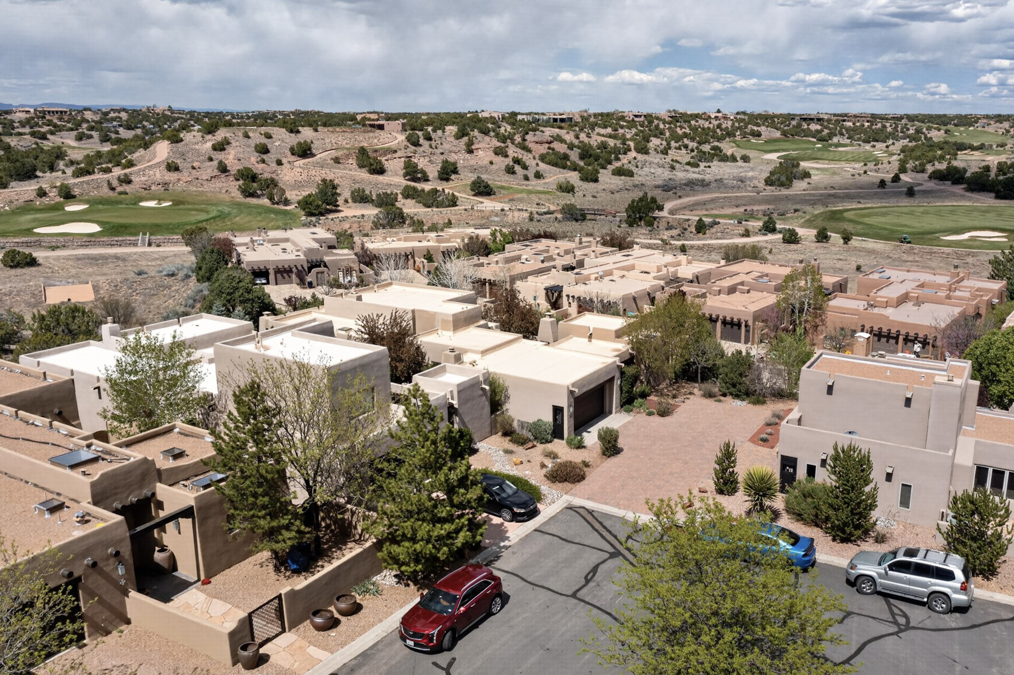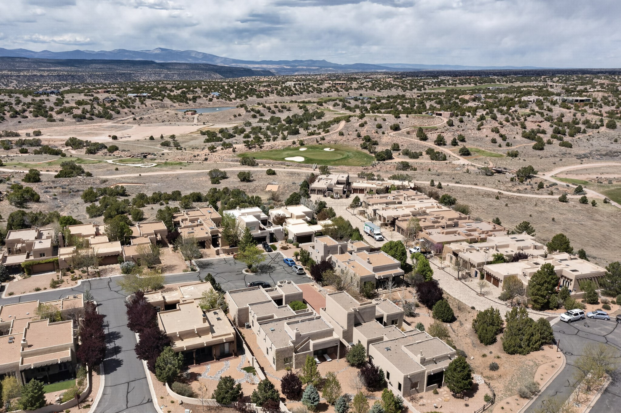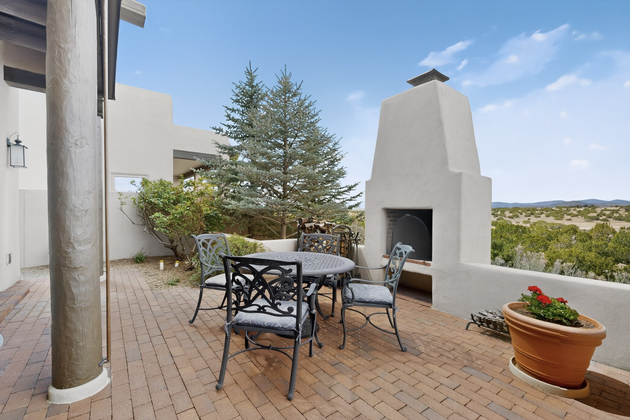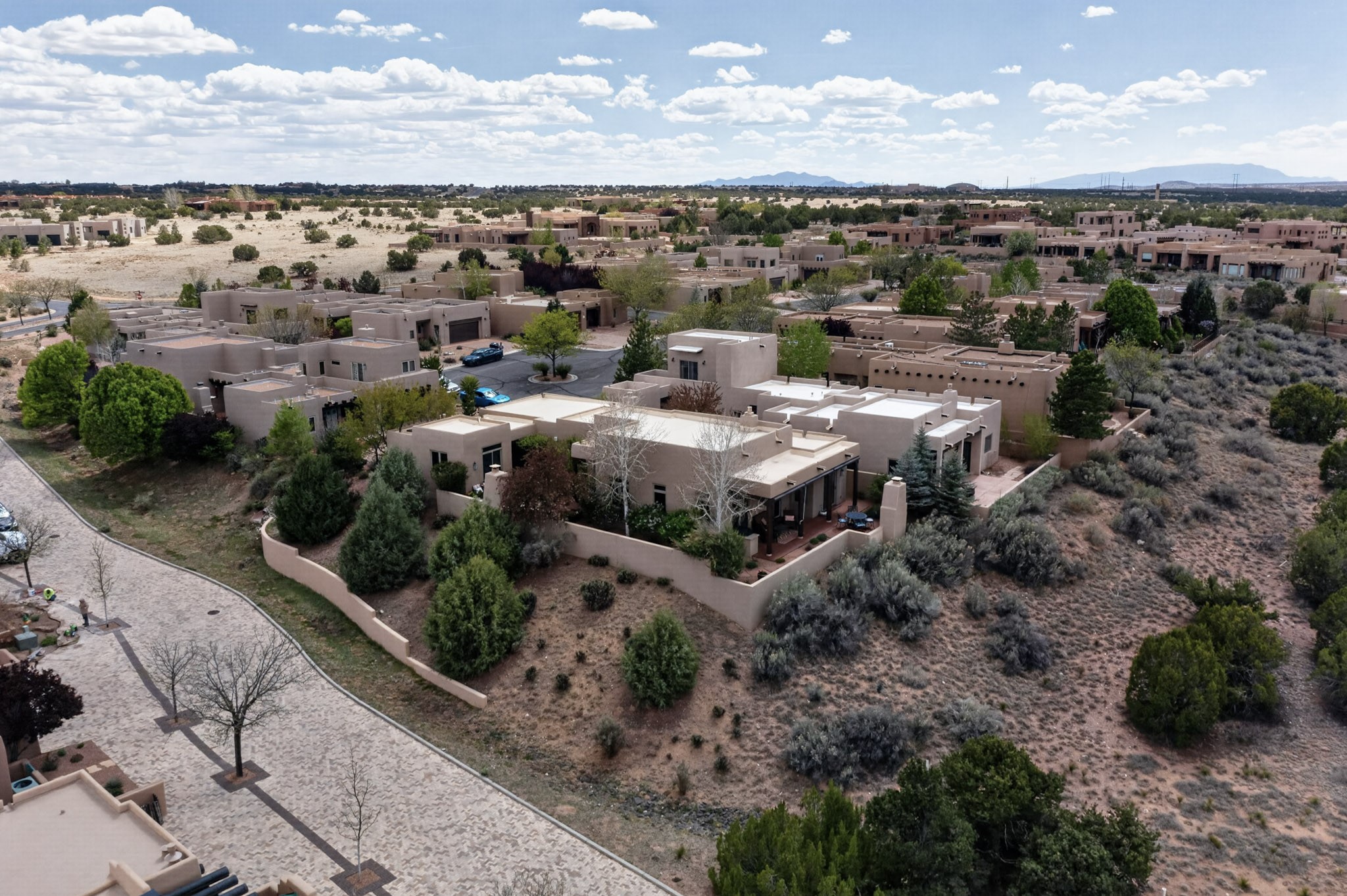 Experience refined living in this stunning three bedroom three bath residence with a private Casita perfectly positioned along the golf course at Las Campanas and showcasing sweeping elevated views of the Jemez and Sangre de Cristo mountains. Designed for both comfort and elegance this home features beautiful outdoor living spaces with classic brick flooring mature plants and trees with flagstone pathways and two outdoor wood-burning fireplaces creating the perfect setting for relaxing evenings or entertaining while taking in the breathtaking scenery. Enter through the striking double doors into a warm and inviting interior. The spacious primary suite offers a peaceful retreat with a walk in closet a generous en suite bath and a private patio ideal for enjoying tranquil surroundings. The open concept kitchen flows effortlessly into the dining and living areas where large windows frame the picturesque golf course views and fill the home with natural light. Recent upgrades add modern conveniences including new tankless water heaters, a new kitchen vent hood, epoxy flooring in the garage, instant hot water faucet at kitchen sink, and a new EV charger. This exceptional "Lock & Leave" Las Campanas property blends luxury, comfort, and spectacular views offering the perfect Santa Fe lifestyle both indoors and out.