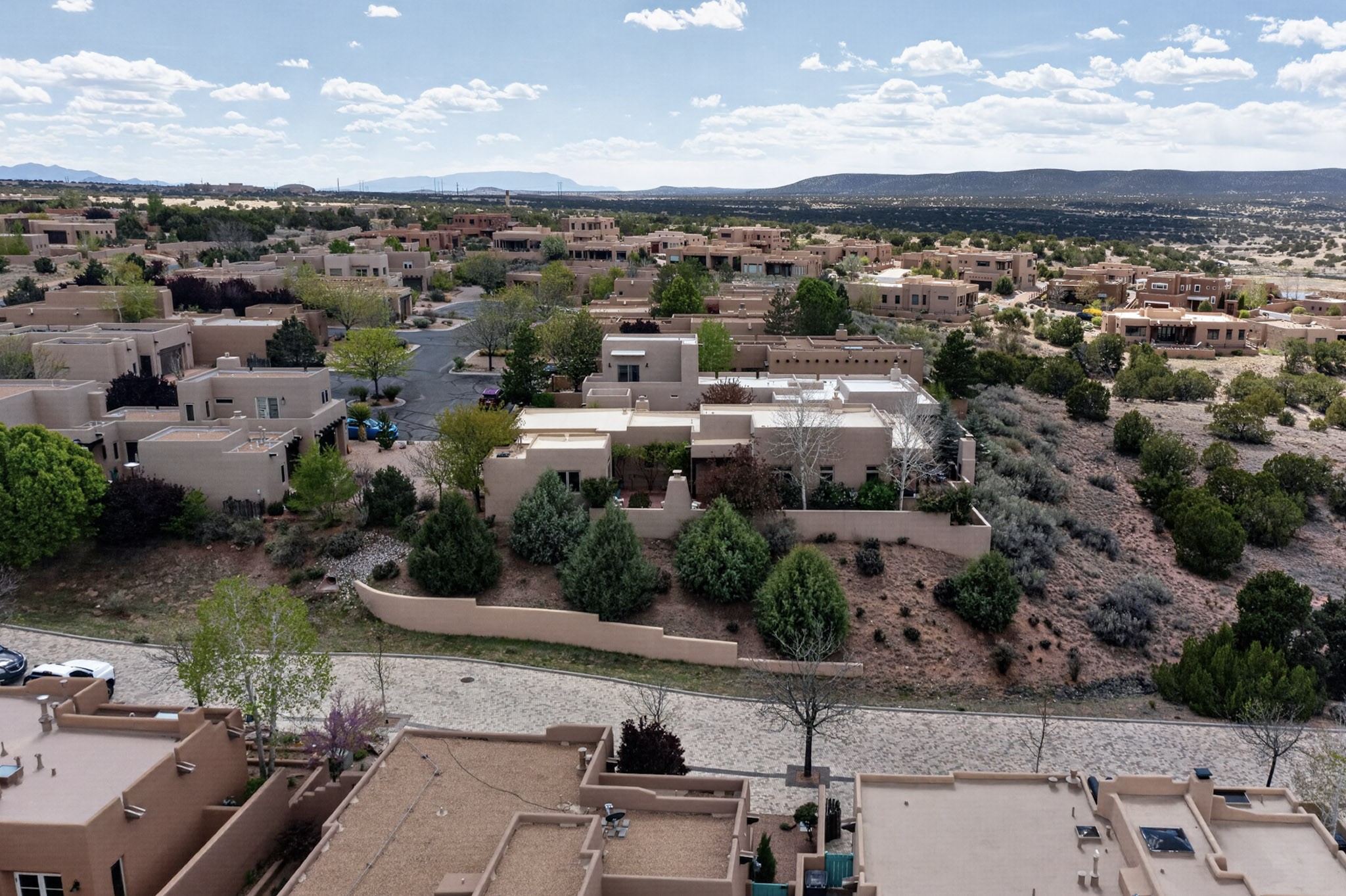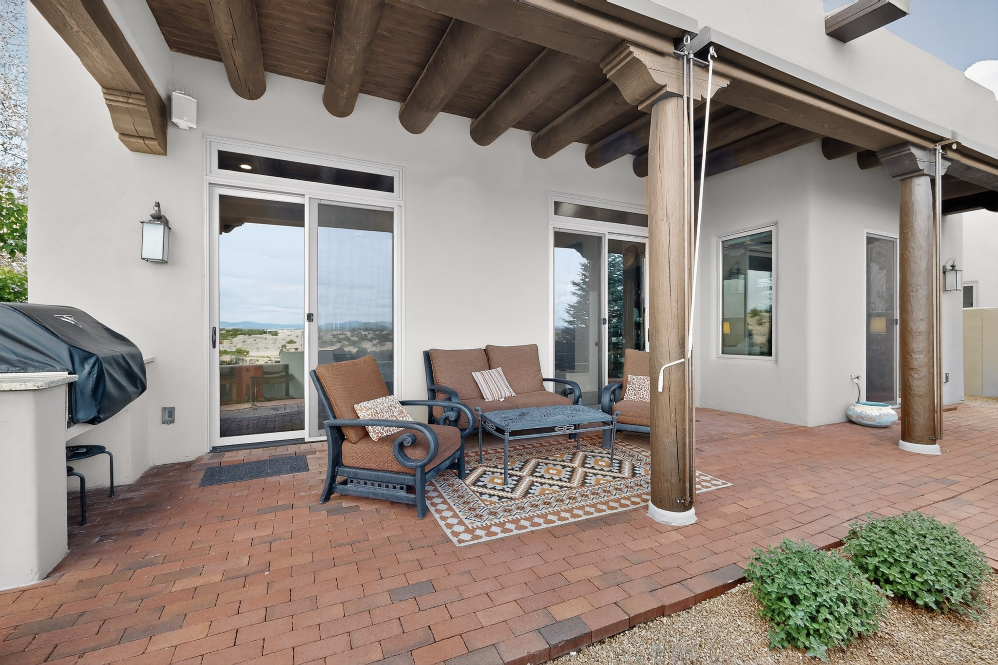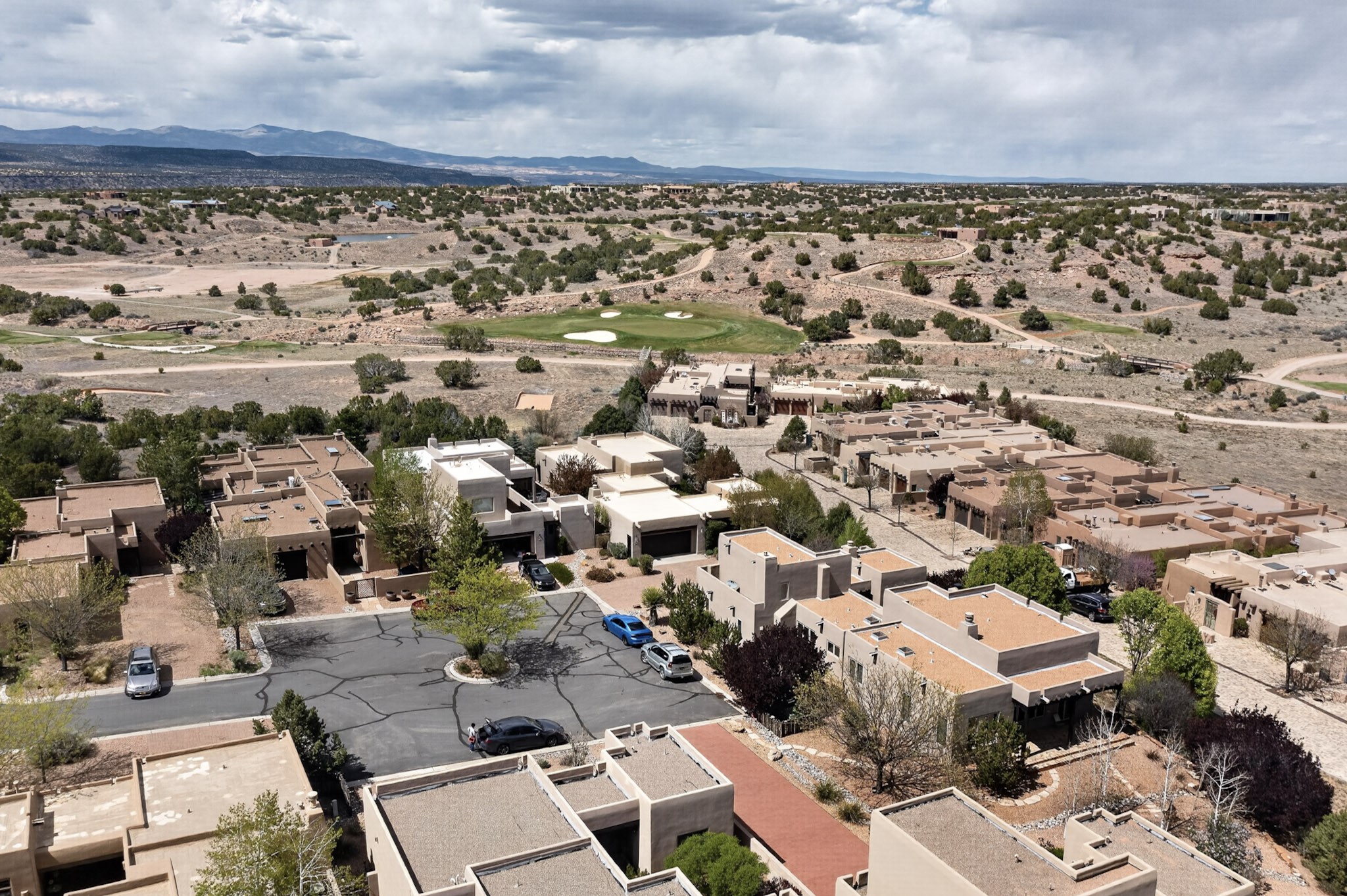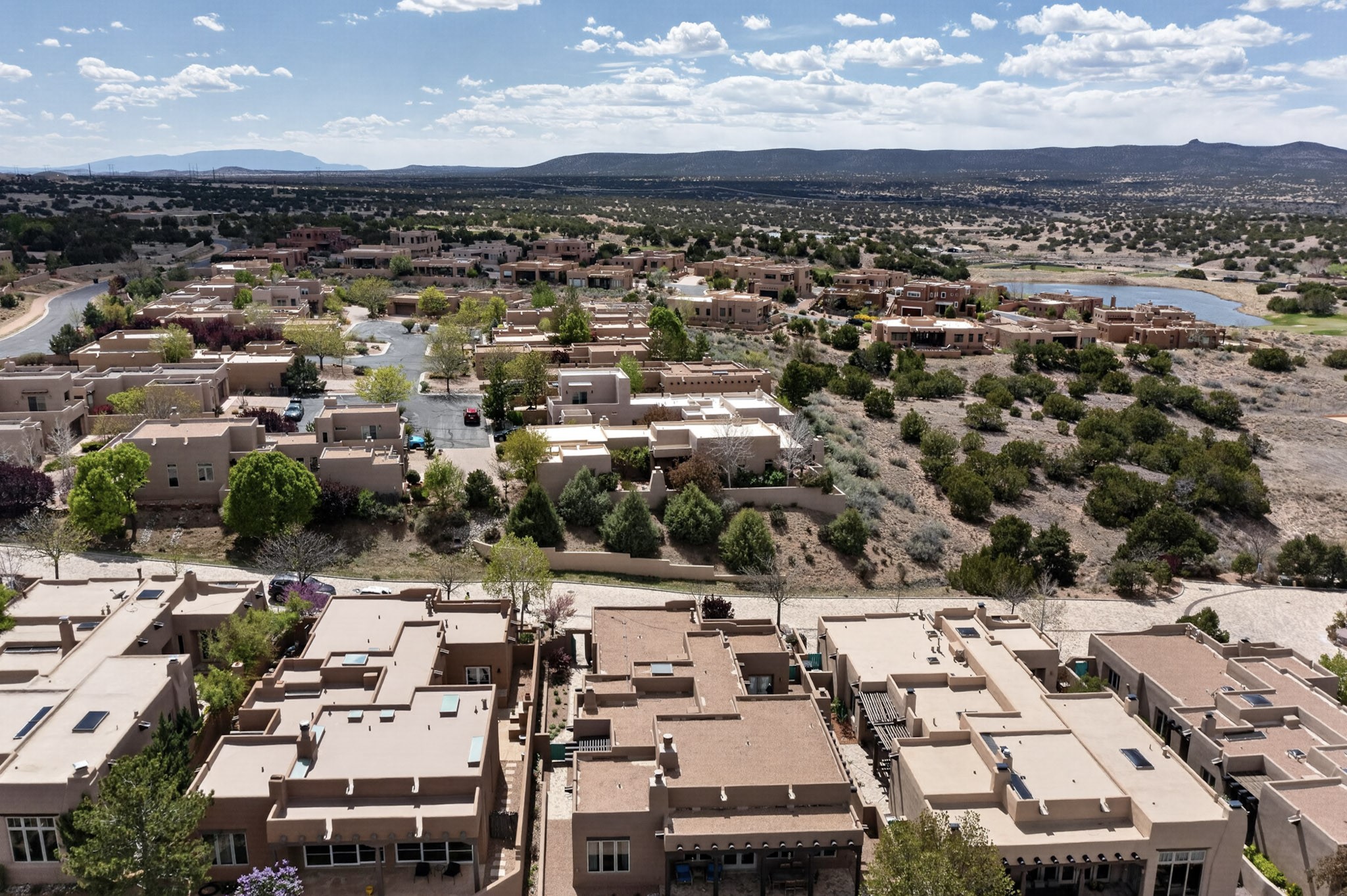 Experience refined living in this stunning three bedroom three bath residence with a private Casita perfectly positioned along the golf course at Las Campanas and showcasing sweeping elevated views of the Jemez and Sangre de Cristo mountains. Designed for both comfort and elegance this home features beautiful outdoor living spaces with classic brick flooring mature plants and trees with flagstone pathways and two outdoor wood-burning fireplaces creating the perfect setting for relaxing evenings or entertaining while taking in the breathtaking scenery. Enter through the striking double doors into a warm and inviting interior. The spacious primary suite offers a peaceful retreat with a walk in closet a generous en suite bath and a private patio ideal for enjoying tranquil surroundings. The open concept kitchen flows effortlessly into the dining and living areas where large windows frame the picturesque golf course views and fill the home with natural light. Recent upgrades add modern conveniences including new tankless water heaters, a new kitchen vent hood, epoxy flooring in the garage, instant hot water faucet at kitchen sink, and a new EV charger. This exceptional "Lock & Leave" Las Campanas property blends luxury, comfort, and spectacular views offering the perfect Santa Fe lifestyle both indoors and out.
