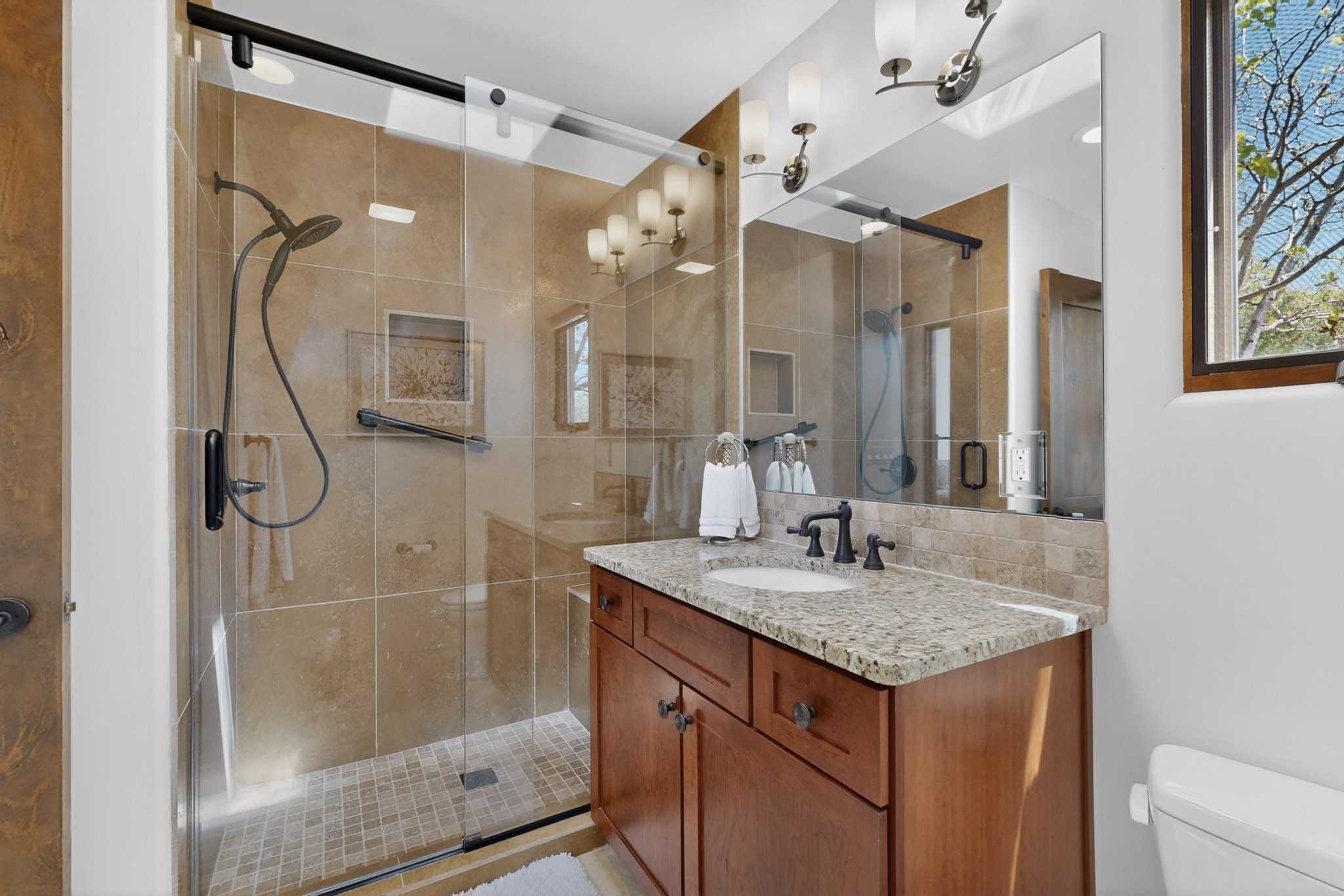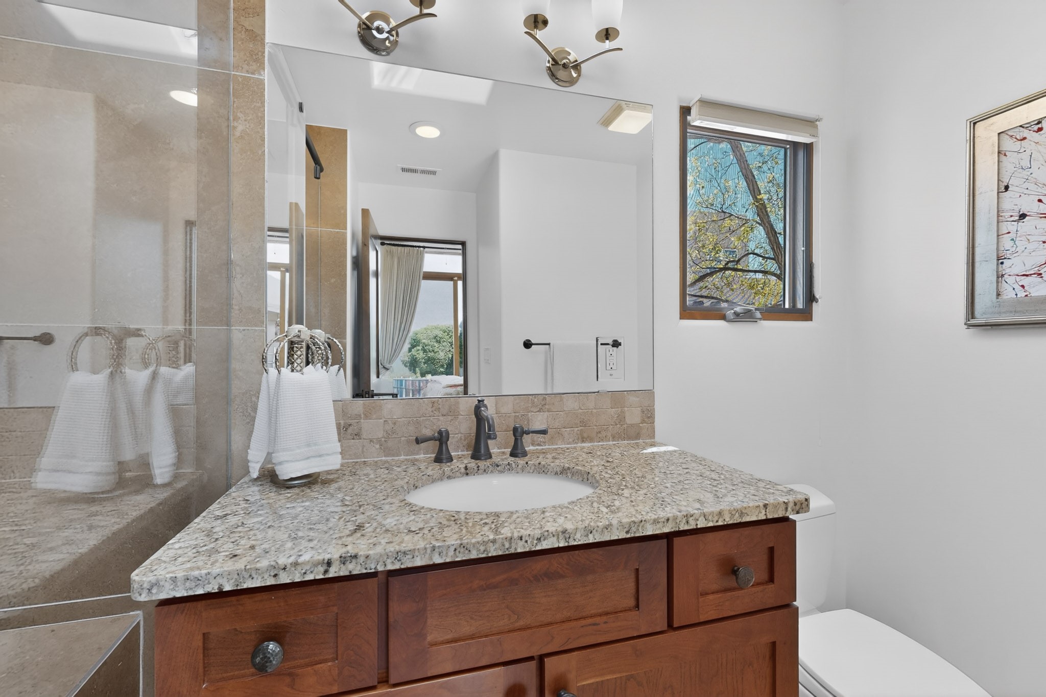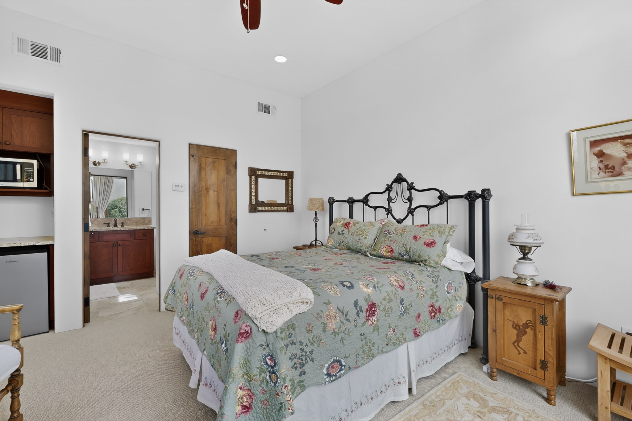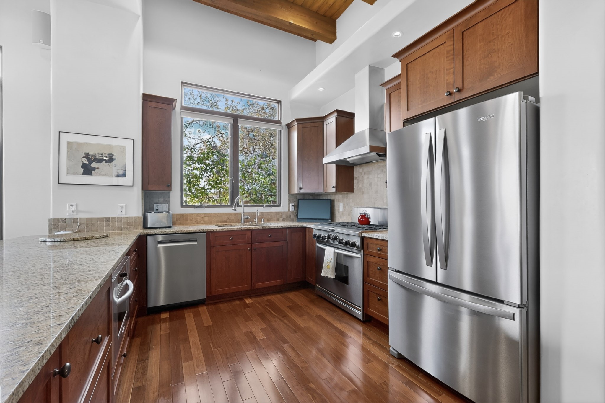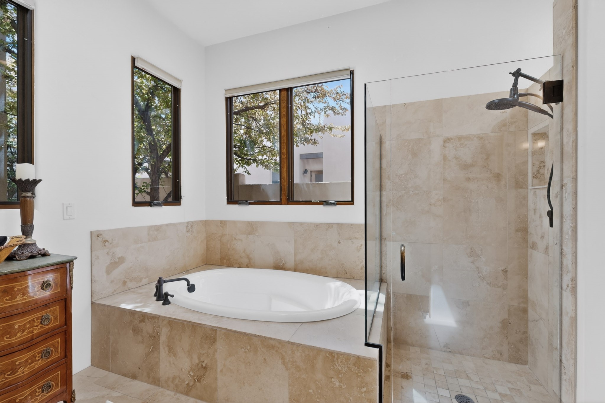 Experience refined living in this stunning three bedroom three bath residence with a private Casita perfectly positioned along the golf course at Las Campanas and showcasing sweeping elevated views of the Jemez and Sangre de Cristo mountains. Designed for both comfort and elegance this home features beautiful outdoor living spaces with classic brick flooring mature plants and trees with flagstone pathways and two outdoor wood-burning fireplaces creating the perfect setting for relaxing evenings or entertaining while taking in the breathtaking scenery. Enter through the striking double doors into a warm and inviting interior. The spacious primary suite offers a peaceful retreat with a walk in closet a generous en suite bath and a private patio ideal for enjoying tranquil surroundings. The open concept kitchen flows effortlessly into the dining and living areas where large windows frame the picturesque golf course views and fill the home with natural light. Recent upgrades add modern conveniences including new tankless water heaters, a new kitchen vent hood, epoxy flooring in the garage, instant hot water faucet at kitchen sink, and a new EV charger. This exceptional "Lock & Leave" Las Campanas property blends luxury, comfort, and spectacular views offering the perfect Santa Fe lifestyle both indoors and out.