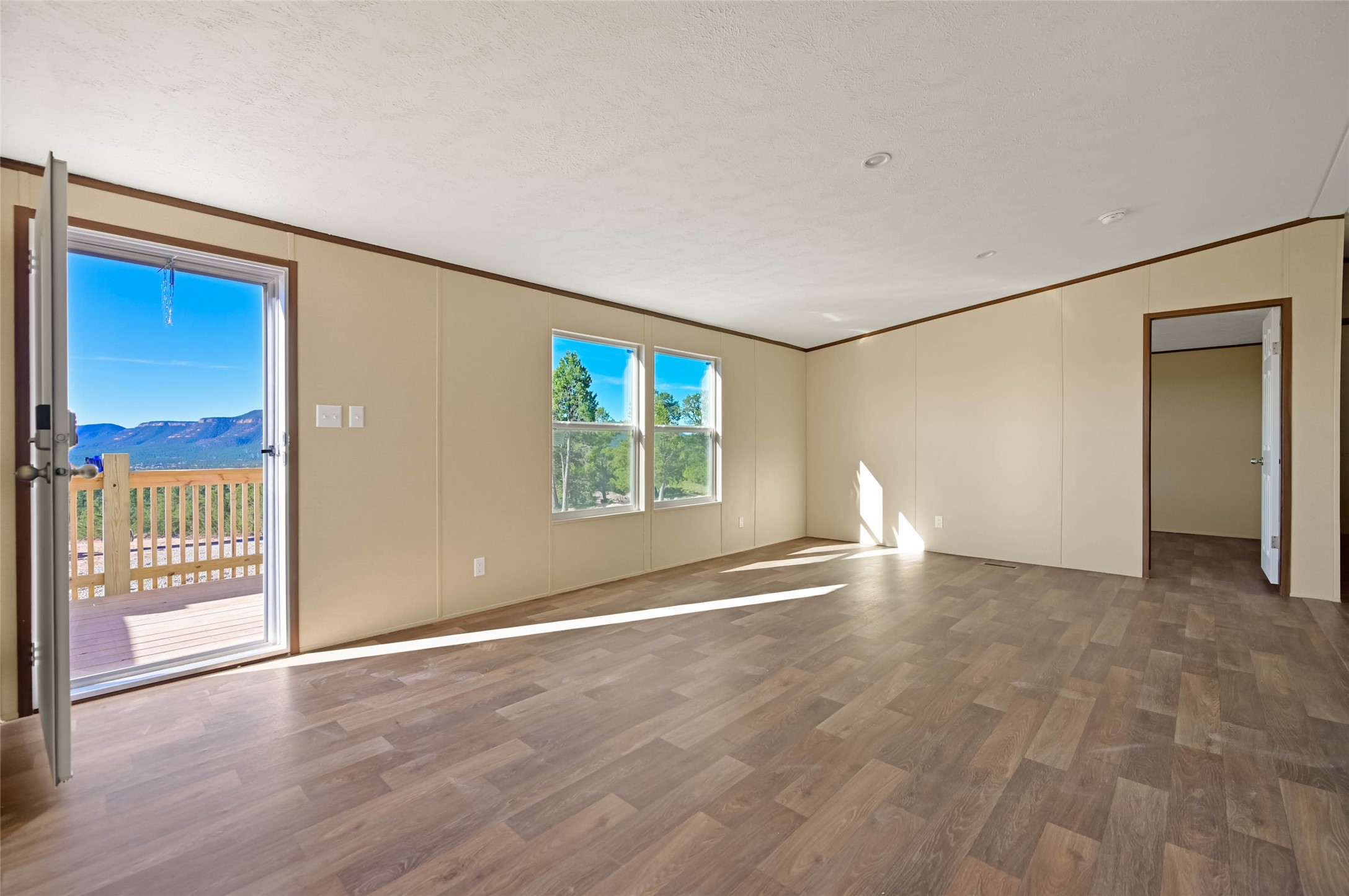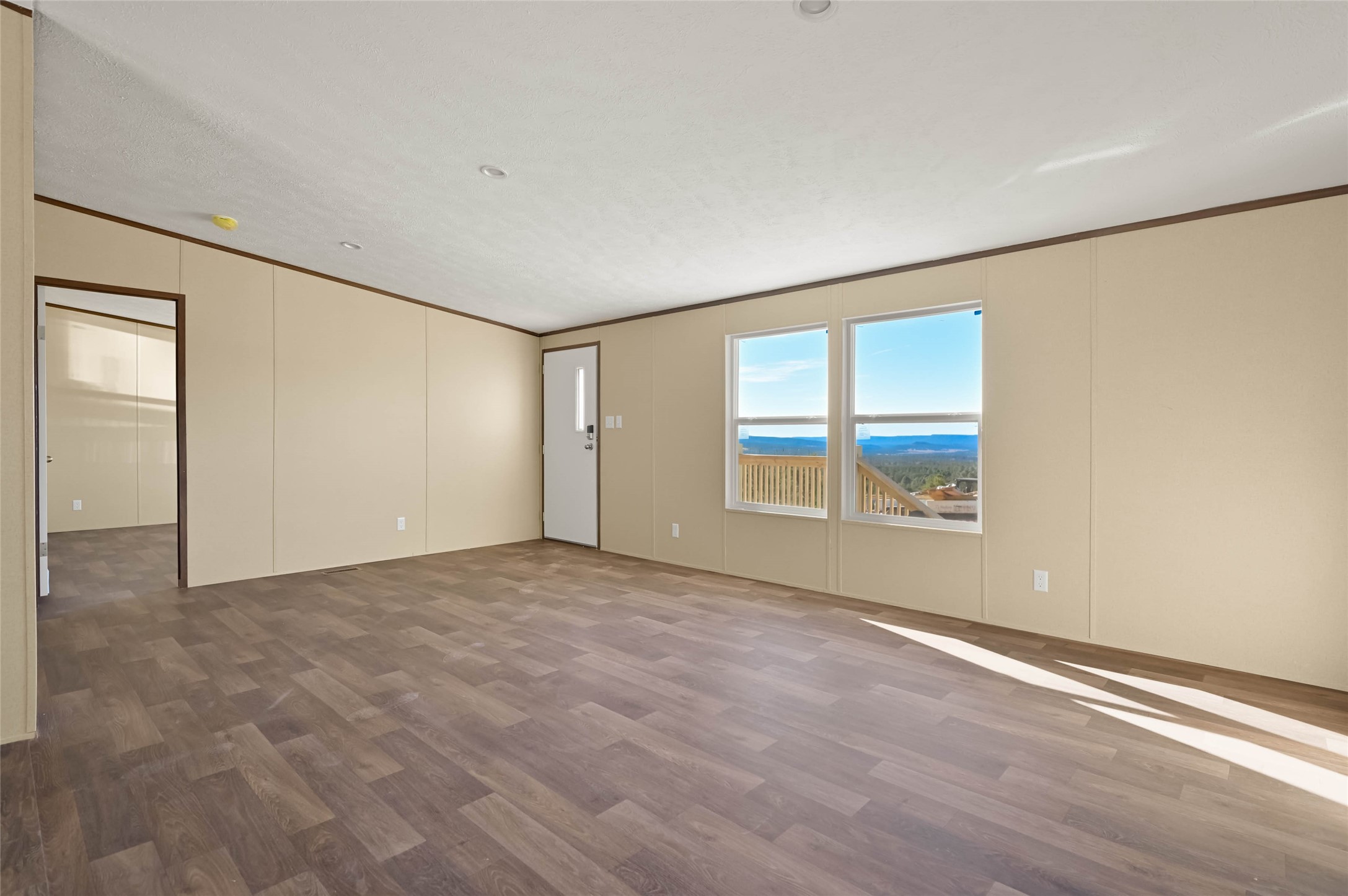 Stunning views of Rowe Mesa! Brand-new 3 bedroom, 2 bathroom manufactured home offering 1,264 square feet of light, fresh, move-in-ready living. The home features thoughtfully upgraded countertops and bathrooms, creating a refined and modern finish throughout. Situated on a spacious and private 0.75-acre lot, the property provides plenty of room to spread out, garden, or simply enjoy the peaceful surroundings. From the home, take in sweeping views of Rowe Mesa and the Pecos Valley--a stunning backdrop in every season. A perfect blend of new construction, open space, and beautiful scenery.