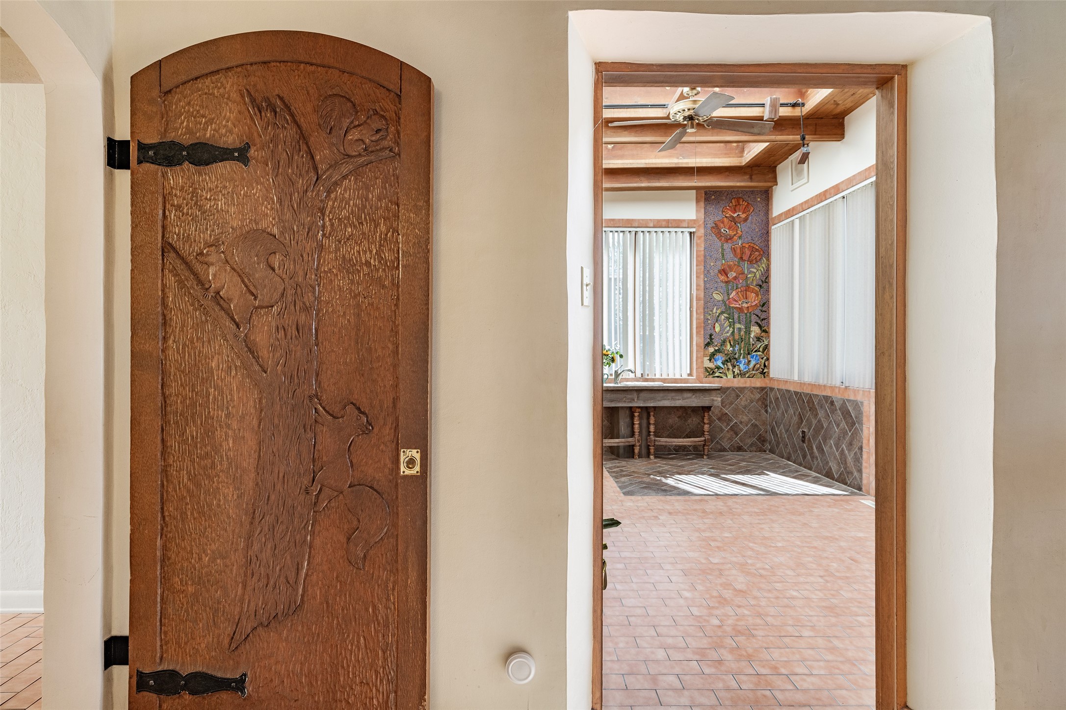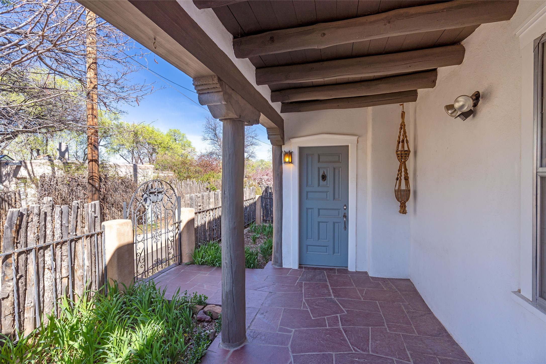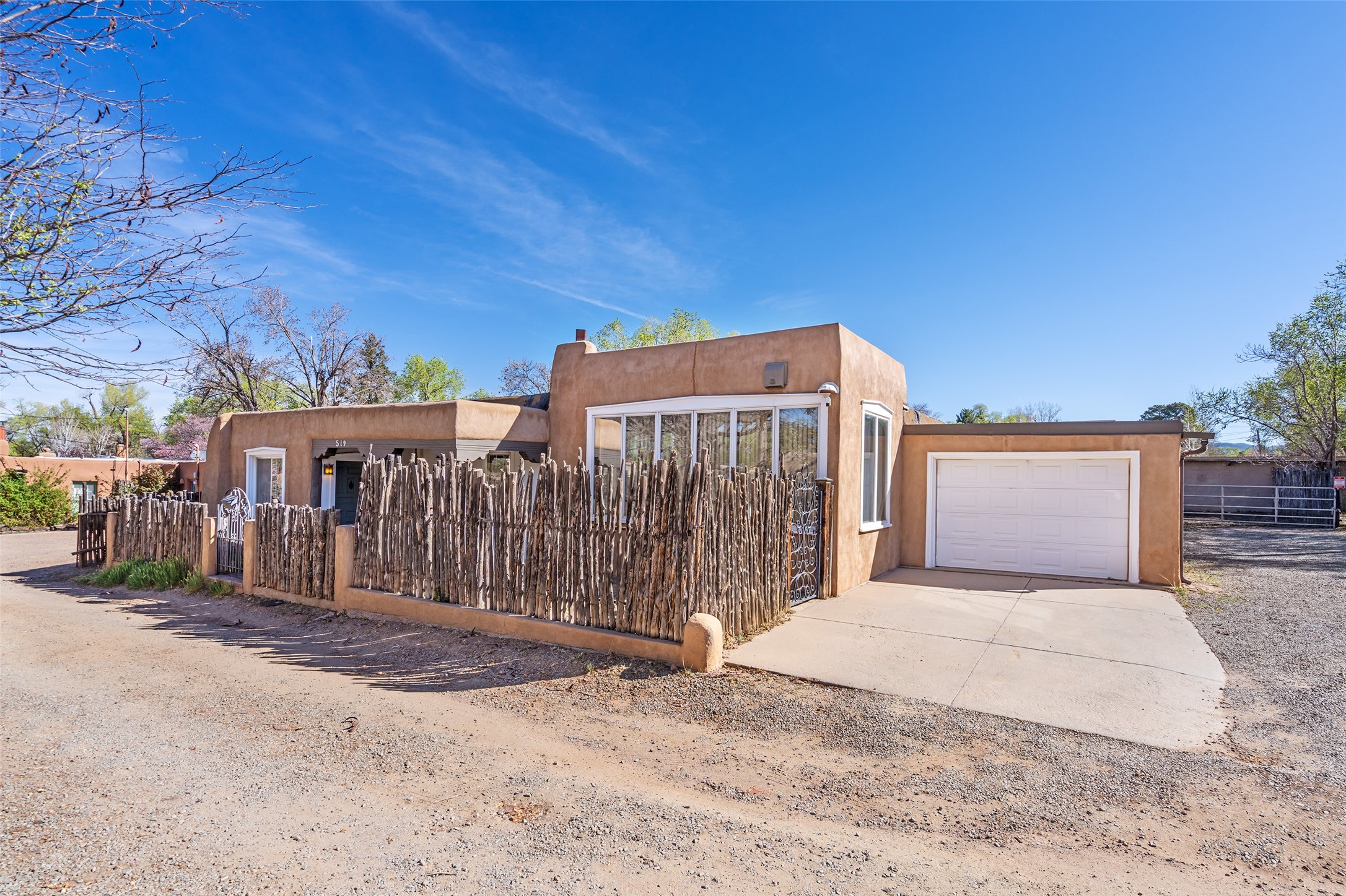 Sited on a remarkably large lot on a quiet, private street in the heart of the Historic Eastside just off Garcia Street and Arroyo Tenorio, this one-of-a-kind property reflects authentic Santa Fe character. The original adobe structure was built in 1937, on land owned by the family for generations dating back to the early 1900s, creating a rare link to the city's past. Over time the home was thoughtfully expanded into the current 3 bedroom, 2 bath residence that retains historic charm while offering comfortable, lived-in spaces. An extraordinary in-house studio provides flexible space for artists, home office, or a creative retreat. Artistic craftsmanship is found throughout: hand-carved wood doors, intricate tile work, stained glass windows, and vibrant mosaic murals--created by family members--all imbue the home with personality and provenance. The property includes a 1 car garage and generous grounds, offering privacy, mature landscaping potential, and room to enhance outdoor living. Located in a treasured neighborhood very close to coffee shops, bookstores, local markets, downtown Santa Fe's galleries, restaurants, and cultural landmarks, this home presents an uncommon opportunity to own a tangible piece of local history with modern possibilities. Ideal for buyers who value authenticity, artisan detail, and a deep connection to place.