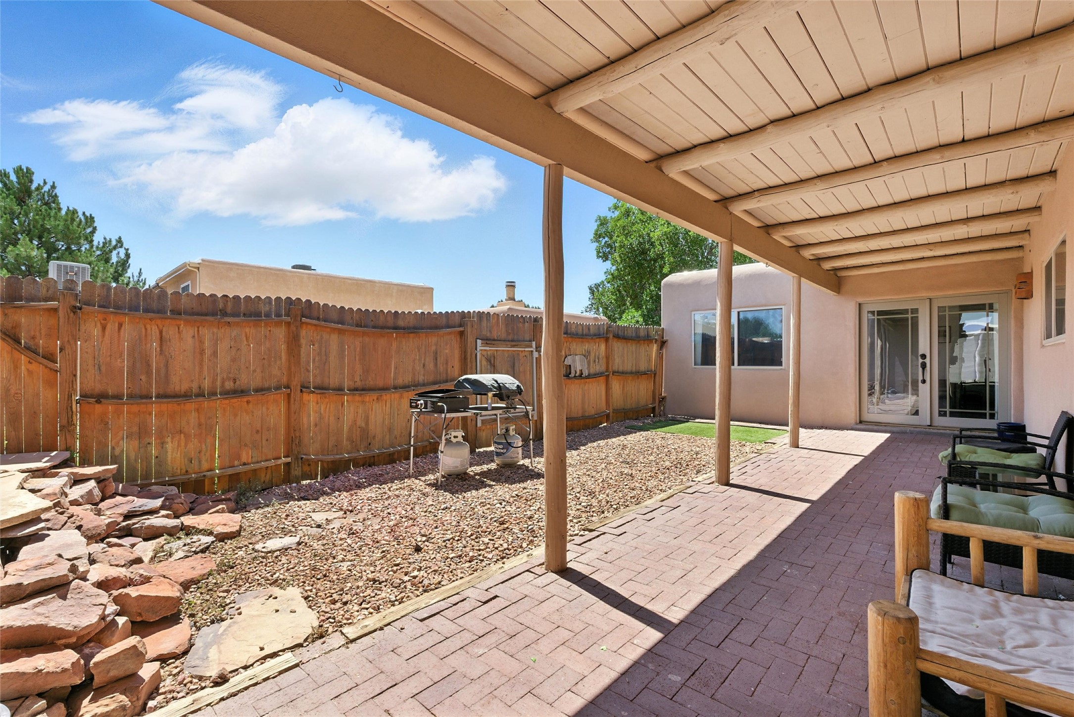 Welcome to 375 Cheryl Court! This light and bright single-level end-unit townhouse offers over 1,500 square feet of stylish and comfortable living in a peaceful setting. With 2 bedrooms and 2 bathrooms, this thoughtfully updated home blends modern finishes with convenience and charm. Come inside to find updated flooring throughout, a spacious kitchen featuring granite countertops, stainless steel appliances, and plenty of cabinetry. The generous primary suite includes a private en suite bathroom and a walk-in closet. Enjoy A/C for those hot summer days, newer windows, refreshed stucco, and the ease of a large carport plus a bonus insulated storage room with electricity--perfect for hobbies, a workshop, or extra storage. A cozy patio area offers a great spot to relax outdoors. Just outside the front door is a beautiful community garden maintained by the HOA, and scenic walking paths lead to Chamisa Elementary just a short stroll away. This is low-maintenance living at its best!