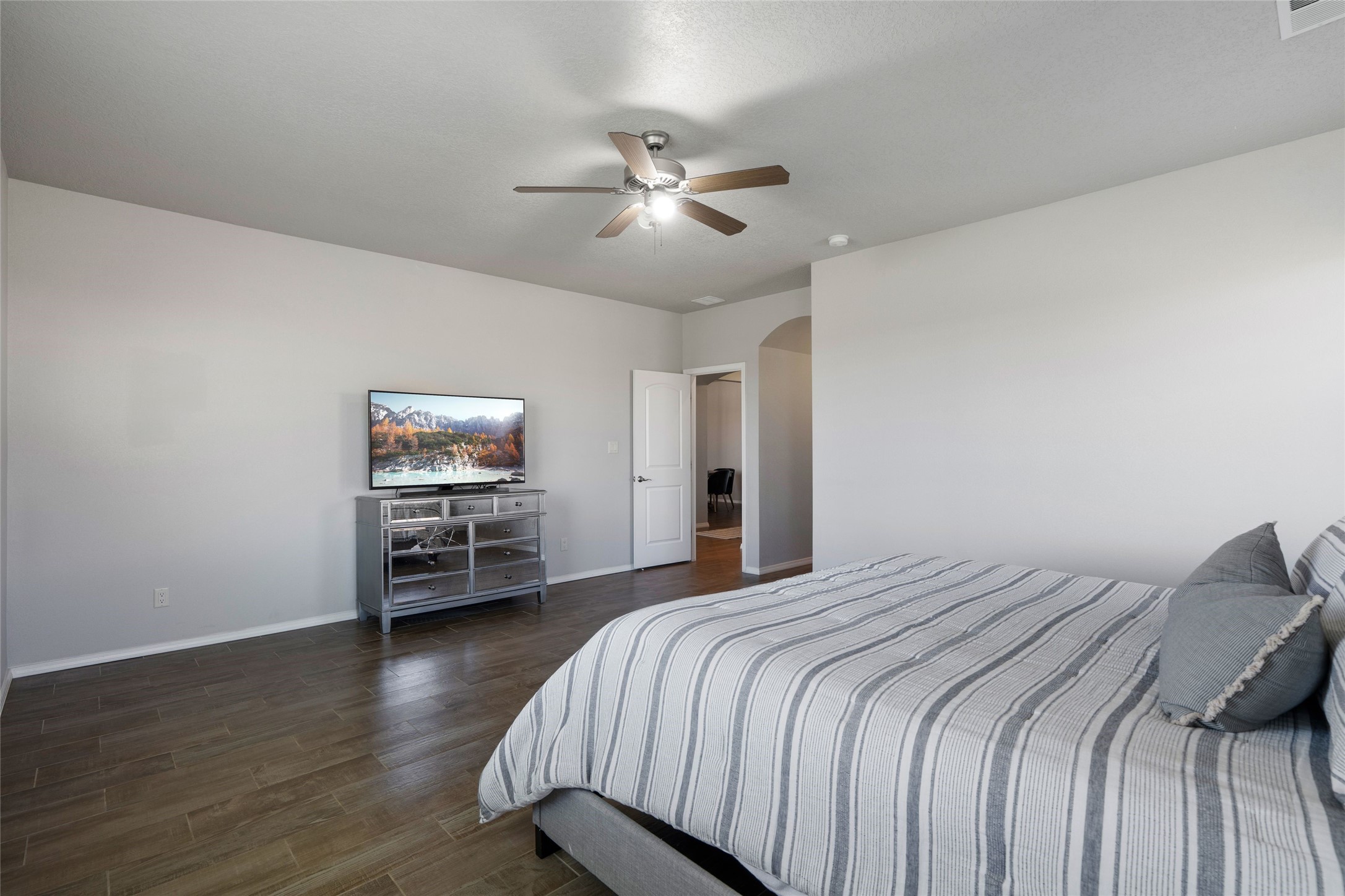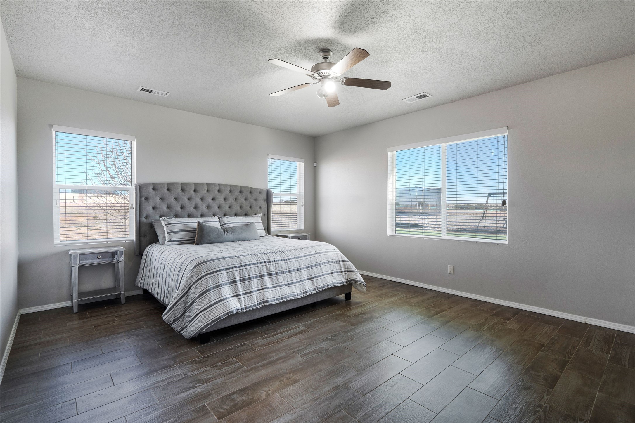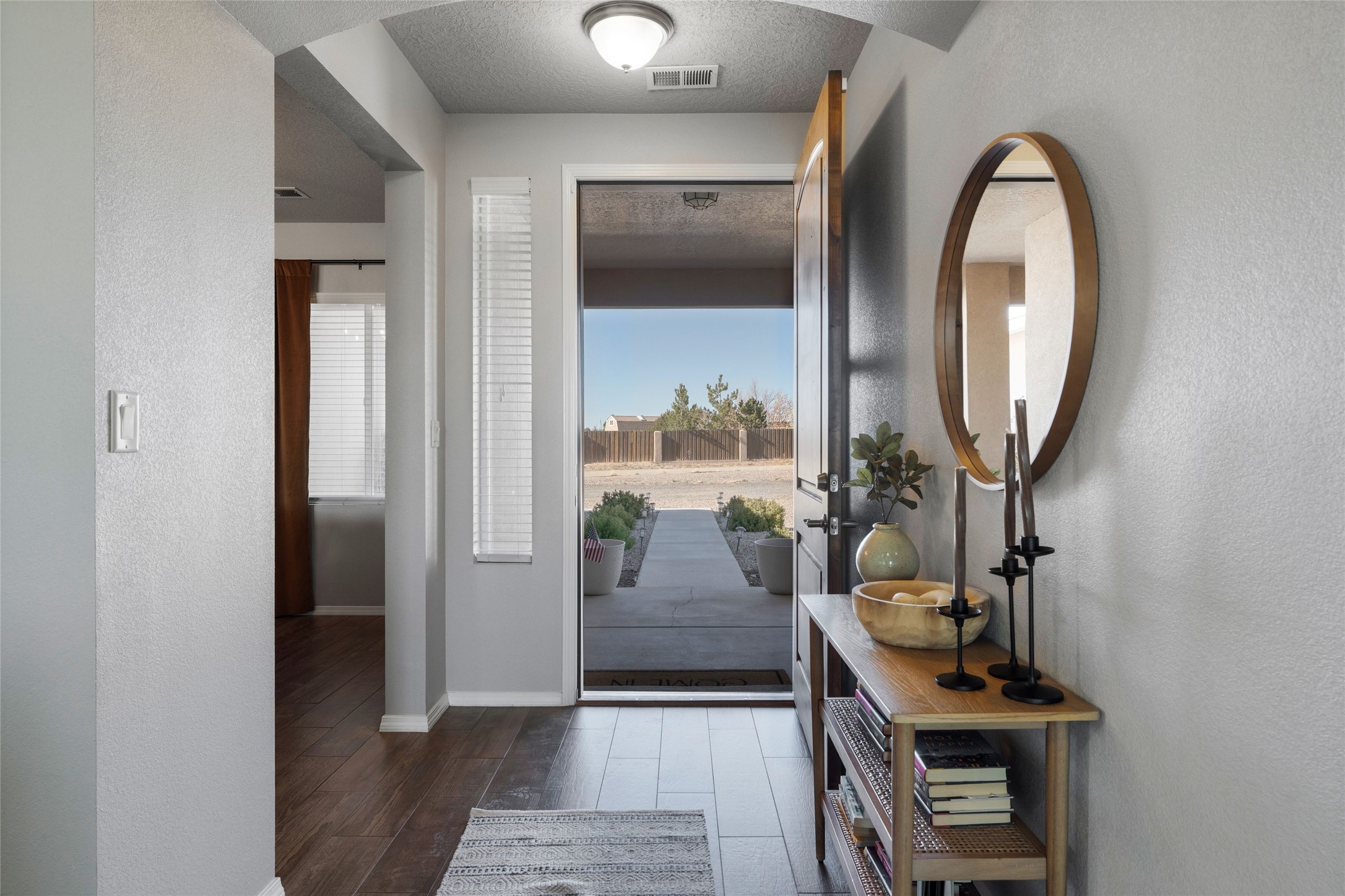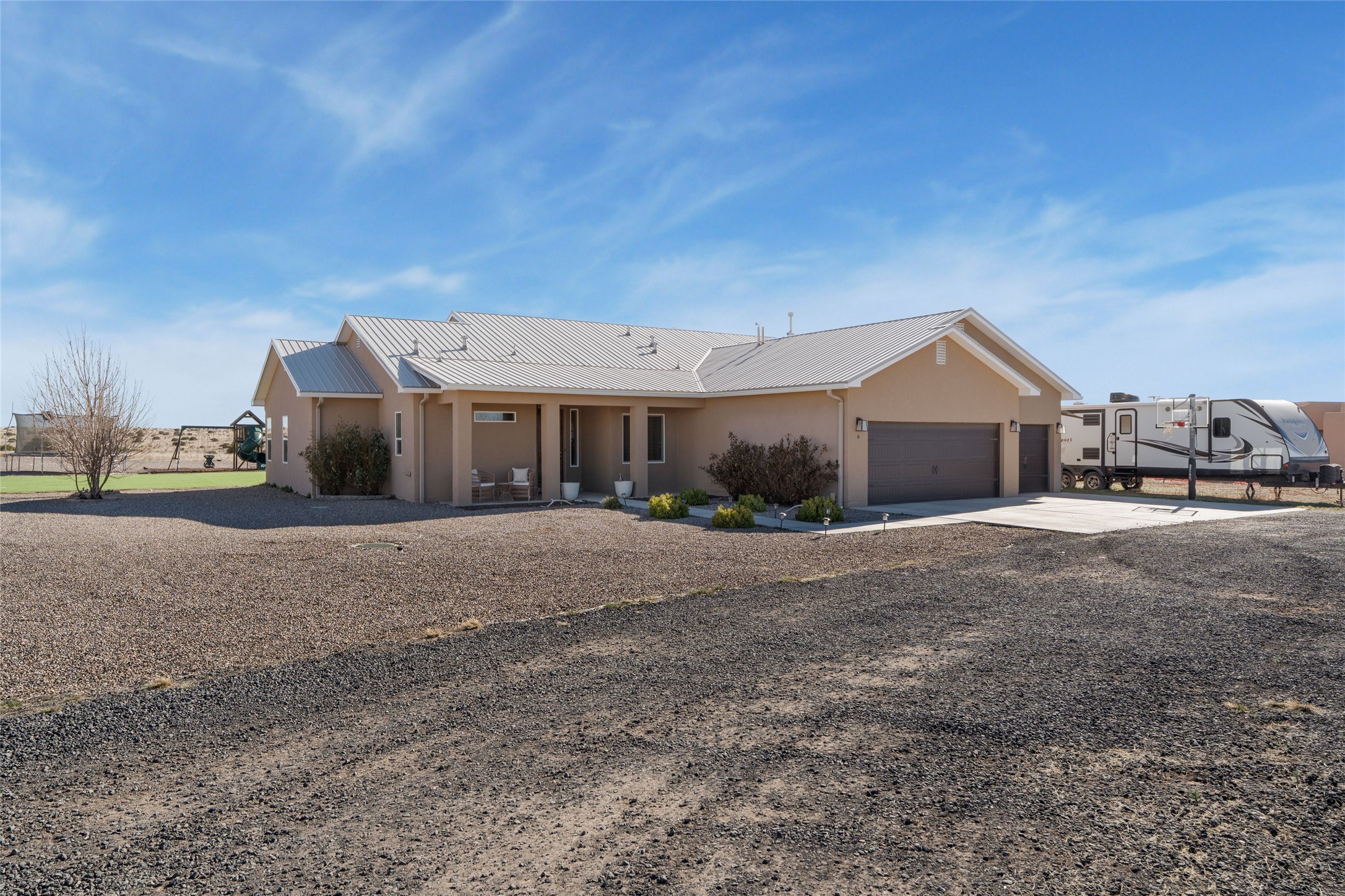 A true entertainer's delight, aesthetically stunning, in a gated community, Valle Serena, built in 2017. This single level home with a pro-panel roof has it all....VIEWS, 1.3 acre lot to spread out, light and bright with high ceilings, 3 bedrooms, including a spacious primary suite with an additional oversized entertaining/studio/ office space (multi purpose room), 3 baths, 3 designated eating areas: Separate Dining Room, Breakfast Nook and Kitchen Island. The meticulously designed home offers the perfect balance of comfort, luxury & livability. CHEF'S KITCHEN is a culinary haven outfitted with premier appliances, custom cabinetry, large island with seating and a generous walk in pantry. The entertainment room has a service bar and is wired for a projection screen. This open concept home shows pride of ownership and has been very well maintained. The attached finished 3 car garage offers 2 oversized spaces as well as additional storage/work space. This home is great for Los Alamos commuters, it's minutes from Hwy 599. There are several Los Alamos commuters in the subdivision! The road to the subdivision, Avenida Del Sur is scheduled to be paved. Quiet and private setting. Move-in ready and waiting for you and your family.