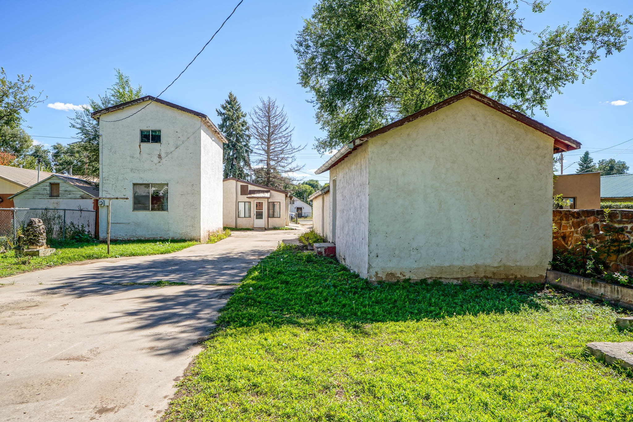 This unique property presents an exceptional investment opportunity with incredible versatility. Situated on over an acre, the property includes two lots and three separate homes, offering endless potential for income generation or multi-generational living. The front home features approximately 1,120 sq. ft. with 3 bedrooms and a bath, while the middle structure is an efficiency apartment complete with a spacious bedroom, living area, and bath. The rear home offers 3 bedrooms, 1.75 baths, and its own 2-car garage, providing additional comfort and privacy. The property also includes a detached 2-car garage, a detached single-car garage, multiple storage sheds, and various outbuildings--ideal for hobbyists, storage, or workspace needs. Mature trees and a beautiful rock wall enhance the property's character and outdoor appeal. Whether you're looking to live in one unit and rent the others or create a private compound-style retreat, this property offers a rare opportunity to maximize both lifestyle and income potential. Property is being sold as-is, and the price reflects its current condition.
