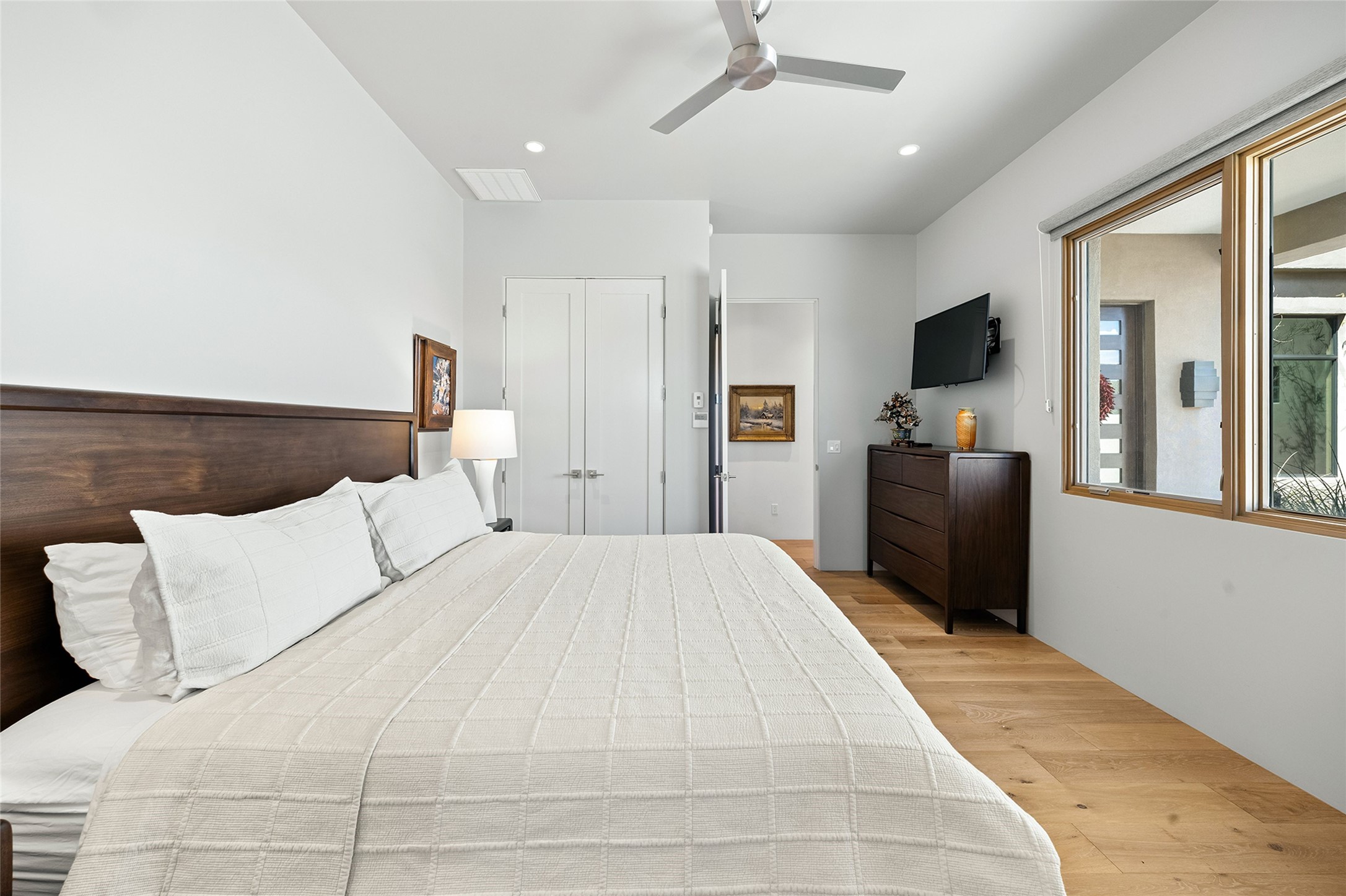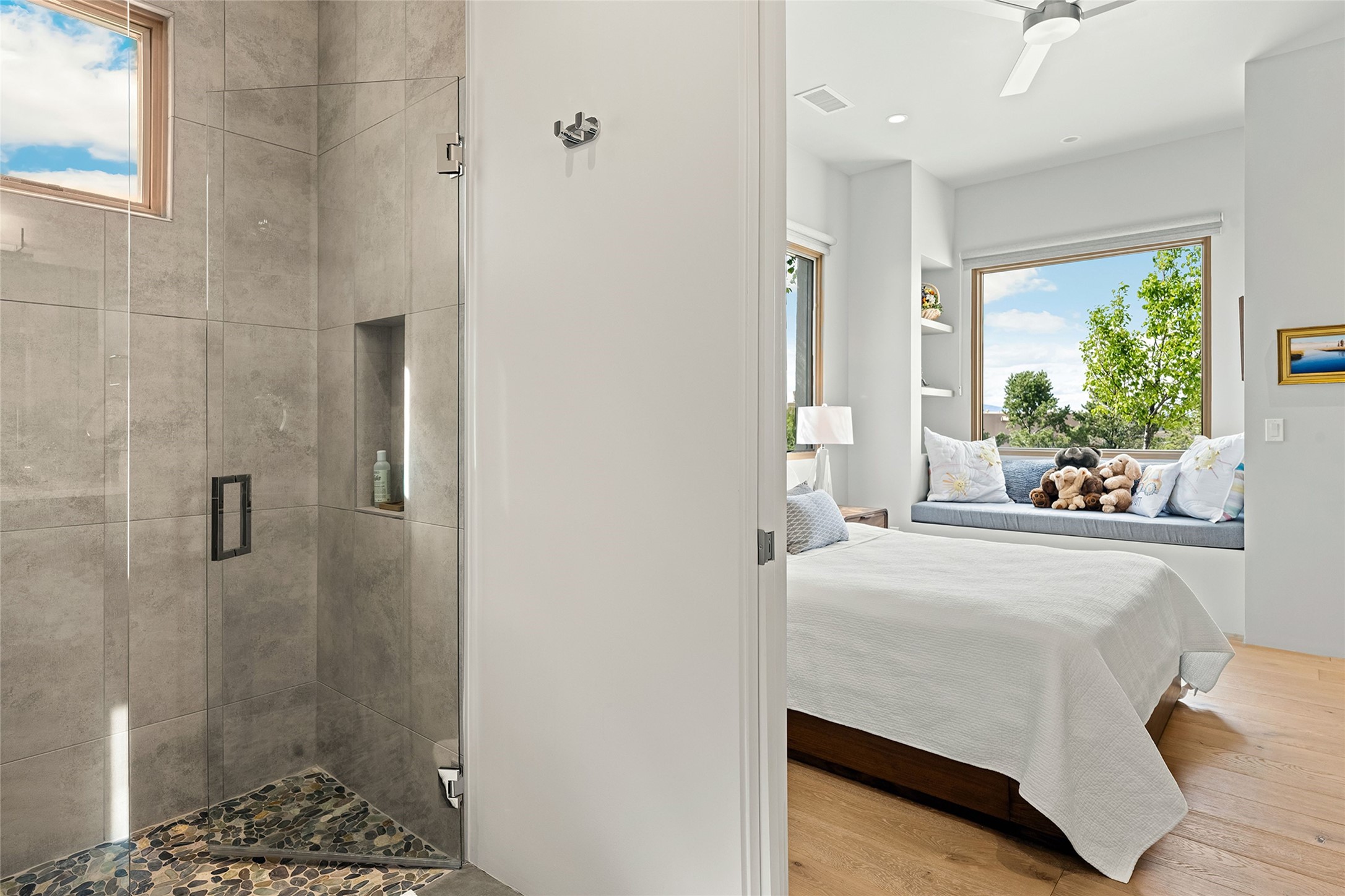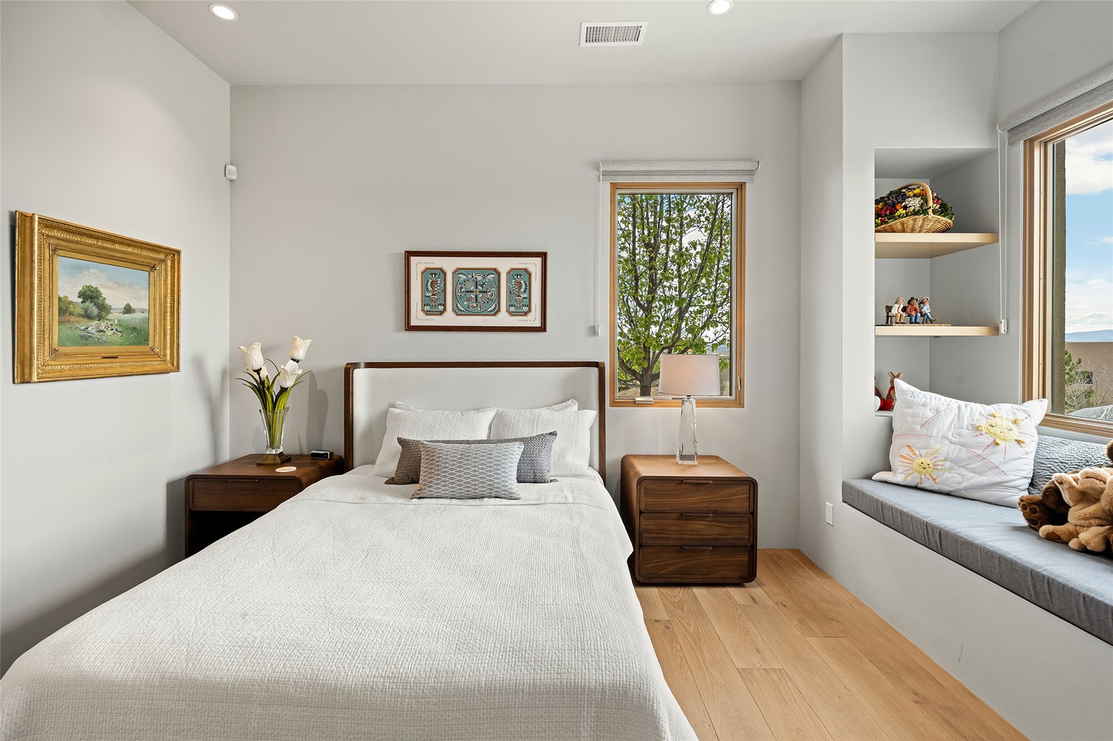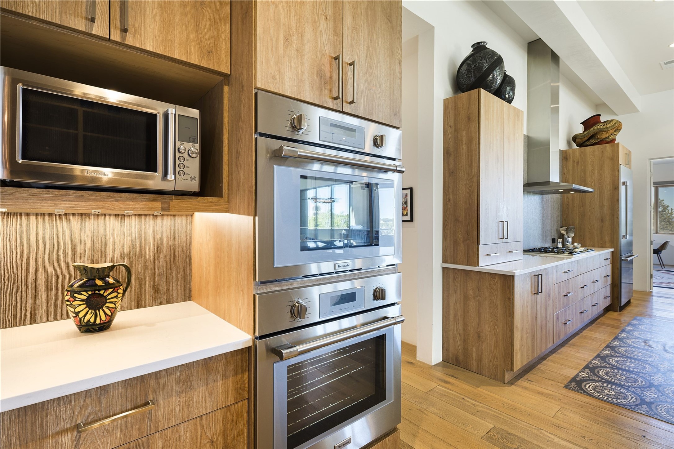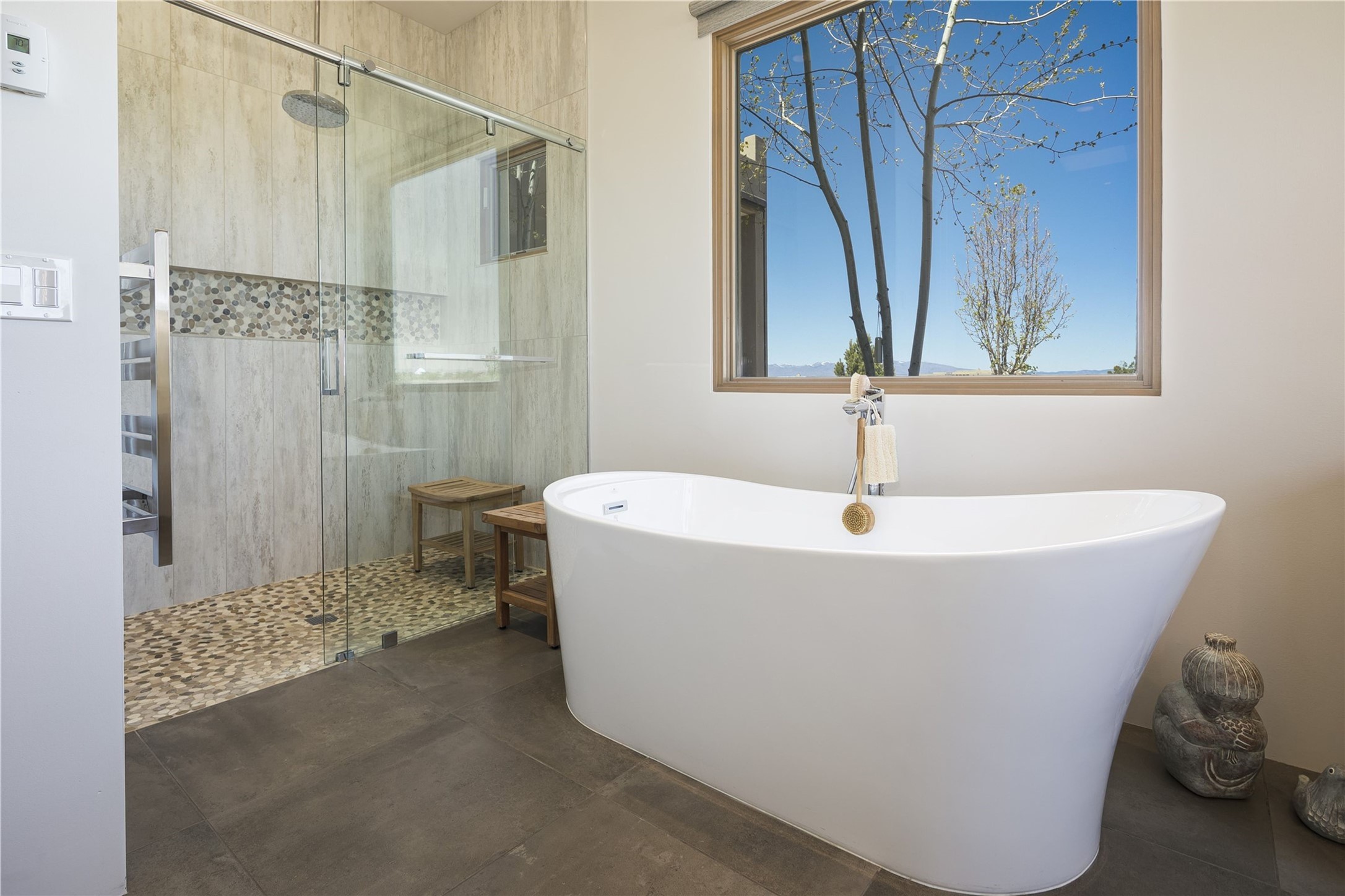This Las Campanas masterpiece by award-winning builder Frank Yardman defines high-desert luxury. A true architectural tour de force, this sophisticated residence captures sweeping Sangre de Cristo and Jemez Mountain views, blending modern elegance with the quintessential Santa Fe lifestyle. The open-concept living and dining areas are designed for seamless entertaining, featuring retractable glass walls that perfectly frame mountain vistas and create the ultimate indoor-outdoor experience. The chef's kitchen is a culinary delight, equipped with state-of-the-art Thermador appliances, a massive breakfast bar, and a full butler's pantry--all of which opens to the primary dining and entertainment spaces. The spacious, private owner's suite impresses with panoramic mountain views and a spa-inspired bath featuring a glass shower, freestanding soaking tub, dual vanities, a vanity closet, and two large walk-in closets. Located in separate wings of the home, two additional ensuite bedrooms offer comfort and privacy for guests. Versatility abounds with a generous office featuring built-in cabinetry, an exercise room (or secondary office), and a cozy media den located directly off the kitchen. The incredible outdoor living experience was designed by renowned landscape architect Solange Serquis. Recent updates include a modern concrete driveway and a custom metal entrance gate that sets a tone of sophistication. The outdoor living areas have been further expanded with courtyard walls, premium hardscaping, and a kiva fireplace situated perfectly off the outdoor kitchen. Located just minutes from the world-class amenities of The Club at Las Campanas, this exceptional residence is move-in ready. Most furnishings and the owner's Equity Golf Membership are also available for purchase on a separate bill of sale.