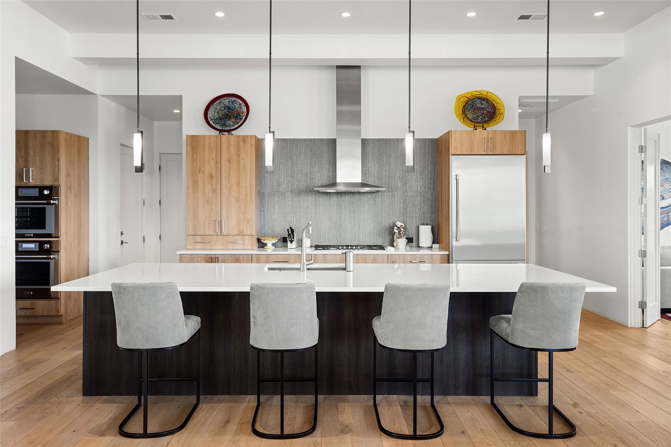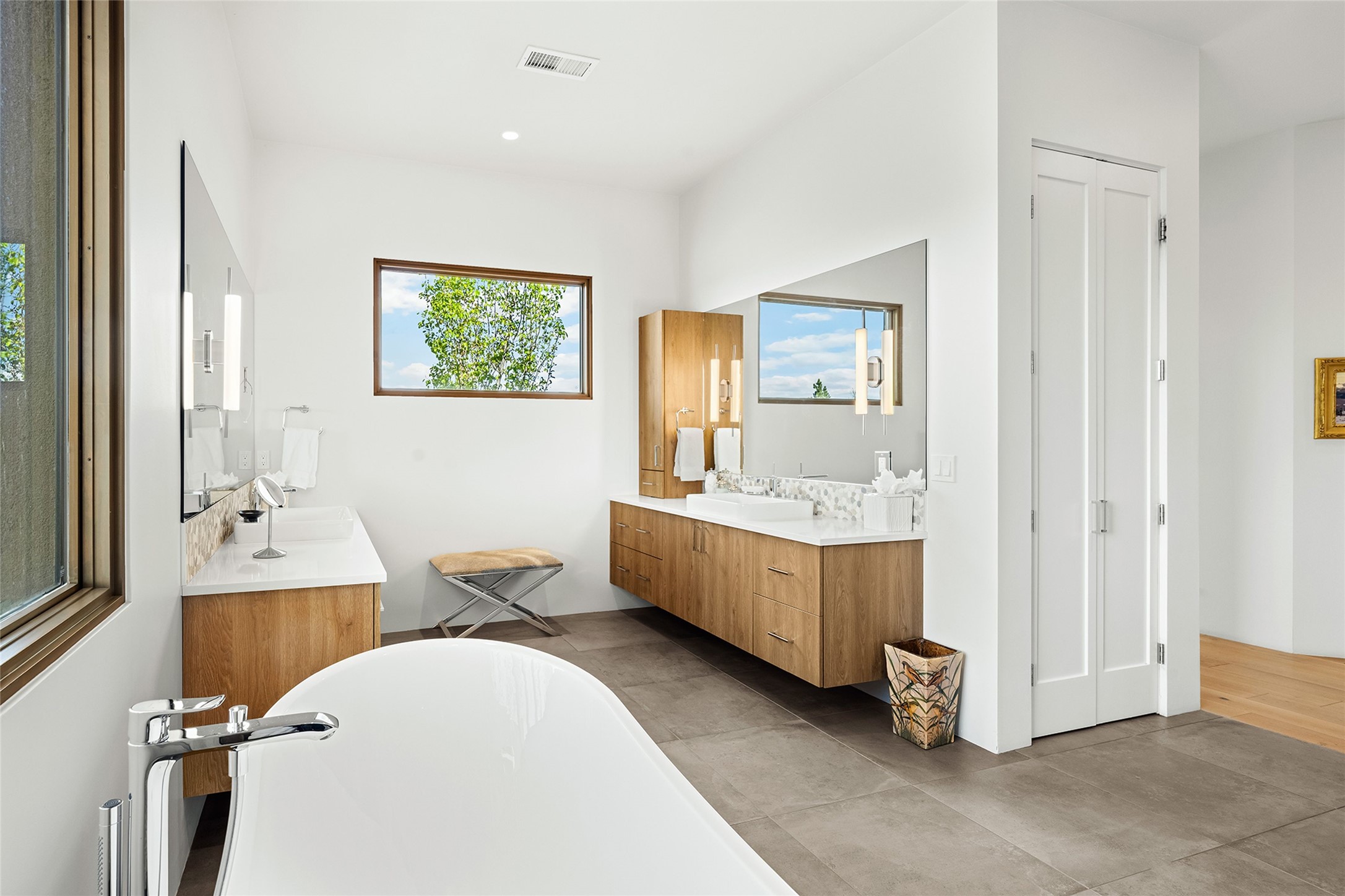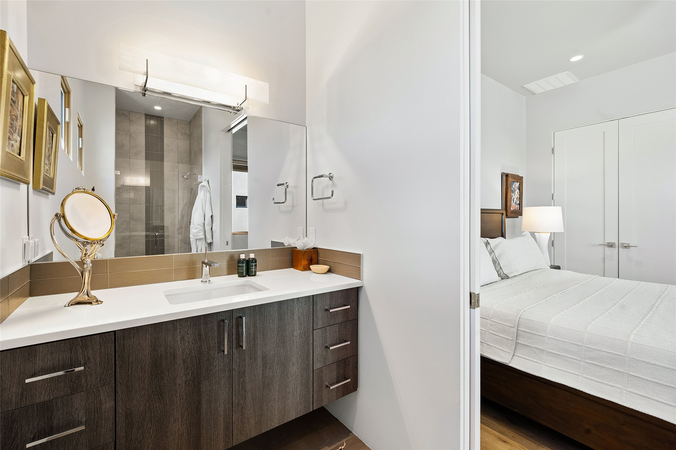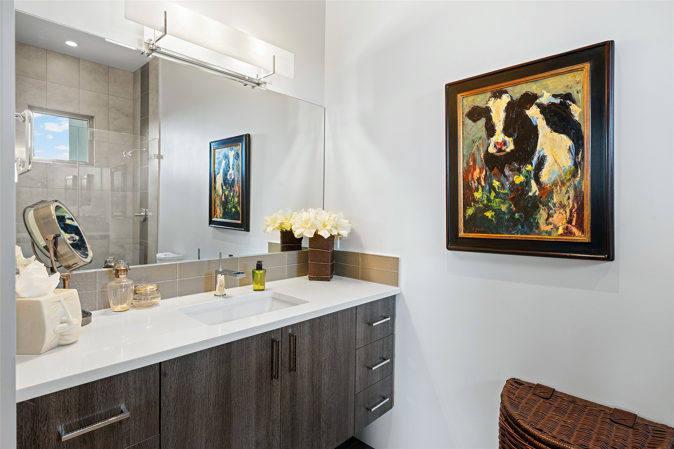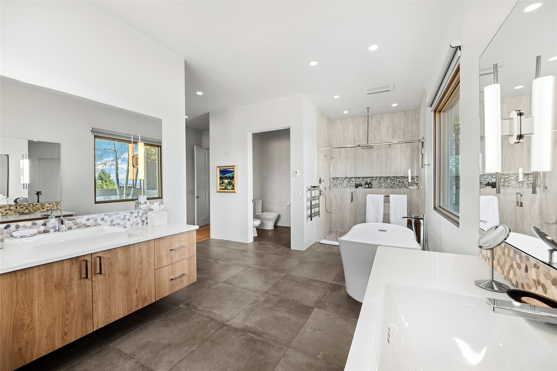 This Las Campanas masterpiece by award-winning builder Frank Yardman defines high-desert luxury. A true architectural tour de force, this sophisticated residence captures sweeping Sangre de Cristo and Jemez Mountain views, blending modern elegance with the quintessential Santa Fe lifestyle. The open-concept living and dining areas are designed for seamless entertaining, featuring retractable glass walls that perfectly frame mountain vistas and create the ultimate indoor-outdoor experience. The chef's kitchen is a culinary delight, equipped with state-of-the-art Thermador appliances, a massive breakfast bar, and a full butler's pantry--all of which opens to the primary dining and entertainment spaces. The spacious, private owner's suite impresses with panoramic mountain views and a spa-inspired bath featuring a glass shower, freestanding soaking tub, dual vanities, a vanity closet, and two large walk-in closets. Located in separate wings of the home, two additional ensuite bedrooms offer comfort and privacy for guests. Versatility abounds with a generous office featuring built-in cabinetry, an exercise room (or secondary office), and a cozy media den located directly off the kitchen. The incredible outdoor living experience was designed by renowned landscape architect Solange Serquis. Recent updates include a modern concrete driveway and a custom metal entrance gate that sets a tone of sophistication. The outdoor living areas have been further expanded with courtyard walls, premium hardscaping, and a kiva fireplace situated perfectly off the outdoor kitchen. Located just minutes from the world-class amenities of The Club at Las Campanas, this exceptional residence is move-in ready. Most furnishings and the owner's Equity Golf Membership are also available for purchase on a separate bill of sale.