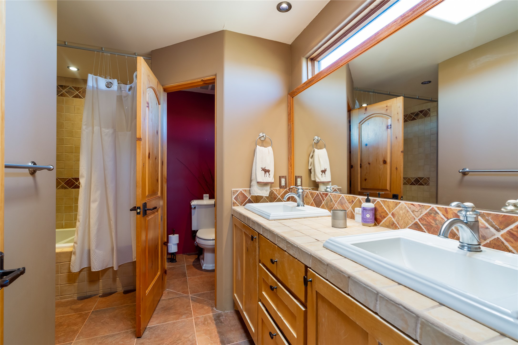 Set on a premier ridge-top lot in The Ridges, this 3.78+/- acre property offers exceptional privacy and sweeping views across nearly 2,000 acres of bordering open space and surrounding mountain ranges. The setting delivers a rare sense of space and quiet while still being conveniently located near the amenities of Eldorado and approximately 25 minutes to the Santa Fe Plaza. Built in 2002 and well-maintained, the 2,433+/- sq ft home features classic Santa Fe architecture with a functional single-level layout. The main living area showcases high ceilings with exposed vigas, a kiva fireplace, and large windows that capture the expansive views, while multiple skylights throughout the home bring in abundant natural light. Hand-carved posts and hard trowel plaster walls in the main living area and primary suite add warmth and craftsmanship throughout. The kitchen opens to the living and dining areas and features custom cabinetry, tile countertops, and a central island, creating an inviting space for everyday living and entertaining. The home offers three bedrooms and a well-balanced layout with one full bath, one 3/4 bath, and one 1/2 bath. The primary suite includes its own kiva fireplace, viga ceilings, and a comfortable, private retreat. Outdoor living is a standout feature, with multiple areas to take in the big skies, sunsets, and surrounding landscape. A new hot tub is included, providing the perfect place to unwind and enjoy the setting. A new roof was installed on September 22, 2025 and includes a 10-year transferable warranty, offering added peace of mind. The oversized finished garage provides flexibility for a workshop, studio, or additional storage. Horses are allowed on the property, with ample space to add facilities if desired. A rare opportunity to own a true ridge-top property with privacy, character, and convenience in one of the area's most desirable settings.