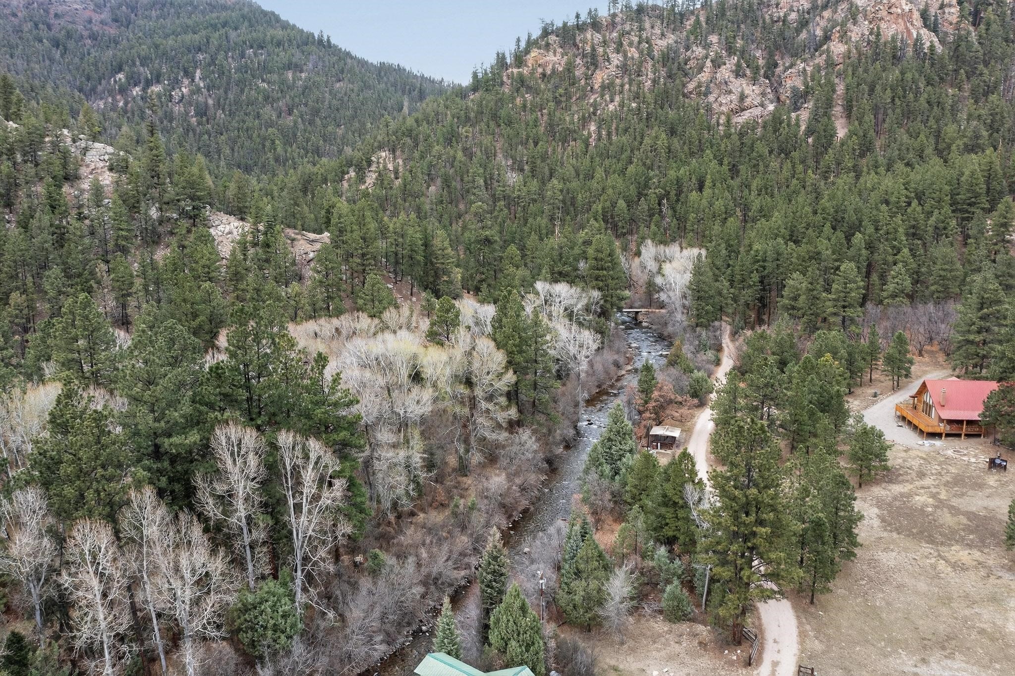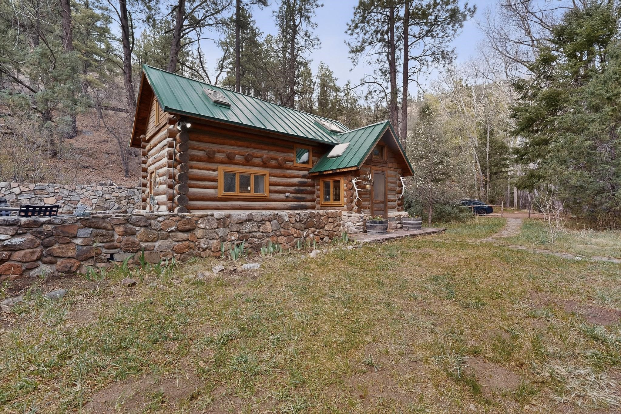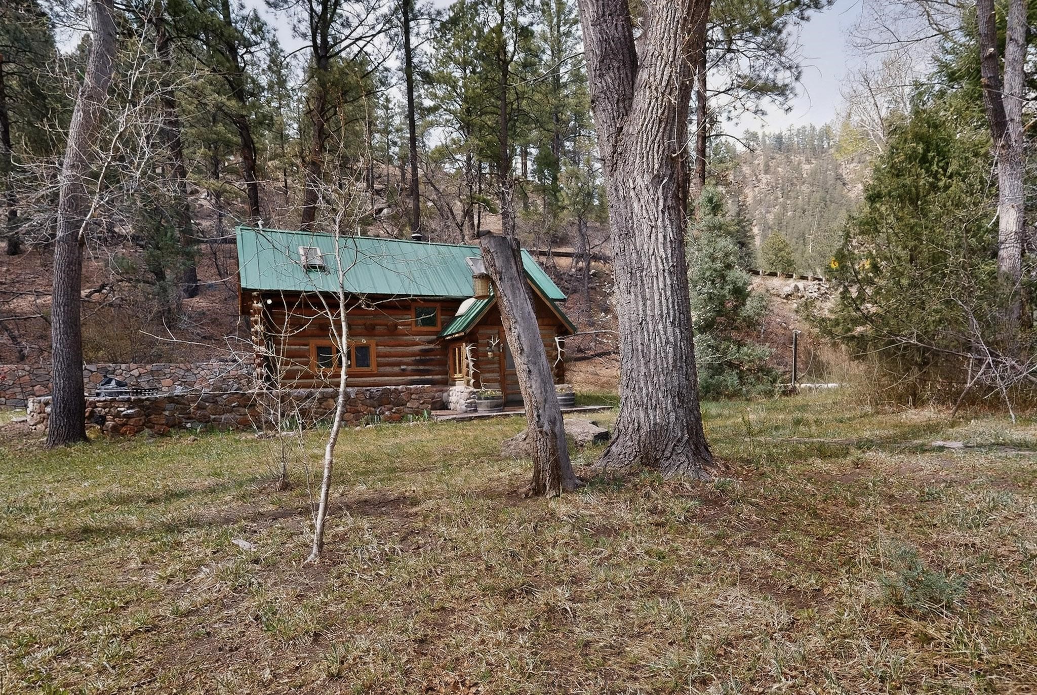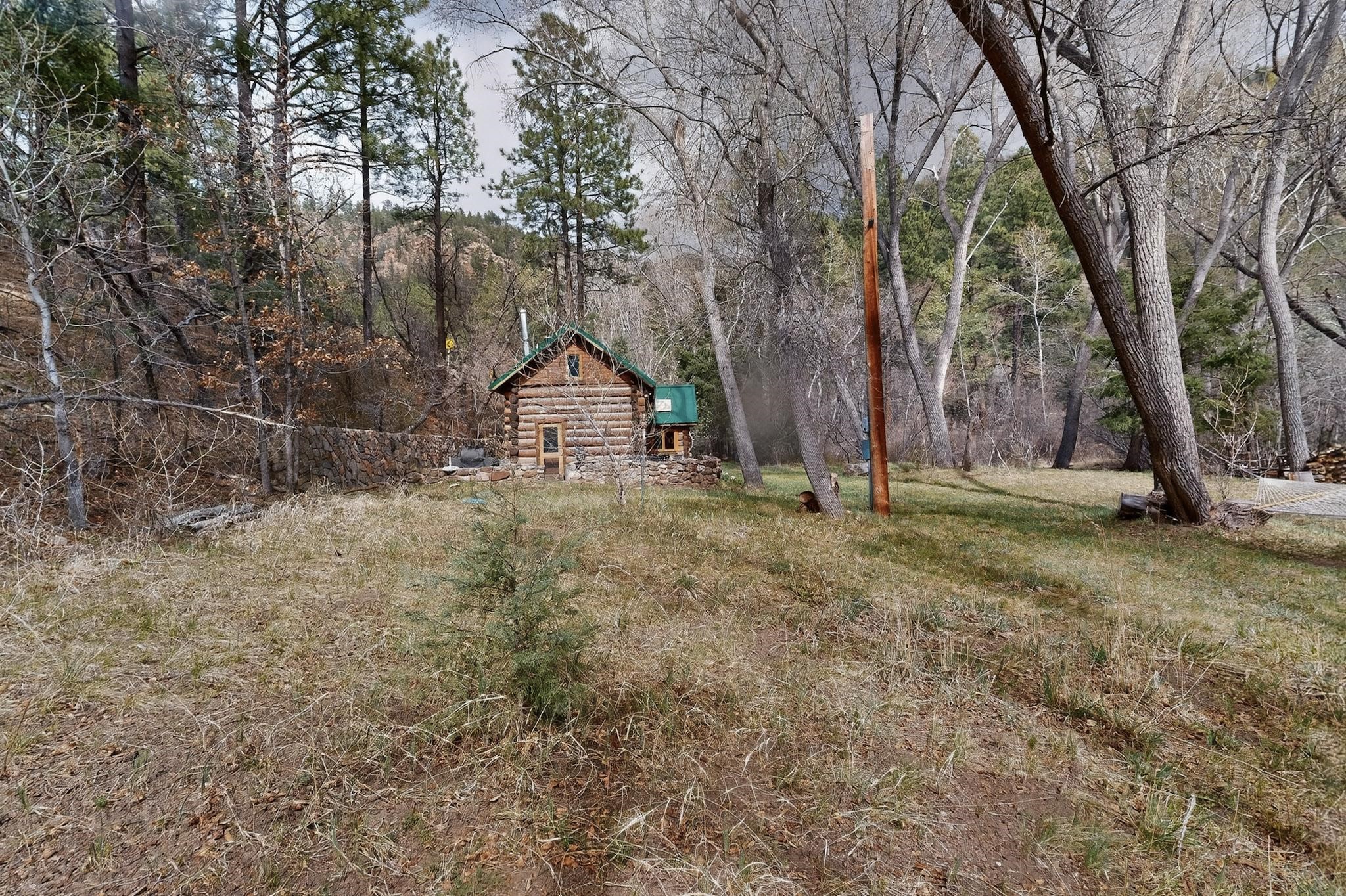 Adorable Storybook log cabin located on 360 +/- feet of Pecos River frontage, 10 miles above the Village of Pecos immediately before Windy Bridge. Properties of this type and quality are rarely offered for sale. The cabin has been an AirB&B offering for a number of years and our sellers are conveying domain names: PecosRiverCabin and Cabin on the Pecos. The setting includes a beautiful meadow, wooded bosque, healthy ponderosa pine, cotton willow, spruce trees and a large portion of an island accessed from a sweet bridge. The Pecos river frontage is significant with several openings for fishing and rapids towards the north end of the lot. The log cabin is quite stunning with a pitched pro-panel roof, skylights, river rock foundation, patio walls, livingroom, country kitchen, 1 bedroom, 1 bathroom and a laundry area. Improvements include new furnace, wood burning stove, new washer & dryer, upgraded electrical panel with additional GFI's in kitchen and bath, Centurylink land line telephone, on demand hot water heater, WiFi repeater in the garden house bringing the internet throughout the yard and patio. There is a separate 8'2 1/2"x 8' bonus building with electricity, solid entry door and view windows. All of the furniture, furnishings, tools, gardening supplies needed for a country get-a-way or for an income producing recreational retreat will be included with the purchase. There is no Home owner's Association just State and County regulations. The adjoining area to the kitchen could work for an expansion of the cabin footprint. The site is frequented by wildlife: deer, turkeys, skunks, fox, raccoons and occasionally a bear. For folks seeking a one of a kind river front destination property, please consider 1 McFerrin Taylor Rd, Pecos Canyon.