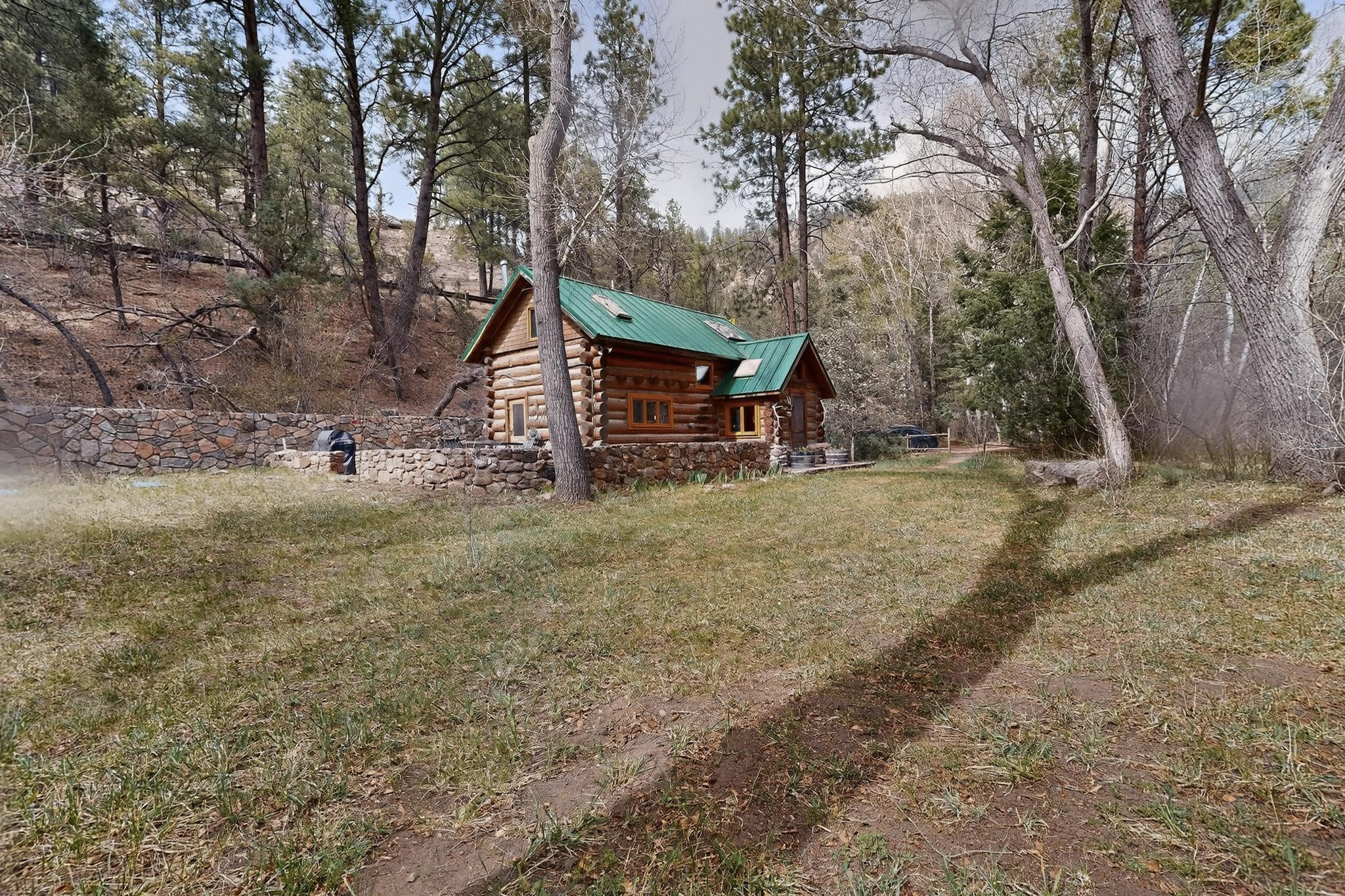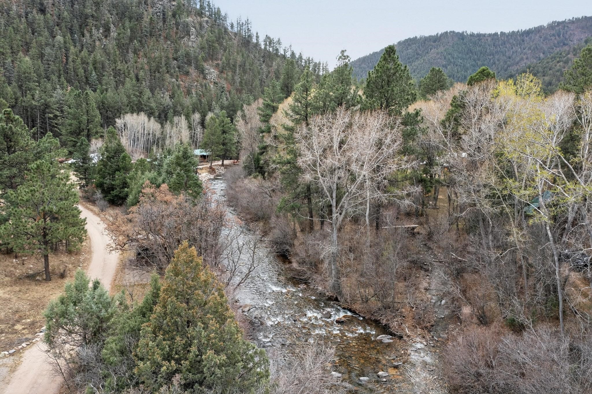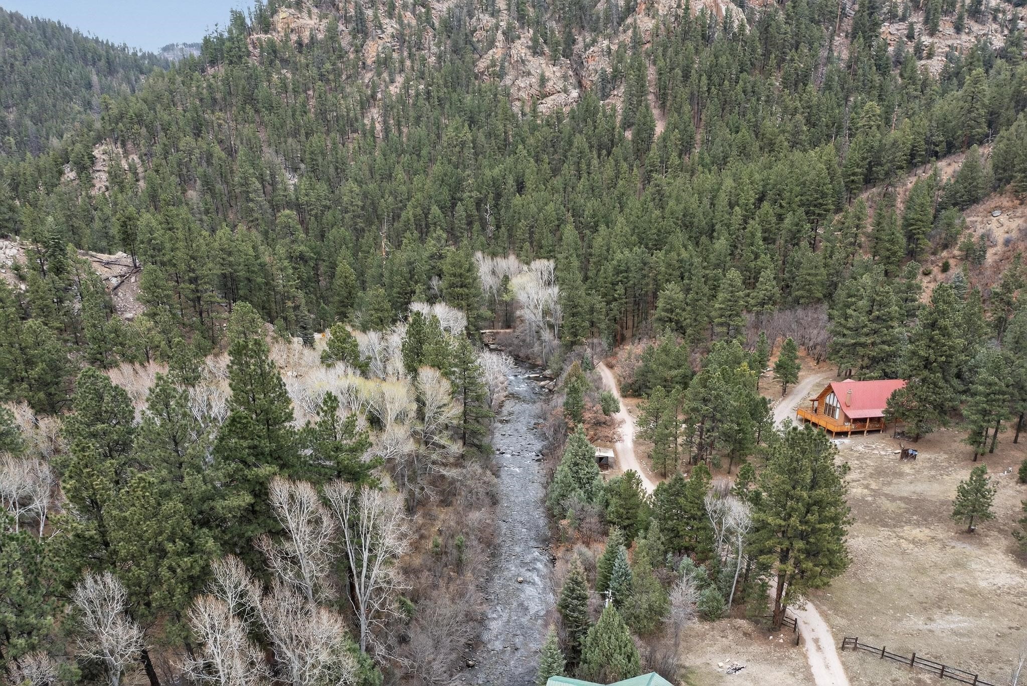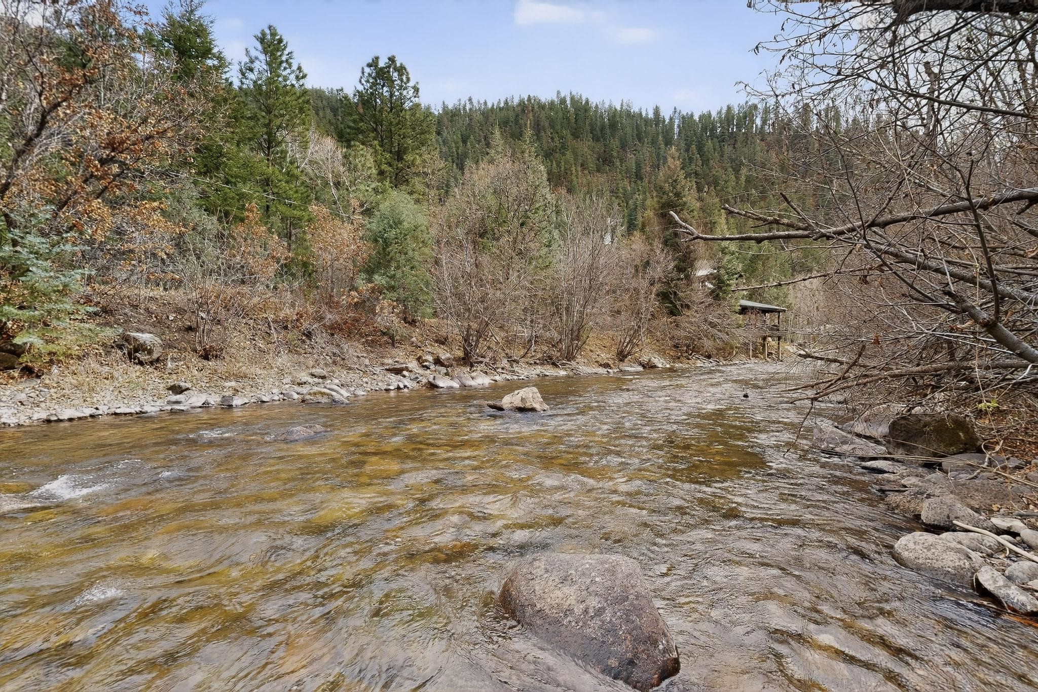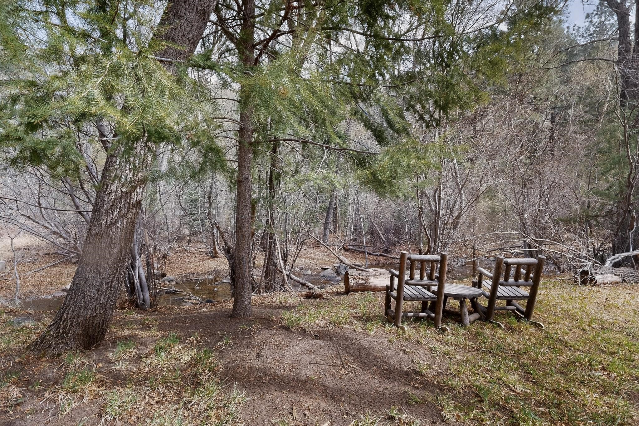 Adorable Storybook log cabin located on 360 +/- feet of Pecos River frontage, 10 miles above the Village of Pecos immediately before Windy Bridge. Properties of this type and quality are rarely offered for sale. The cabin has been an AirB&B offering for a number of years and our sellers are conveying domain names: PecosRiverCabin and Cabin on the Pecos. The setting includes a beautiful meadow, wooded bosque, healthy ponderosa pine, cotton willow, spruce trees and a large portion of an island accessed from a sweet bridge. The Pecos river frontage is significant with several openings for fishing and rapids towards the north end of the lot. The log cabin is quite stunning with a pitched pro-panel roof, skylights, river rock foundation, patio walls, livingroom, country kitchen, 1 bedroom, 1 bathroom and a laundry area. Improvements include new furnace, wood burning stove, new washer & dryer, upgraded electrical panel with additional GFI's in kitchen and bath, Centurylink land line telephone, on demand hot water heater, WiFi repeater in the garden house bringing the internet throughout the yard and patio. There is a separate 8'2 1/2"x 8' bonus building with electricity, solid entry door and view windows. All of the furniture, furnishings, tools, gardening supplies needed for a country get-a-way or for an income producing recreational retreat will be included with the purchase. There is no Home owner's Association just State and County regulations. The adjoining area to the kitchen could work for an expansion of the cabin footprint. The site is frequented by wildlife: deer, turkeys, skunks, fox, raccoons and occasionally a bear. For folks seeking a one of a kind river front destination property, please consider 1 McFerrin Taylor Rd, Pecos Canyon.