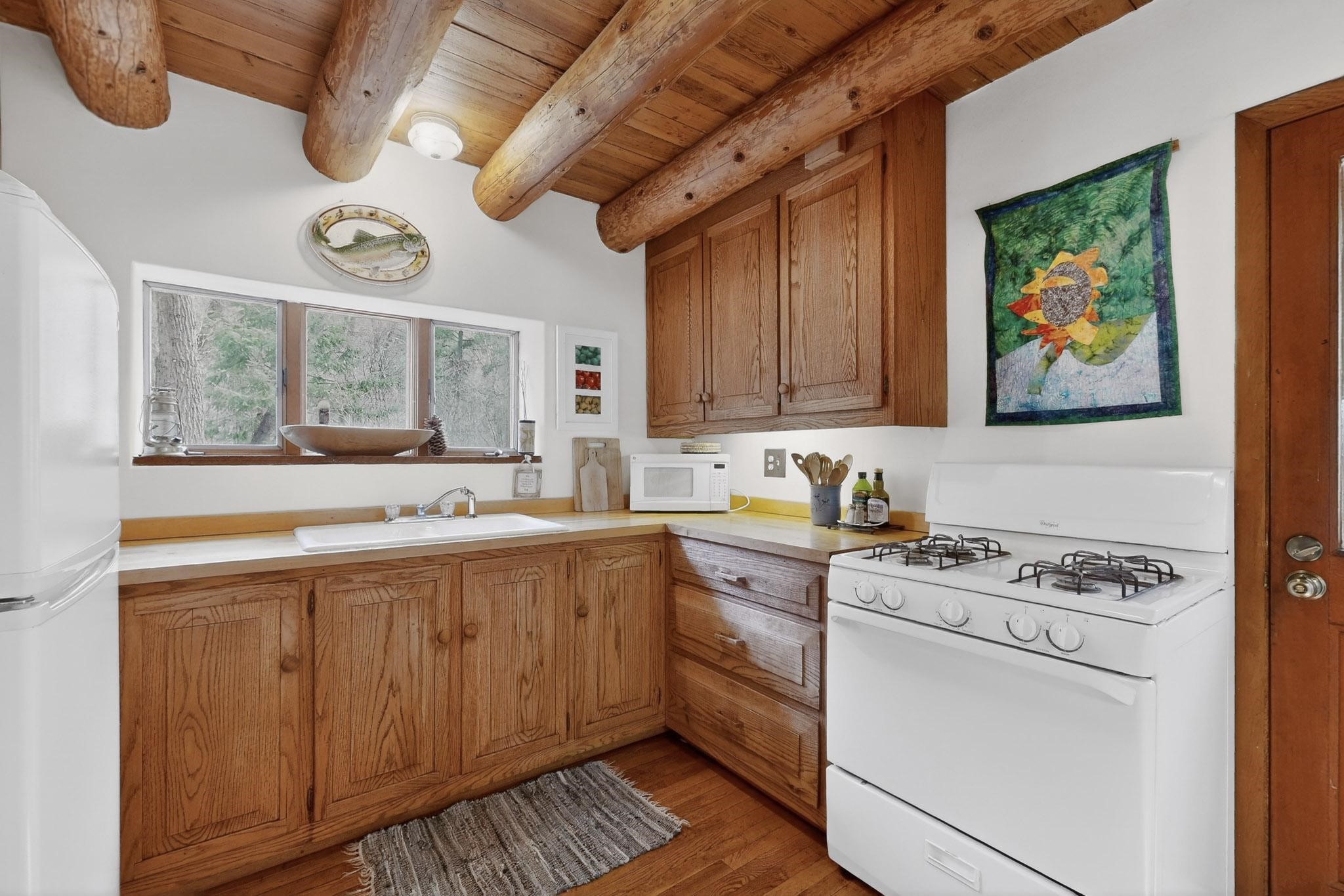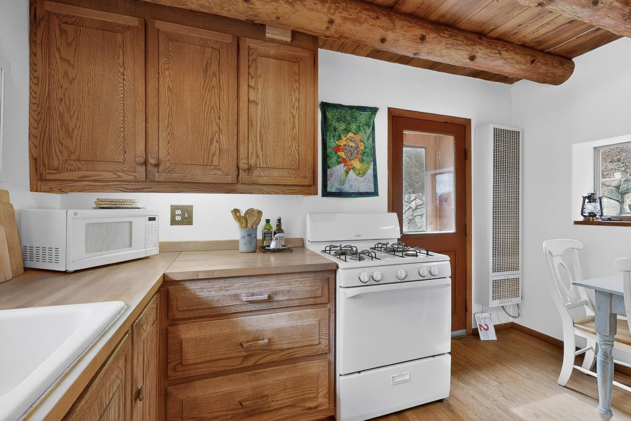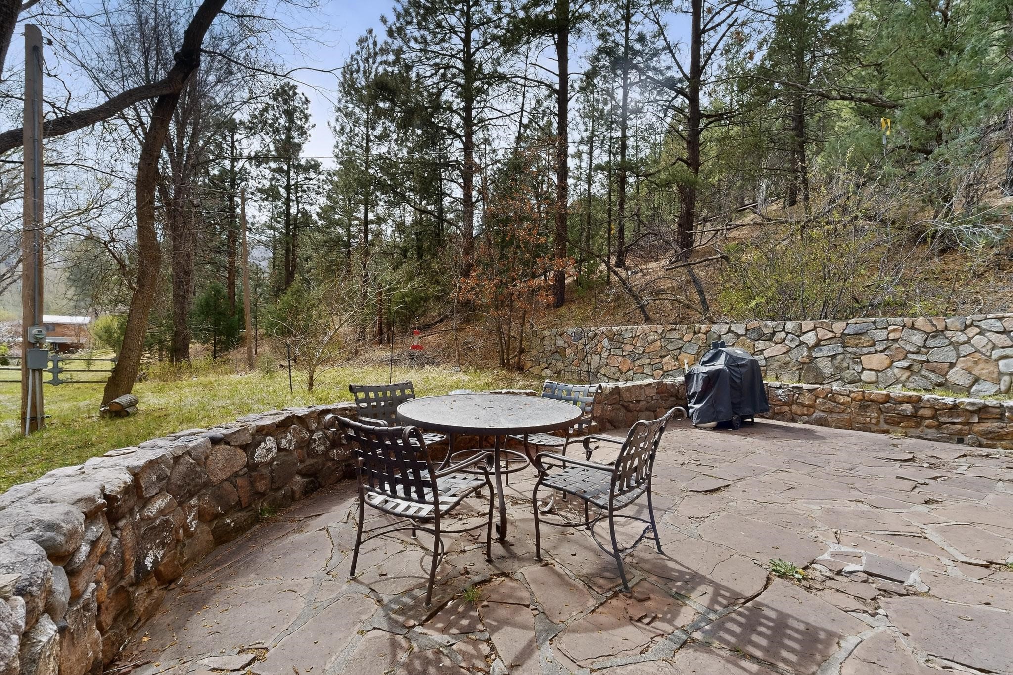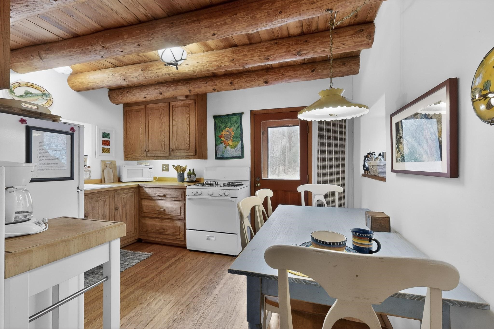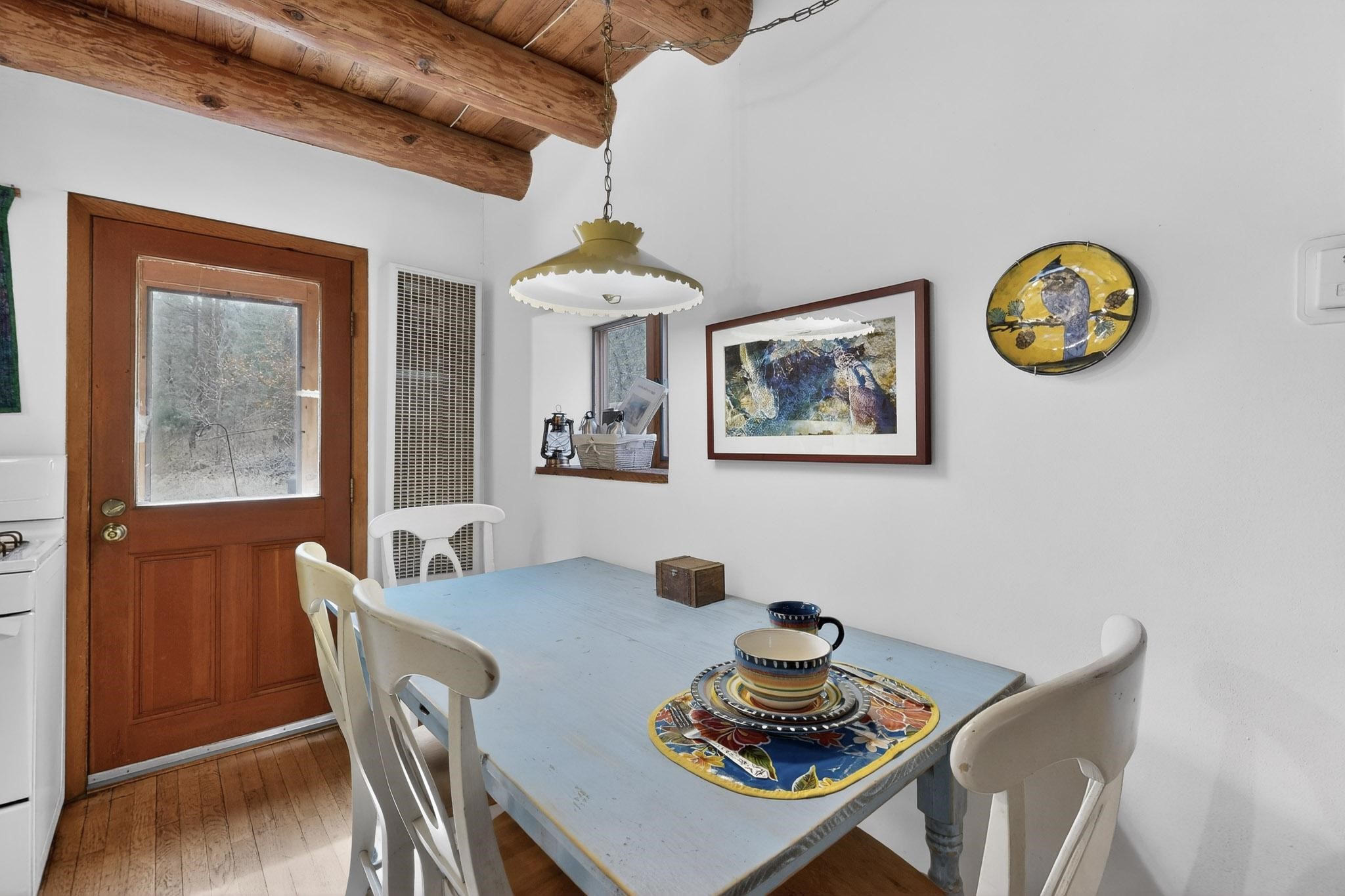 Adorable Storybook log cabin located on 360 +/- feet of Pecos River frontage, 10 miles above the Village of Pecos immediately before Windy Bridge. Properties of this type and quality are rarely offered for sale. The cabin has been an AirB&B offering for a number of years and our sellers are conveying domain names: PecosRiverCabin and Cabin on the Pecos. The setting includes a beautiful meadow, wooded bosque, healthy ponderosa pine, cotton willow, spruce trees and a large portion of an island accessed from a sweet bridge. The Pecos river frontage is significant with several openings for fishing and rapids towards the north end of the lot. The log cabin is quite stunning with a pitched pro-panel roof, skylights, river rock foundation, patio walls, livingroom, country kitchen, 1 bedroom, 1 bathroom and a laundry area. Improvements include new furnace, wood burning stove, new washer & dryer, upgraded electrical panel with additional GFI's in kitchen and bath, Centurylink land line telephone, on demand hot water heater, WiFi repeater in the garden house bringing the internet throughout the yard and patio. There is a separate 8'2 1/2"x 8' bonus building with electricity, solid entry door and view windows. All of the furniture, furnishings, tools, gardening supplies needed for a country get-a-way or for an income producing recreational retreat will be included with the purchase. There is no Home owner's Association just State and County regulations. The adjoining area to the kitchen could work for an expansion of the cabin footprint. The site is frequented by wildlife: deer, turkeys, skunks, fox, raccoons and occasionally a bear. For folks seeking a one of a kind river front destination property, please consider 1 McFerrin Taylor Rd, Pecos Canyon.