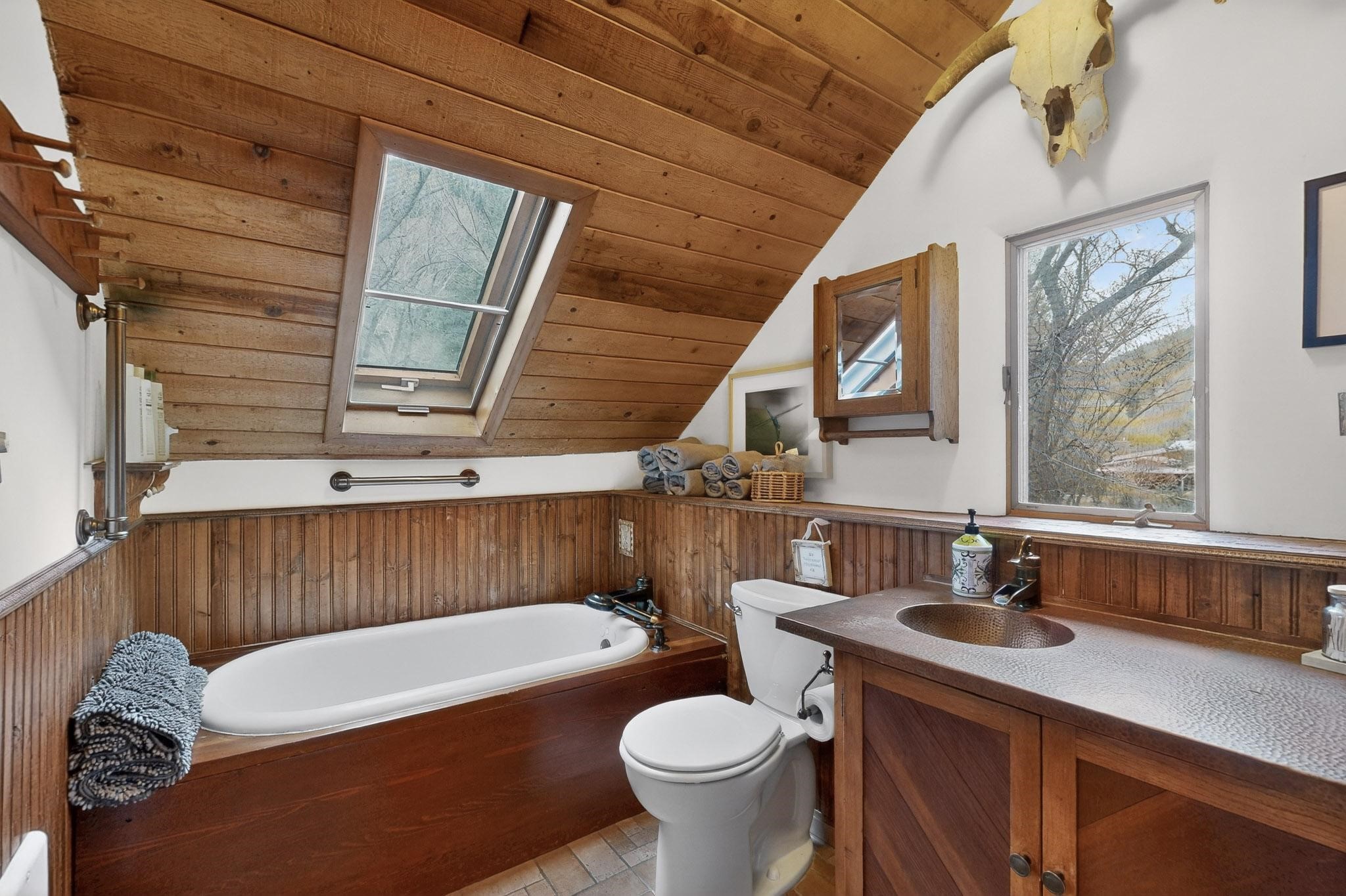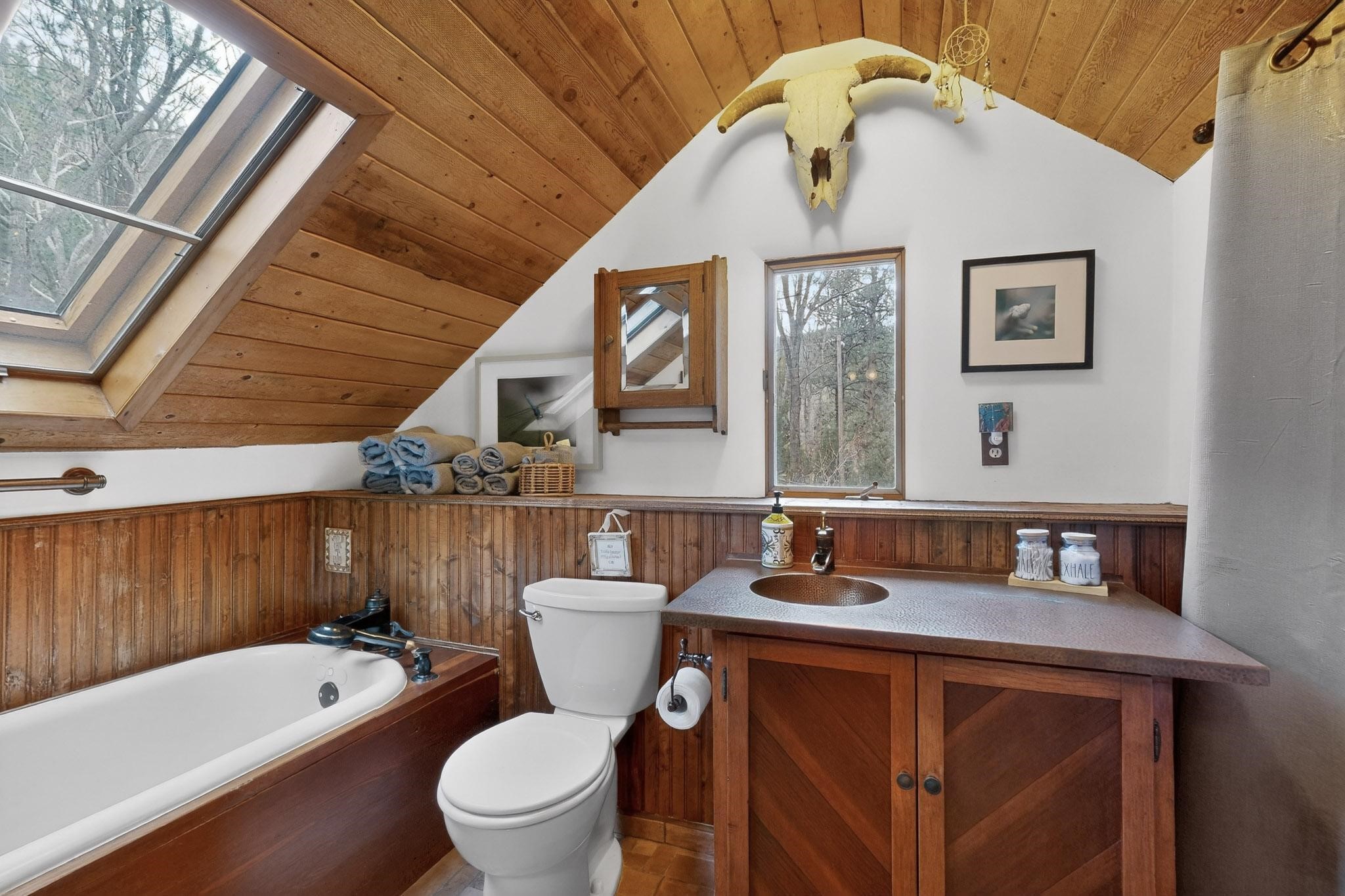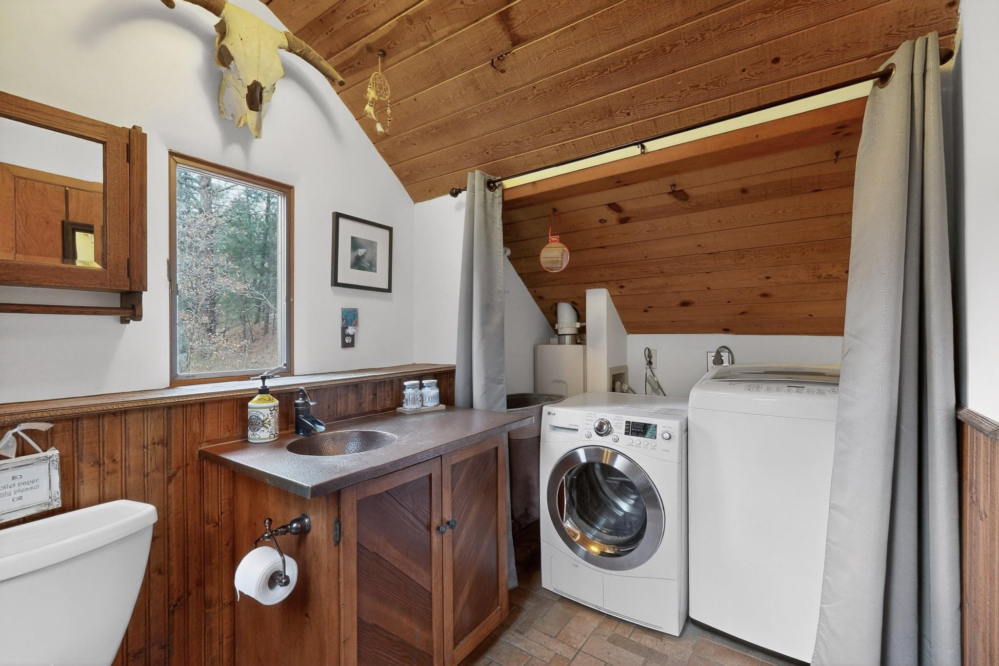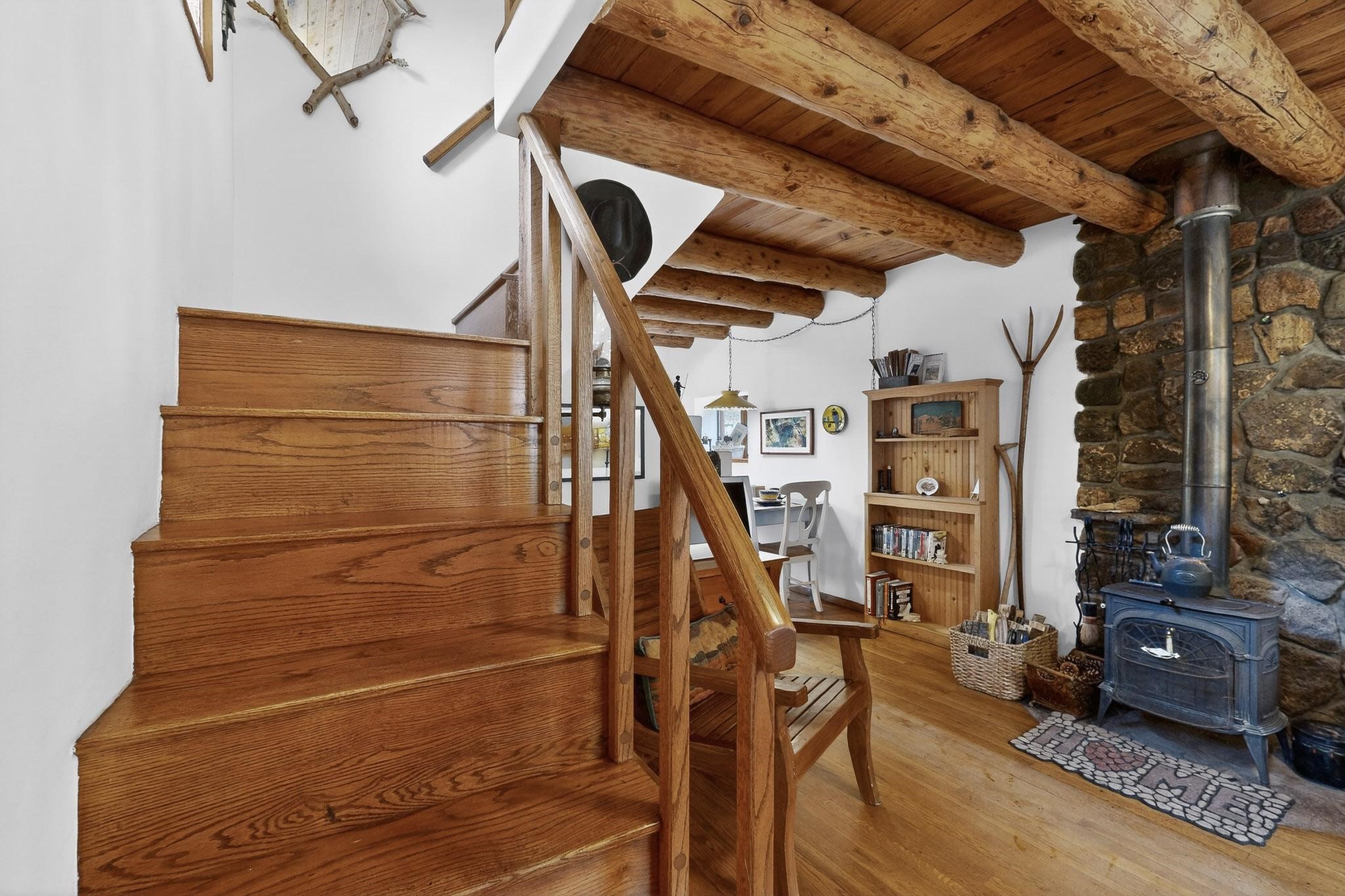 Adorable Storybook log cabin located on 360 +/- feet of Pecos River frontage, 10 miles above the Village of Pecos immediately before Windy Bridge. Properties of this type and quality are rarely offered for sale. The cabin has been an AirB&B offering for a number of years and our sellers are conveying domain names: PecosRiverCabin and Cabin on the Pecos. The setting includes a beautiful meadow, wooded bosque, healthy ponderosa pine, cotton willow, spruce trees and a large portion of an island accessed from a sweet bridge. The Pecos river frontage is significant with several openings for fishing and rapids towards the north end of the lot. The log cabin is quite stunning with a pitched pro-panel roof, skylights, river rock foundation, patio walls, livingroom, country kitchen, 1 bedroom, 1 bathroom and a laundry area. Improvements include new furnace, wood burning stove, new washer & dryer, upgraded electrical panel with additional GFI's in kitchen and bath, Centurylink land line telephone, on demand hot water heater, WiFi repeater in the garden house bringing the internet throughout the yard and patio. There is a separate 8'2 1/2"x 8' bonus building with electricity, solid entry door and view windows. All of the furniture, furnishings, tools, gardening supplies needed for a country get-a-way or for an income producing recreational retreat will be included with the purchase. There is no Home owner's Association just State and County regulations. The adjoining area to the kitchen could work for an expansion of the cabin footprint. The site is frequented by wildlife: deer, turkeys, skunks, fox, raccoons and occasionally a bear. For folks seeking a one of a kind river front destination property, please consider 1 McFerrin Taylor Rd, Pecos Canyon.