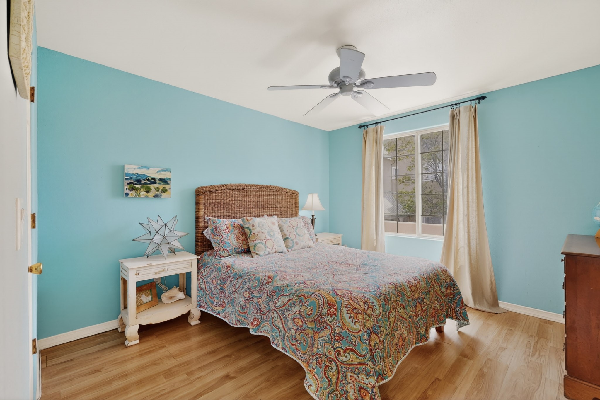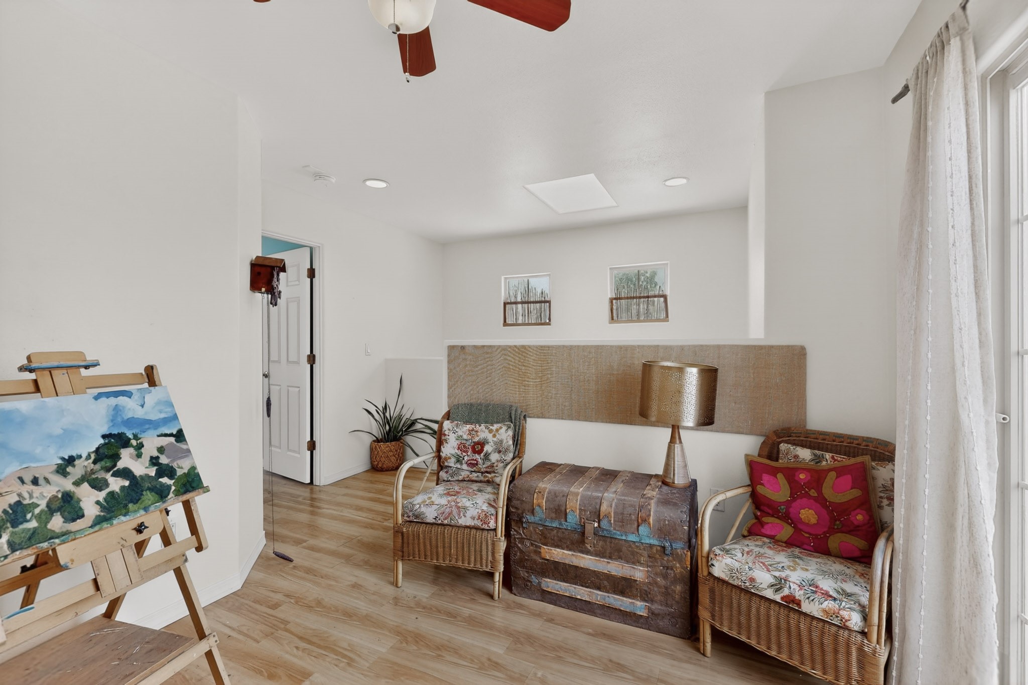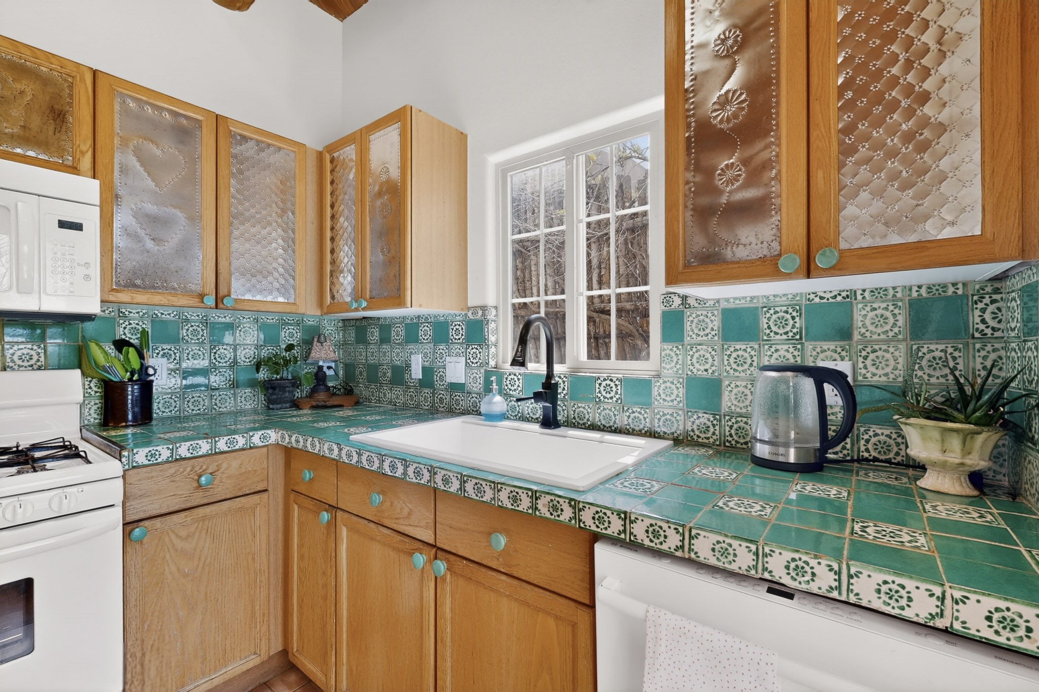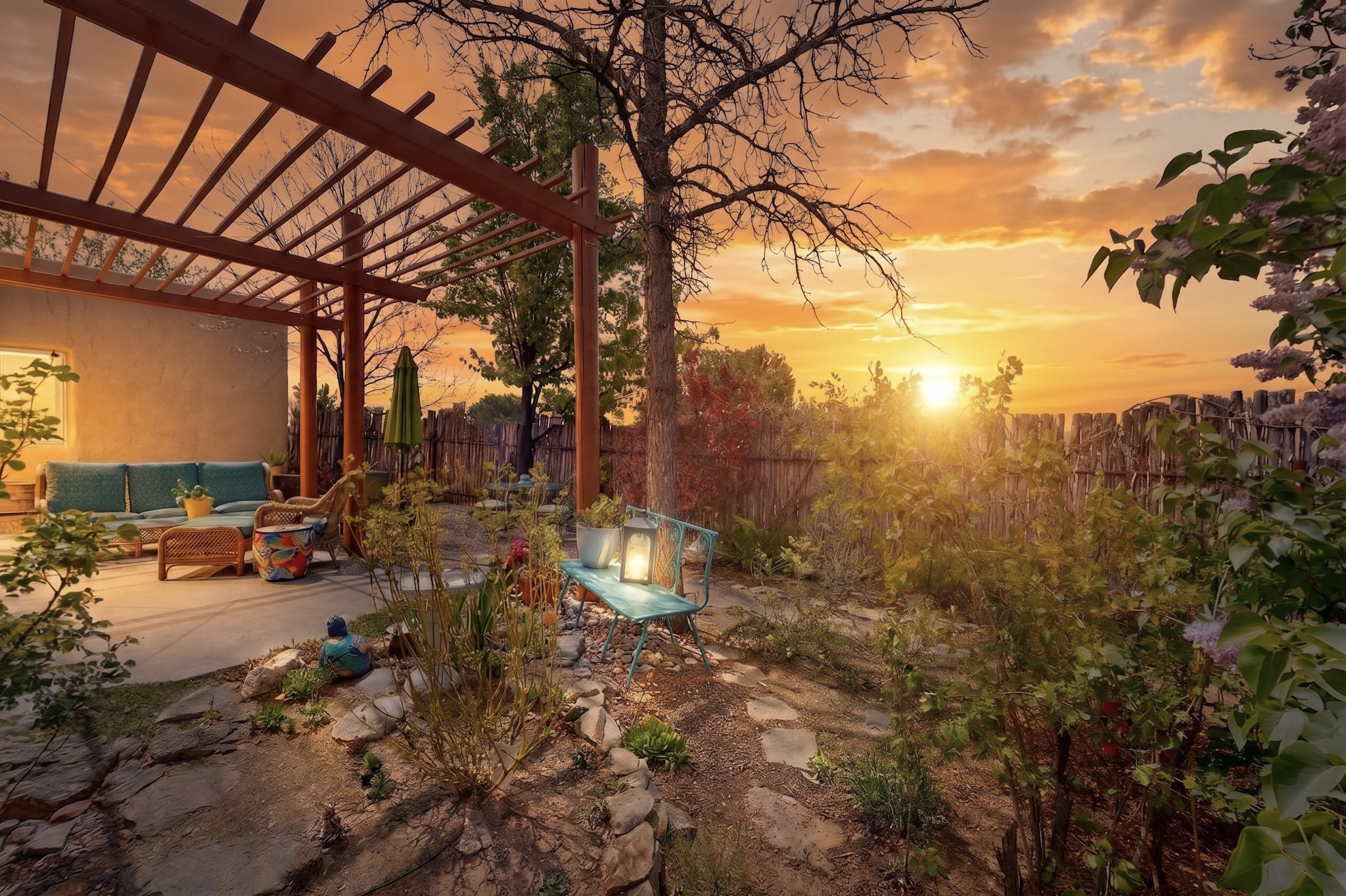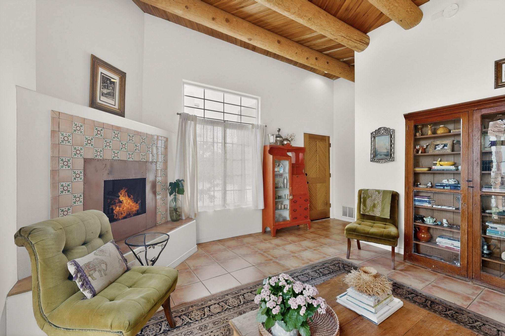 Pride of ownership throughout this absolutely charming Santa Fe home offering privacy as it backs to the walking trail & some open space--one of the cutest you'll ever see. With approximately 1300 +/- sqft, this thoughtfully designed residence offers 2 bedrooms (one upstairs & one downstairs) plus an additional upstairs flex loft space--ideal as a studio, office, playroom, or workout room--with direct access to a private balcony with views. With 2 full bathrooms, a finished 1-car garage with extra storage space, and additional onsite parking, this home blends comfort, convenience, and character. Each of the two bedrooms functions as a primary suite, complete with its own ensuite bath (one featuring double vanities). One suite is located upstairs and the other downstairs, offering privacy and flexibility for a variety of living arrangements. The inviting living room features high ceiling with vigas, tile floors, and a wood-burning fireplace, creating a warm and welcoming atmosphere. Doors open to the private, fenced and beautifully landscaped backyard with two pergolas --perfect for peaceful mornings or glowing Santa Fe sunsets. The kitchen continues the Santa Fe aesthetic with vigas and charming tile countertops, offering a delightful space for cooking. Features and amenities include: Forced air heat with central refrigerated A/C-Stackable washer and dryer-TPO roof-New smoke/carbon monoxide detectors, +/- 4-year-old refrigerator, Tile and laminate flooring, Carpet only on the stairs & more. Residents enjoy access to a clubhouse, workout room, hot tub, pool and a trail system connecting to the Arroyo Chamiso Trail--ideal for outdoor enthusiasts. Despite the peaceful setting, you're just minutes from hospitals, restaurants, shopping, and schools.