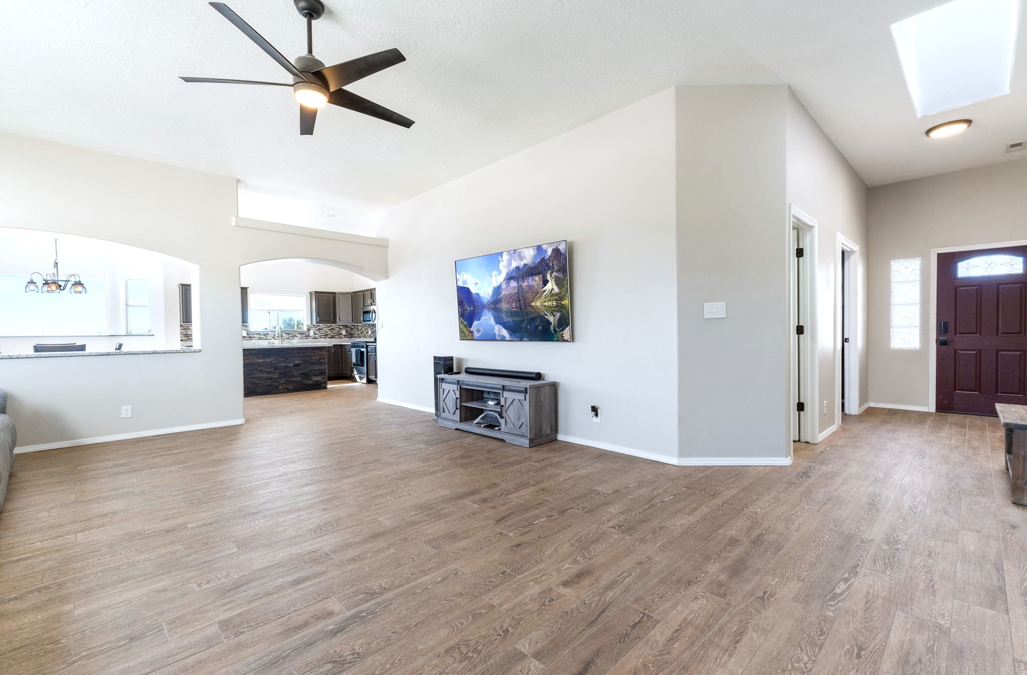 Breathtaking Sandia Mountain Views await just outside this 4 bed 3 bath home located in the Rio Rancho Estates Subdivision! This updated single-story 2,300 sq ft home has modern amenities such as an open floor plan, large master suite with spacious walk-in closet, garden tub, his and her double sinks, newer tile flooring throughout, and newer refrigerated cooling unit. The gourmet chef's kitchen has newer appliances, granite countertops, updated backsplash, & a breakfast nook overlooking the spacious living area. This home on 1 acre has ample room for RV parking. Enjoy the outdoor sitting area under the covered patio. This home is in an ideal location with nearby restaurants (The Local Brewhouse, Blakes, Dions, etc) and shopping (Walmart, Target, Walgreens, Lowe's Home Improvement, etc).