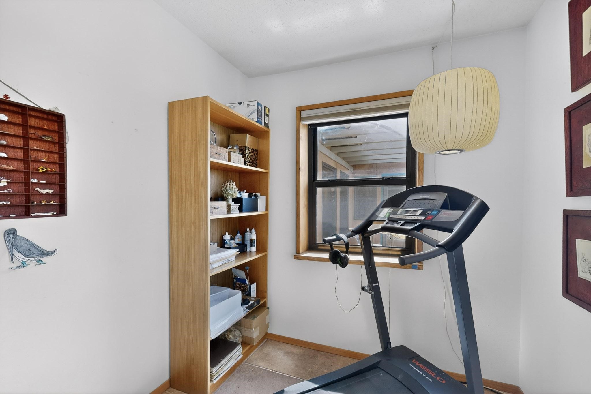 Lovely passive solar, open plan design built by Sierra Homes in 1993 and enlarged by the prior original owner to 2258sf heated living space. The contemporary pueblo character has been maintained throughout with a gas kiva, a wall fireplace and viga beams in the newer suite plus the original wood burning kiva and Santa Fe features in the great room. The current owners have also added the benefit of photovoltaic solar panels, 5 high heat/AC mini splits for summer and winter comfort. The refreshed kitchen features an induction range top and multi-mode oven, adjoins a large formal dining room making it ideal for entertaining as it flows also to a sunset, mountain view portal and patio. There is a 2 car finished garage and extra parking area added. Herrada Rd has been recently paved making easy access to the Eldorado amenities, parks, trails, local shopping and services as well as only minutes into Santa Fe.