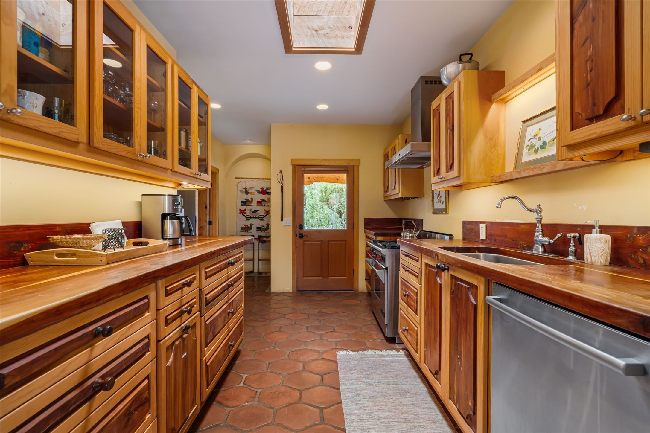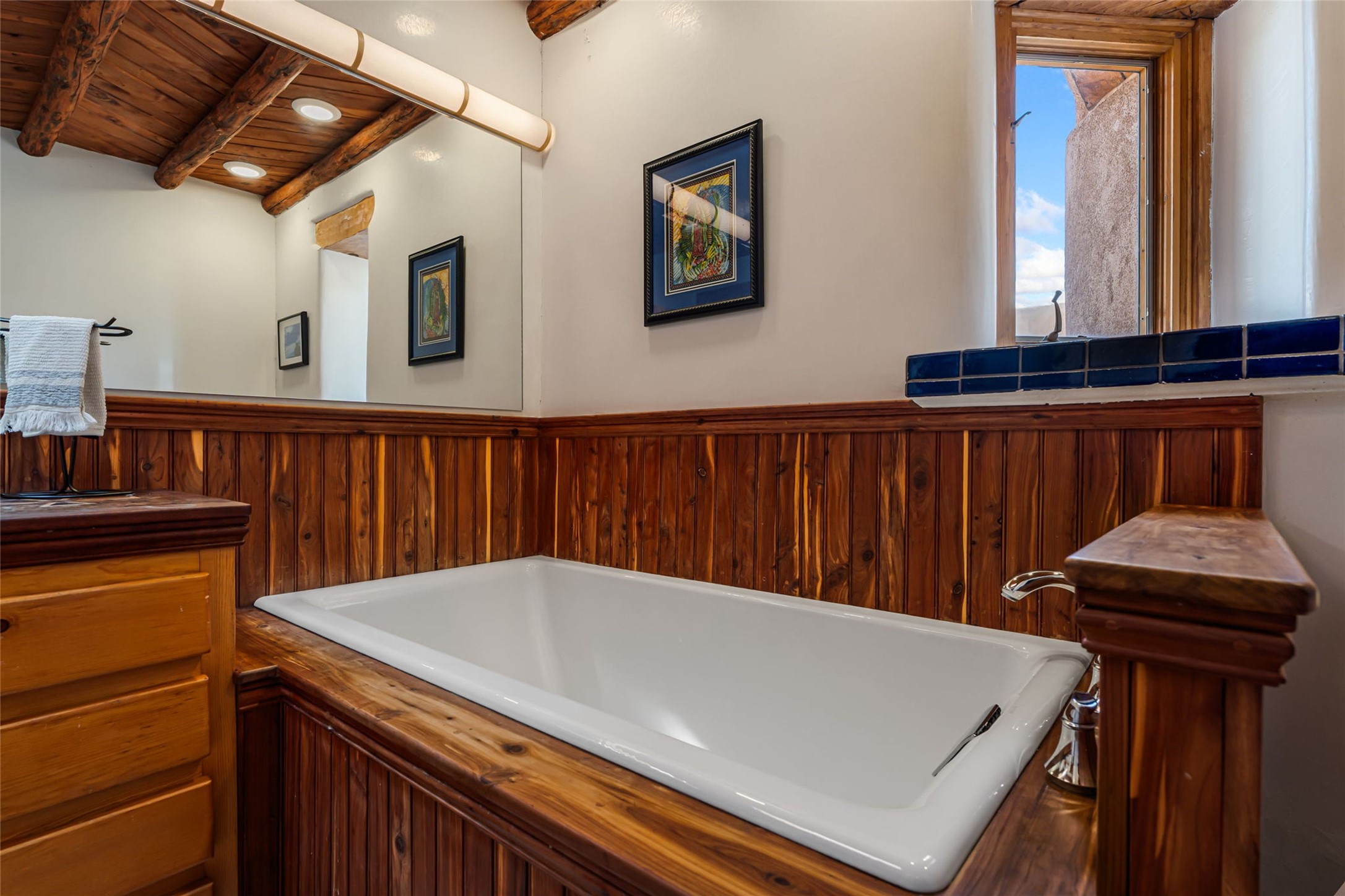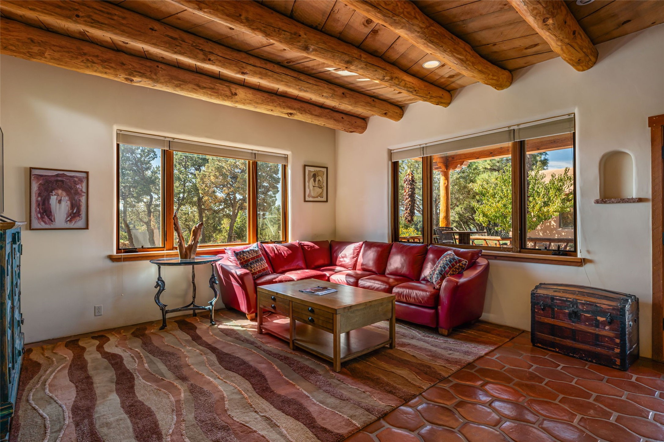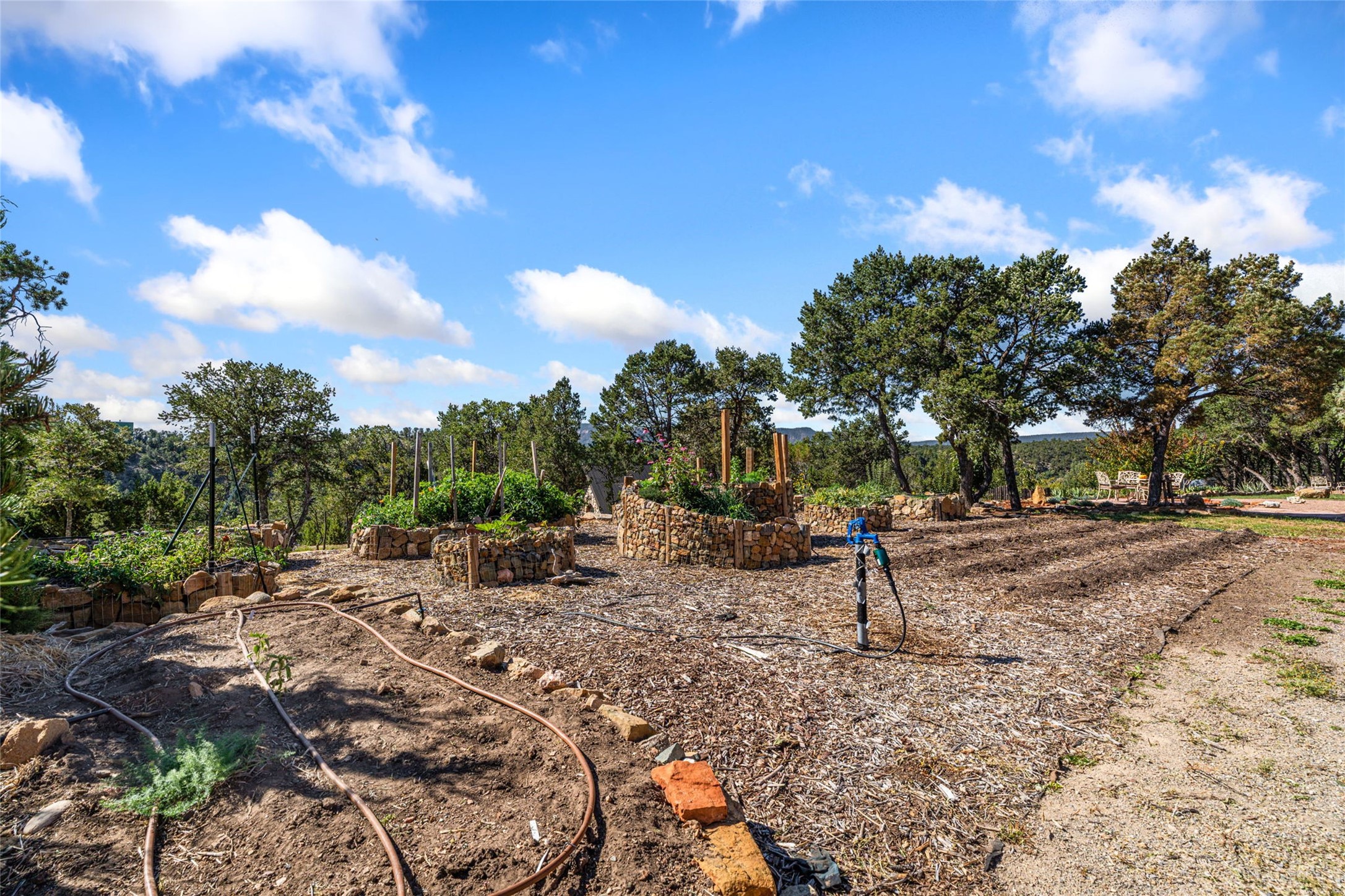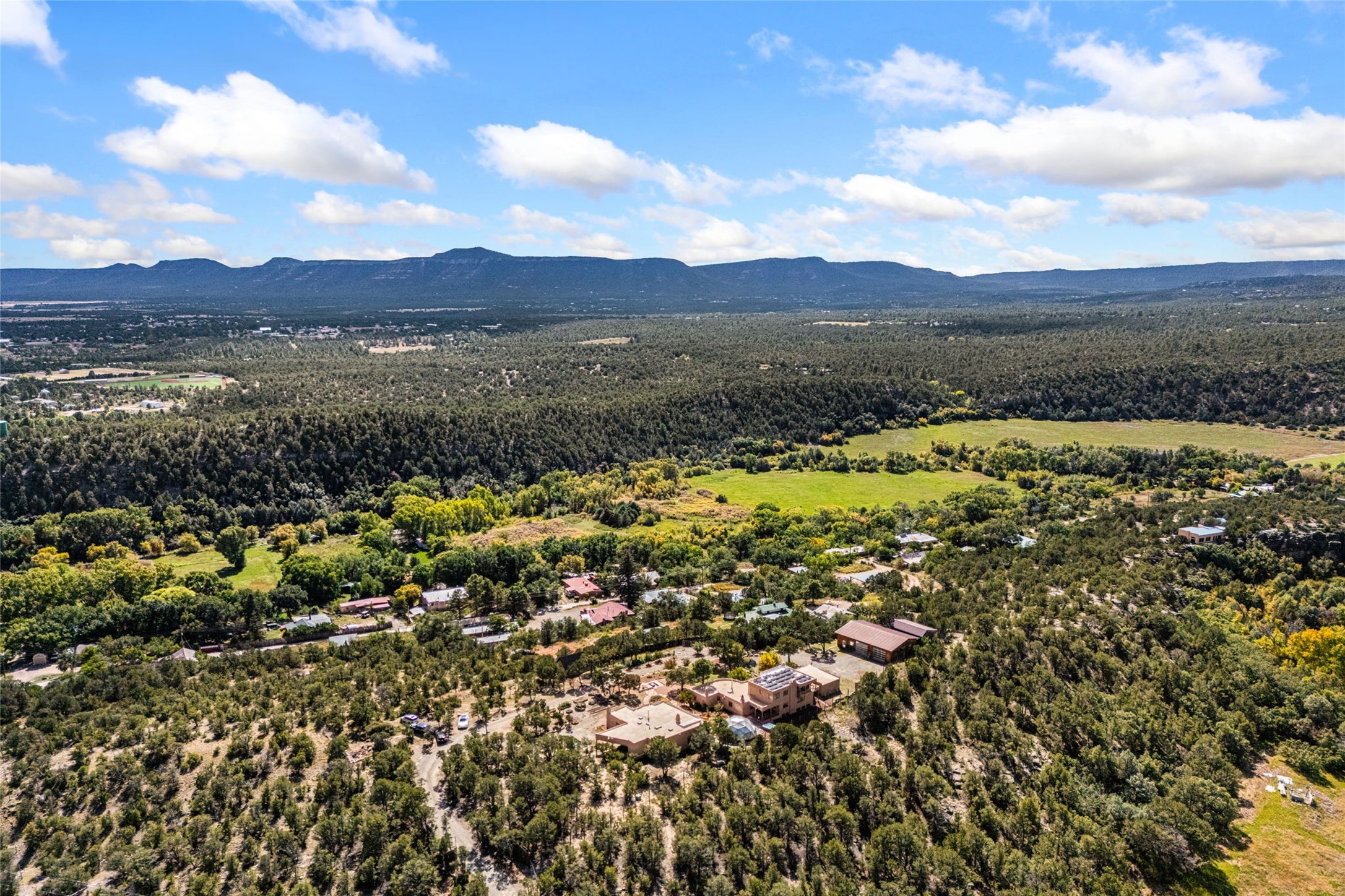 Set on nearly four acres 30 minutes from Santa Fe and only minutes from the Pecos River, 16 Hubbard Hill offers a profound and immediate sense of peace. The property overlooks serene Monastery Lake and borders more than one thousand acres of land belonging to the Benedictine Monastery, creating extraordinary privacy and an uninterrupted natural backdrop. This extraordinary estate was originally the personal residence and apex creation of renowned custom builder Richard Roybal, a true Northern New Mexico artisan whose craftsmanship is visible in every detail. Hand inlaid wood floors, sculpted stonework, vigas and latillas, aspen and willow ceilings and generous windows create a warm, soulful environment filled with natural light. The home has been thoughtfully expanded and impeccably maintained ever since, evolving into a property that supports both refined living and meaningful self-reliance.The current owners have continued this legacy with significant upgrades designed for long-term comfort and sustainability. A powerful solar system with a three-plus-day battery backup provides dependable energy independence. Improvements to water and power systems were completed with durability and ease of living in mind. New fruit trees and hundreds of berry plants complement the existing mature plantings, contributing to a landscape that functions as a flourishing food forest. Landscaping throughout the property has been refined to minimize maintenance, maximize automation and support a thriving ecosystem for humans, birds and bees. A private gate marks the entrance to the estate, and the grounds are fully fenced to accommodate dogs, making the land as welcoming as it is expansive.One of the most exceptional features of the estate is the expansive detached garage and south-facing studio, where dramatic glass garage doors fill the space with natural light. This luminous building is ideal for an artist, maker, healer or collector and functions beautifully as a workshop, gallery, creative studio or retreat space.The greenhouse beautifully supports a lifestyle of intentional, sustainable living. It includes a large hydroponic water enclosure, solar-operated fans, automated roof ventilation and raised beds with full drip irrigation, all designed for maximum growing efficiency and year-round cultivation.The fully appointed guest house is a complete home of its own, not a simple casita. High ceilings and large windows create an airy, spacious feel, while thoughtfully placed skylights bring in abundant natural light. Heated tile floors throughout add comfort and warmth, and the full amenities offer exceptional flexibility for hosting, multigenerational living or generating rental income.With approximately eight thousand square feet of living and studio space, exceptional craftsmanship, modern enhancements and a landscape that feels both magical and deeply grounding, 16 Hubbard Hill stands as a truly singular offering. It is a home built to endure, expanded with care and aligned with a lifestyle that values beauty, creativity and self-reliance. A rare sanctuary with endless potential.