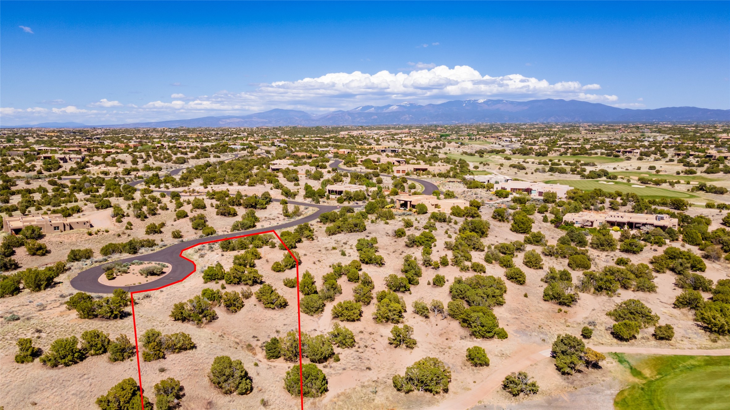 Set within the prestigious Las Campanas community, this .91-acre cul-de-sac lot presents a rare chance to create your dream home in one of Santa Fe's most sought-after settings. Expansive 360-degree views capture the beauty of the Sangre de Cristo and Jemez Mountains, offering a stunning natural backdrop. Located in the desirable Park Estates enclave, the property enjoys close proximity to the Las Campanas Club while overlooking the community's acclaimed Jack Nicklaus Signature golf course -- Sunset course. The setting strikes a perfect balance between privacy and accessibility, with peaceful surroundings and just a 25 minute drive from the Santa Fe Plaza. With its combination of scenic vistas, prime location, and generous size, this homesite offers an exceptional opportunity to design a residence that fully embraces the beauty and tranquility of Northern New Mexico.