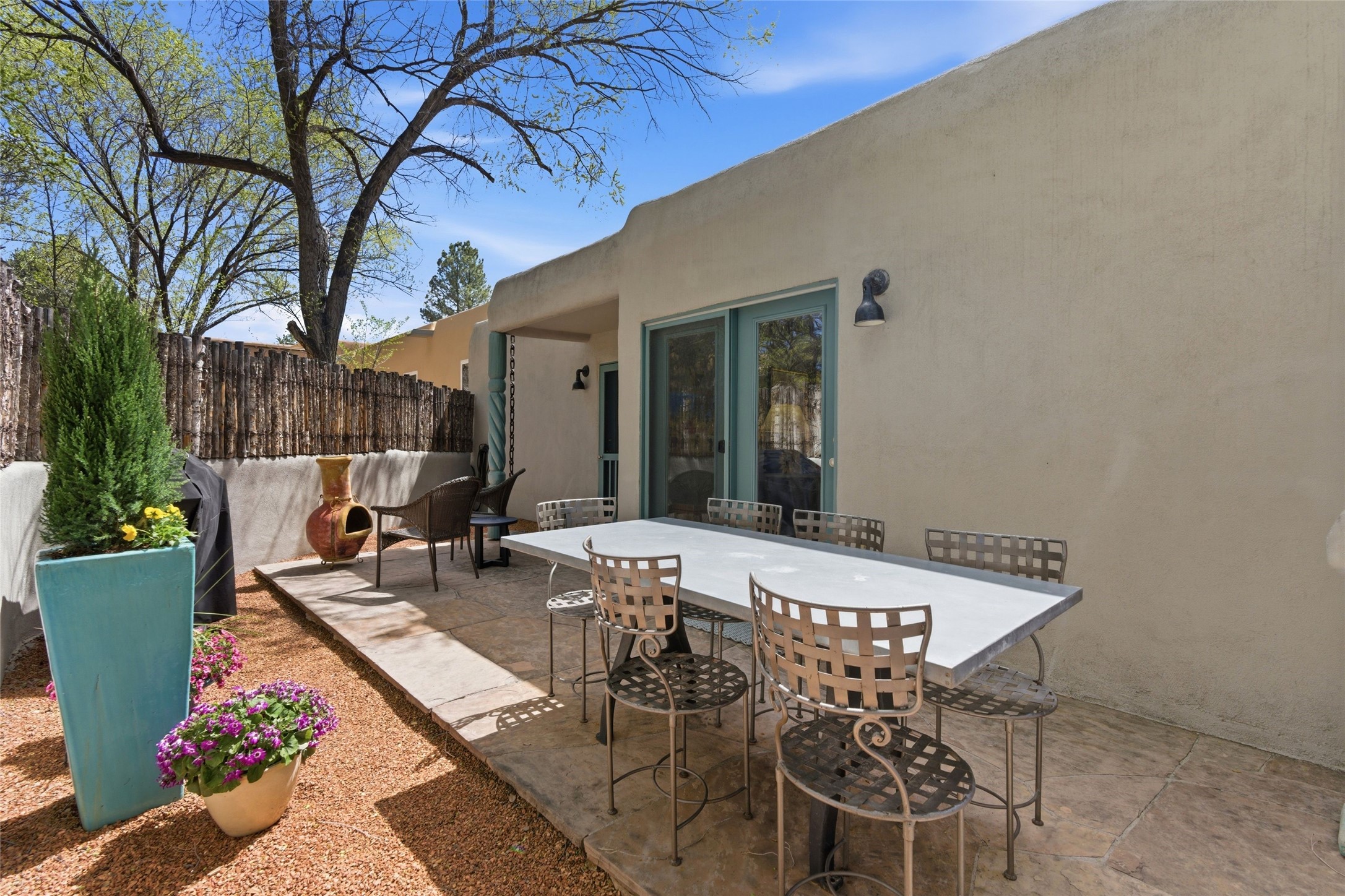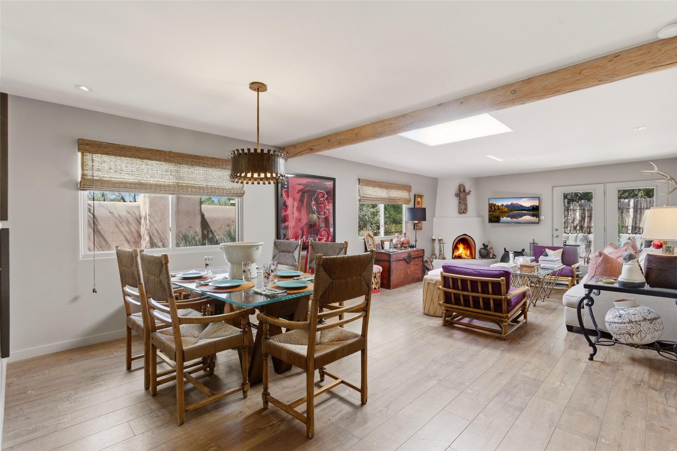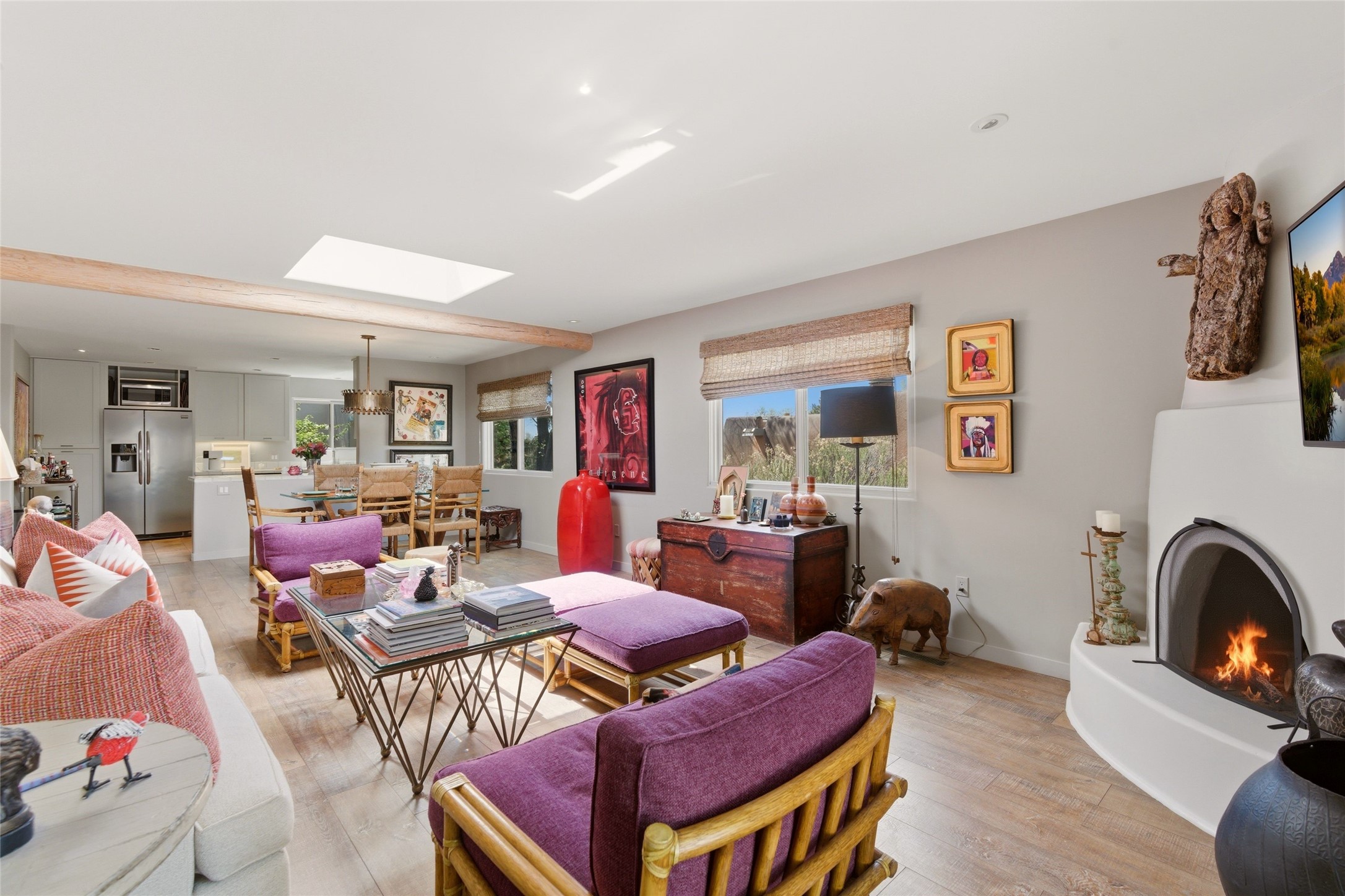 Delightfully Refreshed & Beautifully Remodeled Townhome in the popular Valle del Sol neighborhood located in Downtown Santa Fe. The majority of the property was completely redone in 2014-2015 including ALL walls, fixtures, most flooring, windows and mechanical - all with a designer's touch to include modern finishes, contemporary colors, and sleek reimagining of kitchen and baths. The kitchen is inviting and its easy to prepare gourmet meals for family and guests with an open concept dining and living area nearby filled with natural light. A cozy Kiva fireplace in the living area creates a delicious warmth and encourages contemplation or lively converstaion. More recent improvements and upgrades include Refrigerated AC, landscaping, and stucco. Very private back patio offers space to entertain and simply enjoy the outdoors with an extra high fence and walled in area. An additional "dog run" is conveniently located outside the walled patio for fur babies. Seller has taken excellent care of this property and it shows! No formal HOA, in-town location and just a short distance (walk, ride, bike) to Fort Marcy facilities & Santa Fe Plaza. Low Maintenance Property, Close to Plaza - Realize your Santa Fe Dreams Here!