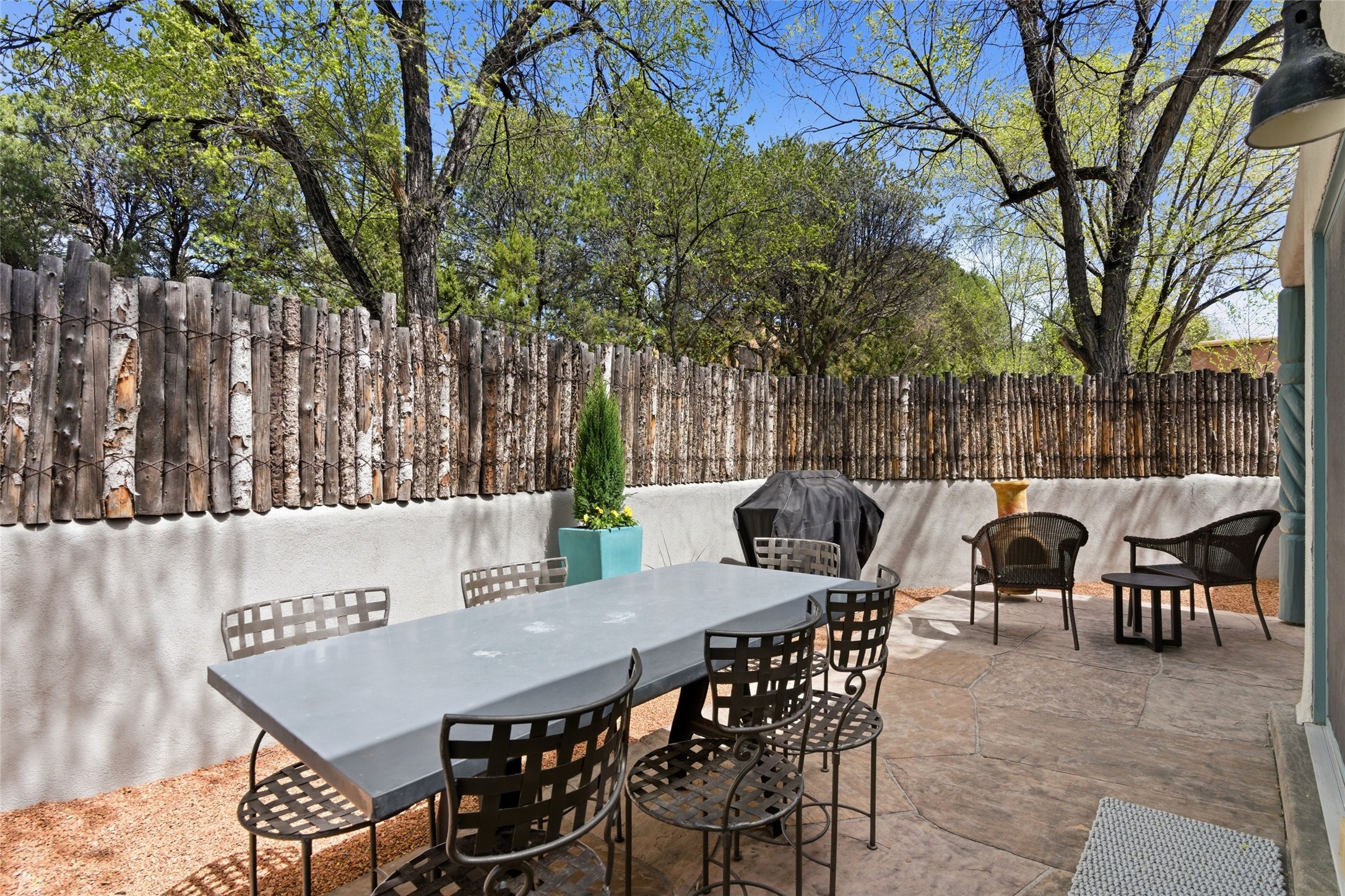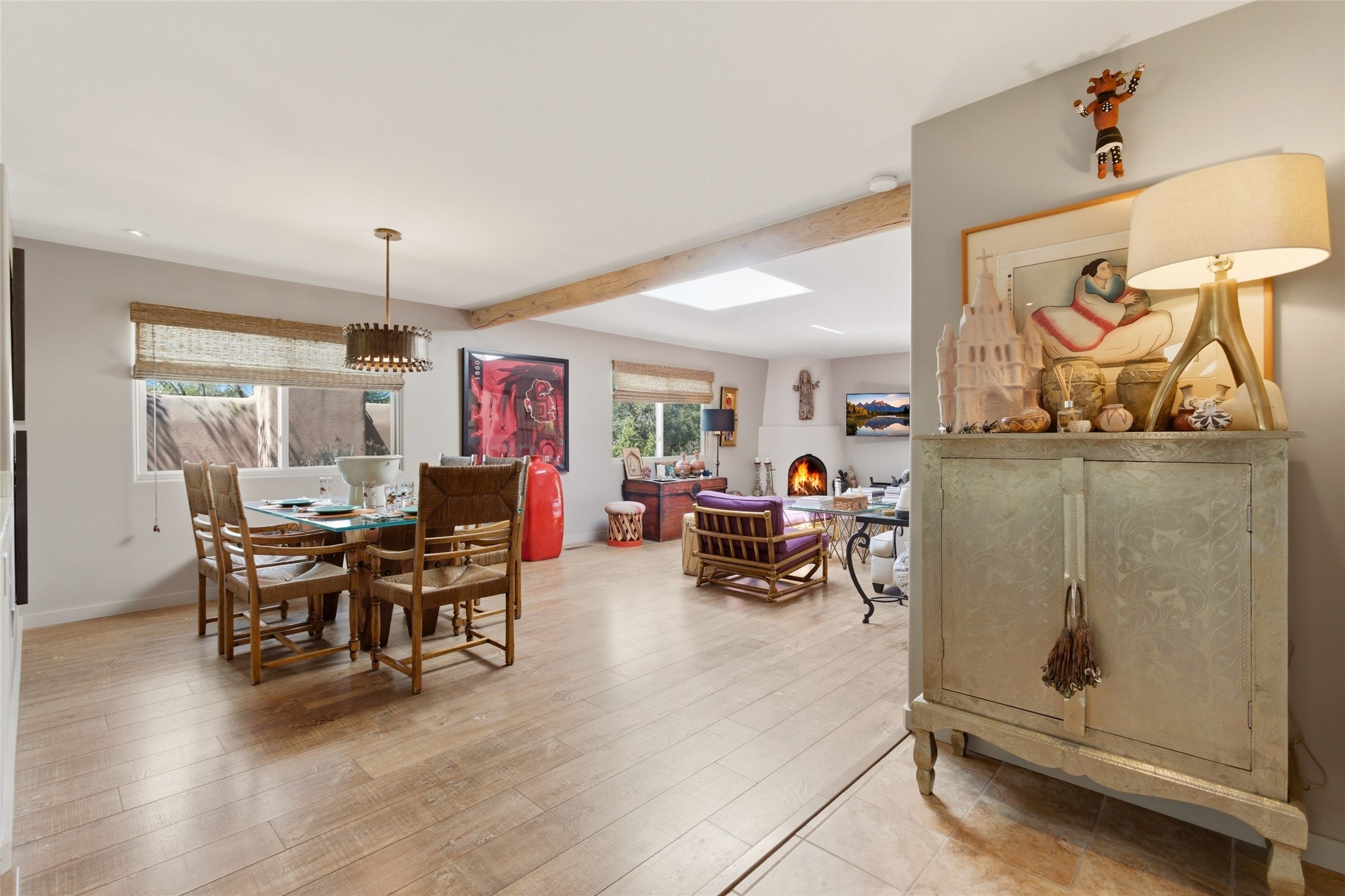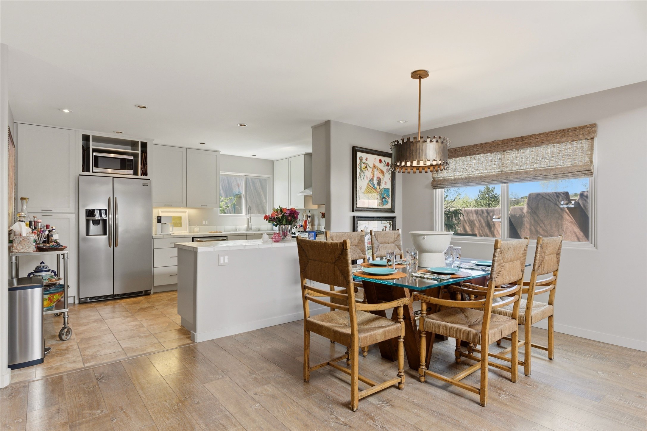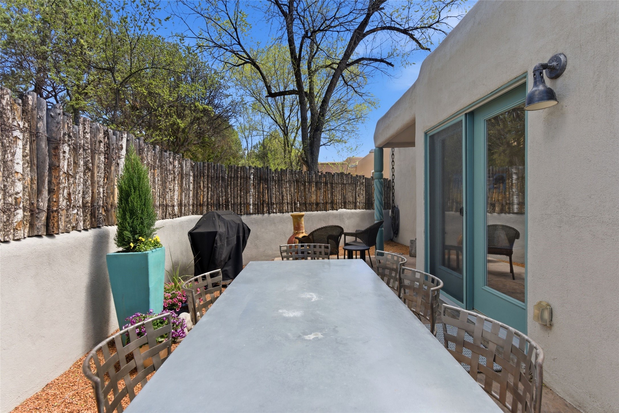Delightfully Refreshed & Beautifully Remodeled Townhome in the popular Valle del Sol neighborhood located in Downtown Santa Fe. The majority of the property was completely redone in 2014-2015 including ALL walls, fixtures, most flooring, windows and mechanical - all with a designer's touch to include modern finishes, contemporary colors, and sleek reimagining of kitchen and baths. The kitchen is inviting and its easy to prepare gourmet meals for family and guests with an open concept dining and living area nearby filled with natural light. A cozy Kiva fireplace in the living area creates a delicious warmth and encourages contemplation or lively converstaion. More recent improvements and upgrades include Refrigerated AC, landscaping, and stucco. Very private back patio offers space to entertain and simply enjoy the outdoors with an extra high fence and walled in area. An additional "dog run" is conveniently located outside the walled patio for fur babies. Seller has taken excellent care of this property and it shows! No formal HOA, in-town location and just a short distance (walk, ride, bike) to Fort Marcy facilities & Santa Fe Plaza. Low Maintenance Property, Close to Plaza - Realize your Santa Fe Dreams Here!