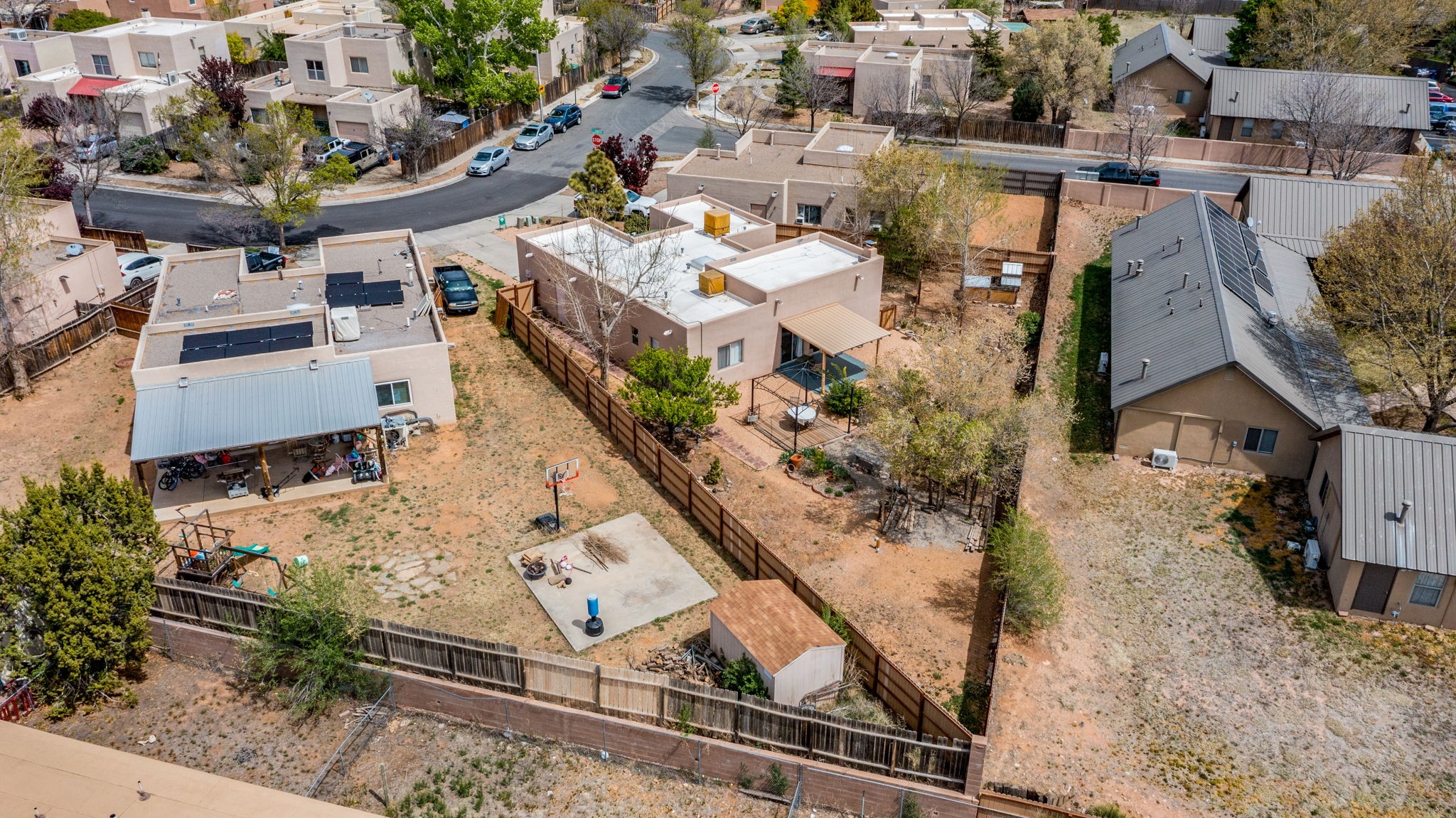 A hidden gem just blocks from a park and the scenic River Trail, this charming 3-bedroom, 2-bath home offers comfort, character, and access to some of the area's best outdoor amenities. With 1,257 square feet of heated living space on an 8,712-square-foot lot, the property strikes a perfect balance between cozy living and outdoor enjoyment.Built in 1998, the home features classic Southwestern touches, including a warm and inviting kiva fireplace that anchors the living area. Radiant heat ensures efficient, comfortable winters, while two evaporative coolers provide seasonal relief--one dedicated to the main en-suite bedroom and another in the hallway (ready for a simple motor replacement).The kitchen has been thoughtfully updated with newer appliances, including a range/oven just one year old, a refrigerator/freezer only six months old, and a dishwasher that has never been used. Fresh stucco adds to the home's curb appeal, while the TPO roof comes with approximately 12 years remaining on its warranty, offering peace of mind for years to come.Step outside to a beautifully landscaped yard filled with fruit trees, roses, and a variety of shrubs and perennials. A covered patio and pergola create ideal spaces for outdoor dining or relaxing, complemented by a charming flagstone pathway that ties the outdoor living areas together.An oversized one-car garage provides ample storage and flexibility, rounding out this well-maintained property that blends comfort, functionality, and Southwest charm--all in a location that invites you to enjoy the outdoors--the River Trail, with hiking and biking, a lovely park--just moments from your doorstep.