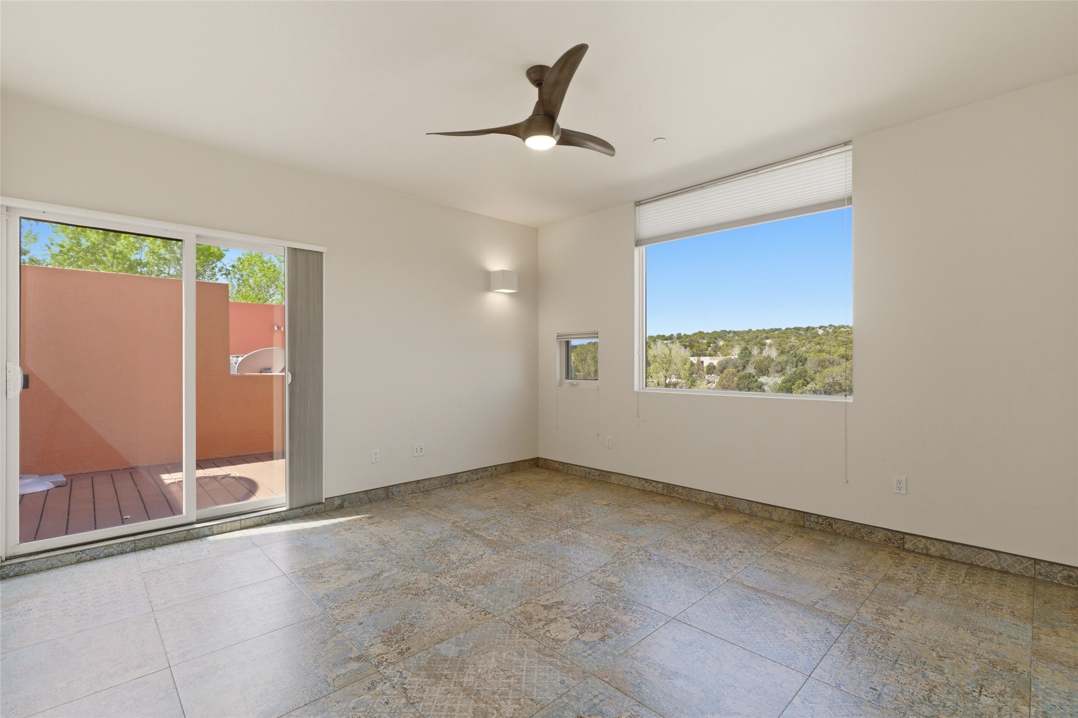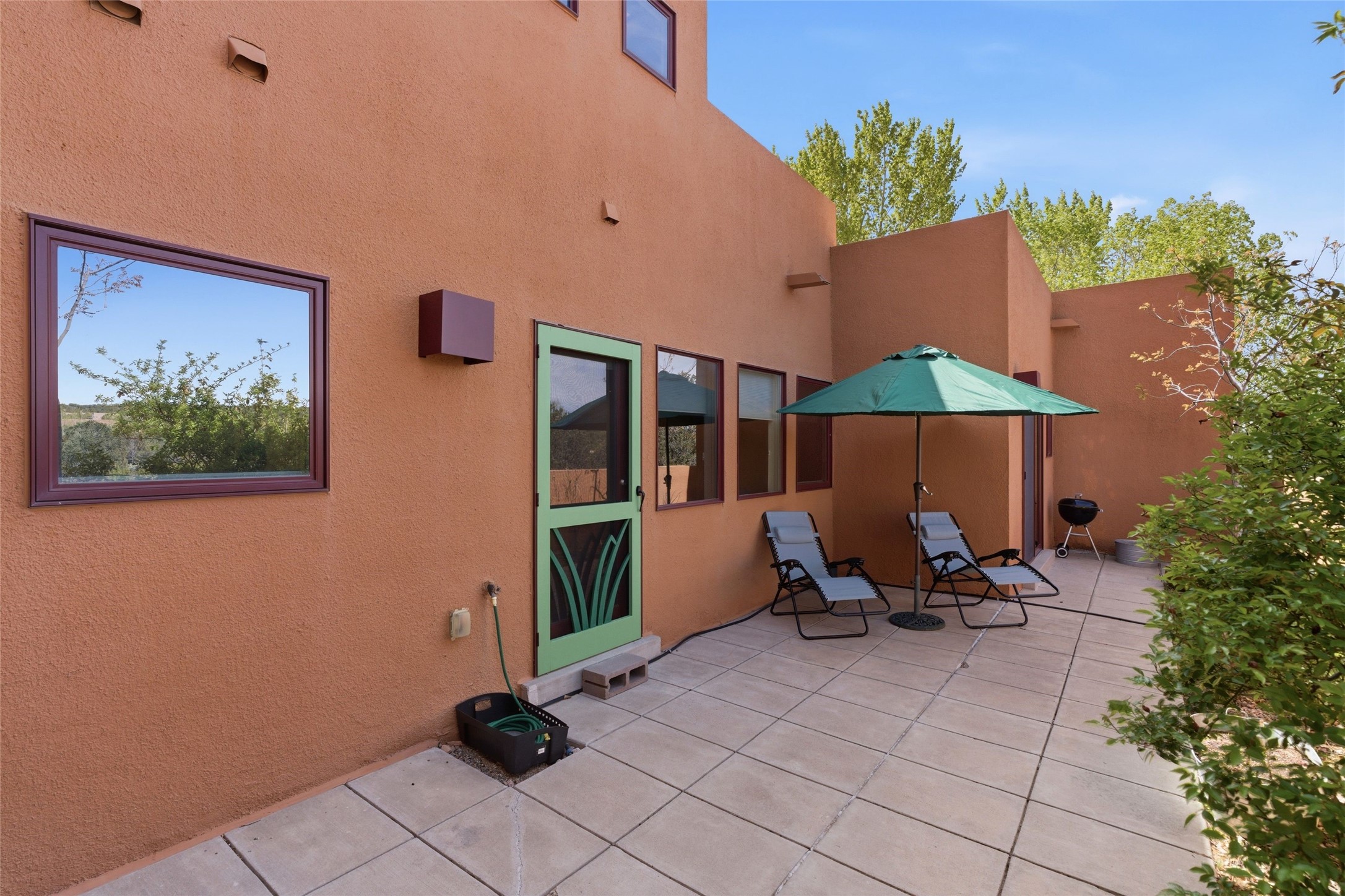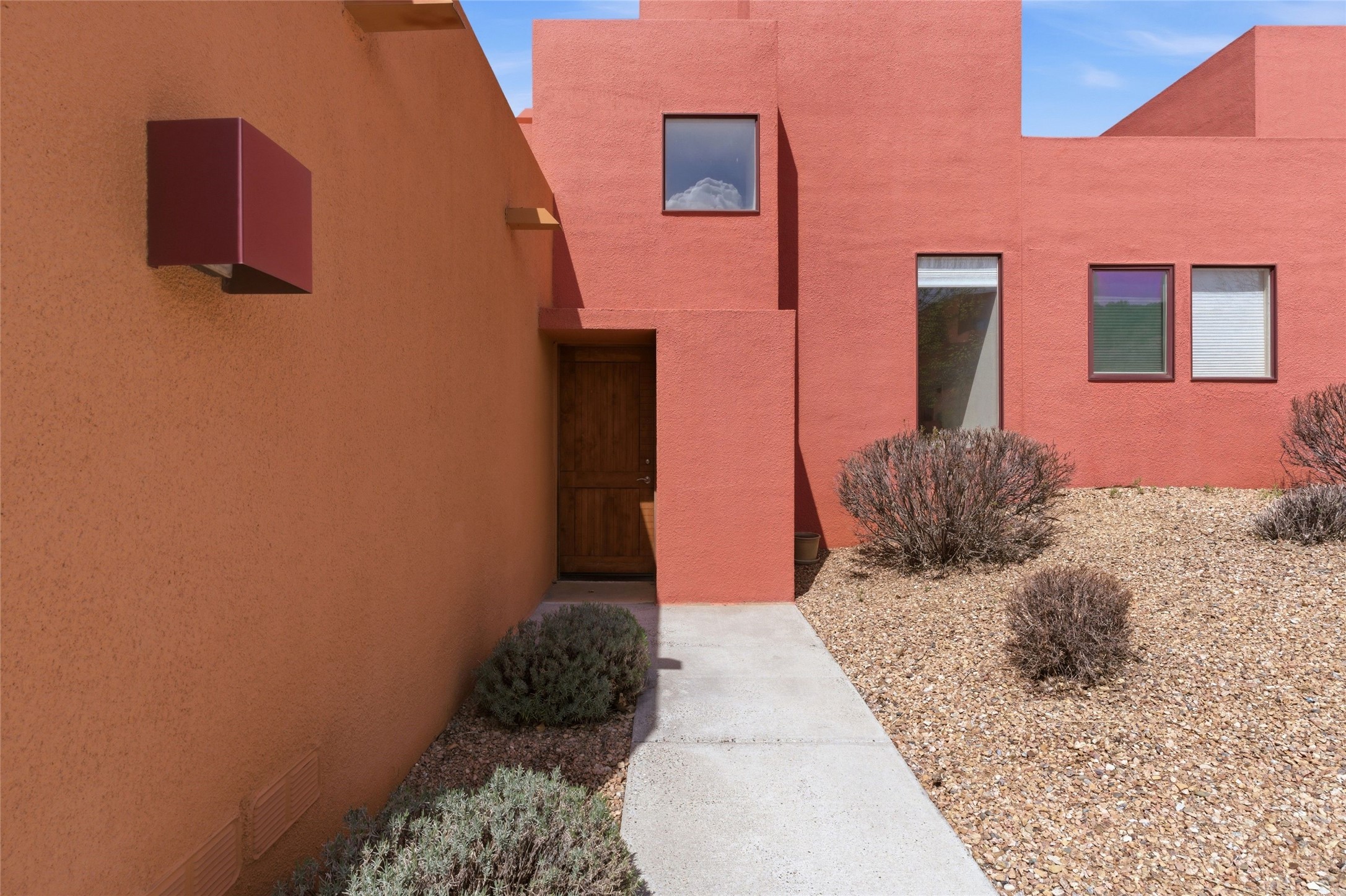 Ricardo Legoretta designed modern comfort in the desirable Northside community of Zocalo. This is atwo bedroom, two and half bath, two story condominium less than ten minutes to downtown Santa Fe, shopping, museums and galleries. Built in 2005, the unit offers two generous master suites; one upstairs with a private balcony, the other downstairs, offering direct access out to the landscaped patio. Downstairs offers open living / entertaining spaces with a two sided fireplace separating the kitchen, living area and dining area. High ceilings over the dining room offer ample skylights tile floors and wood ceilings over the living room are just some of the architectural finishes expected in a Santa Fe home. The open space allows for flexible usage and placement of furniture - depending on your lifestyle! Recent upgrades include a new oven / stove, a raised granite bathroom countertop in the upstairs suite, a utility sink in the garage, and two 14' Golden Rain trees in the back patio. Regarded as one of the most popular floor plans, this "Barranca" unit offers west facing views over the arroyo and into the tree-studded hillside. The finished twocar garage offers direct entry into the home. Community amenities in Zocalo include two fitness facilities, a clubhouse, pool and spa.