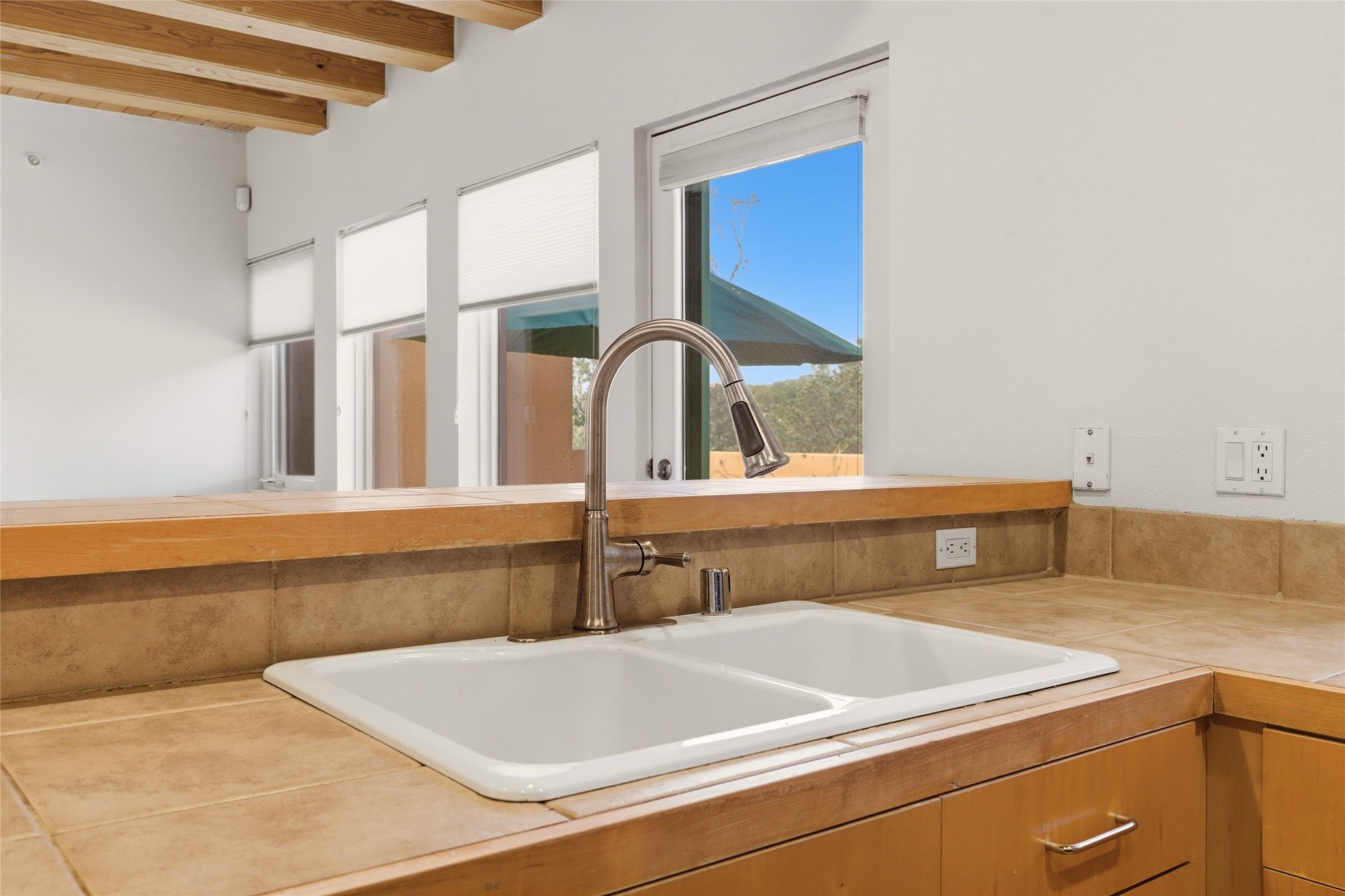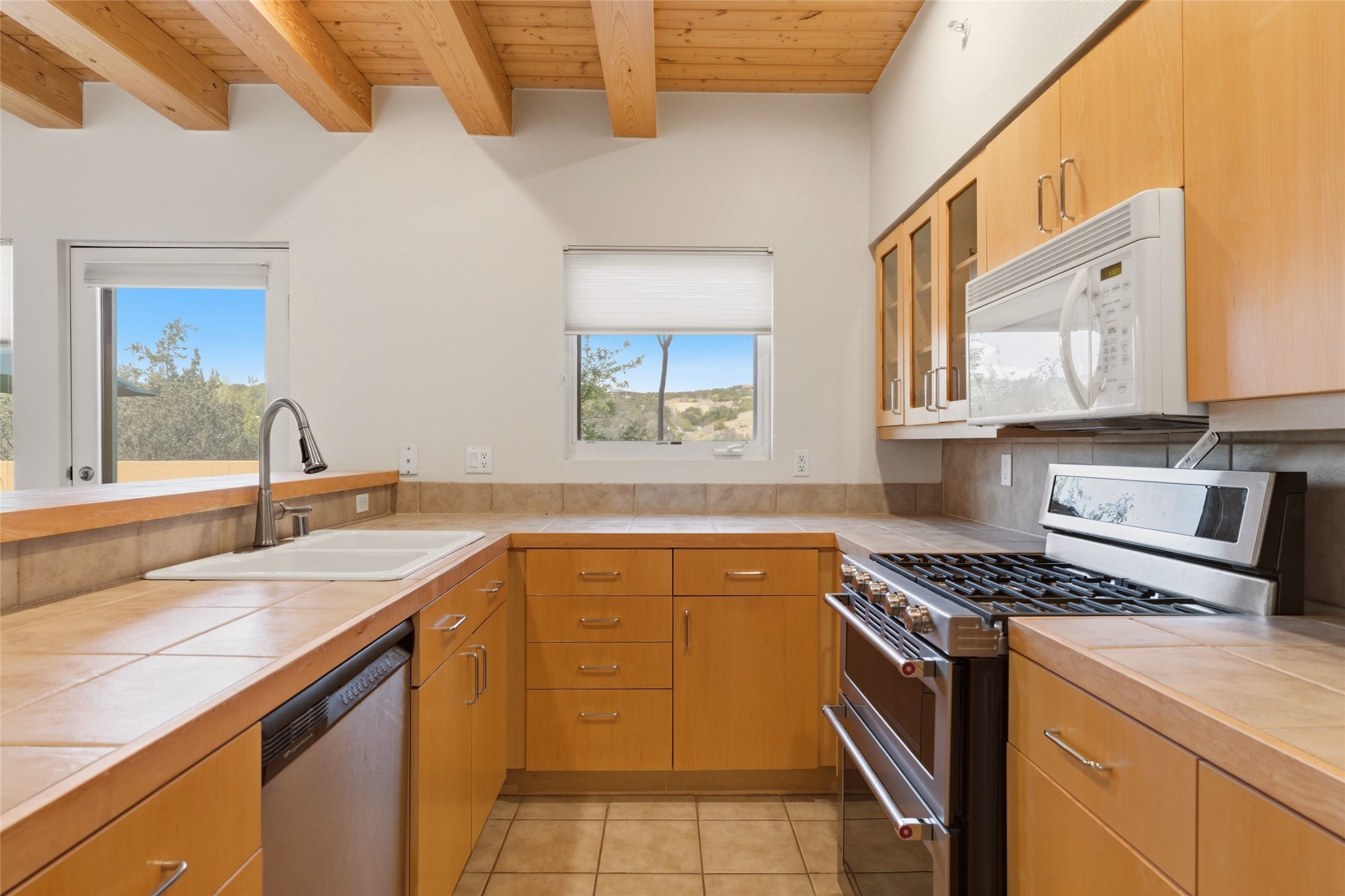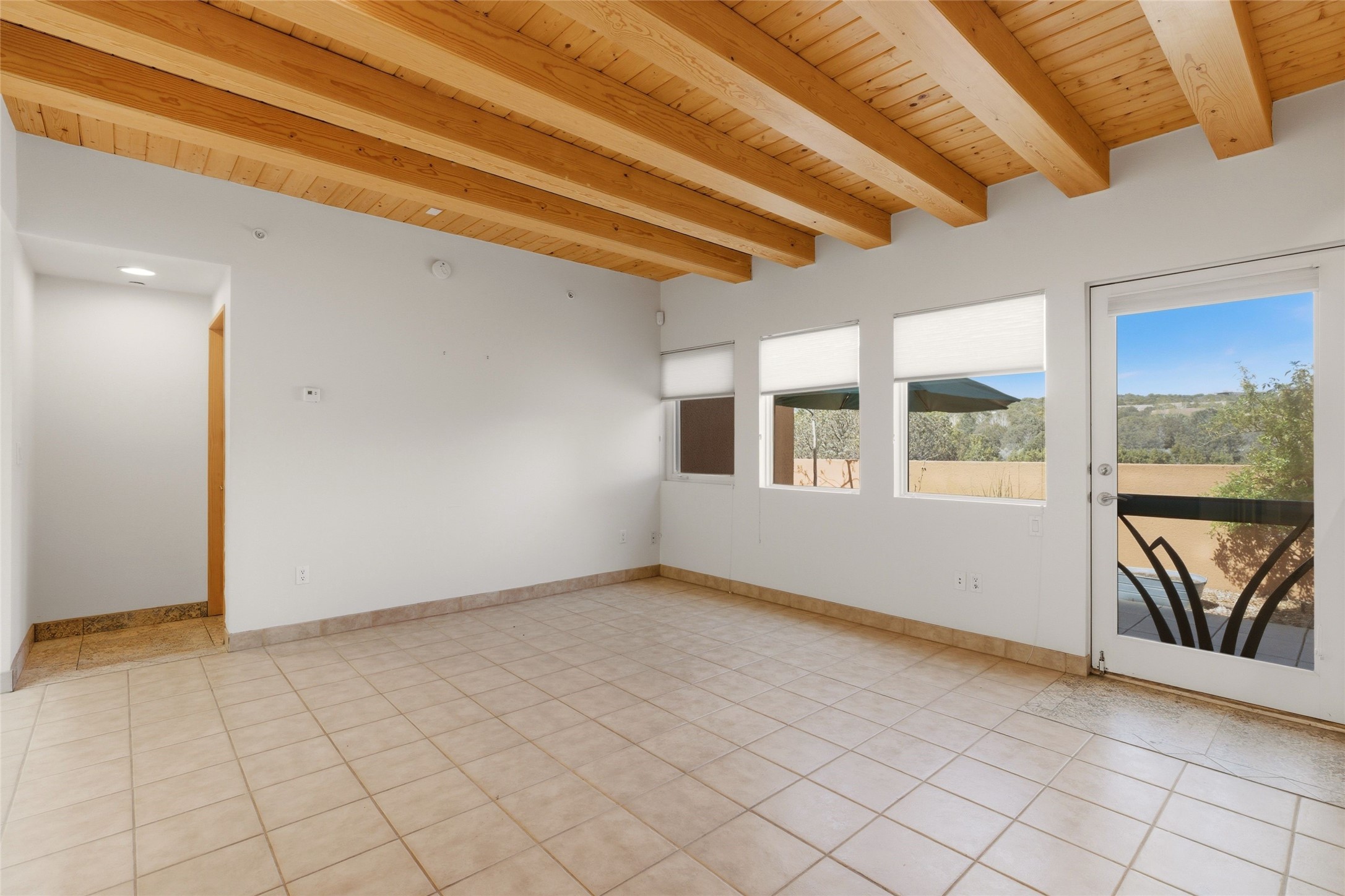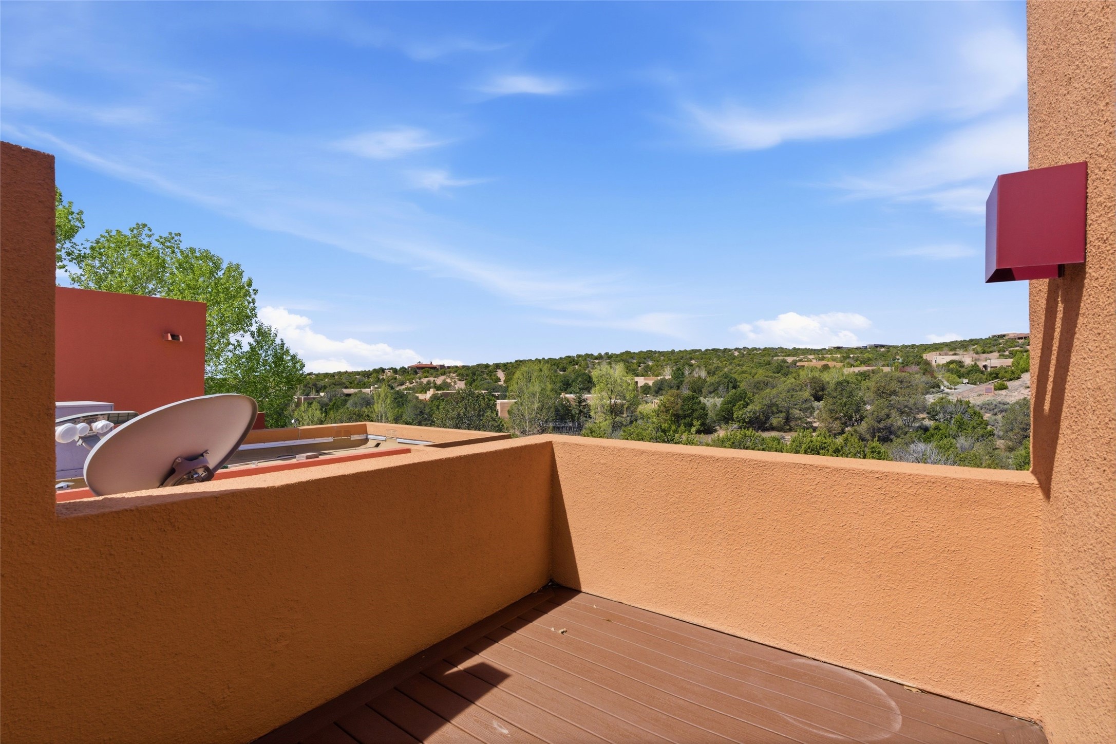 Ricardo Legoretta designed modern comfort in the desirable Northside community of Zocalo. This is atwo bedroom, two and half bath, two story condominium less than ten minutes to downtown Santa Fe, shopping, museums and galleries. Built in 2005, the unit offers two generous master suites; one upstairs with a private balcony, the other downstairs, offering direct access out to the landscaped patio. Downstairs offers open living / entertaining spaces with a two sided fireplace separating the kitchen, living area and dining area. High ceilings over the dining room offer ample skylights tile floors and wood ceilings over the living room are just some of the architectural finishes expected in a Santa Fe home. The open space allows for flexible usage and placement of furniture - depending on your lifestyle! Recent upgrades include a new oven / stove, a raised granite bathroom countertop in the upstairs suite, a utility sink in the garage, and two 14' Golden Rain trees in the back patio. Regarded as one of the most popular floor plans, this "Barranca" unit offers west facing views over the arroyo and into the tree-studded hillside. The finished twocar garage offers direct entry into the home. Community amenities in Zocalo include two fitness facilities, a clubhouse, pool and spa.