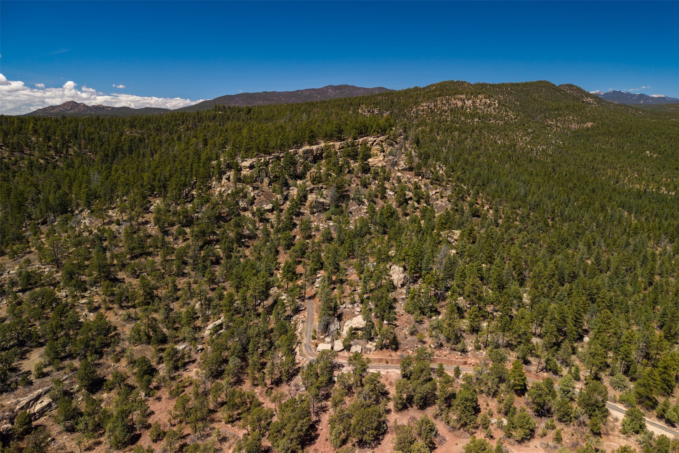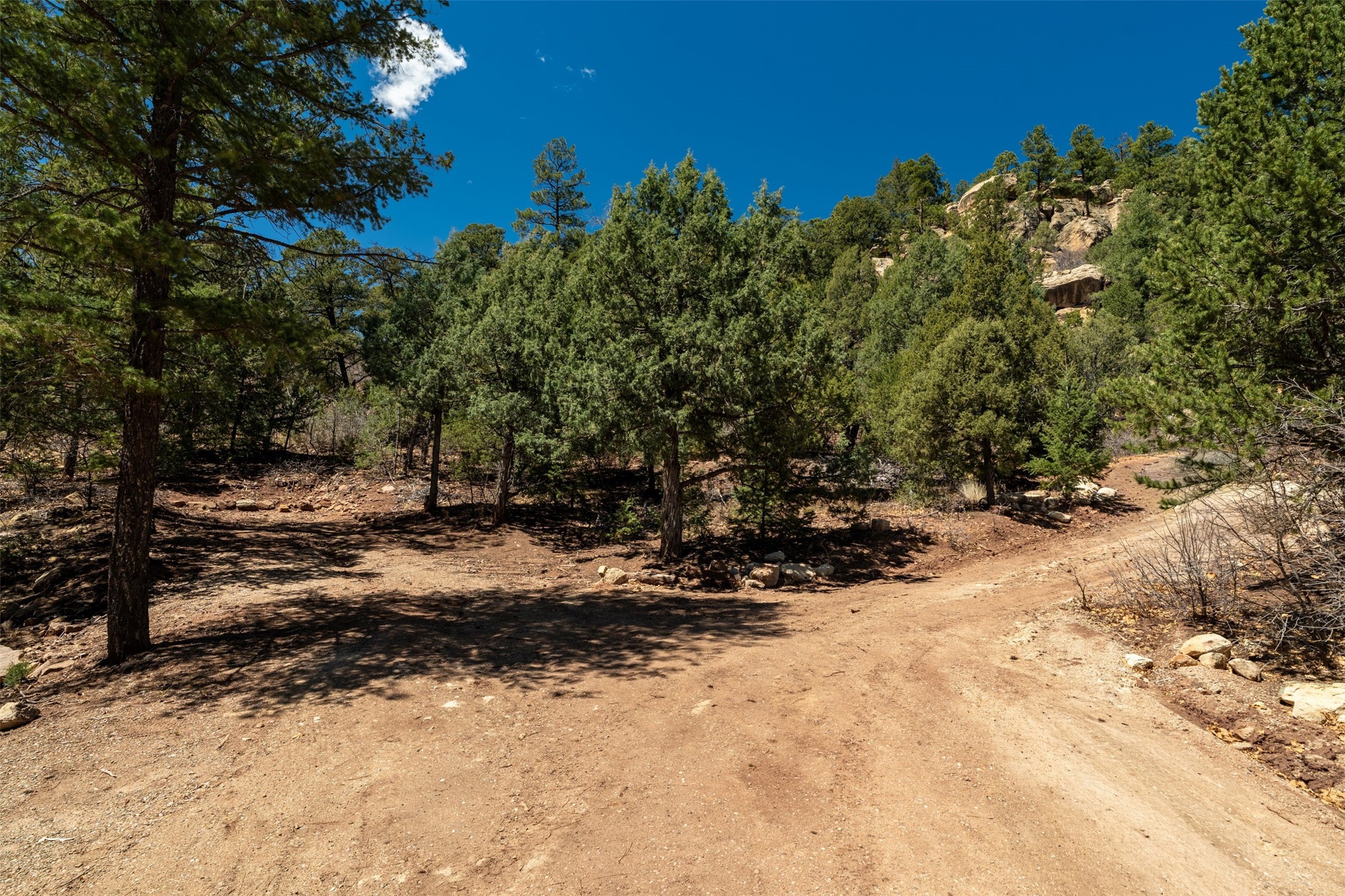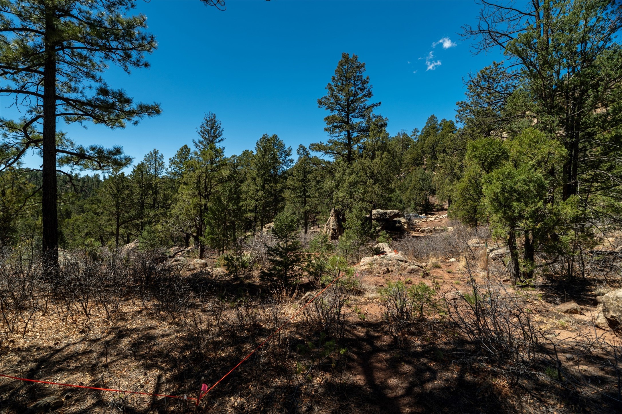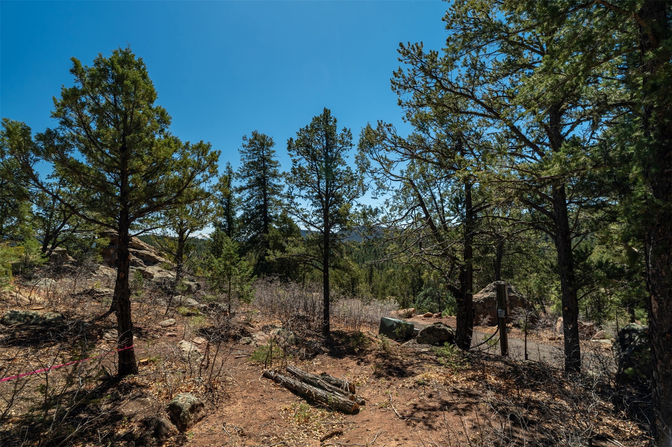 RARE and BEAUTIFUL La Cueva @Glorieta listing, 10+ acres boarded on 2 sides by the Santa Fe National forest. A true destination Treed and Mountain property with underground water and electricity at a building site. There are dramatic and plentiful rock formations. The land is very private and pristine. There are a variety of spots within the 10+ acres for further enhancing, bringing out the views and the serene forest. There is a significant driveway made up of base course and recently surfaced with re-claimed asphalt. Mora San Miguel electric coop meter in place. The lot shares the 500 foot deep well with the adjoining neighbor. There are stunning mountain views of the Pecos Valley and thousands of trees- Ponderosa Pine, Fir, Juniper, oak and spruce. No homeowners association, just County and State regulations. Possible building site to the right at the top entry flagged in red. Seller has pre-approved house plans that he is willing to share. The property is 20 minutes from Santa Fe in desirable La Cueva Valley. A truly wonderful mountain site, primed for a house, waiting for the next step!!l