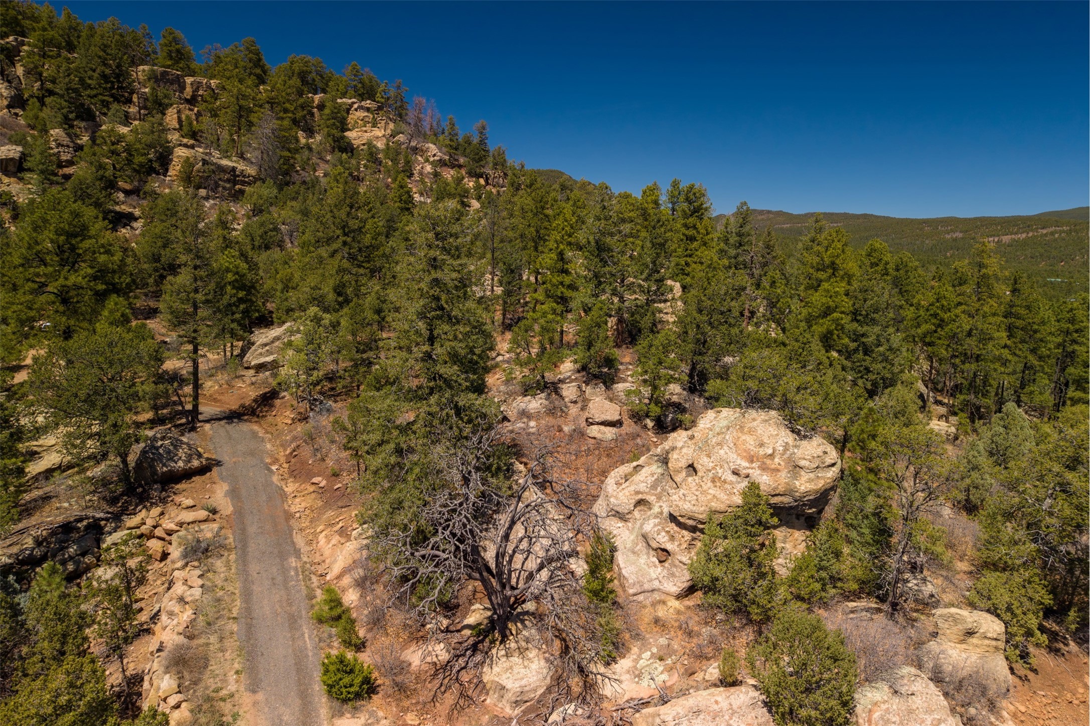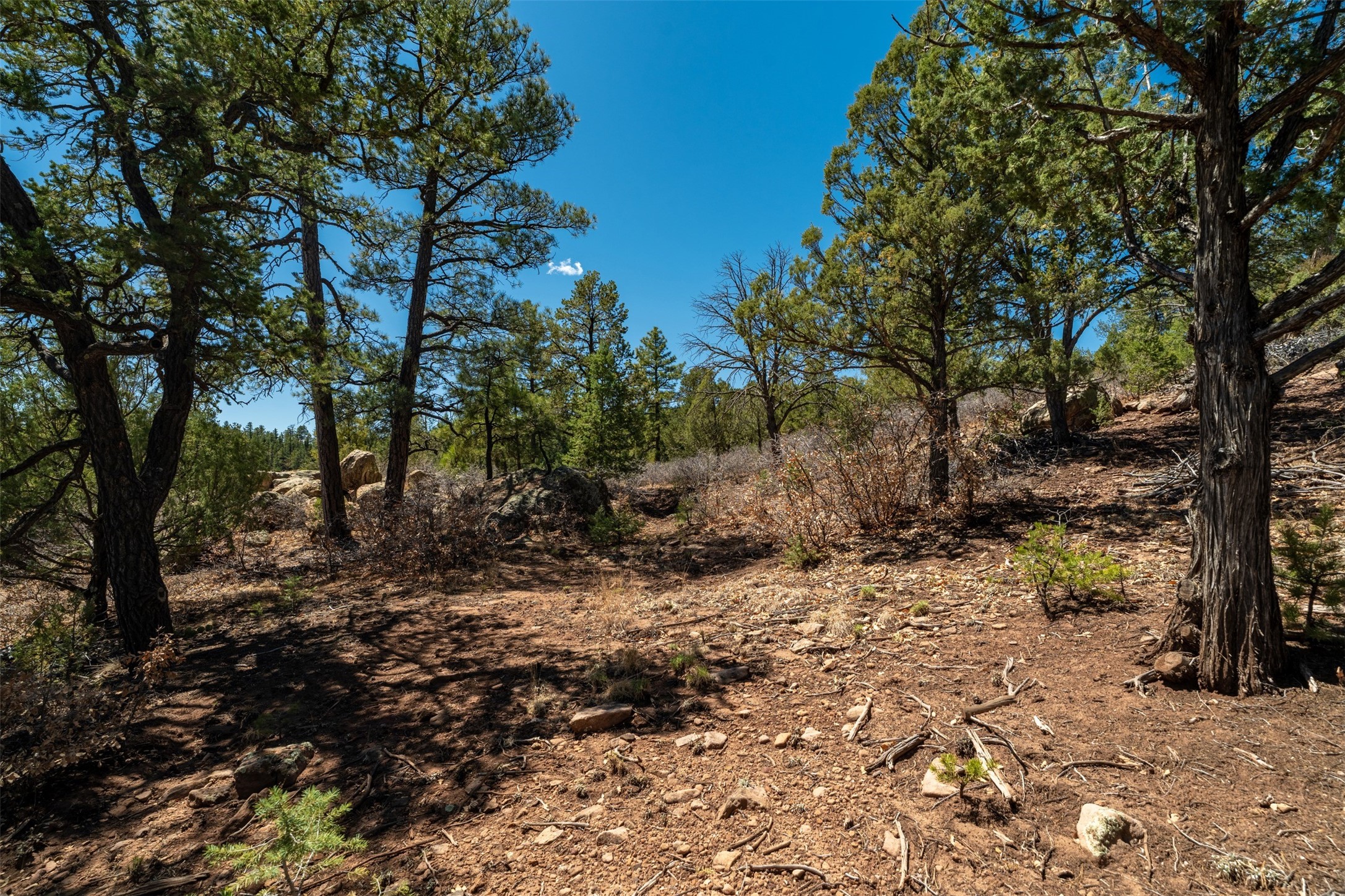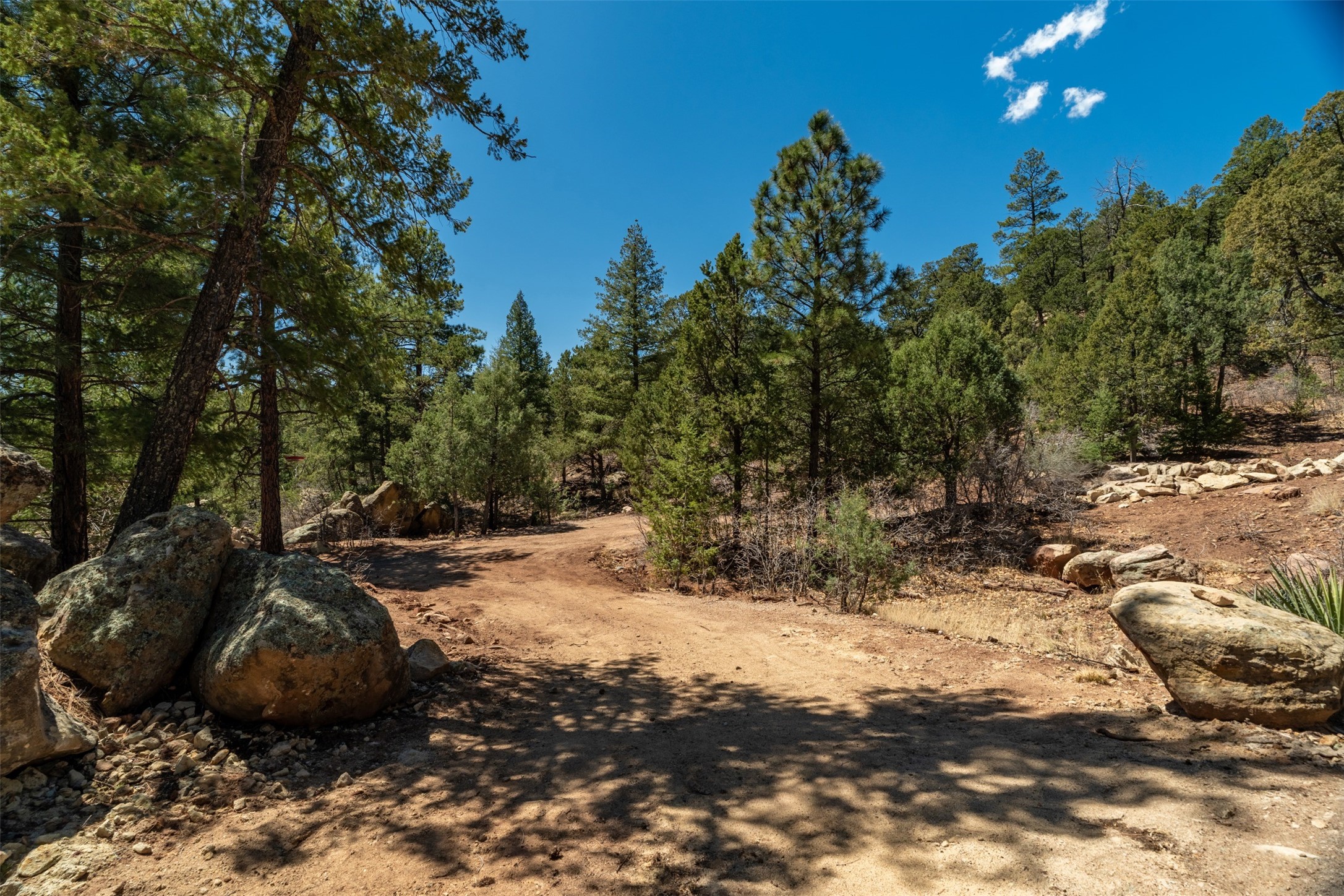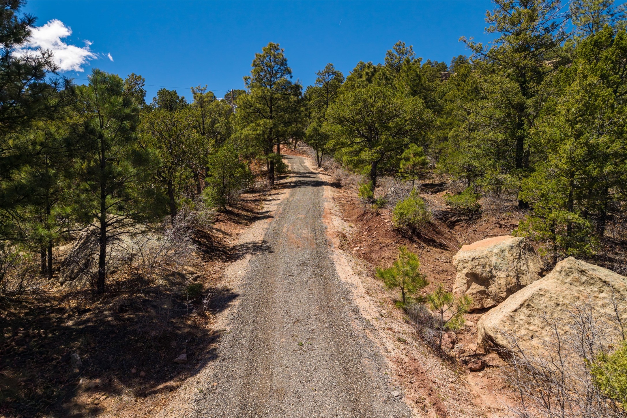 RARE and BEAUTIFUL La Cueva @Glorieta listing, 10+ acres boarded on 2 sides by the Santa Fe National forest. A true destination Treed and Mountain property with underground water and electricity at a building site. There are dramatic and plentiful rock formations. The land is very private and pristine. There are a variety of spots within the 10+ acres for further enhancing, bringing out the views and the serene forest. There is a significant driveway made up of base course and recently surfaced with re-claimed asphalt. Mora San Miguel electric coop meter in place. The lot shares the 500 foot deep well with the adjoining neighbor. There are stunning mountain views of the Pecos Valley and thousands of trees- Ponderosa Pine, Fir, Juniper, oak and spruce. No homeowners association, just County and State regulations. Possible building site to the right at the top entry flagged in red. Seller has pre-approved house plans that he is willing to share. The property is 20 minutes from Santa Fe in desirable La Cueva Valley. A truly wonderful mountain site, primed for a house, waiting for the next step!!l