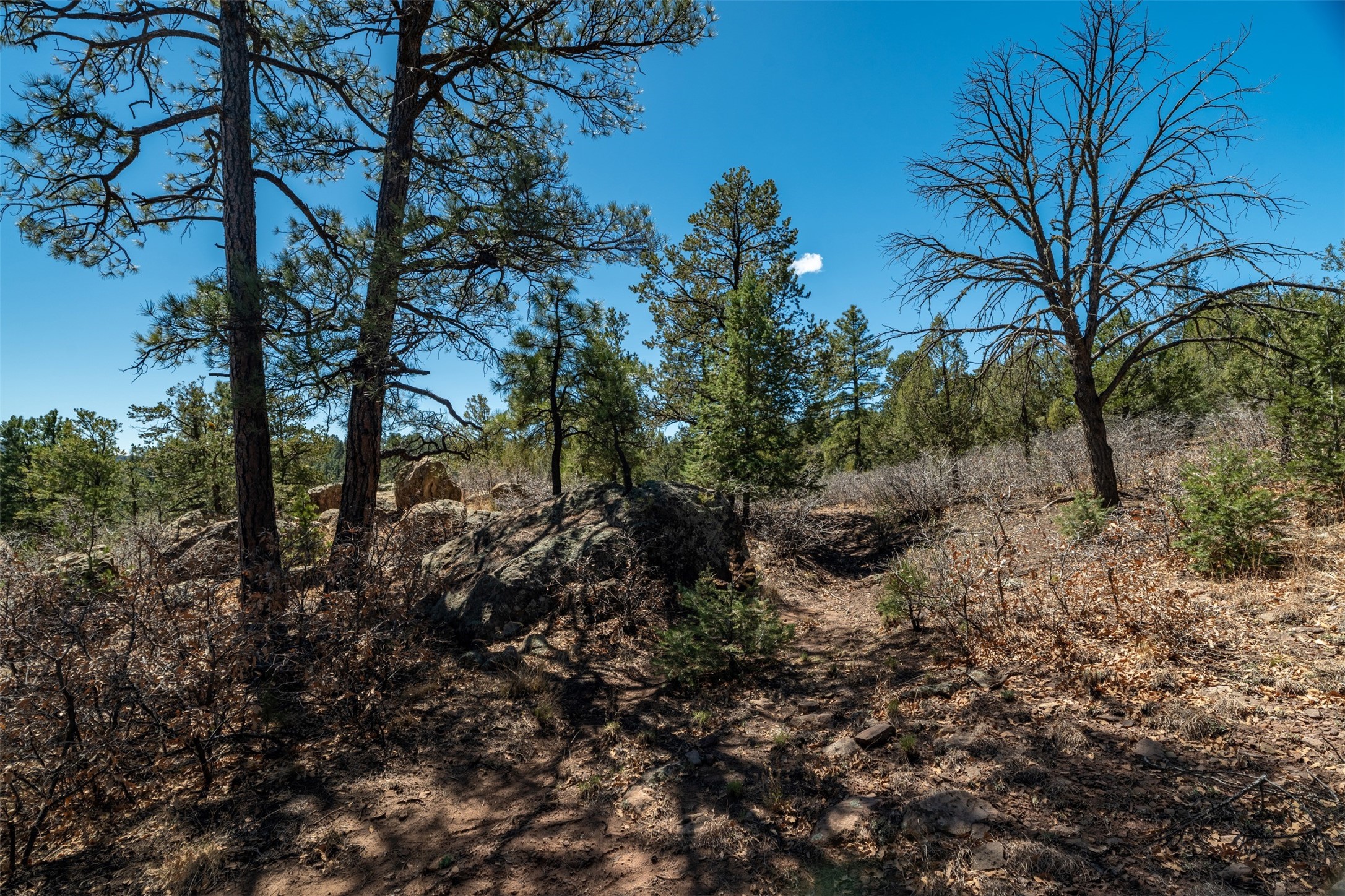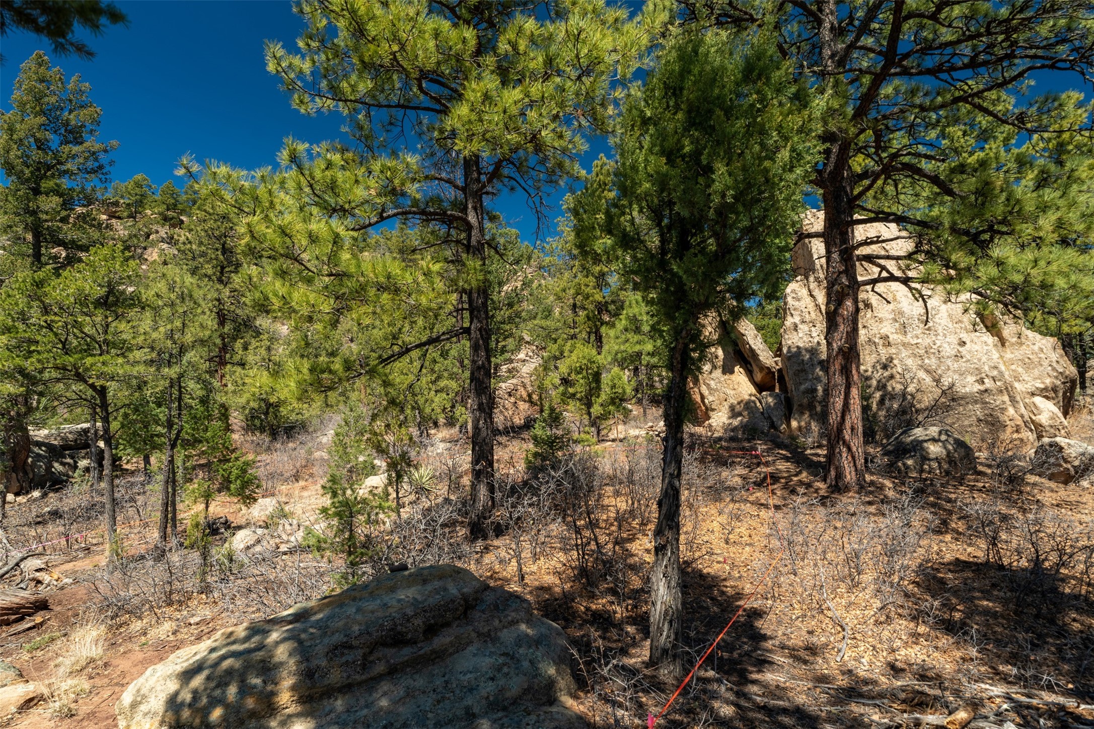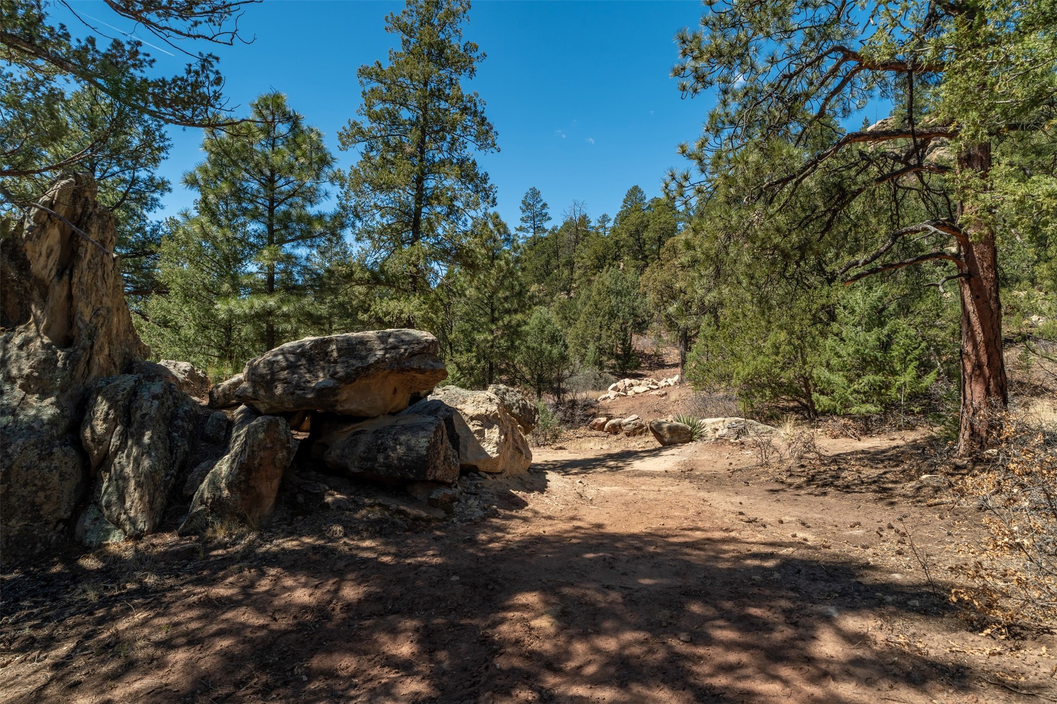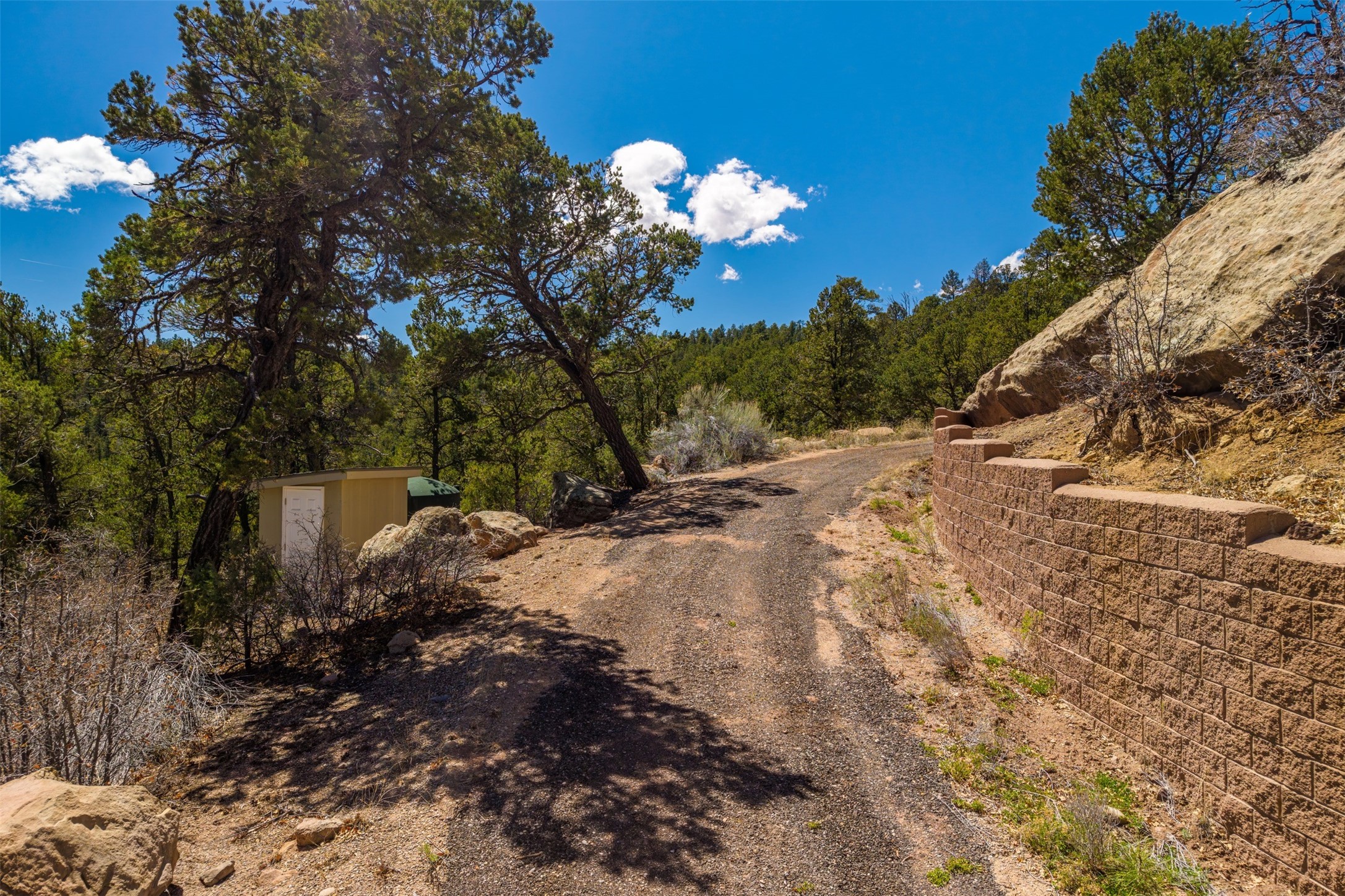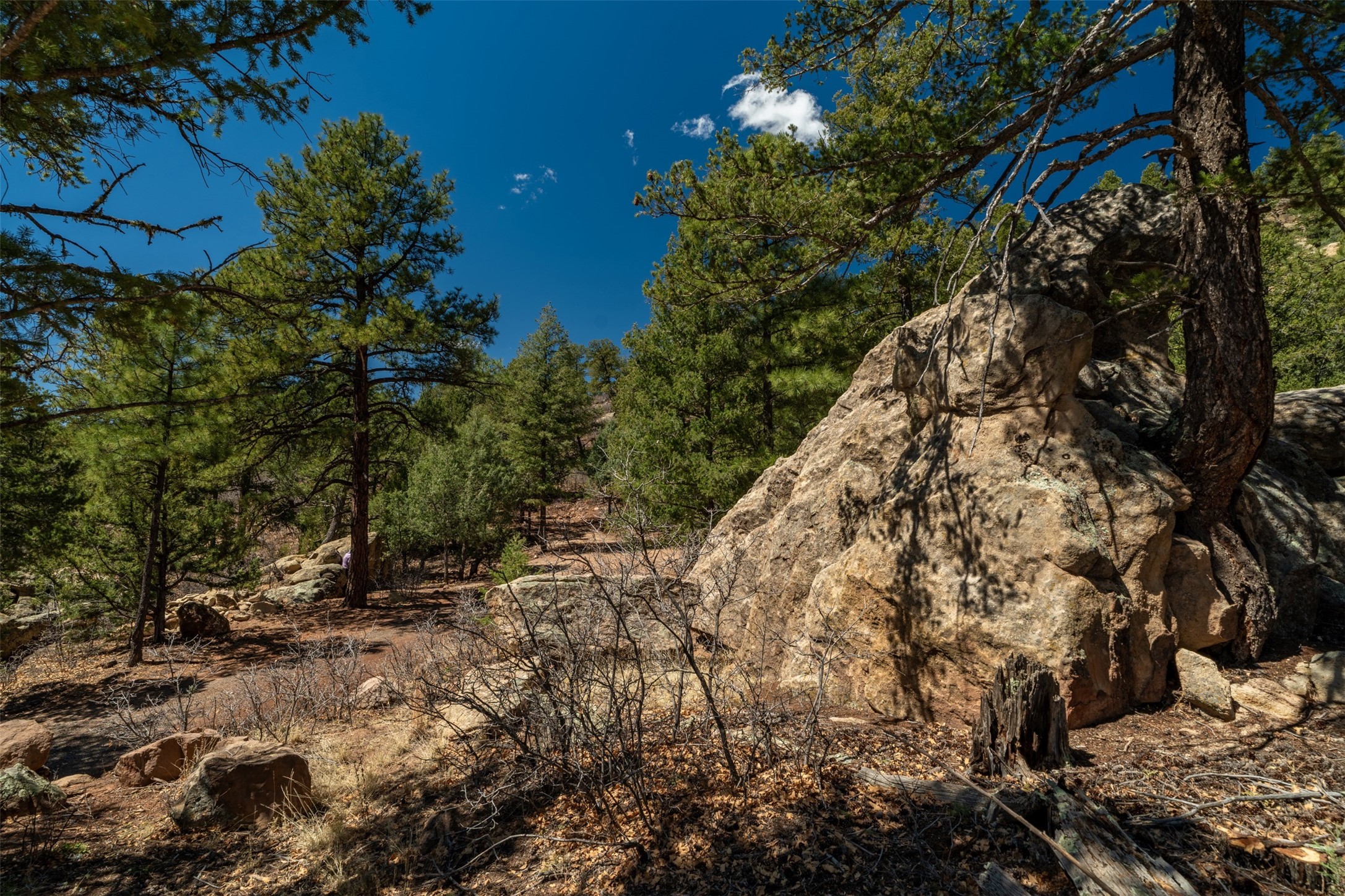 RARE and BEAUTIFUL La Cueva @Glorieta listing, 10+ acres boarded on 2 sides by the Santa Fe National forest. A true destination Treed and Mountain property with underground water and electricity at a building site. There are dramatic and plentiful rock formations. The land is very private and pristine. There are a variety of spots within the 10+ acres for further enhancing, bringing out the views and the serene forest. There is a significant driveway made up of base course and recently surfaced with re-claimed asphalt. Mora San Miguel electric coop meter in place. The lot shares the 500 foot deep well with the adjoining neighbor. There are stunning mountain views of the Pecos Valley and thousands of trees- Ponderosa Pine, Fir, Juniper, oak and spruce. No homeowners association, just County and State regulations. Possible building site to the right at the top entry flagged in red. Seller has pre-approved house plans that he is willing to share. The property is 20 minutes from Santa Fe in desirable La Cueva Valley. A truly wonderful mountain site, primed for a house, waiting for the next step!!l