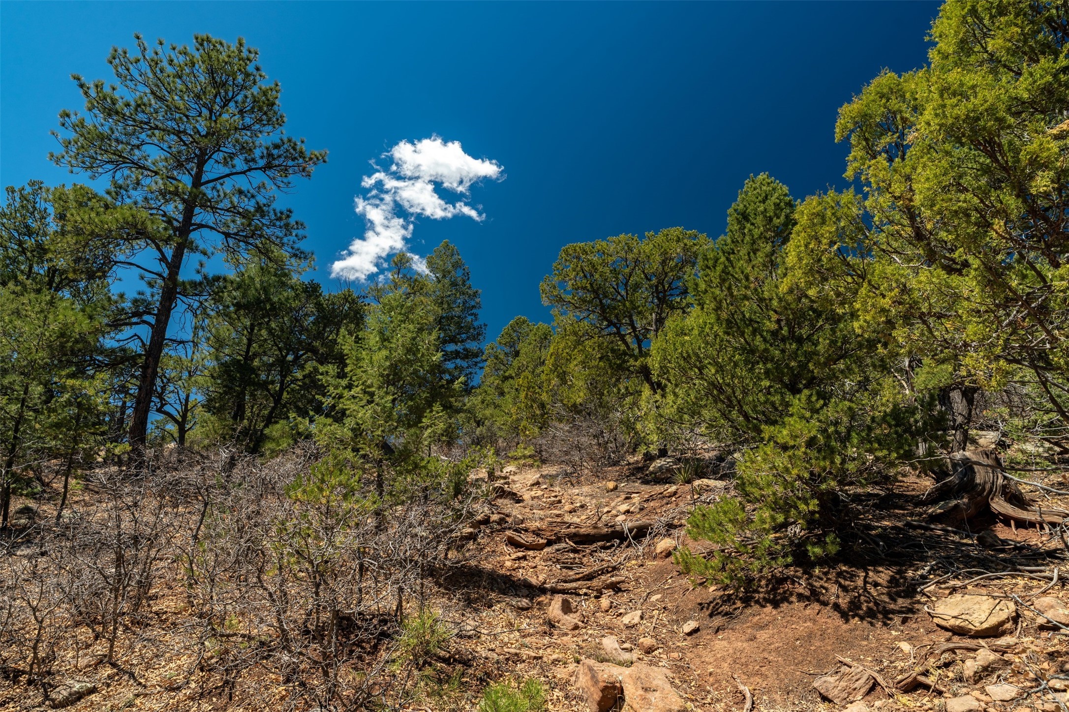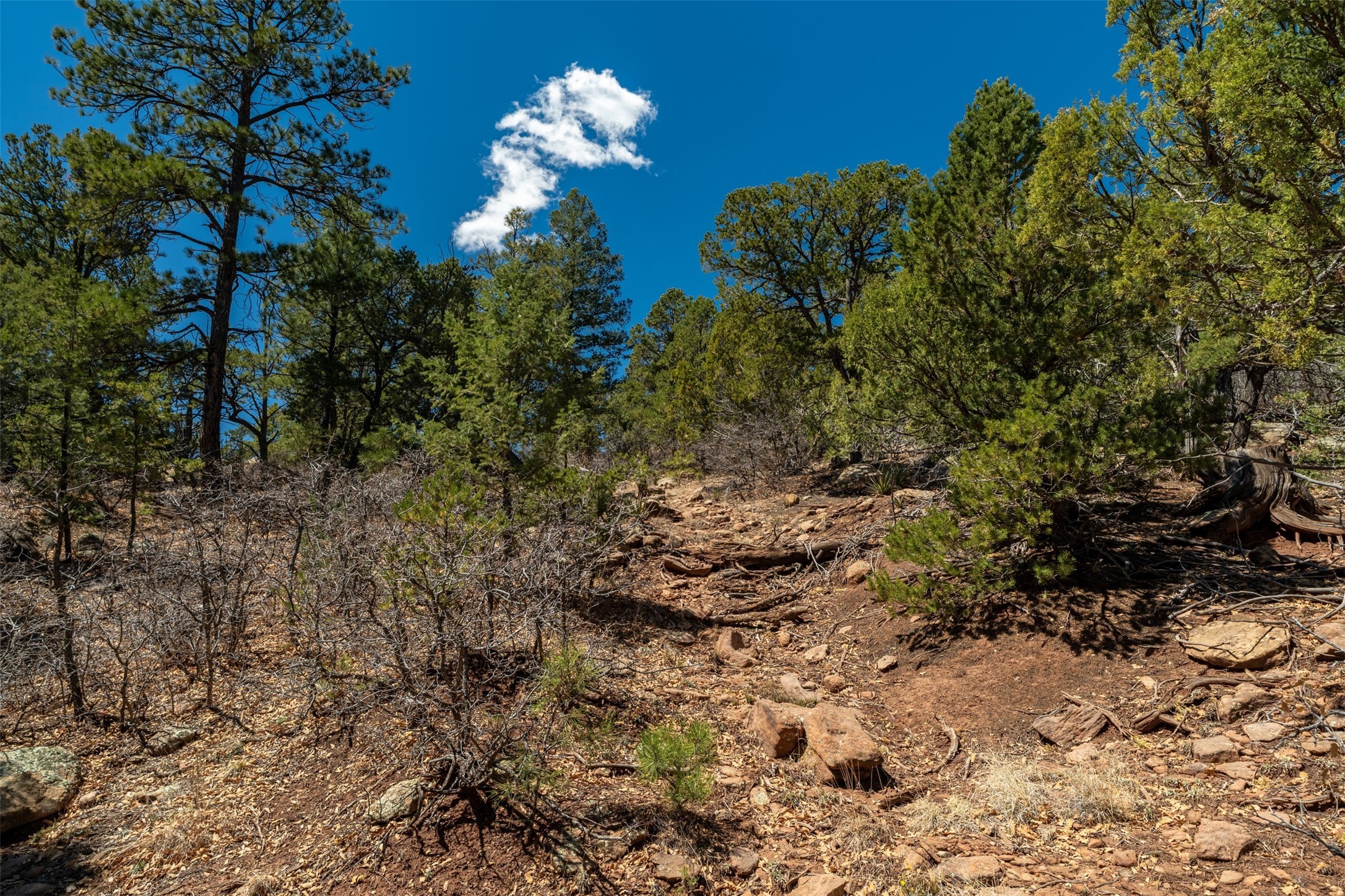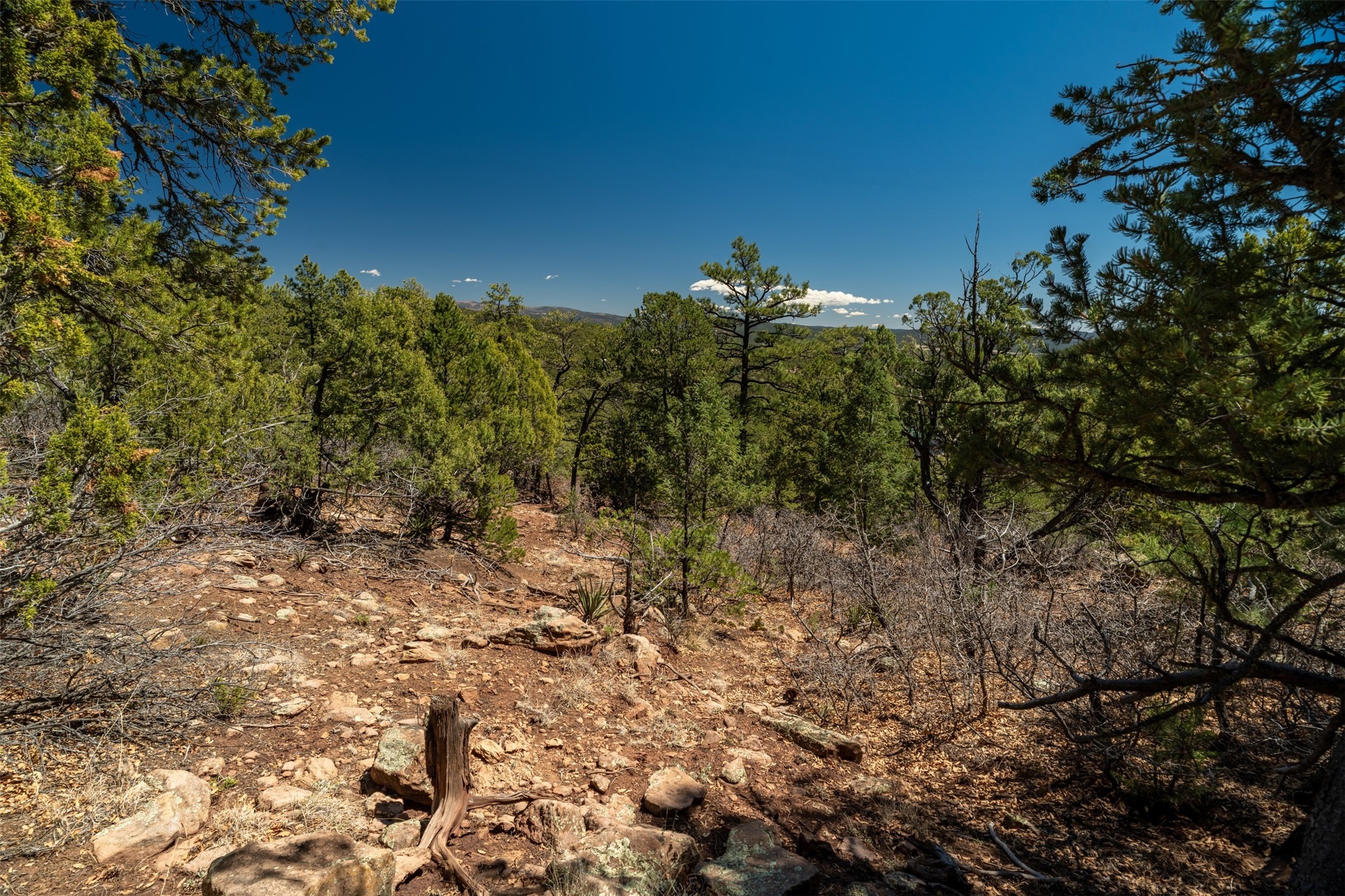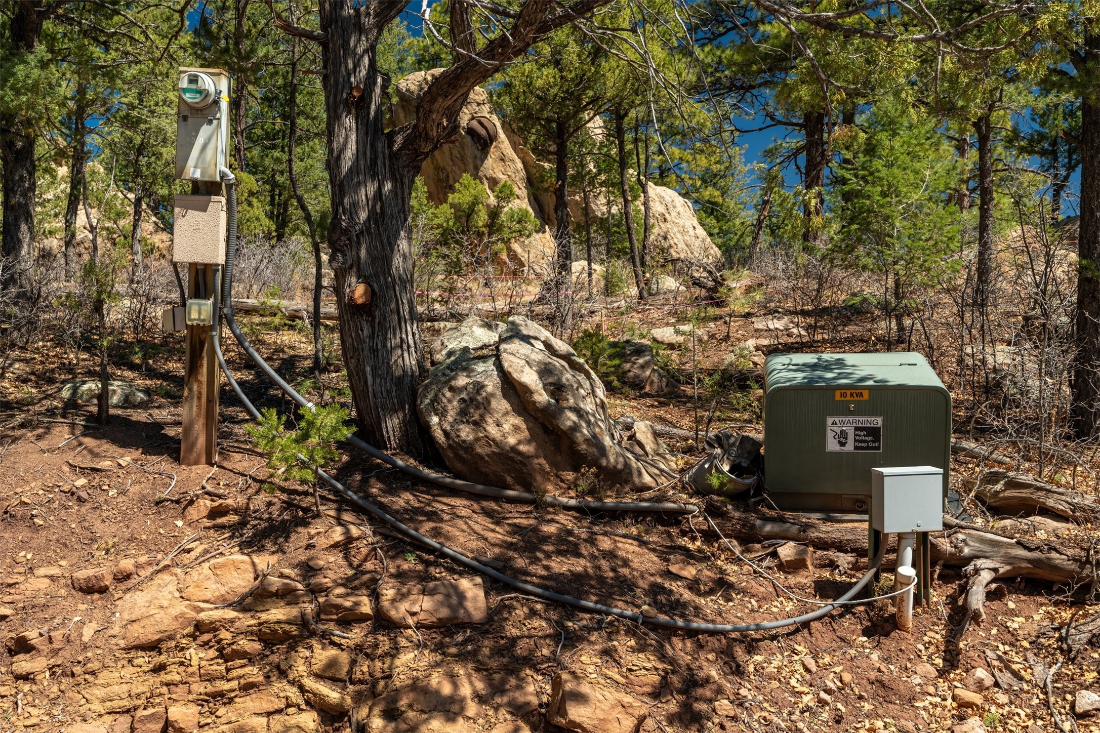 RARE and BEAUTIFUL La Cueva @Glorieta listing, 10+ acres boarded on 2 sides by the Santa Fe National forest. A true destination Treed and Mountain property with underground water and electricity at a building site. There are dramatic and plentiful rock formations. The land is very private and pristine. There are a variety of spots within the 10+ acres for further enhancing, bringing out the views and the serene forest. There is a significant driveway made up of base course and recently surfaced with re-claimed asphalt. Mora San Miguel electric coop meter in place. The lot shares the 500 foot deep well with the adjoining neighbor. There are stunning mountain views of the Pecos Valley and thousands of trees- Ponderosa Pine, Fir, Juniper, oak and spruce. No homeowners association, just County and State regulations. Possible building site to the right at the top entry flagged in red. Seller has pre-approved house plans that he is willing to share. The property is 20 minutes from Santa Fe in desirable La Cueva Valley. A truly wonderful mountain site, primed for a house, waiting for the next step!!l