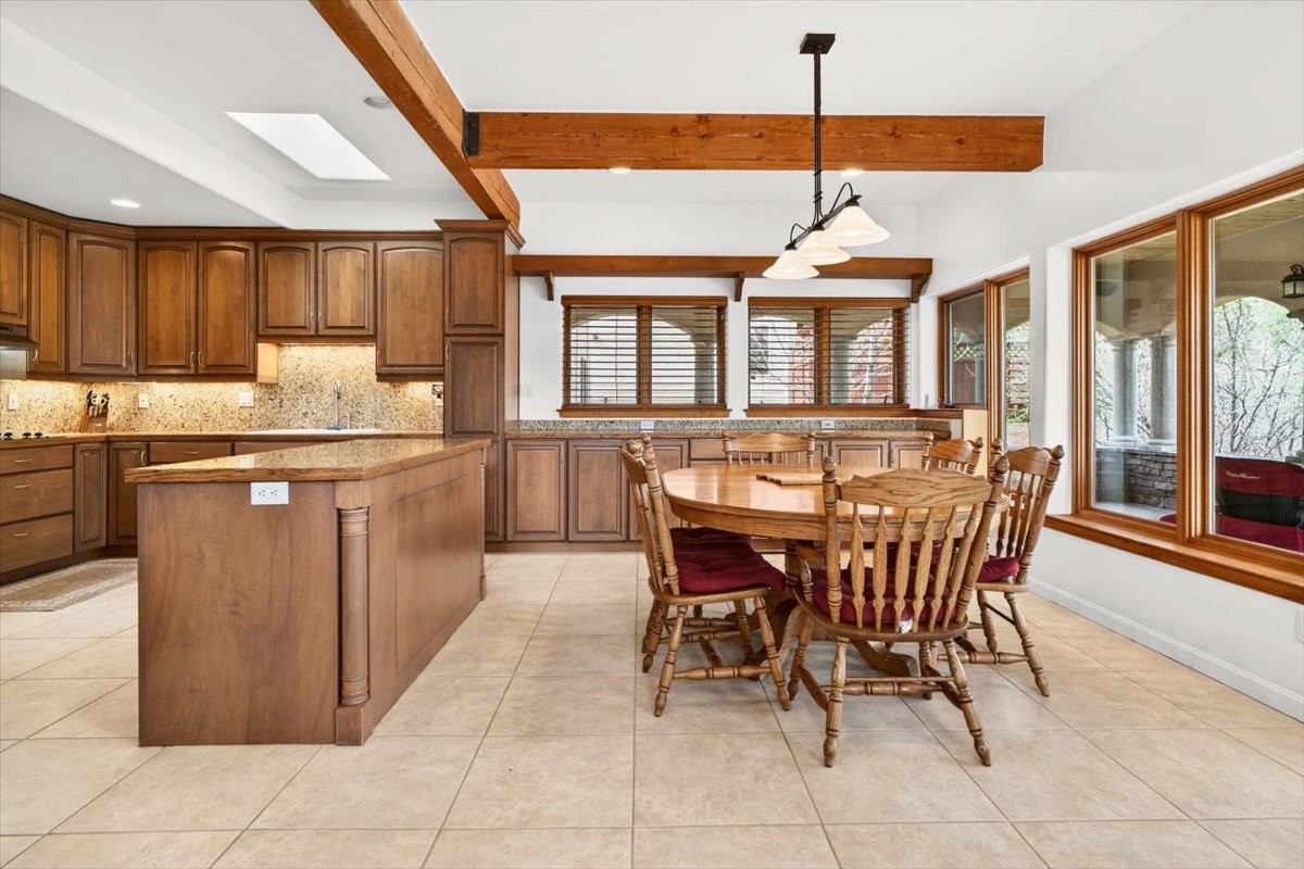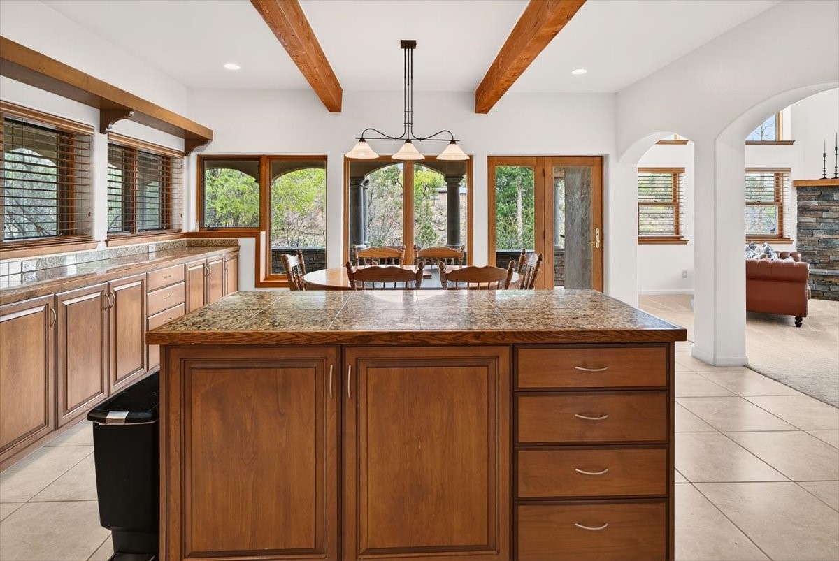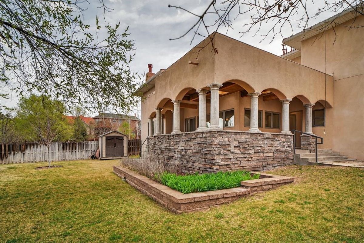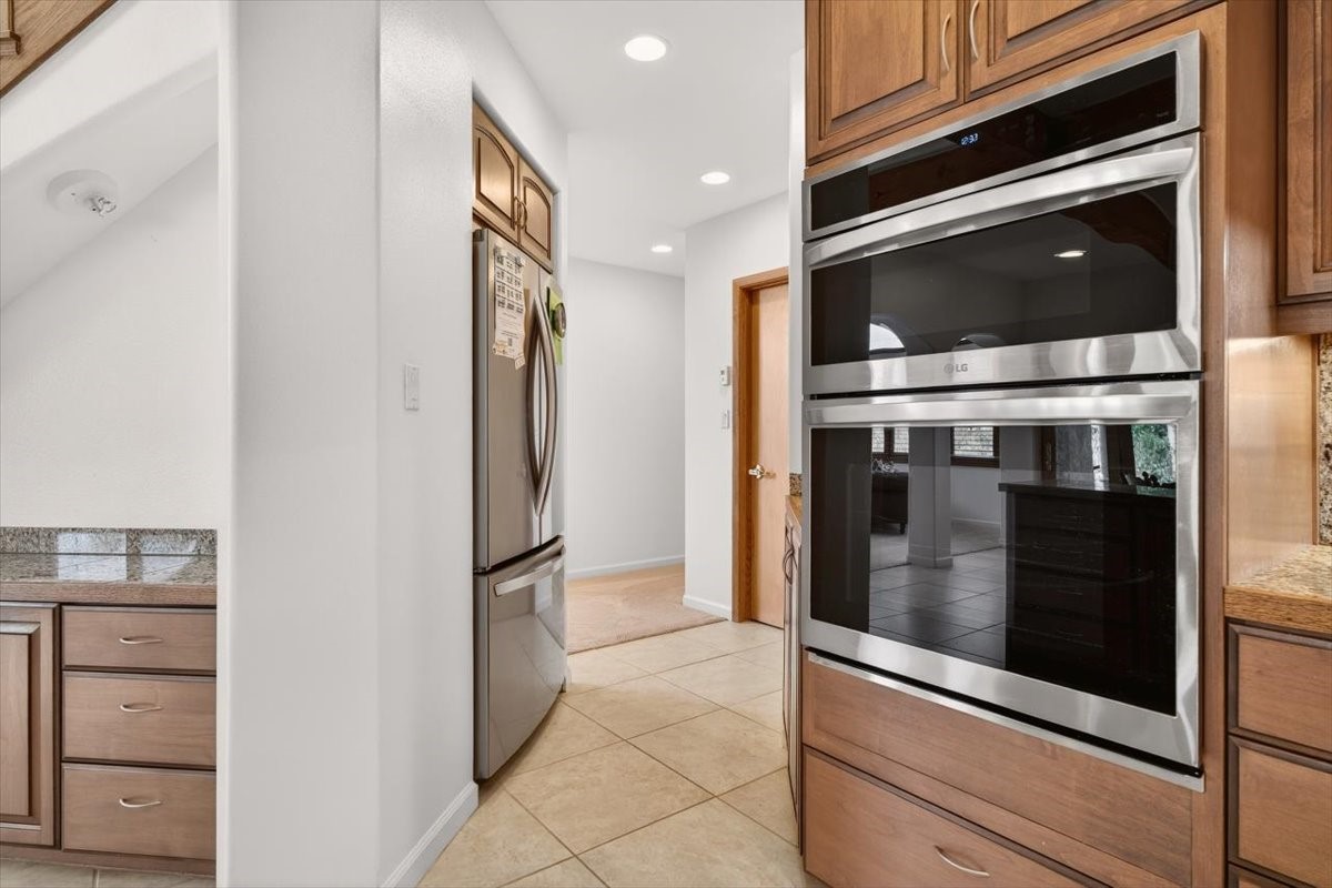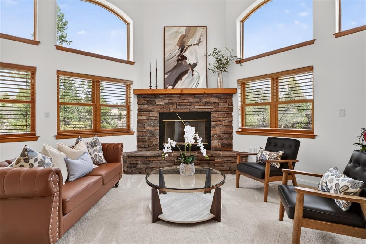 Crafted with enhanced safety standards and durability at the forefront, this 2004-built residence features exceptional construction, including 2x10 wall framing with R-32 insulation and a 1.5-inch fire-rated stucco exterior. The 2011 metal roof, designed to resemble classic clay tile, is fully fireproof and includes a transferable warranty, while double-pane skylights enhance both efficiency and natural light. A grand foyer welcomes you inside, where a striking stone fireplace and iron staircase anchor the living spaces and set a refined tone. Arched windows accentuate the home's distinctive character and fill the space with natural light. The upper level features two bedrooms, including a well-appointed primary suite with a spa-like bath, generous walk-in closet, and private sitting area. A den overlooks the living room below, adding dimension and openness to the design. The lower level serves as the heart of the home. Arched architectural details lead into the dining area and kitchen, where custom alder wood cabinetry, granite tile countertops, and a 2025 appliance suite create a functional and stylish workspace. An island with a pullout workstation offers added versatility. This level also includes two additional bedrooms and direct access to the backyard. Just off the kitchen, the patio is thoughtfully designed for year-round enjoyment, complete with integrated Bose speakers and a balance of shelter and openness ideal for entertaining. A 550-square-foot bonus room--originally designed as a dance studio--offers flexible use as a home theater, game room, or creative space. Additional features include in-floor radiant heating throughout both levels, central air conditioning, and solid-core ADA compliant doors. The oversized garage accommodates larger vehicles. Located near hiking trails, public transportation, and the local high school, this property combines thoughtful design, quality construction, and everyday livability. Schedule a private showing today.