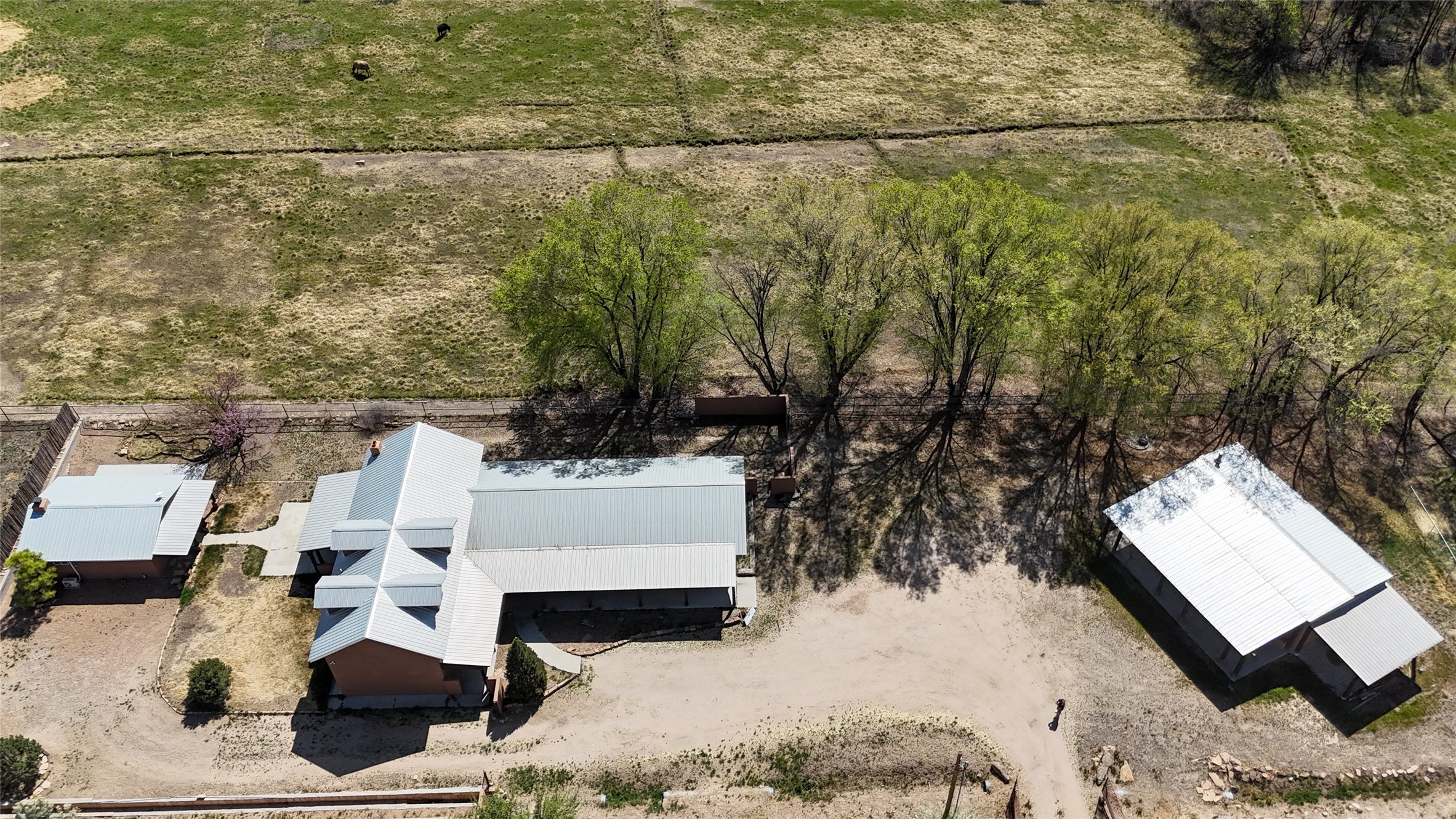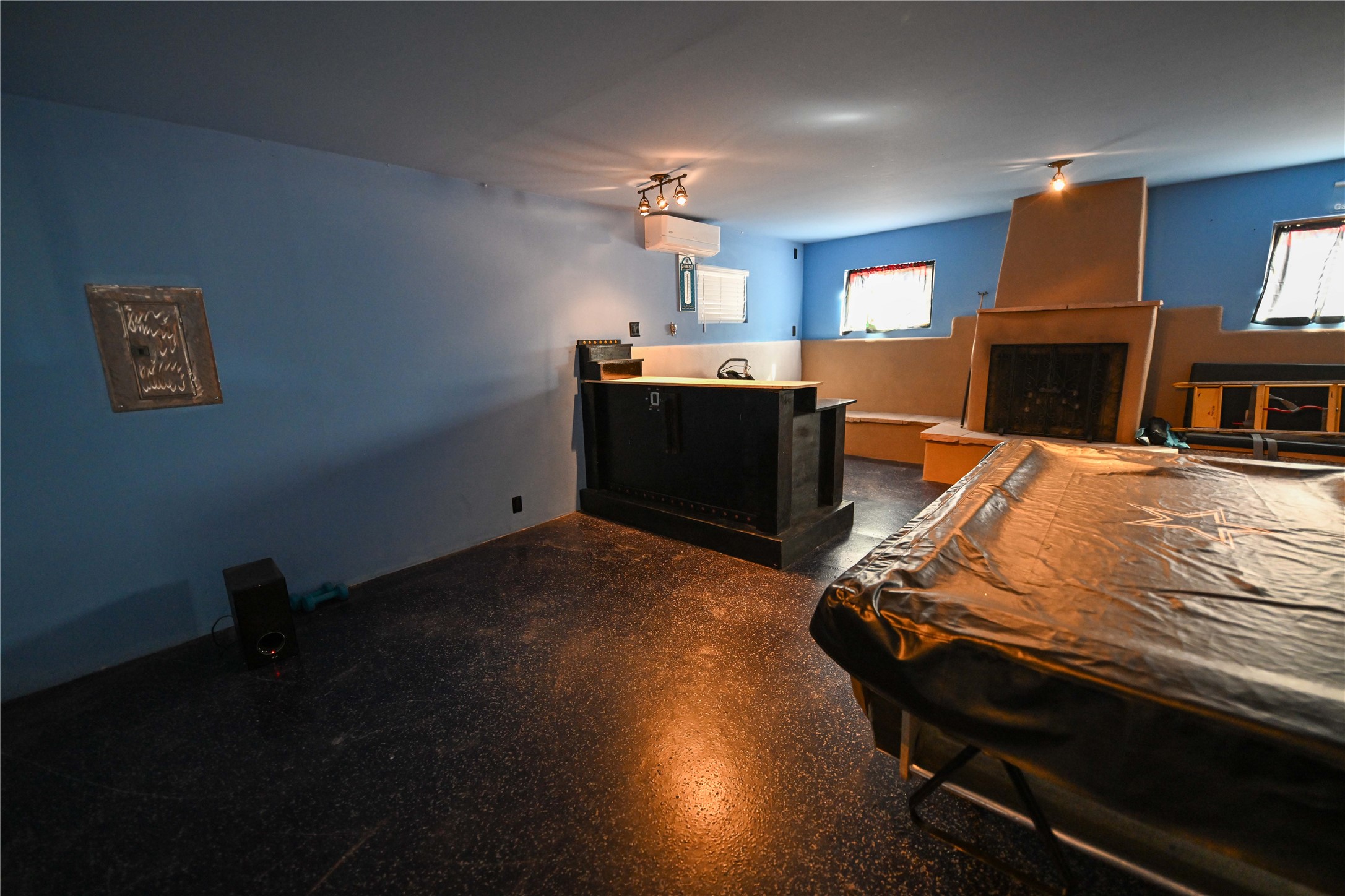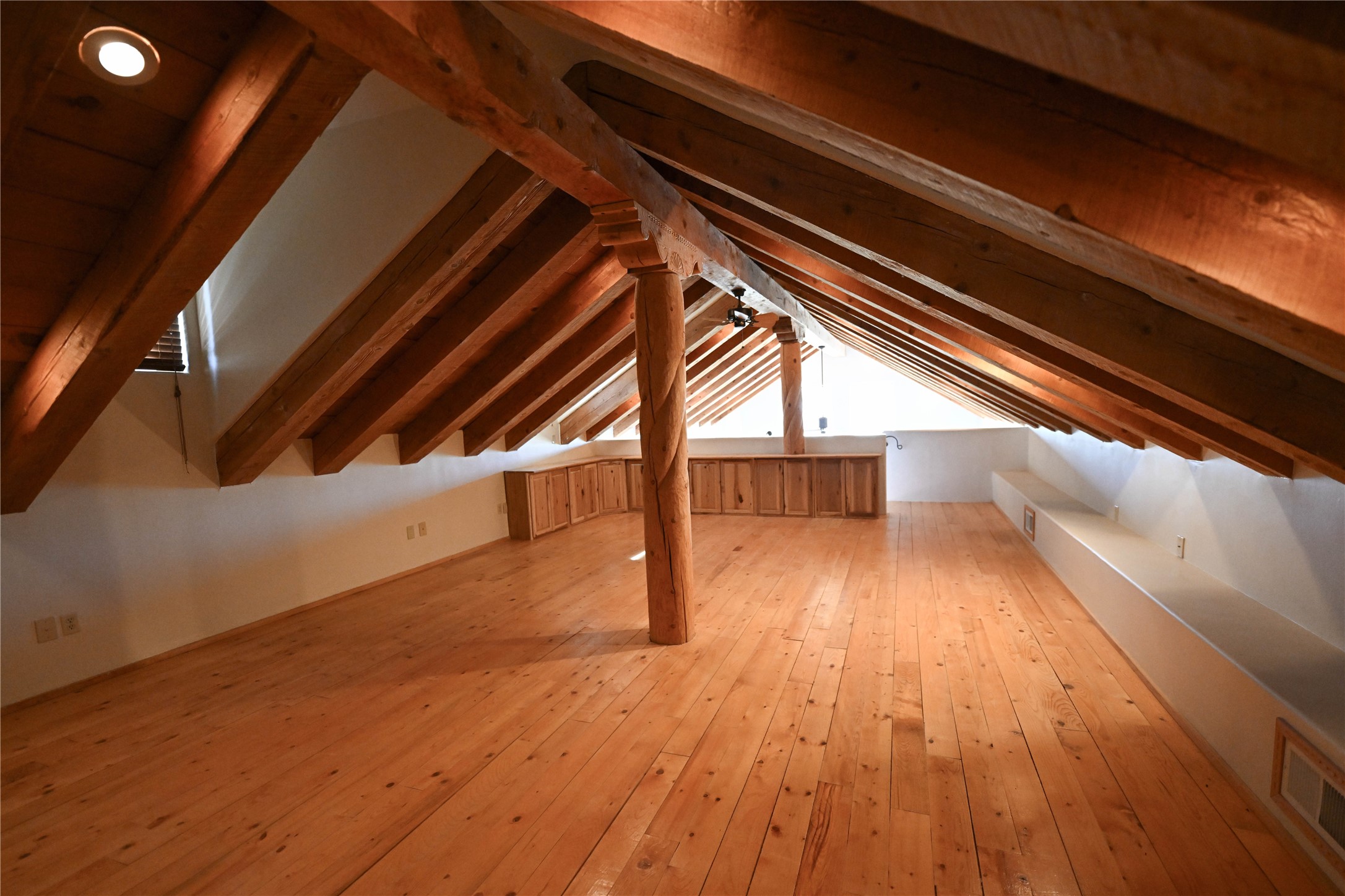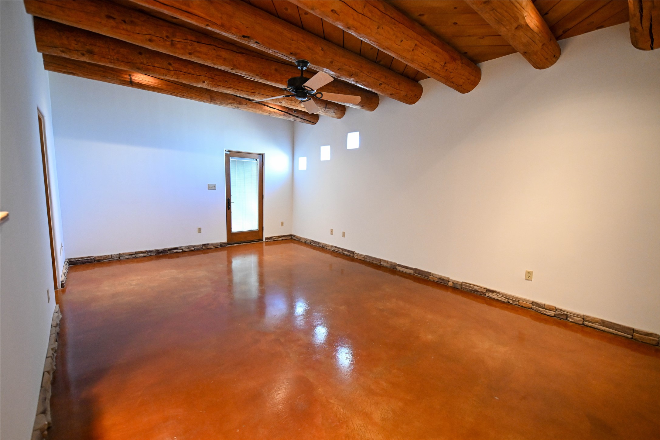 Southwest style home on .6 acres with water rights, built around 2005 and designed with flexibility in mind.The main living space is open and inviting, with vigas, high ceilings, natural light, and a kiva fireplace. Custom wood doors and finishes throughout give the home a distinct New Mexico character that stands apart from typical construction.The layout includes two bedrooms and two bathrooms, along with an upper level loft that has been used for guest sleeping, offering additional living space beyond the traditional floor plan.Just off the back patio, a detached studio with mini split provides a separate, conditioned space ideal for a home office, gym, or extended stay use, with room to expand.A large garage and workshop with wood stove adds even more flexibility, supported by ample exterior parking, including space for multiple vehicles or RV use.Radiant heat and refrigerated air provide year round comfort. Convenient access to Santa Fe and Los Alamos.