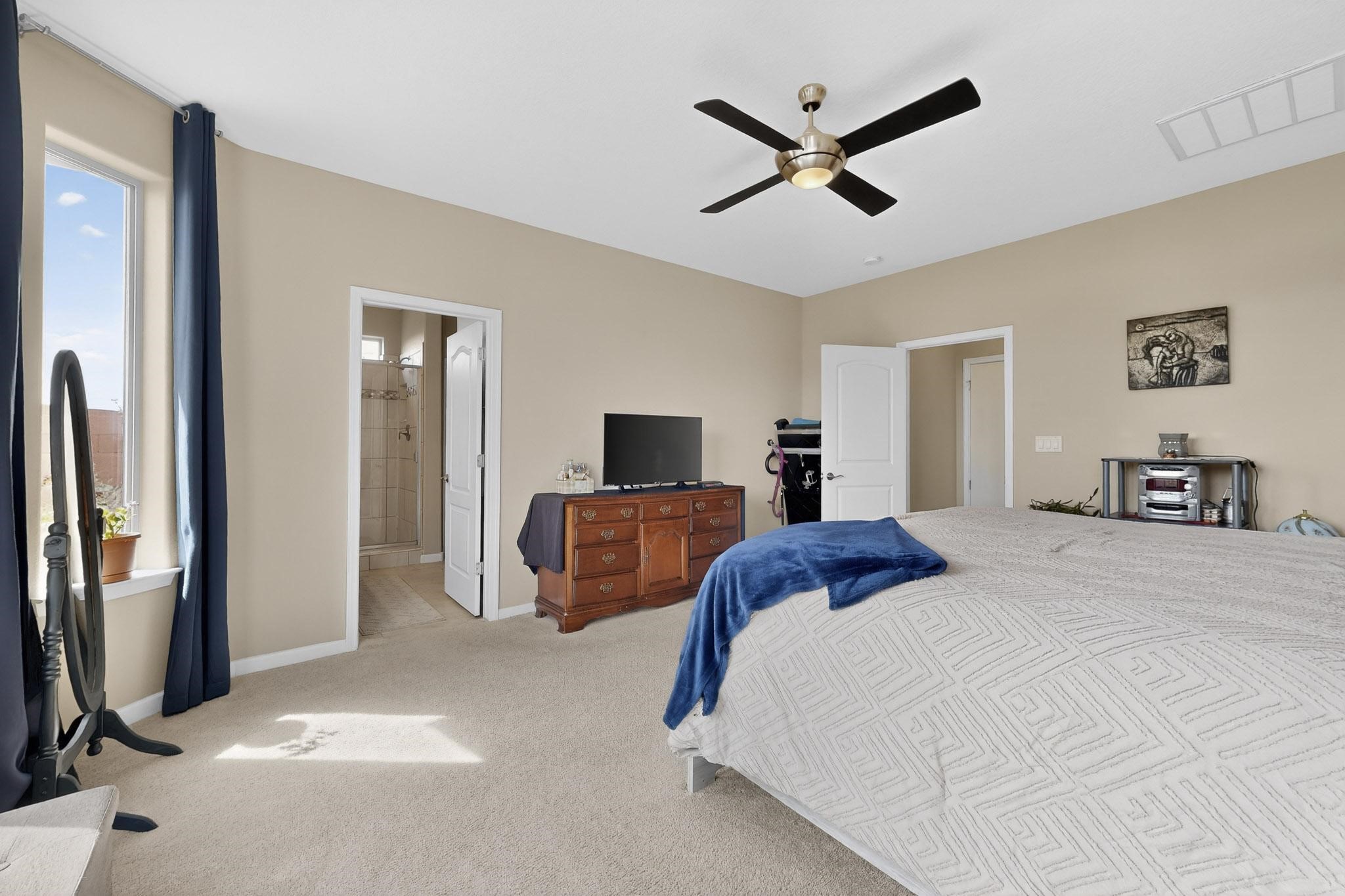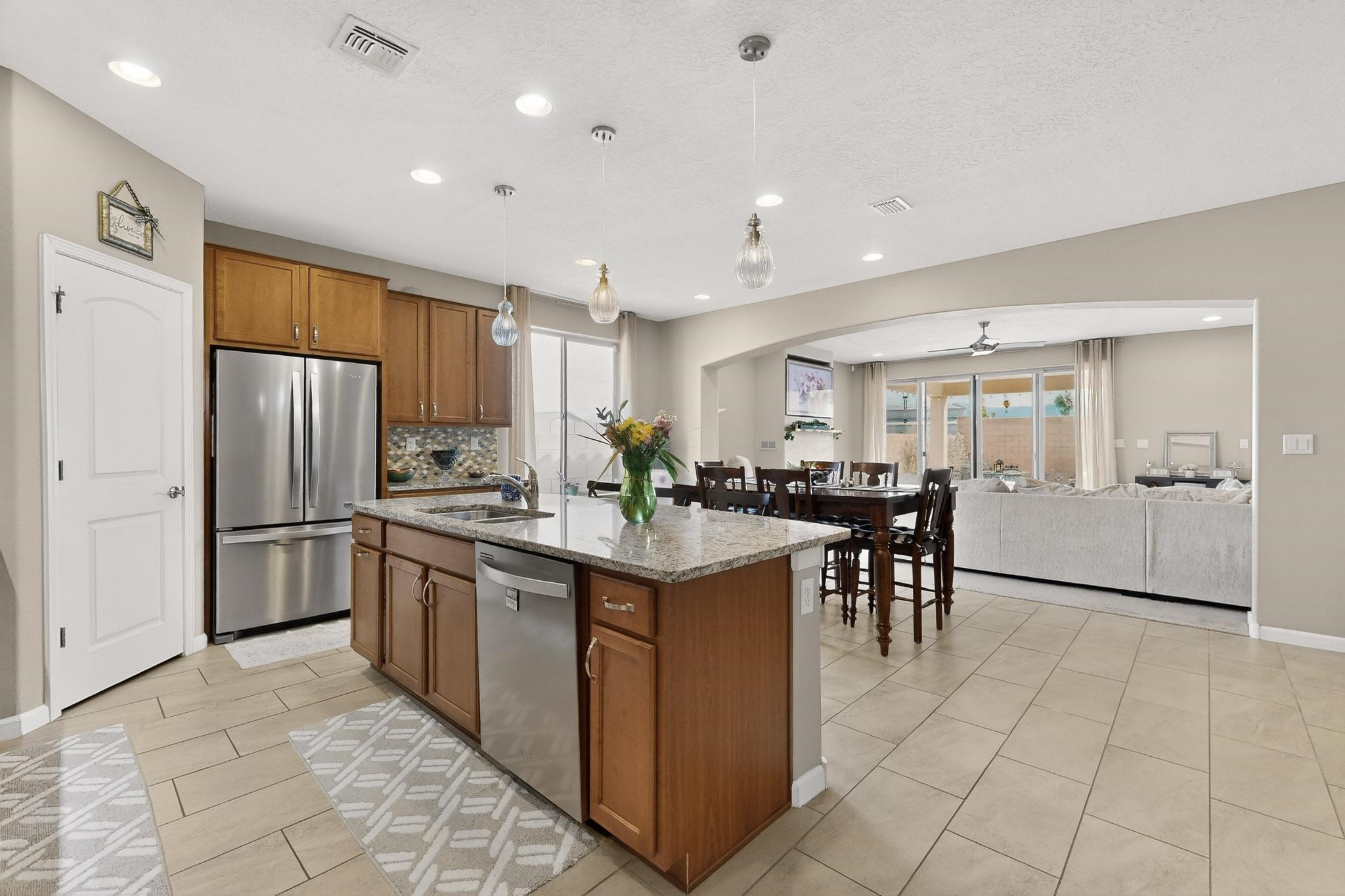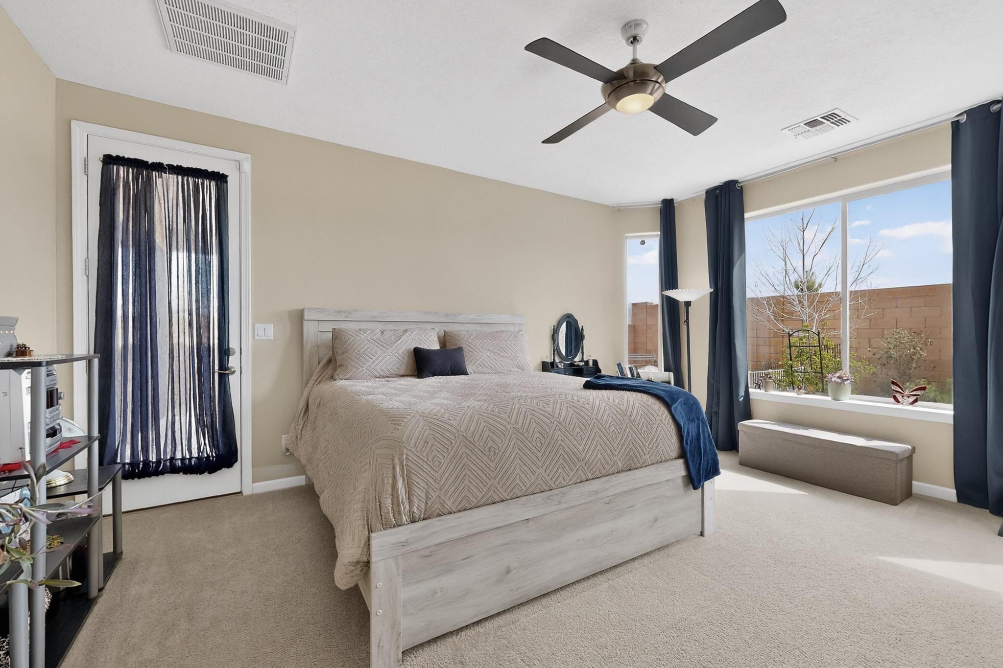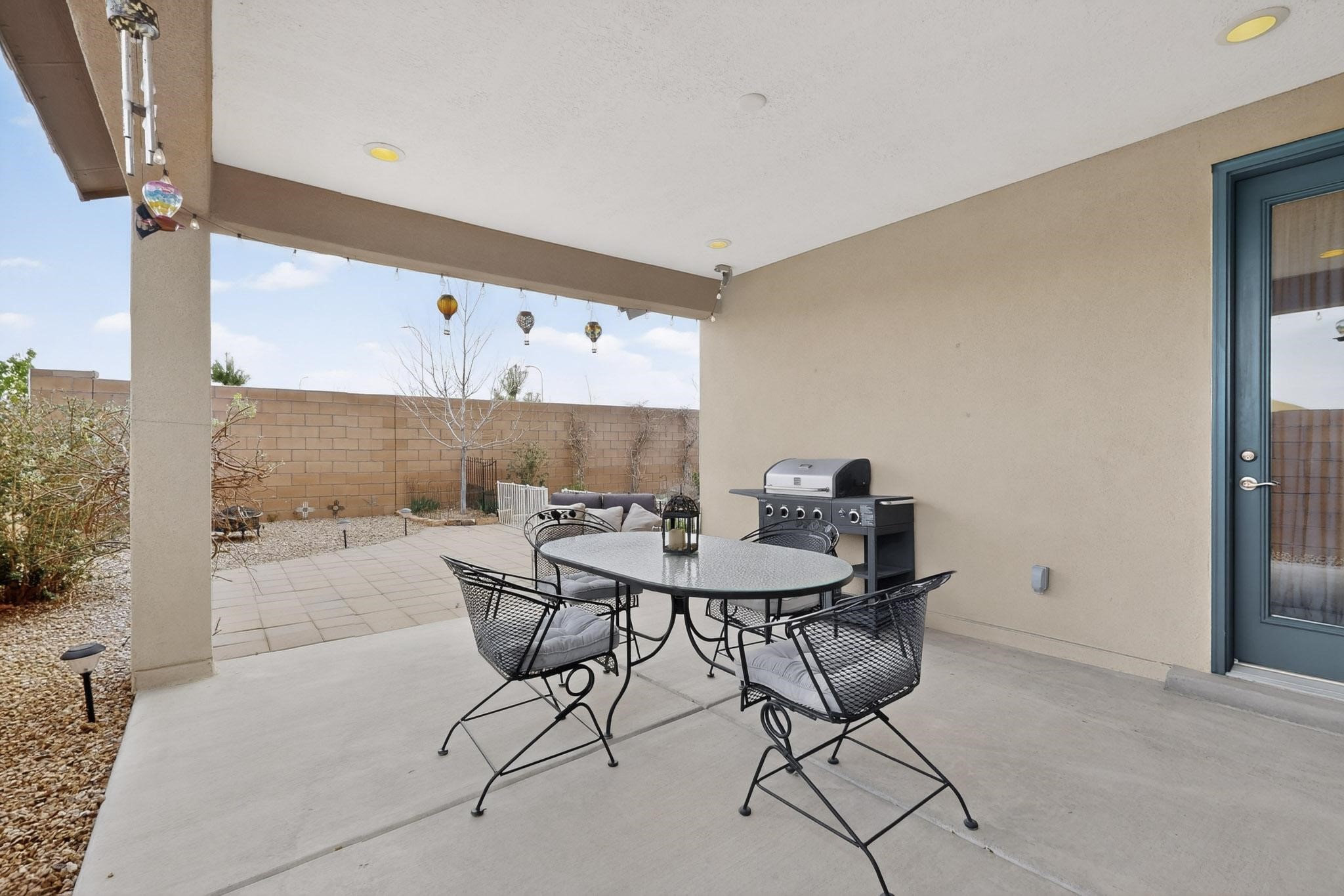 Beautiful, Pulte home, built in 2019, in the desirable Las Soleras Subdivision, that's near restaurants, shopping and Presyterian Hospital! This stunning, single level home has 3 bedrooms + an office/exercise room, 1 3/4 baths, about 2188 square feet, on a fantastic, premium lot with an extra long driveway to park about 6 vehicles! The 2-car garage is oversized and has plenty of storage for your holiday decorations, board games, off season clothing or anything you may need to store. Inside you'll enjoy the open floor plan, an updated kitchen with granite island and countertops, lots of cabinets and stainless steel appliances. The living room is spacious and includes a wonderful gas fireplace for the cool evenings and even has some mountain views! The master bedroom is also spacious, has access to the landscaped backyard and has a large, bay window to enjoy the southern sun! You'll love the upgraded master bath, that also has granite, a walk in shower and a large walk in closet. The additional 2 bedrooms are separate from the master, and include a sweet, full bath. Additional upgrades include central refrigerated A/C, ceiling fans, a tankless hot water heater and did I mention the mountain views?? Enjoy the beautiful Santa Fe weather under the lovely portal that includes a high wall for privacy! This home comes with many upgrades, lots of natural light and is ready for it's new owners! Schedule your showing today - you won't be disappointed!